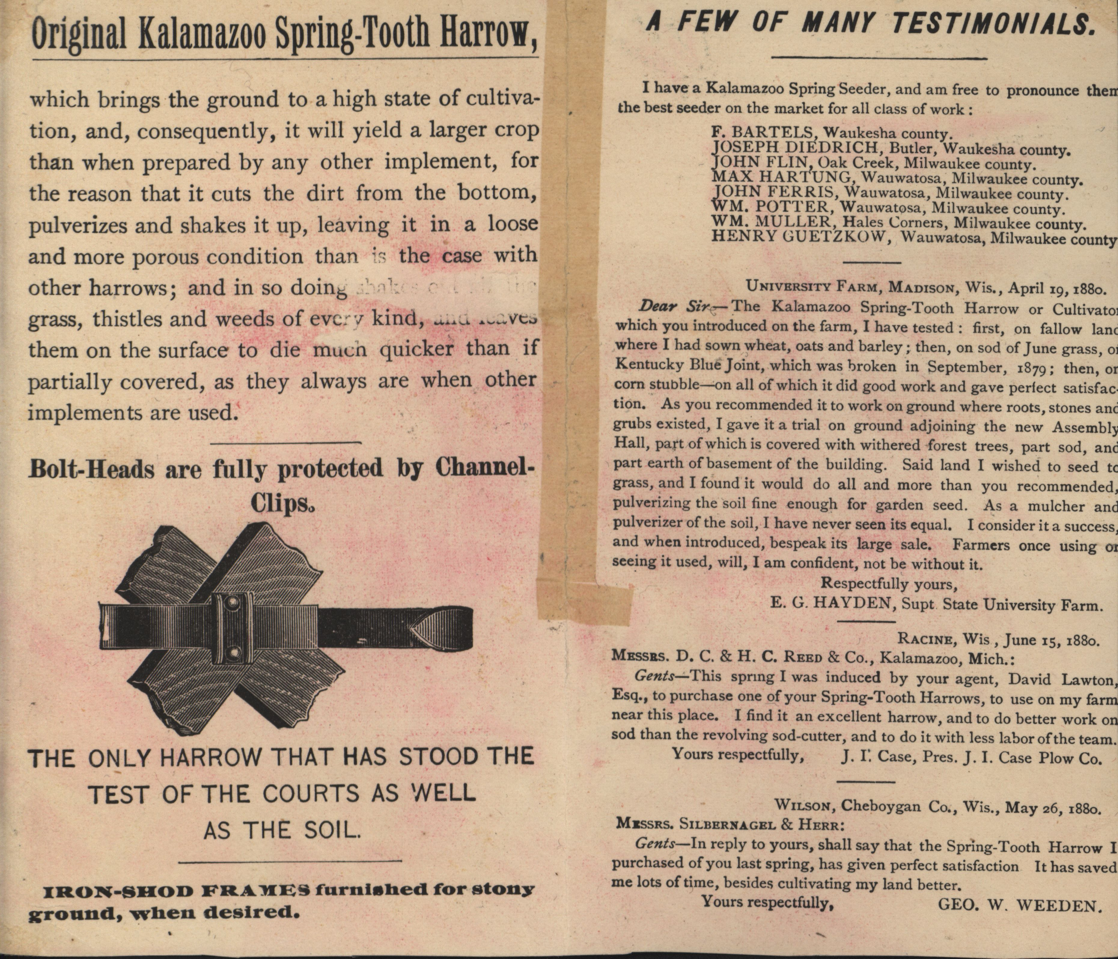 - "Original Kalamazoo Spring-Tooth Harrow advertisement", Agricultural Machinery Literature Collection, Iowa State University Library Digital Collections