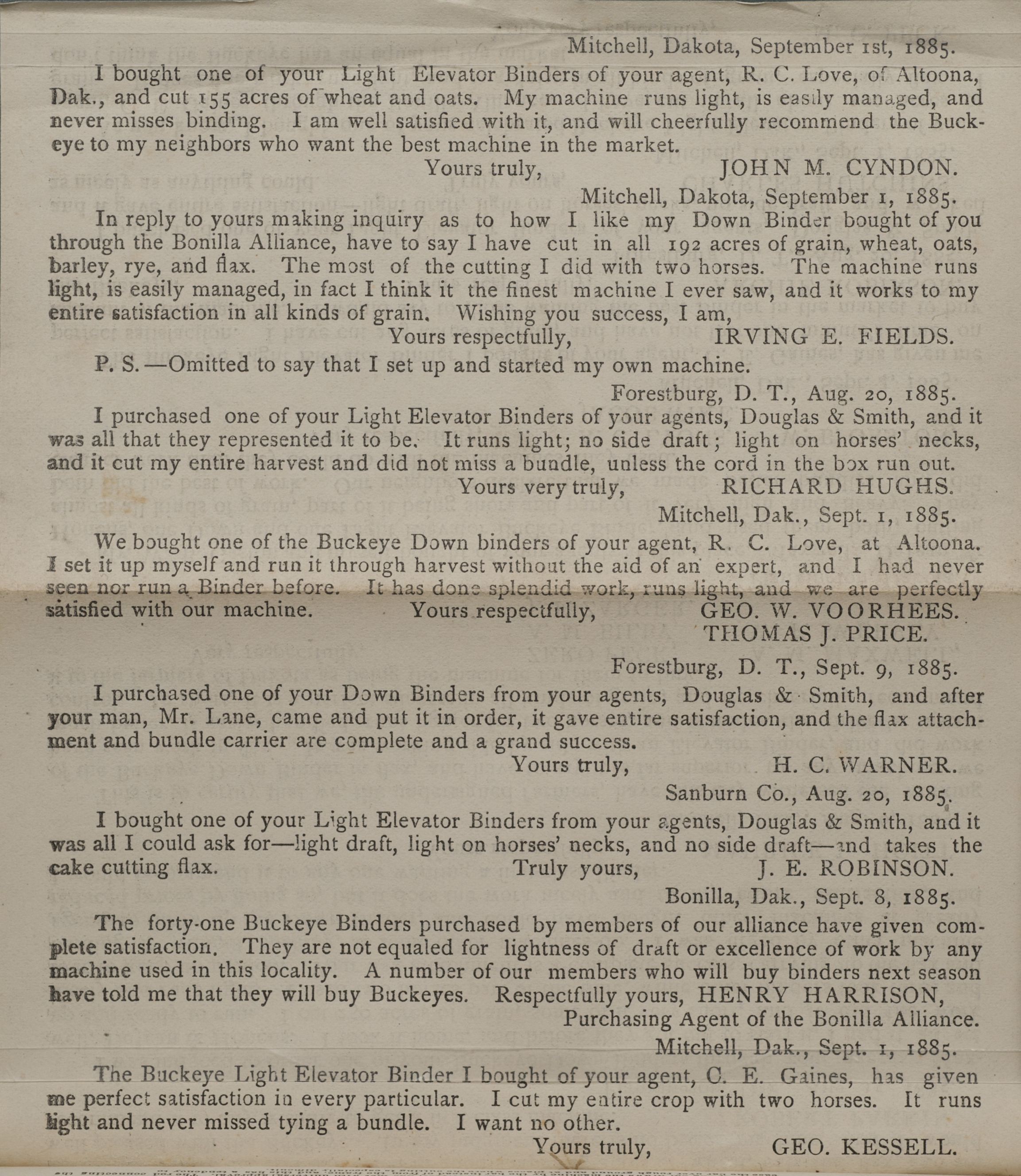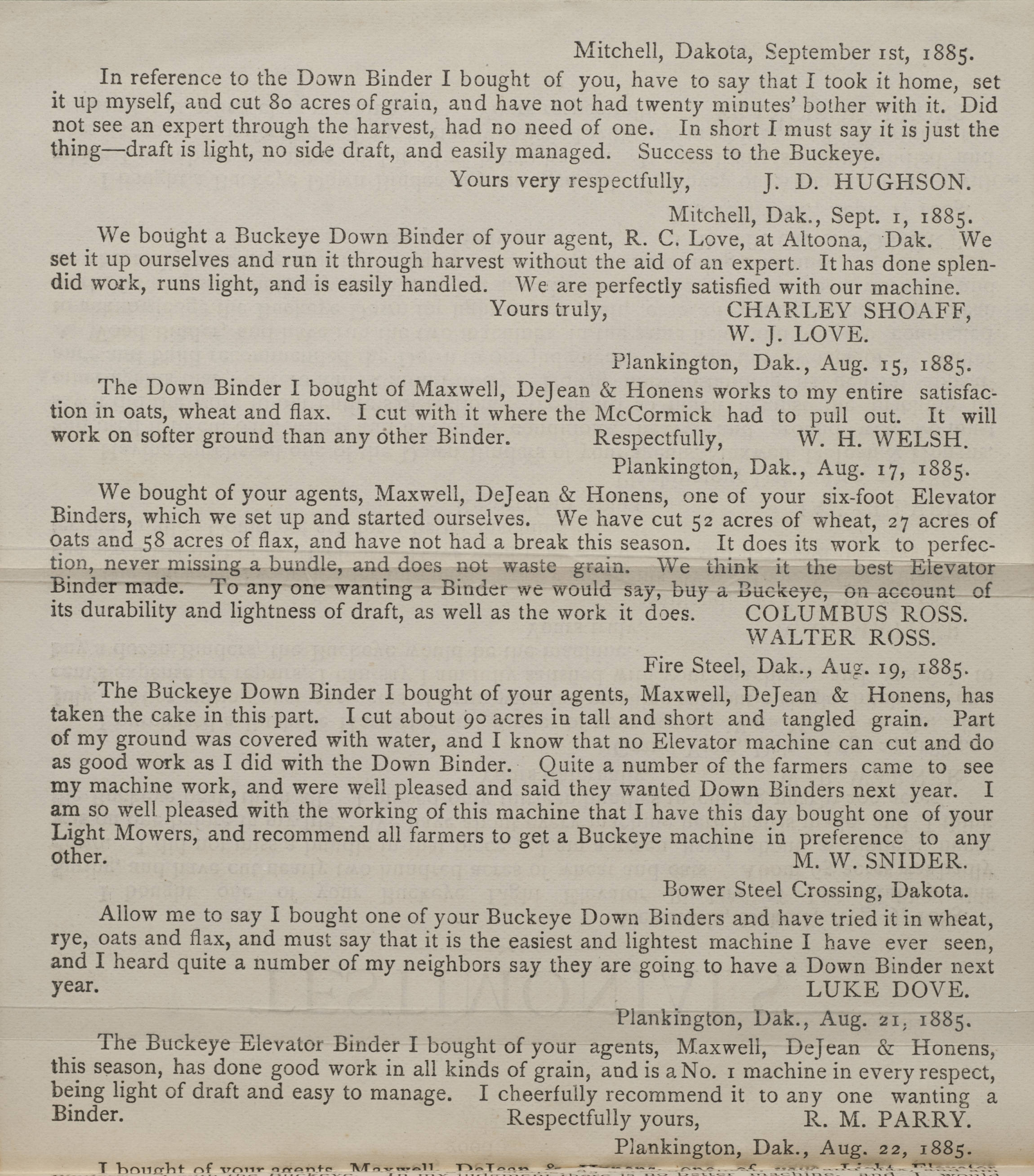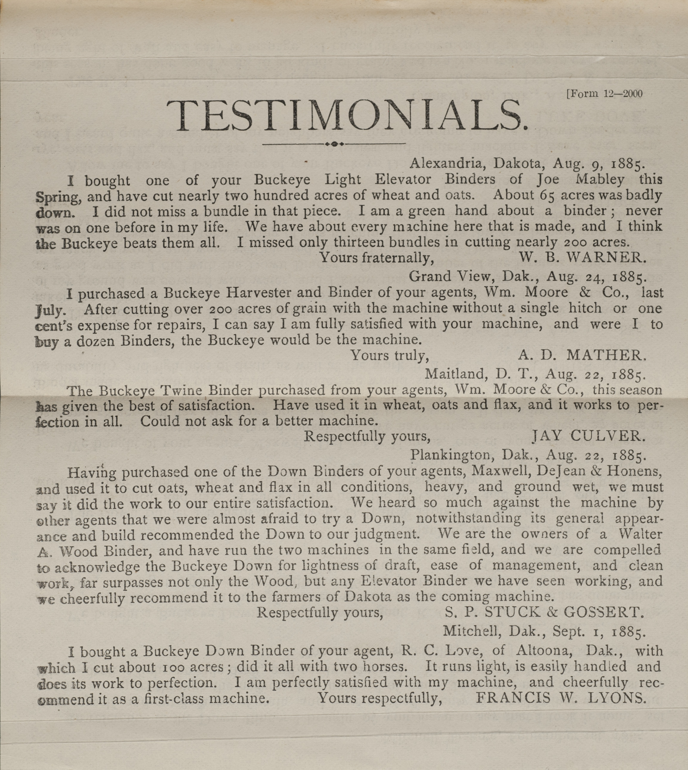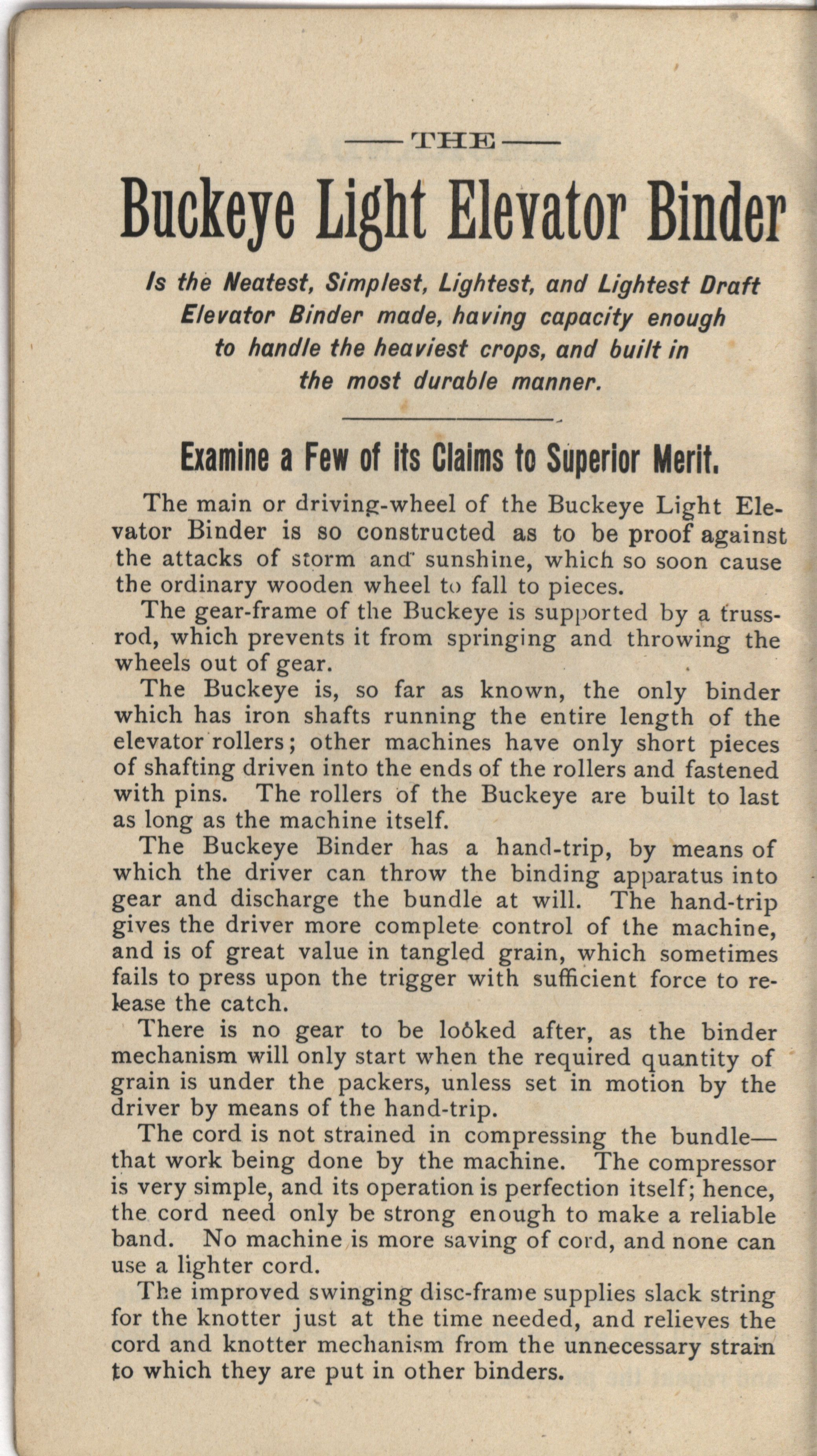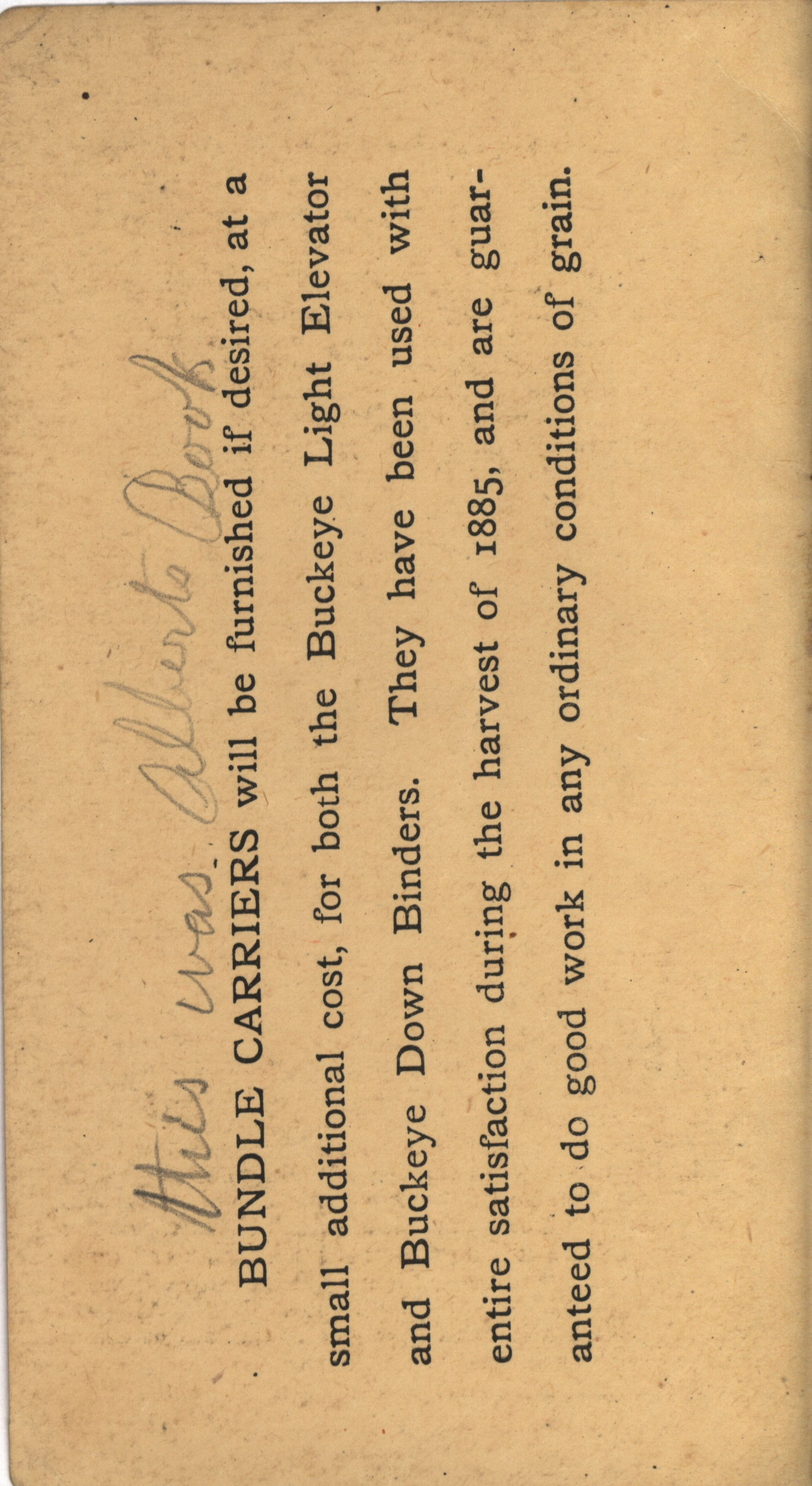 - "Aultman, Miller and Company Buckeye Down Binder catalog ;Text", Agricultural Machinery Literature Collection, Iowa State University Library Digital Collections
