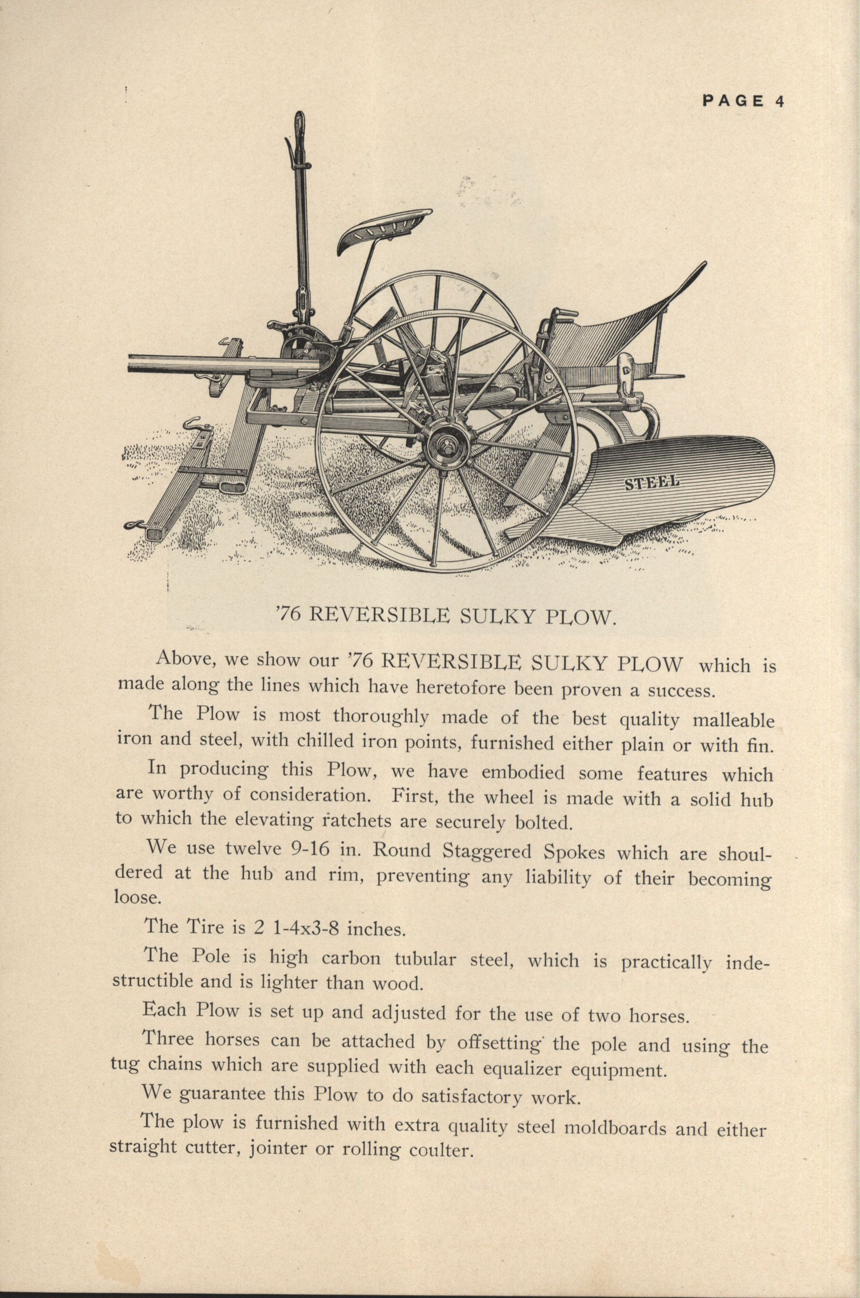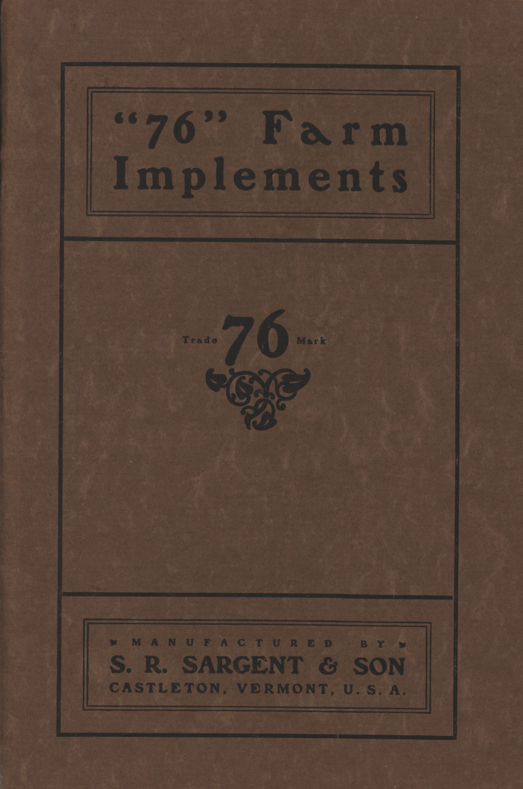 - Illustrated catalog describing the Trademark 76 Farm Implements line offered by S. R. Sargent and Son Manufacturer.