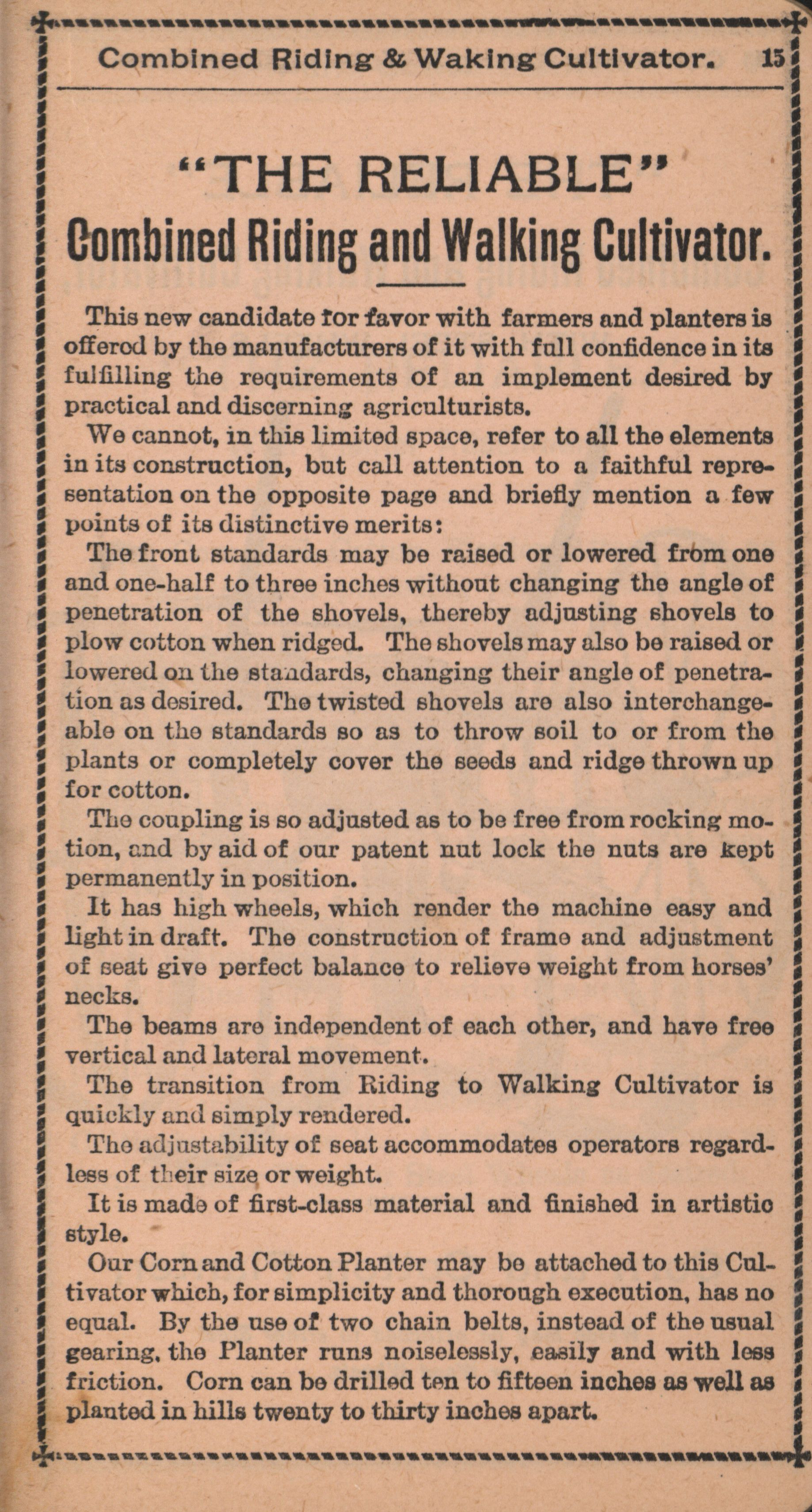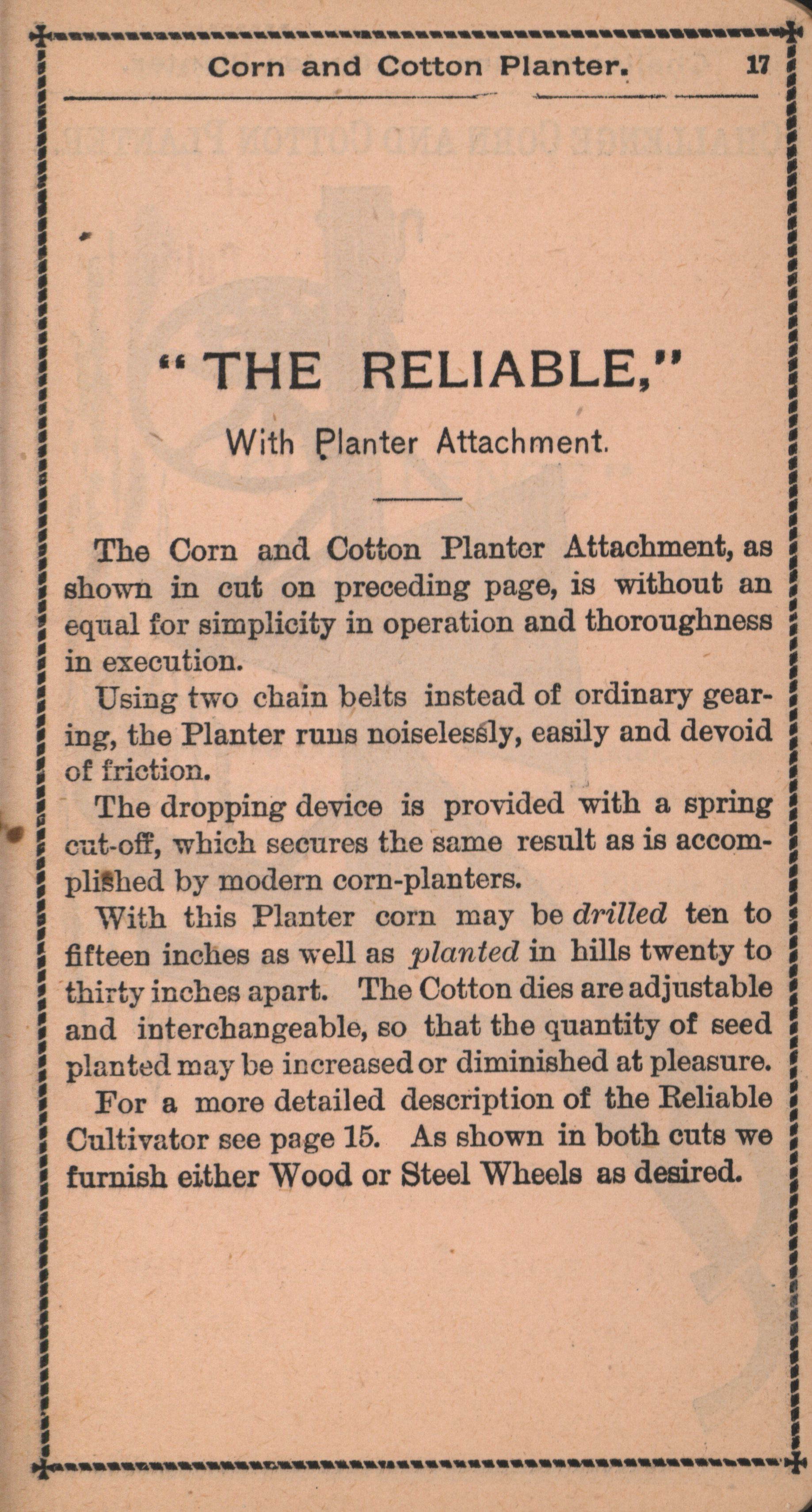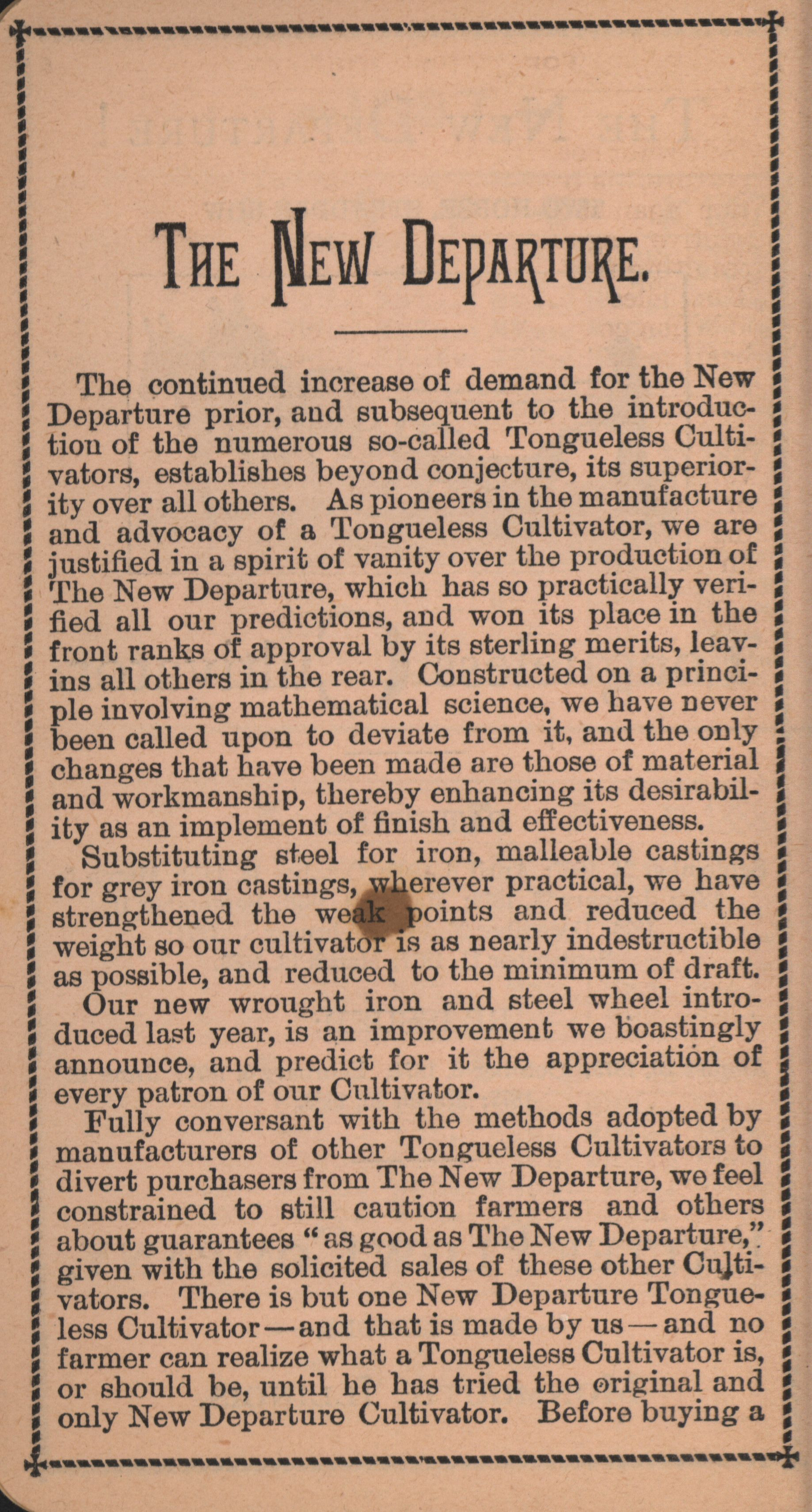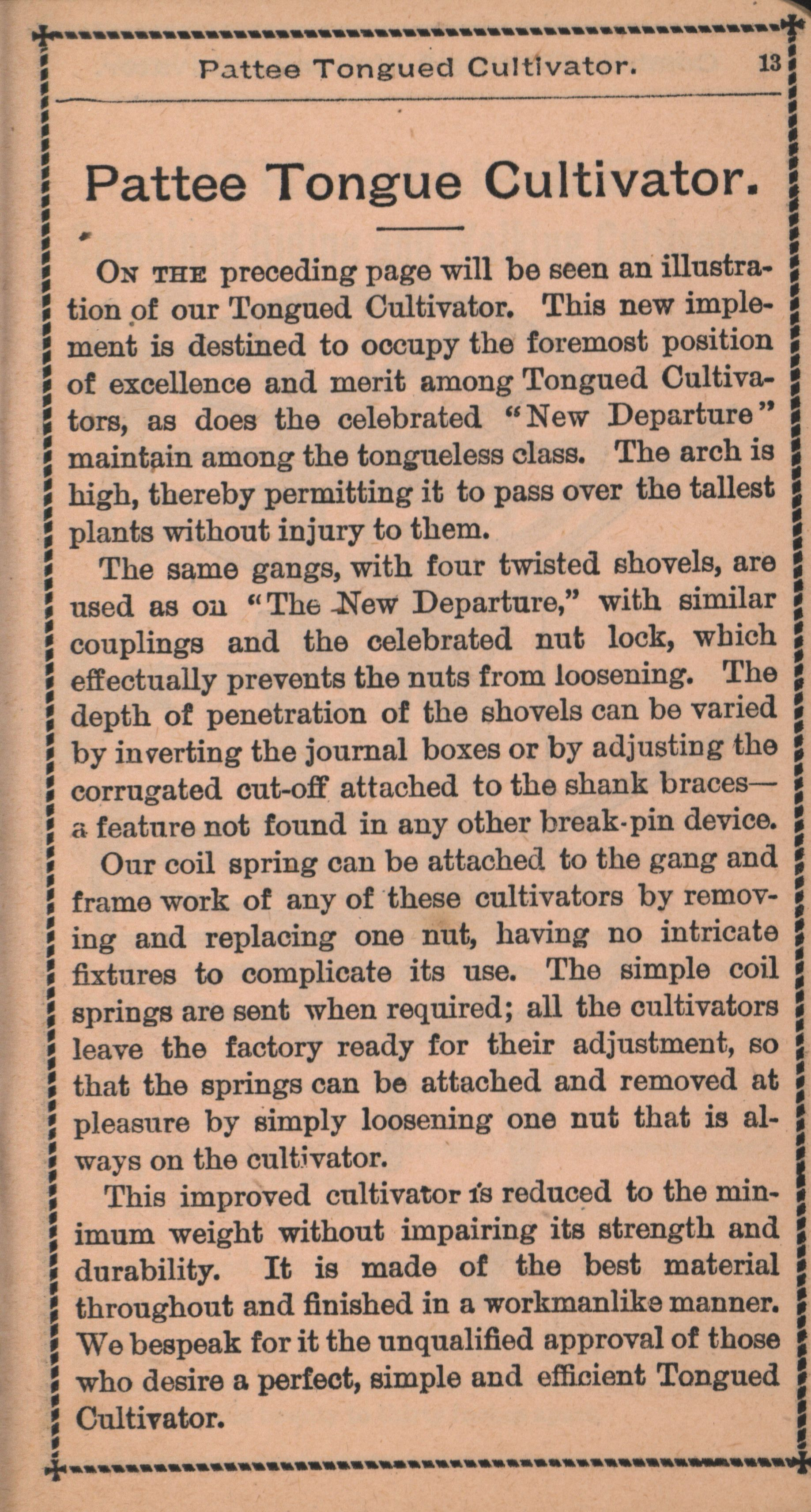 - Illustrated catalog describing the agricultural implements offered by Pattee Plow Company in 1888.