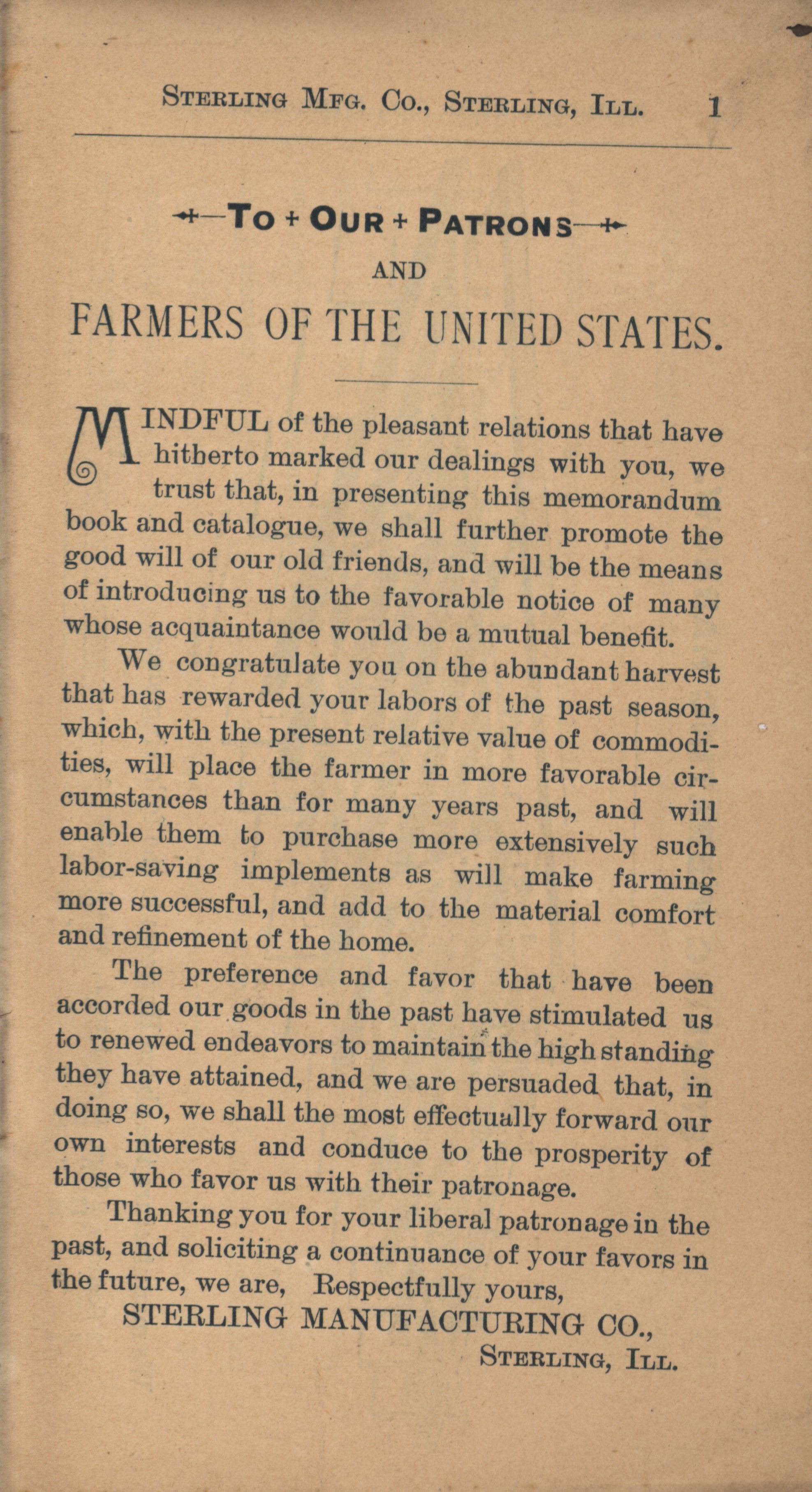 - "Sterling Manufacturing Company catalog", Agricultural Machinery Literature Collection, Iowa State University Library Digital Collections