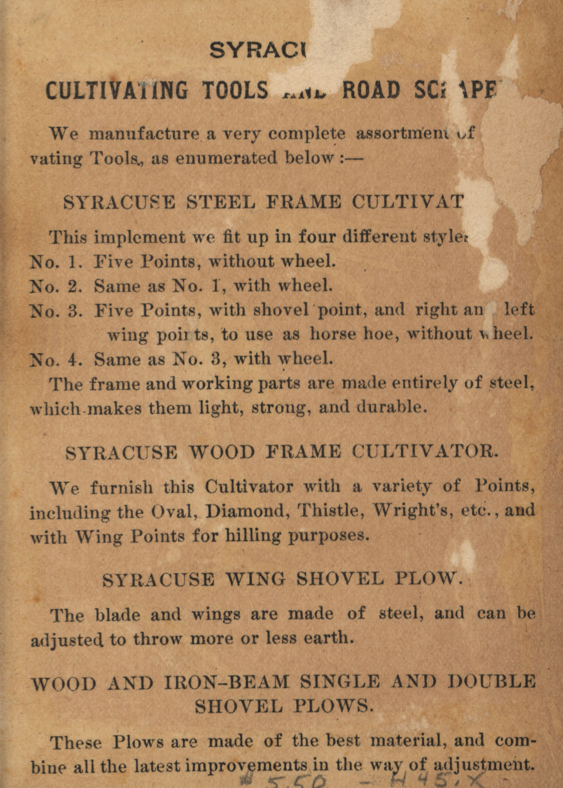 - "Illustrated advertisement card for the Syracuse Chilled Plow Company", Agricultural Machinery Literature Collection, Iowa State University Library Digital Collections
