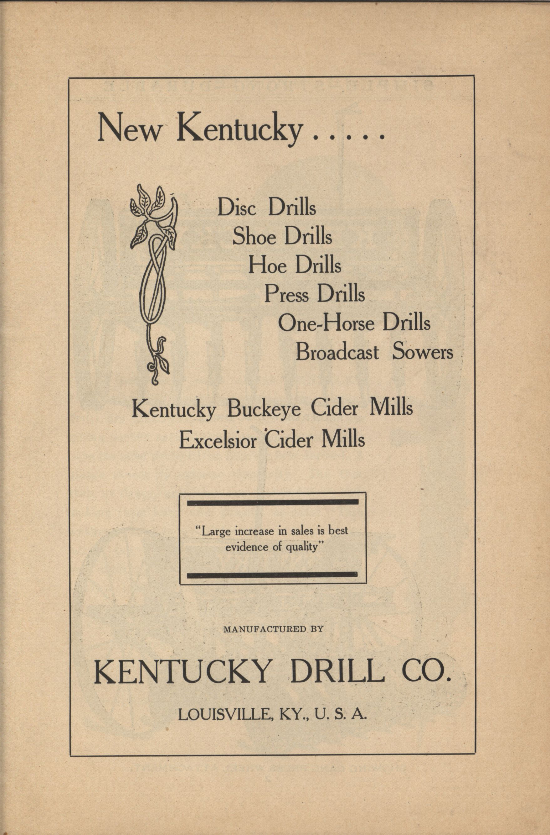 - Illustrated catalog advertising the products manufactured by the Kentucky Drill Company.