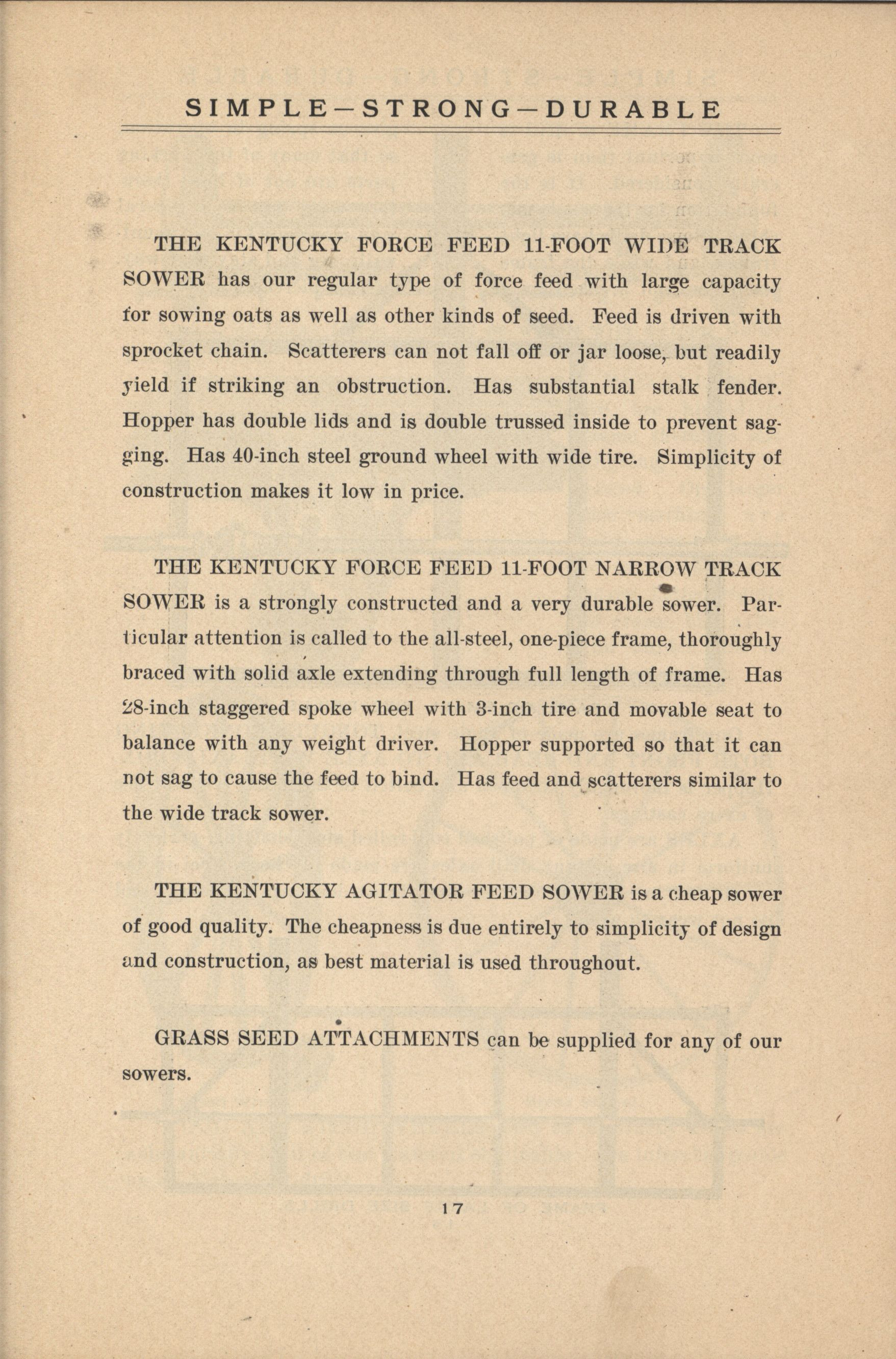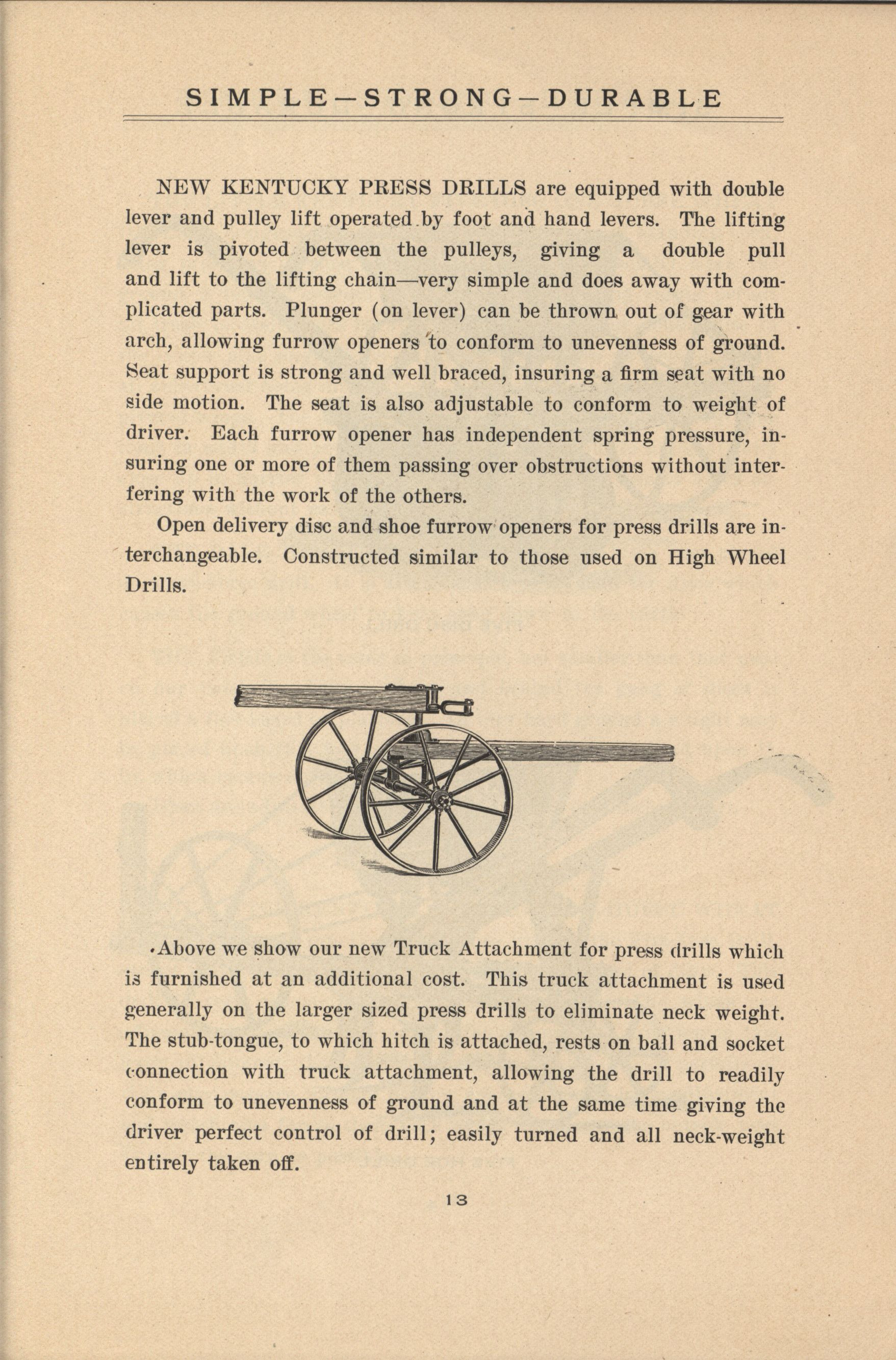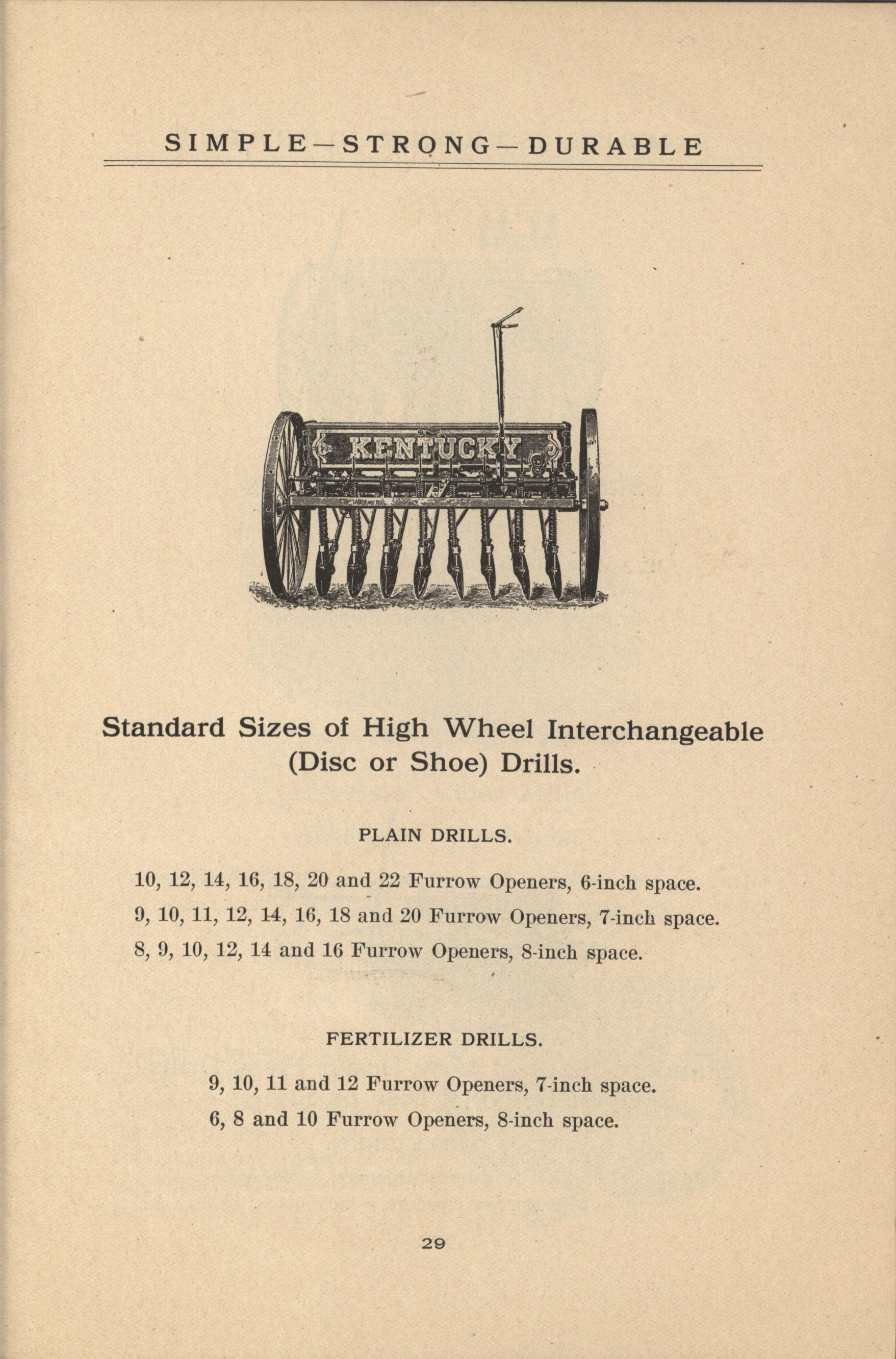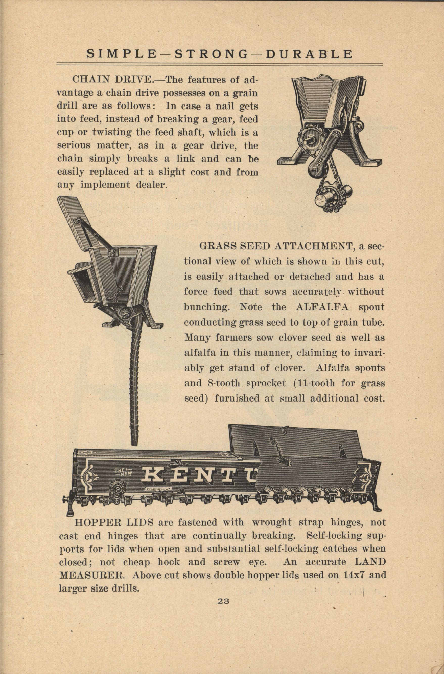 - "Kentucky Grain Drills catalog", Agricultural Machinery Literature Collection, Iowa State University Library Digital Collections