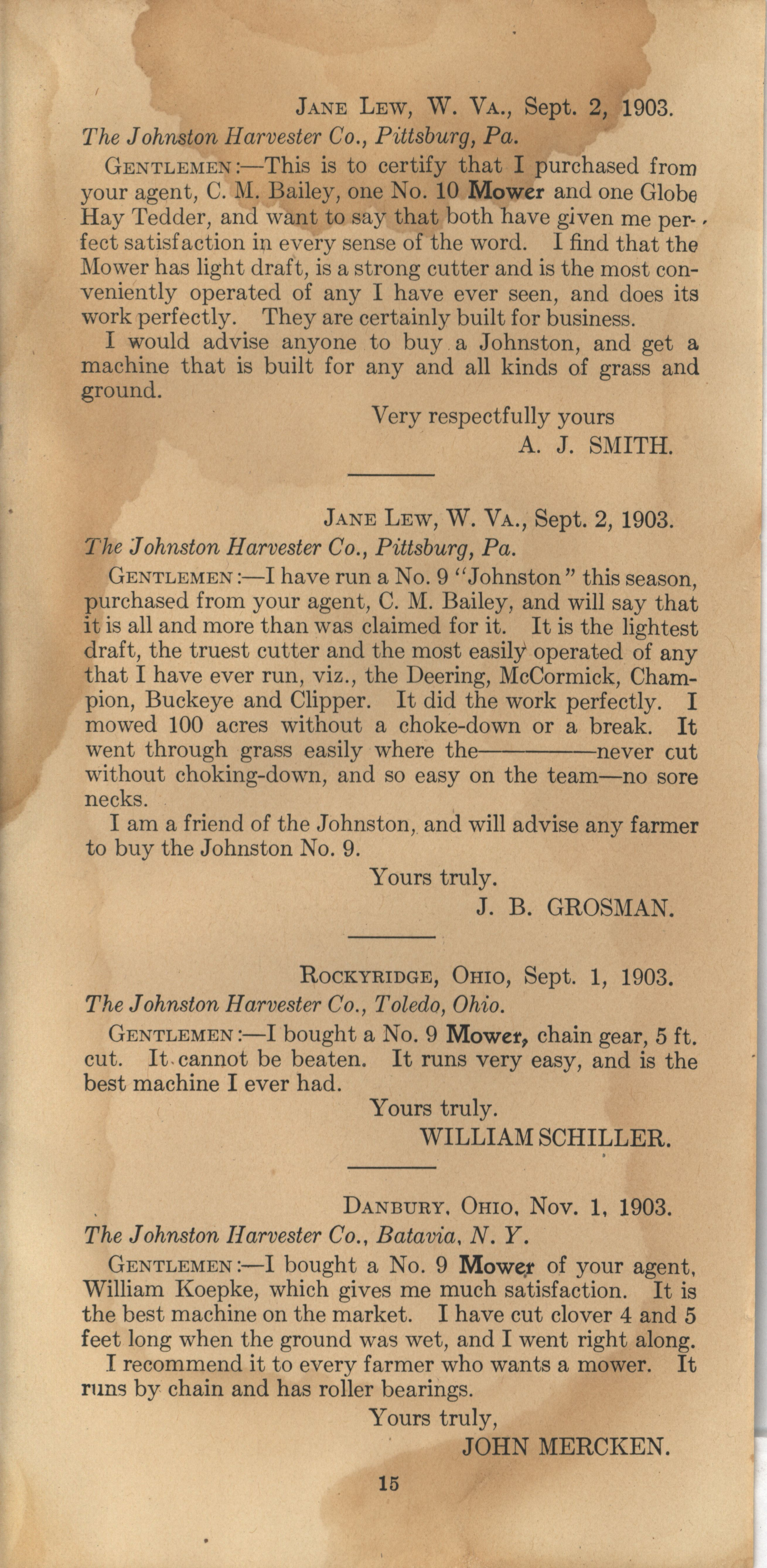 - "Johnston Mowers catalog", Agricultural Machinery Literature Collection, Iowa State University Library Digital Collections
