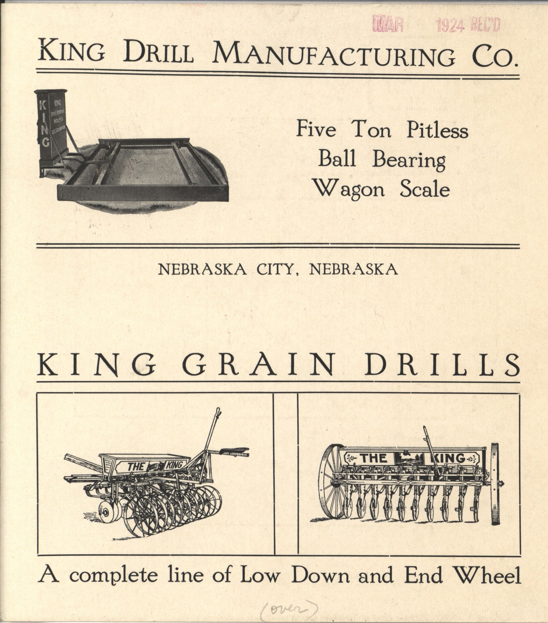- "King Drill Manufacturing Company advertisement card", Agricultural Machinery Literature Collection, Iowa State University Library Digital Collections