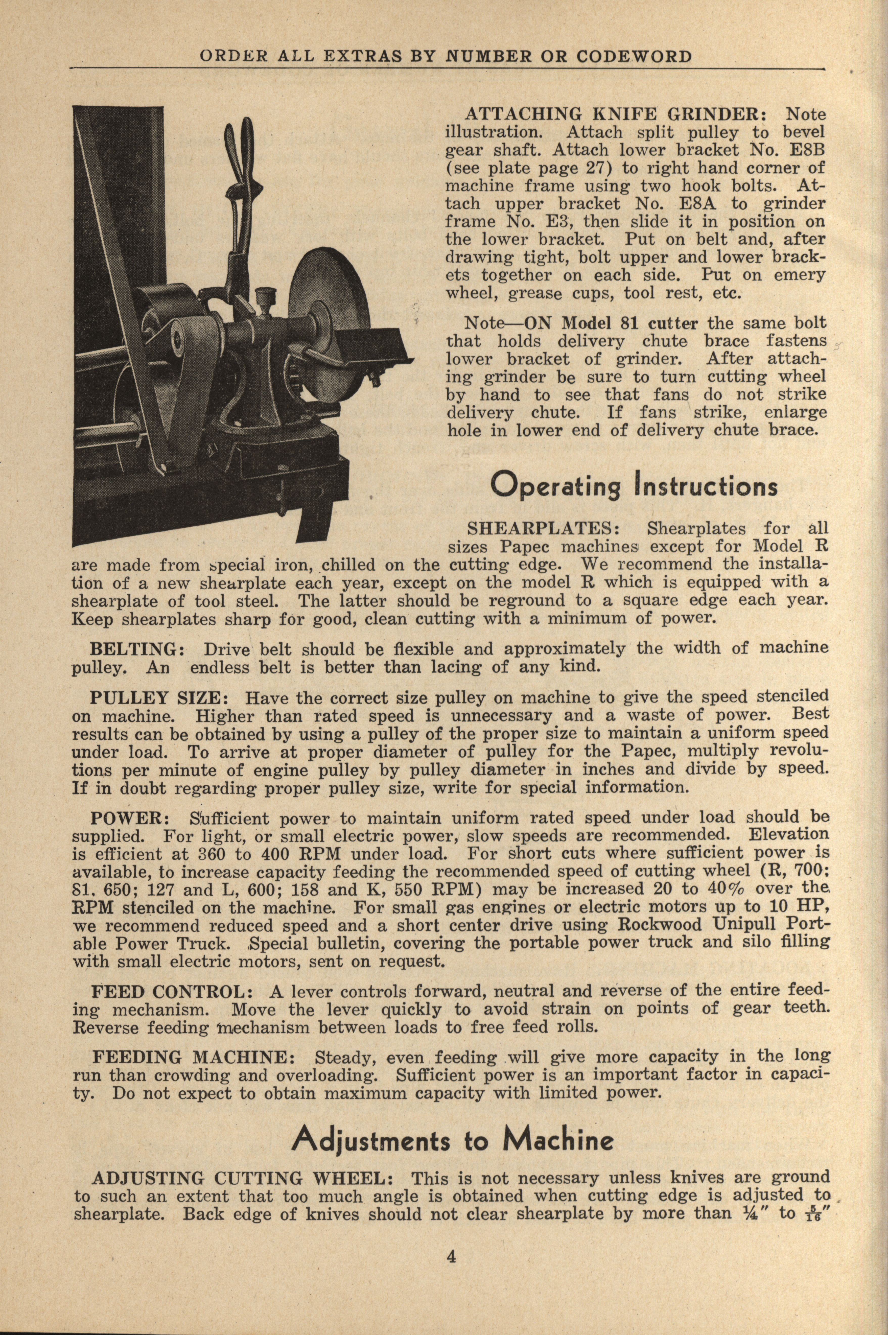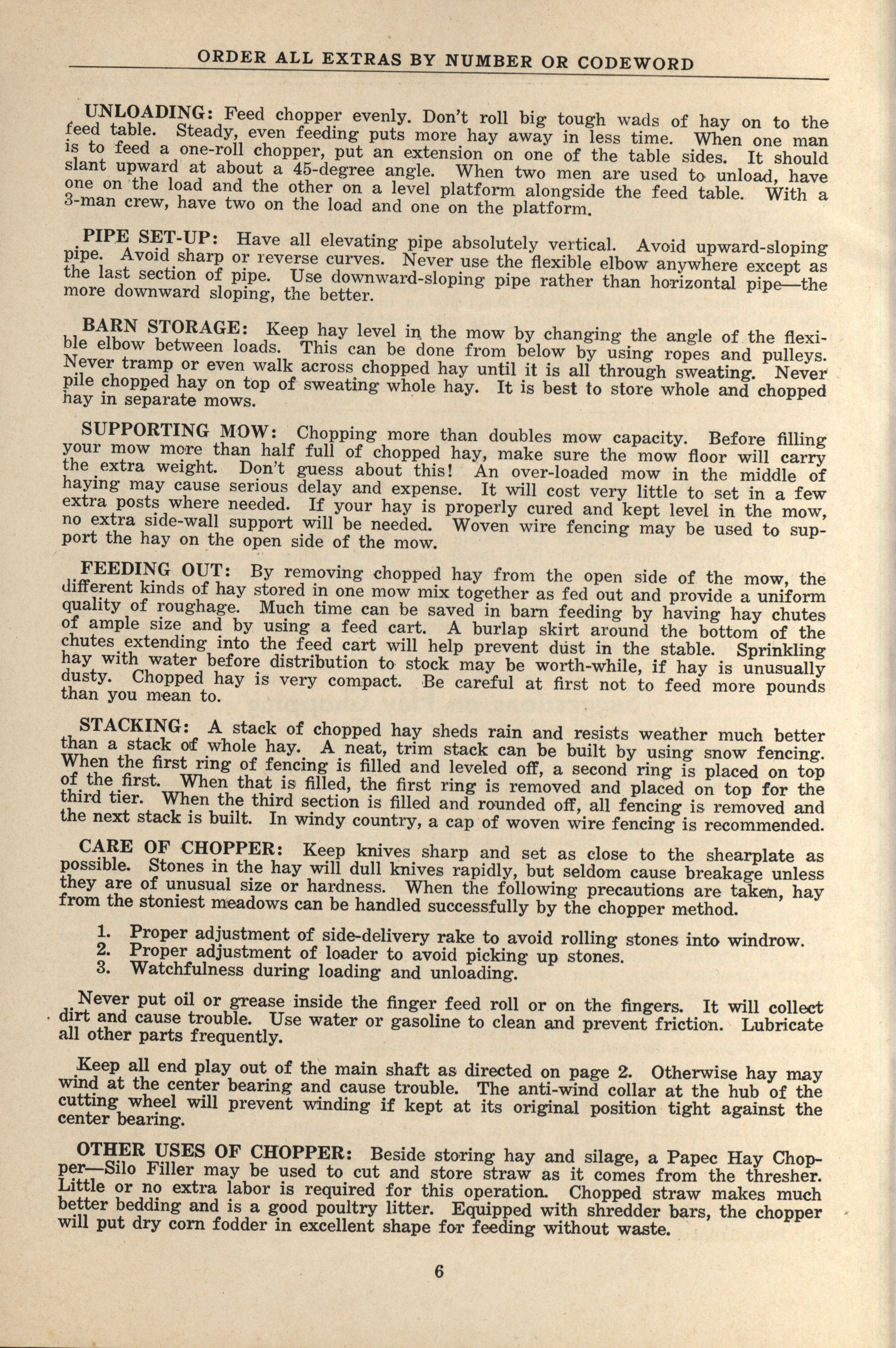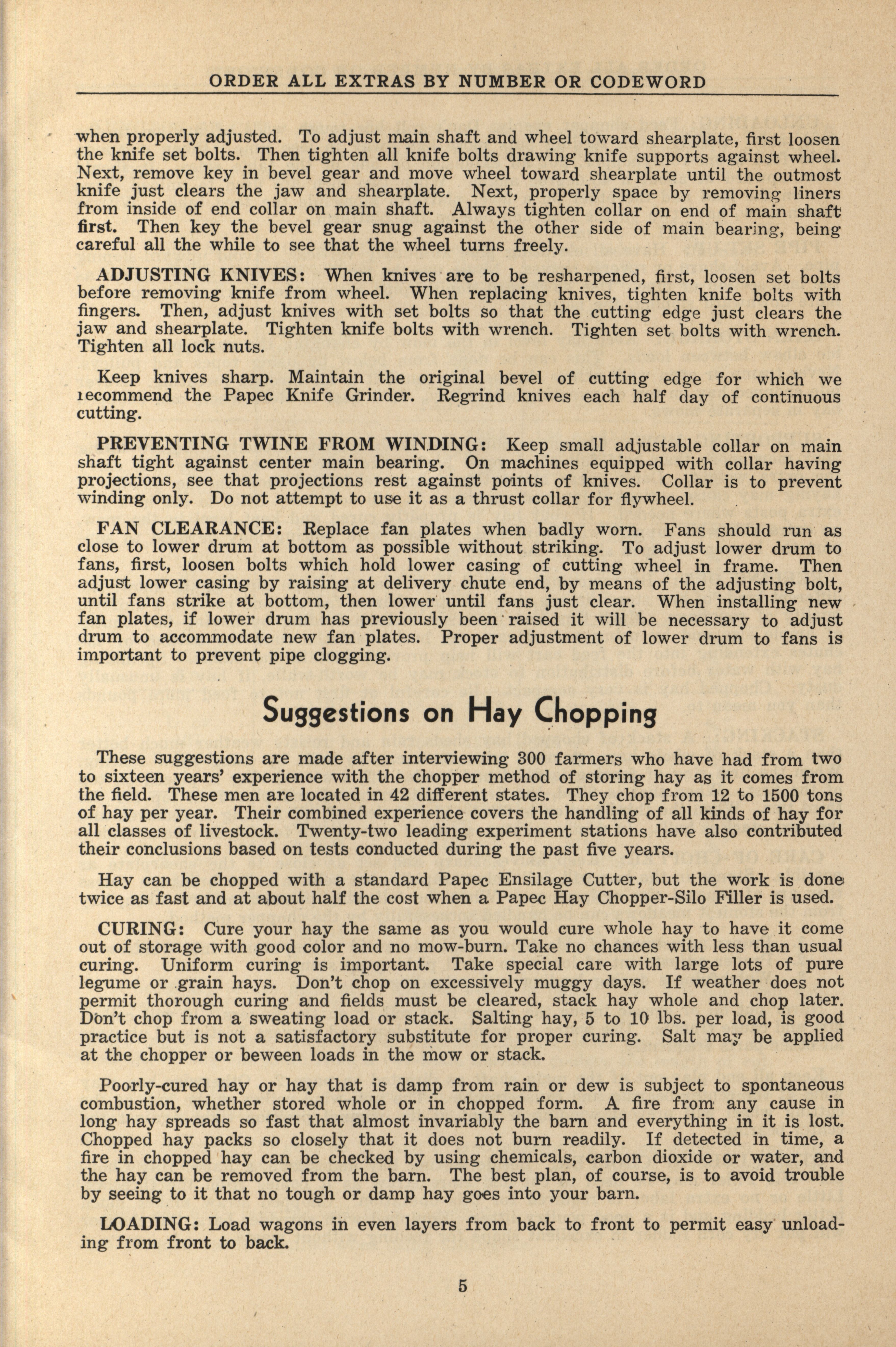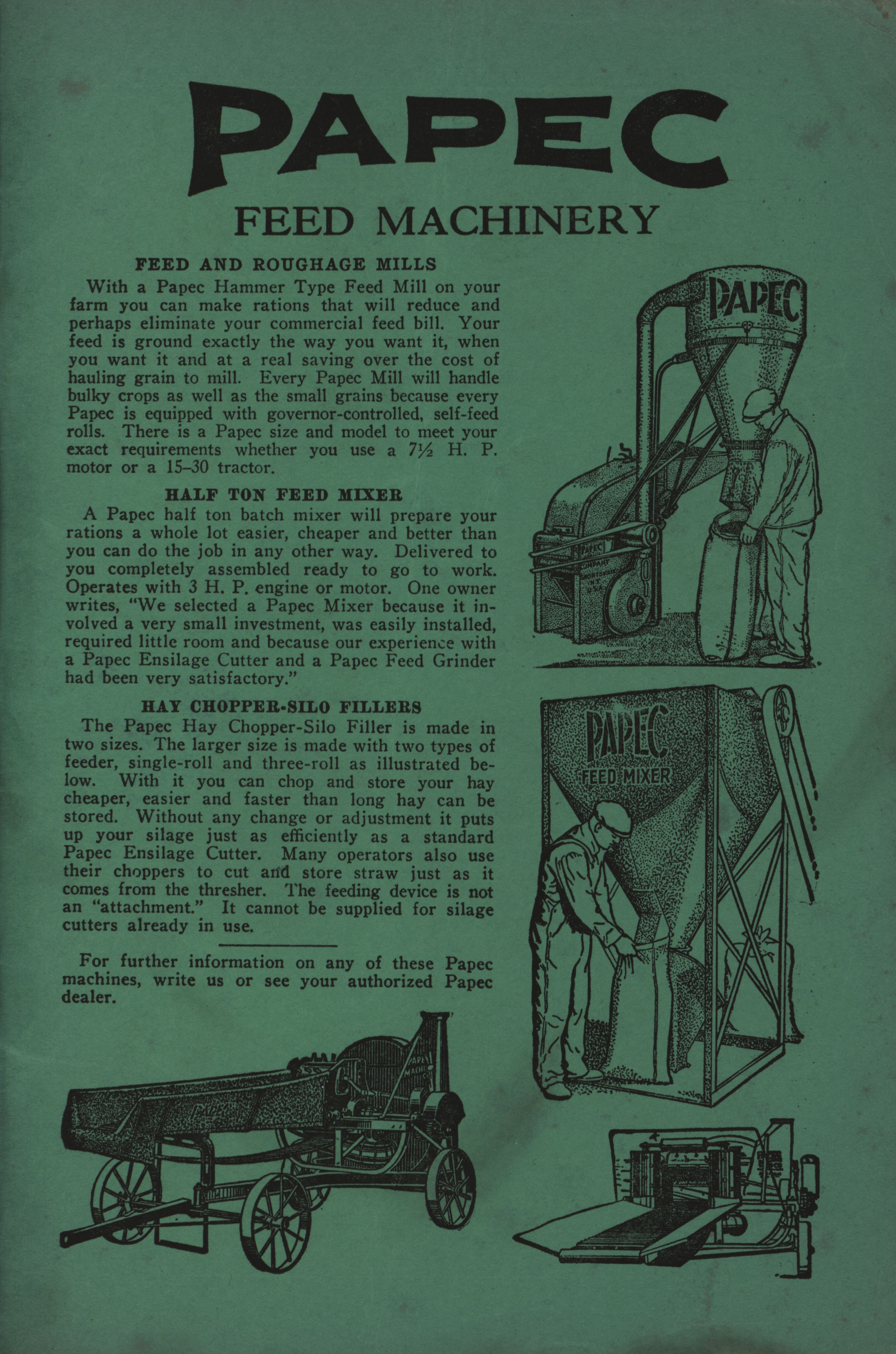 - "Operation manual for Papec Machine Company's ensilage cutters and hay choppers-silo fillers", Agricultural Machinery Literature Collection, Iowa State University Library Digital Collections