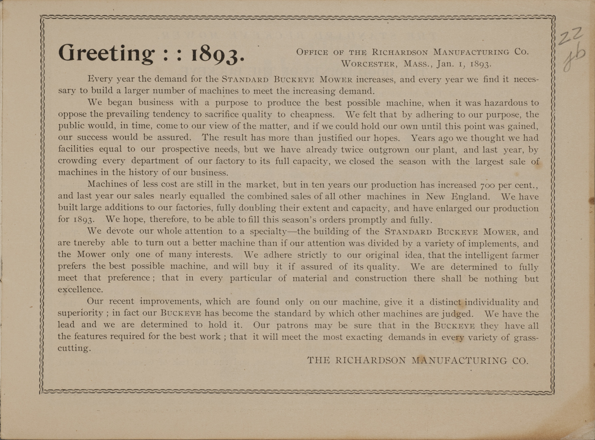 - Richardson Manufacturing Company 1893 Buckeye Mower catalog
