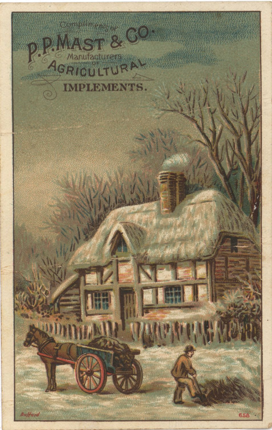 - Illustrated advertisement card for P. P. Mast and Company.