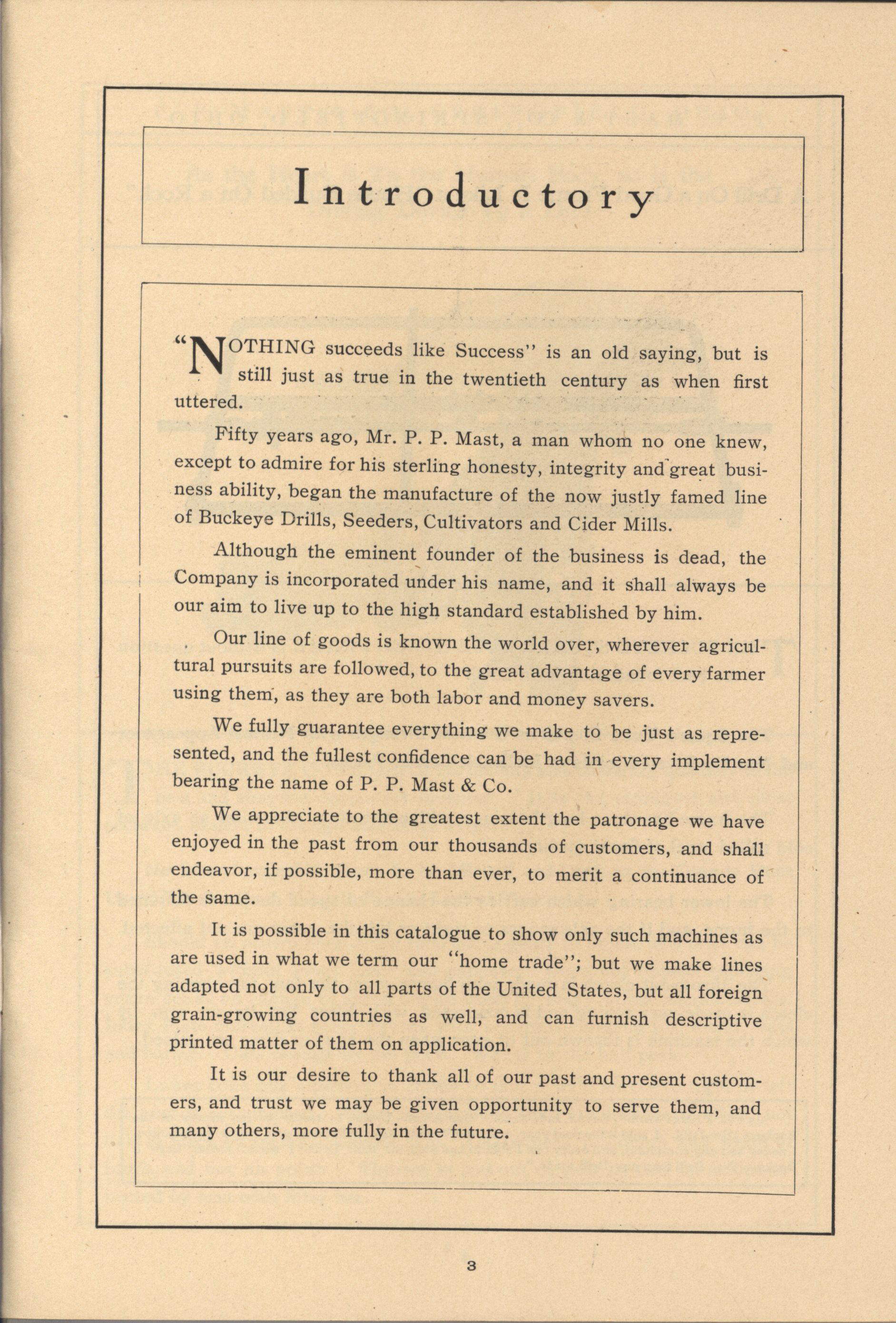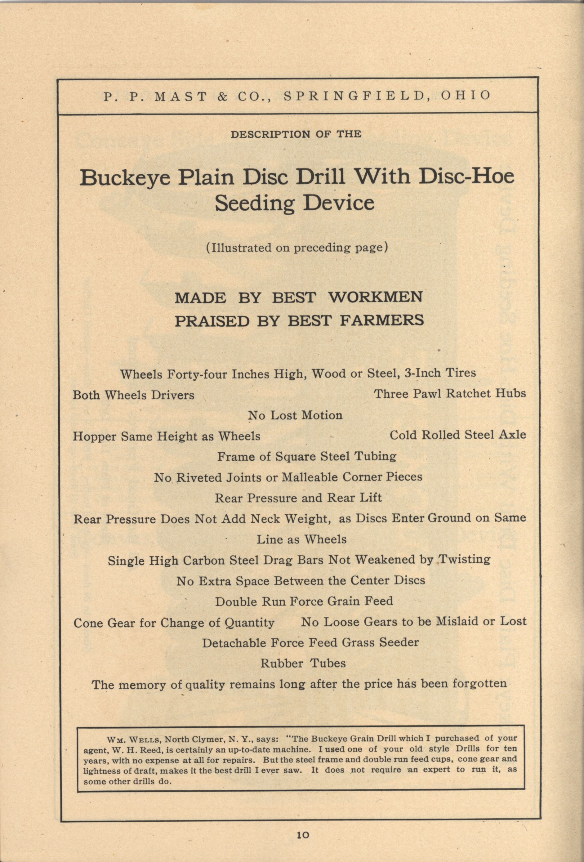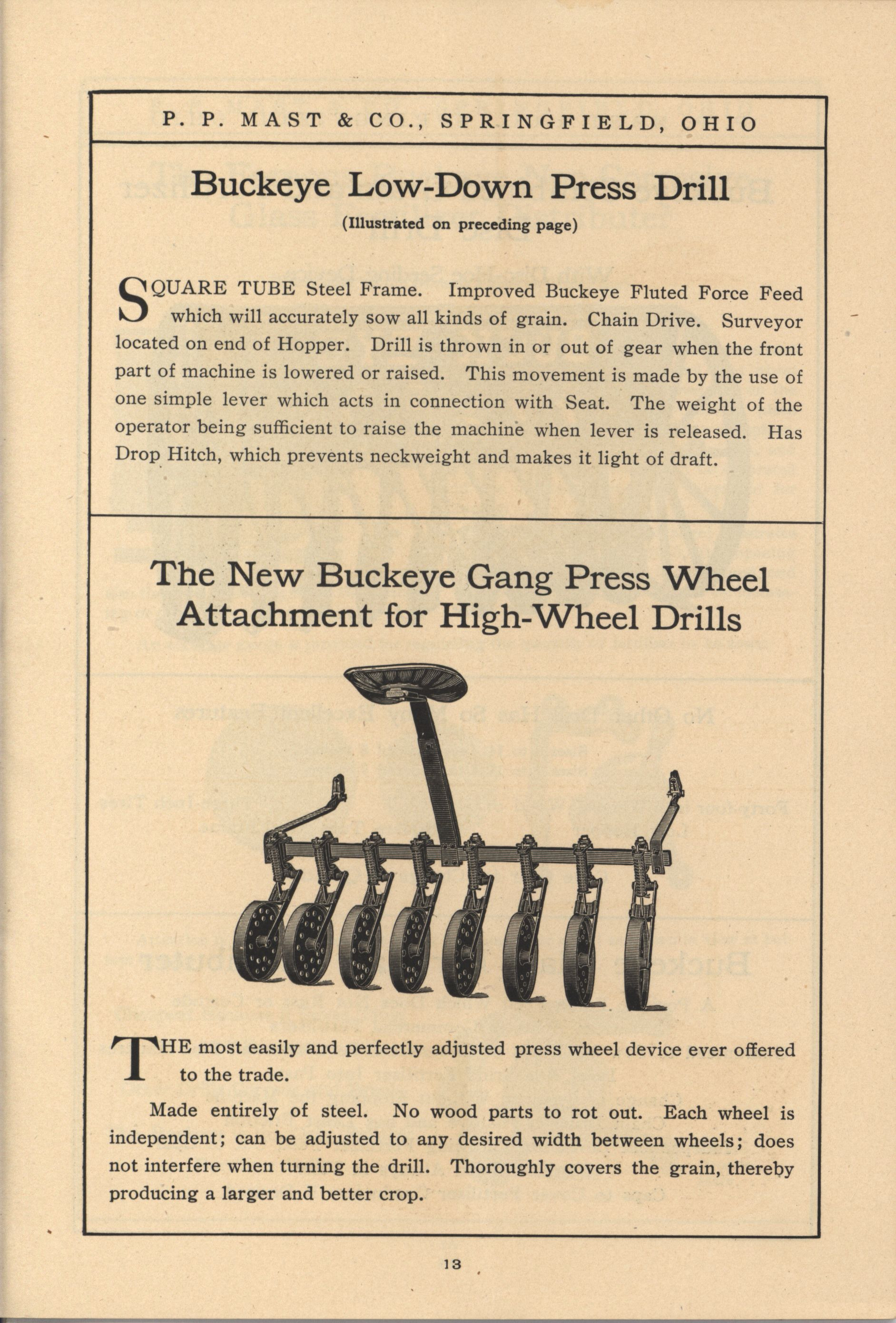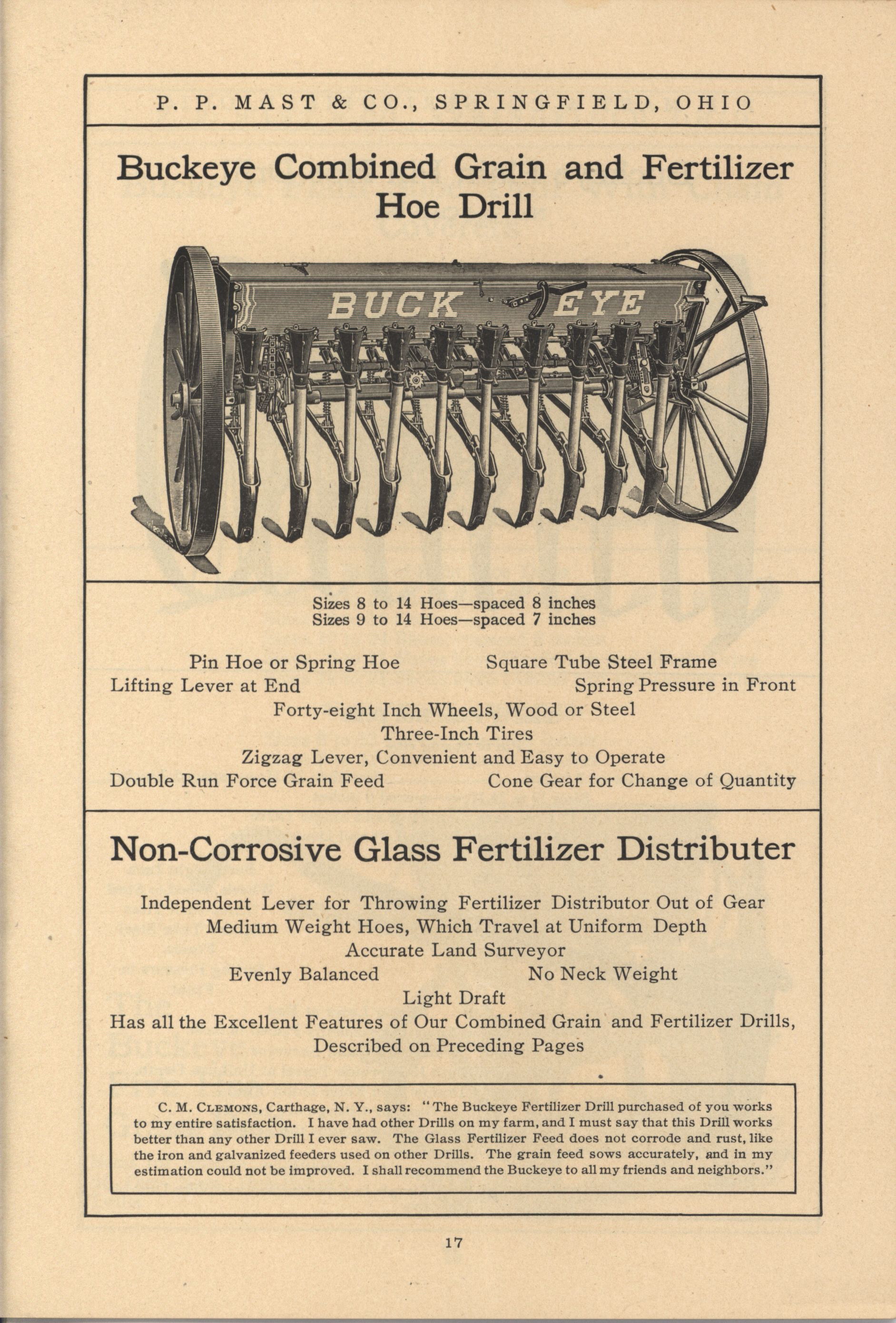 - "P. P. Mast and Company 1906 Buckeye Grain Drills and Cultivators catalog", Agricultural Machinery Literature Collection, Iowa State University Library Digital Collections