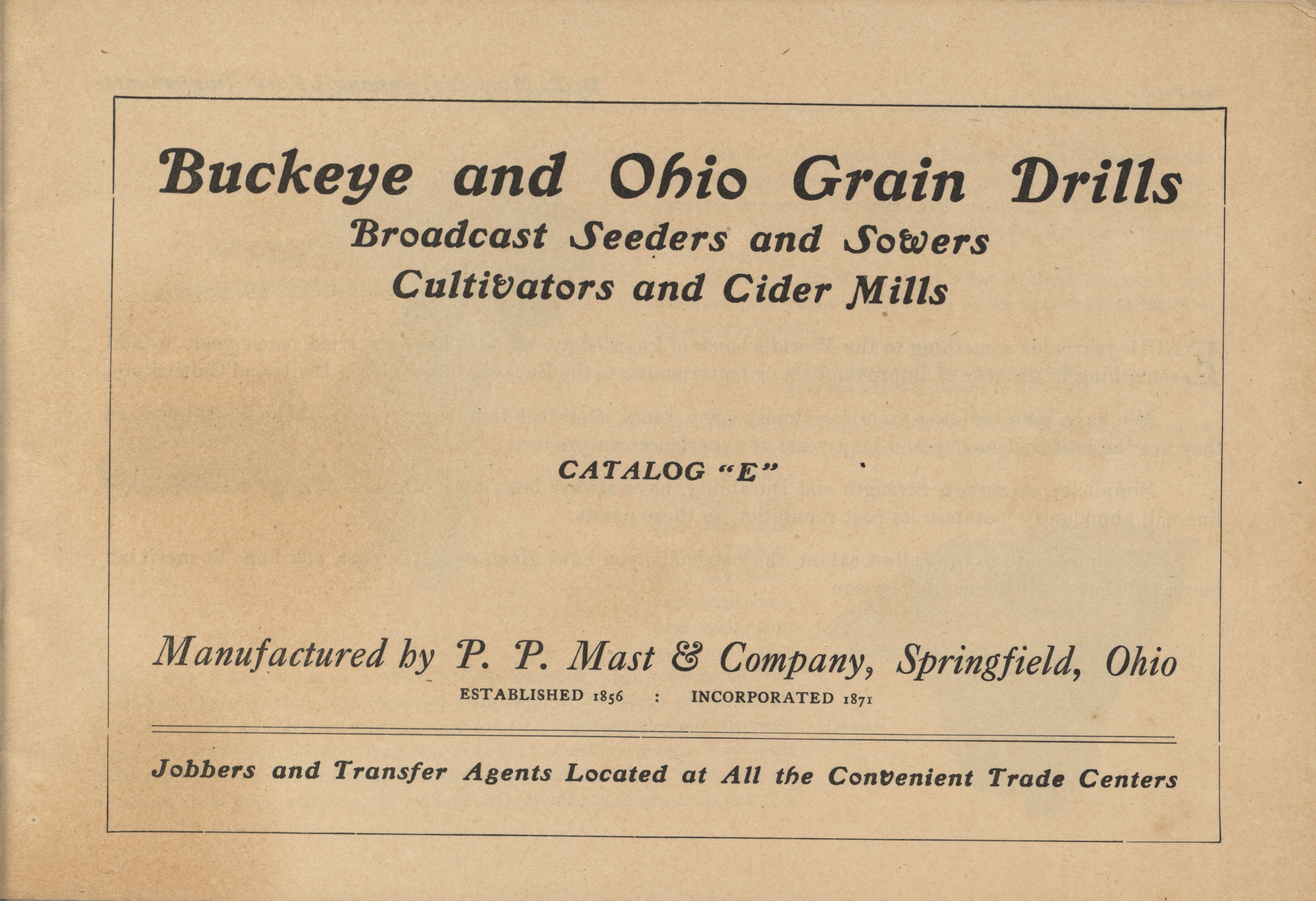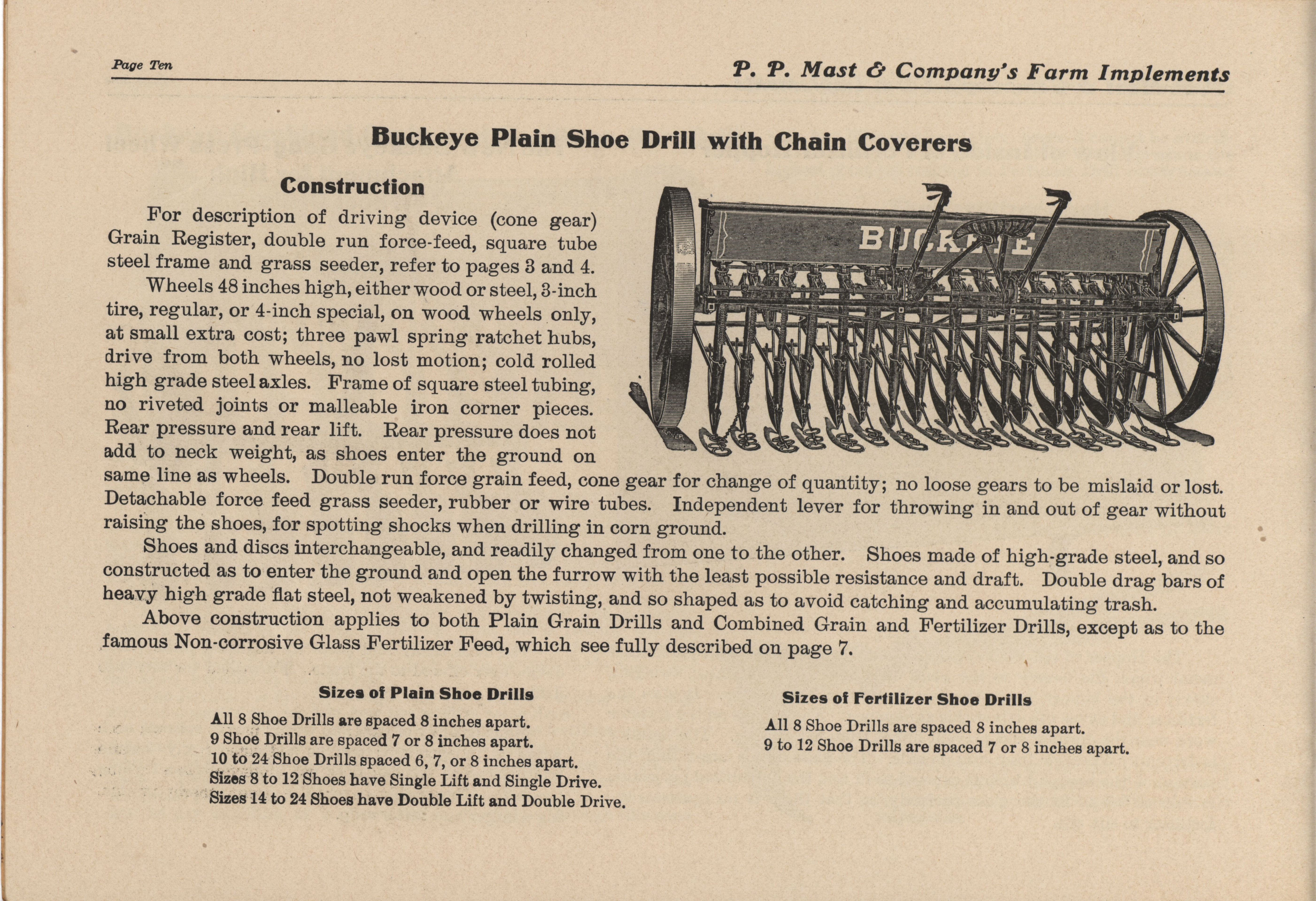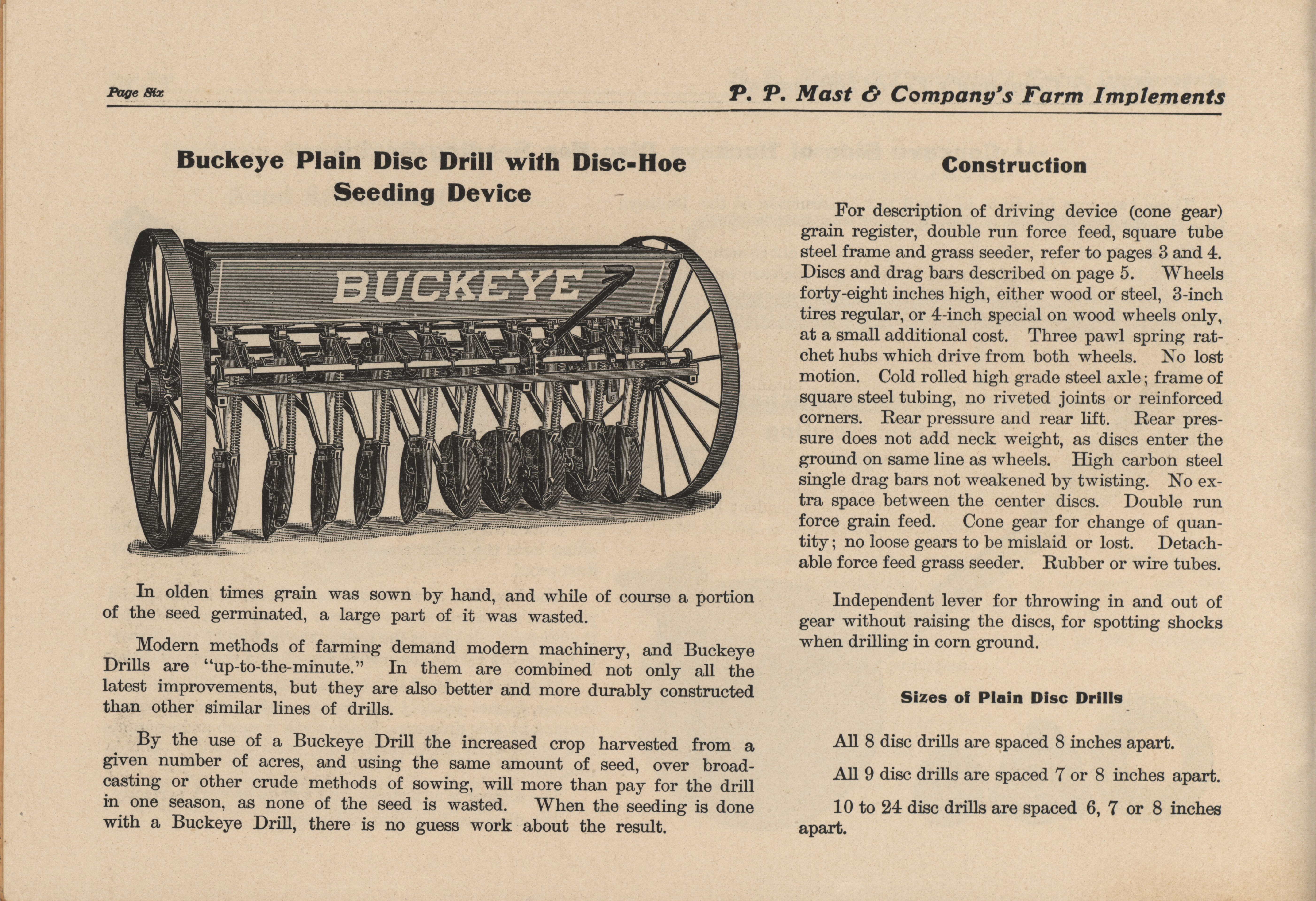 - "P. P. Mast and Company 1908 Buckeye Grain Drills and Cultivators catalog", Agricultural Machinery Literature Collection, Iowa State University Library Digital Collections