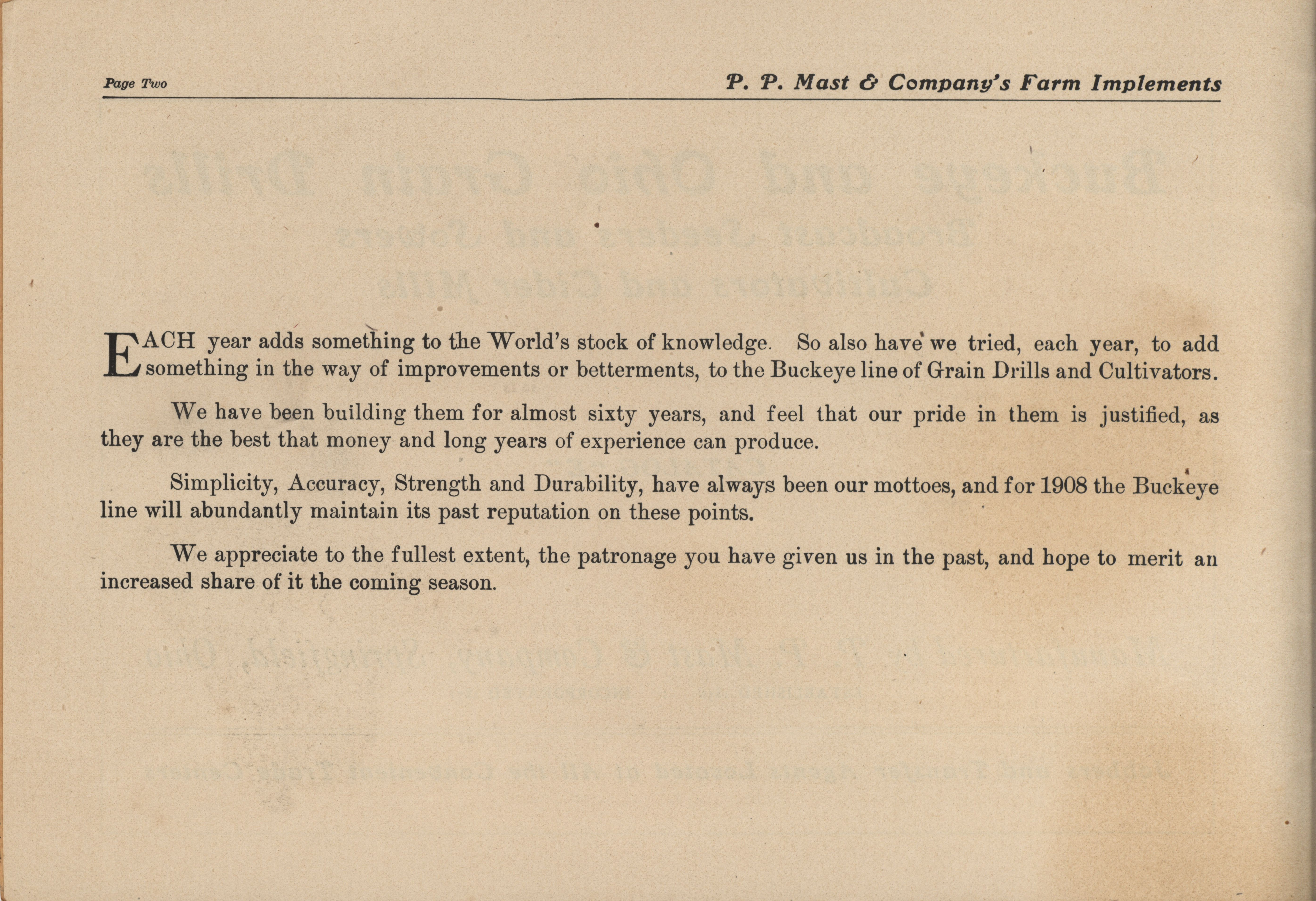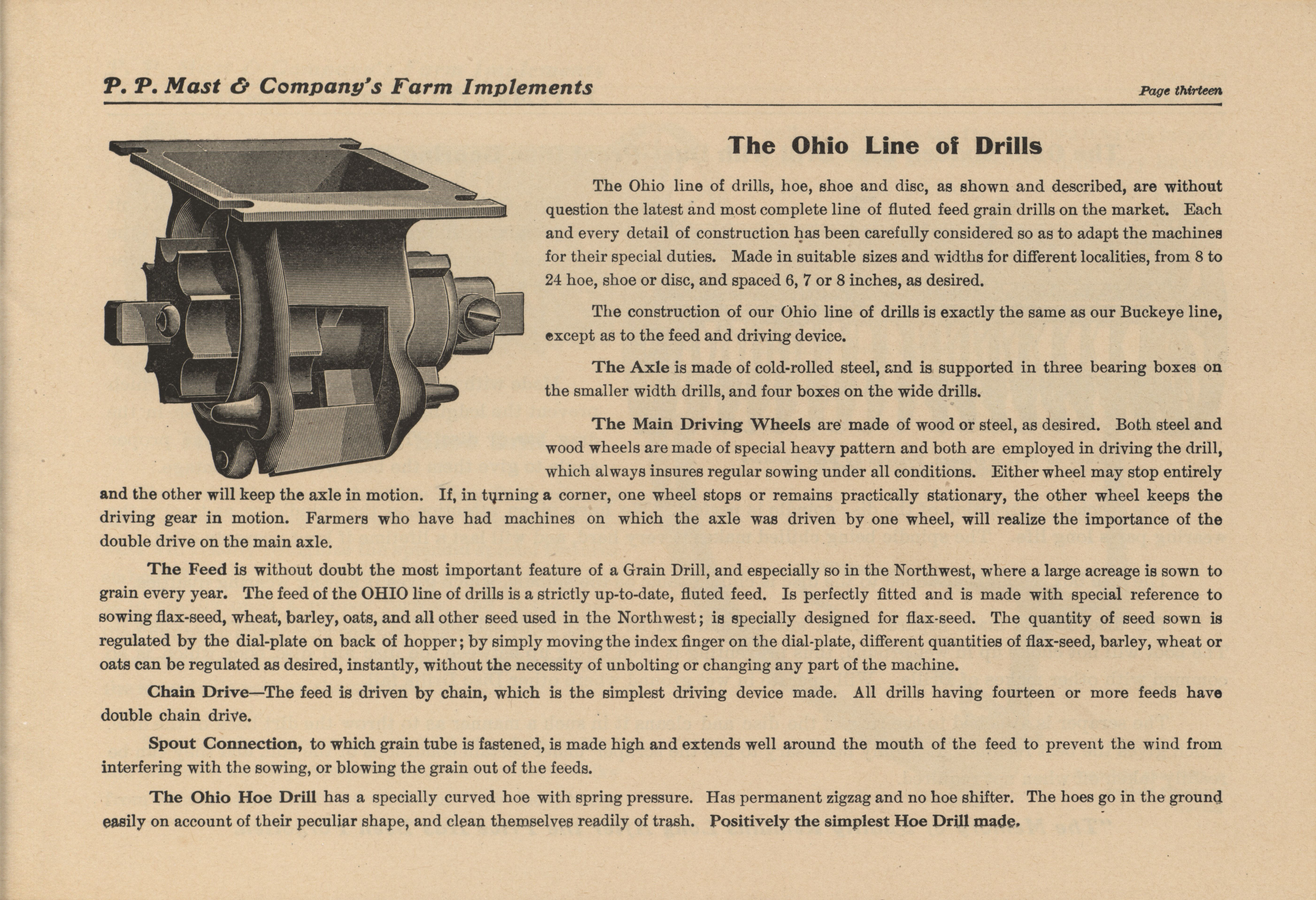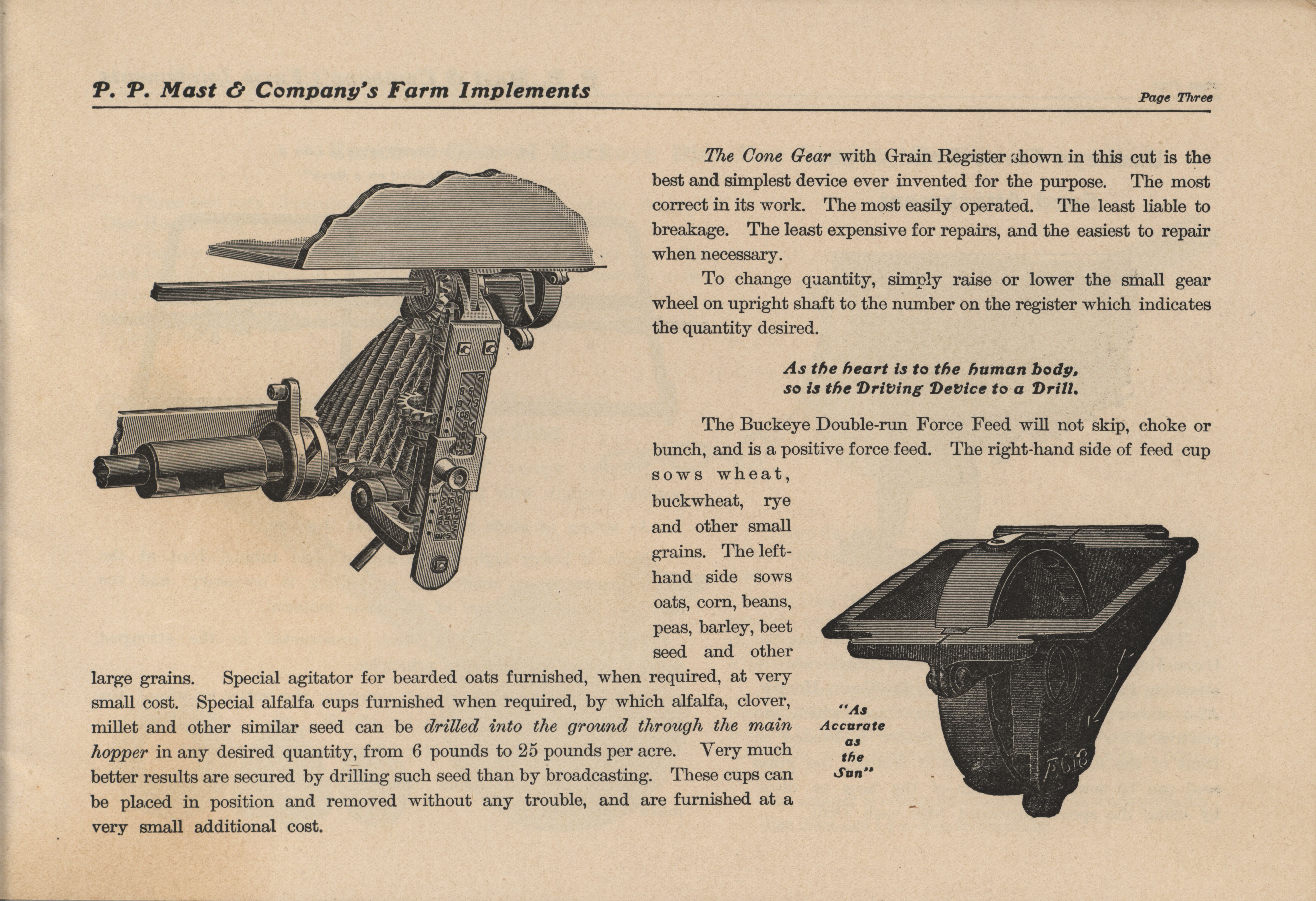 - "P. P. Mast and Company 1908 Buckeye Grain Drills and Cultivators catalog", Agricultural Machinery Literature Collection, Iowa State University Library Digital Collections