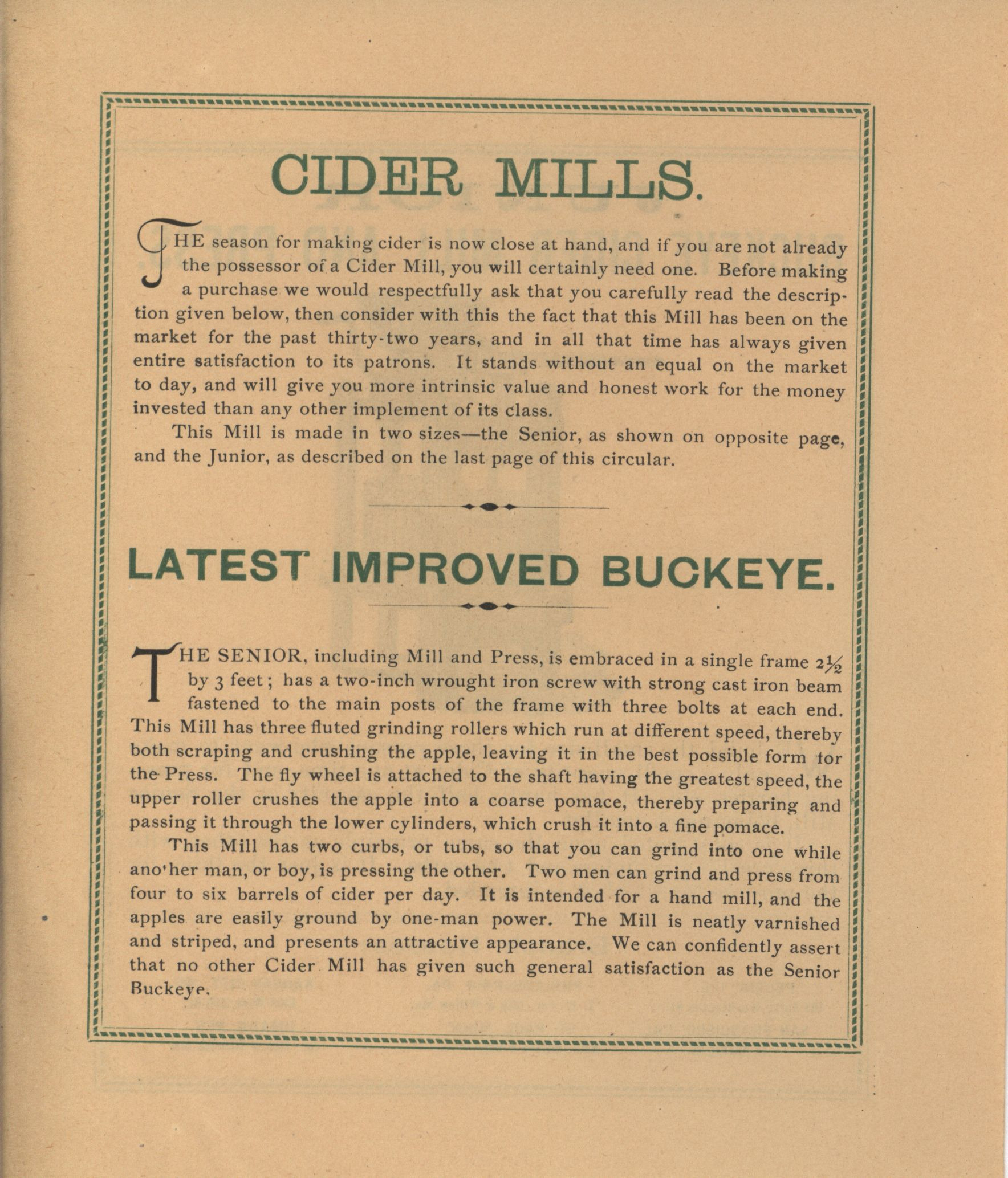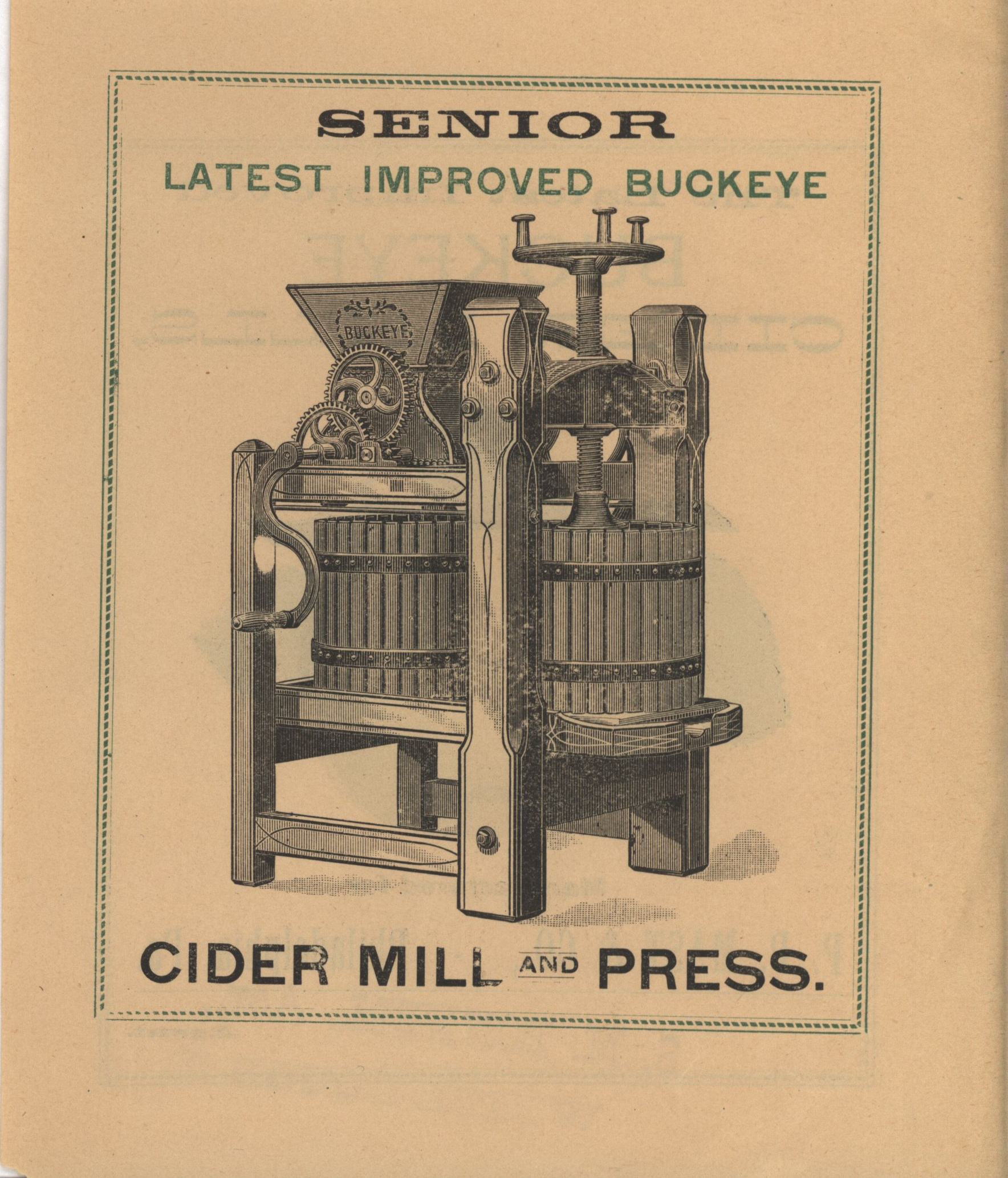 - Illustrated catalog describing the Buckeye cider mills offered by P. P. Mast and Company.