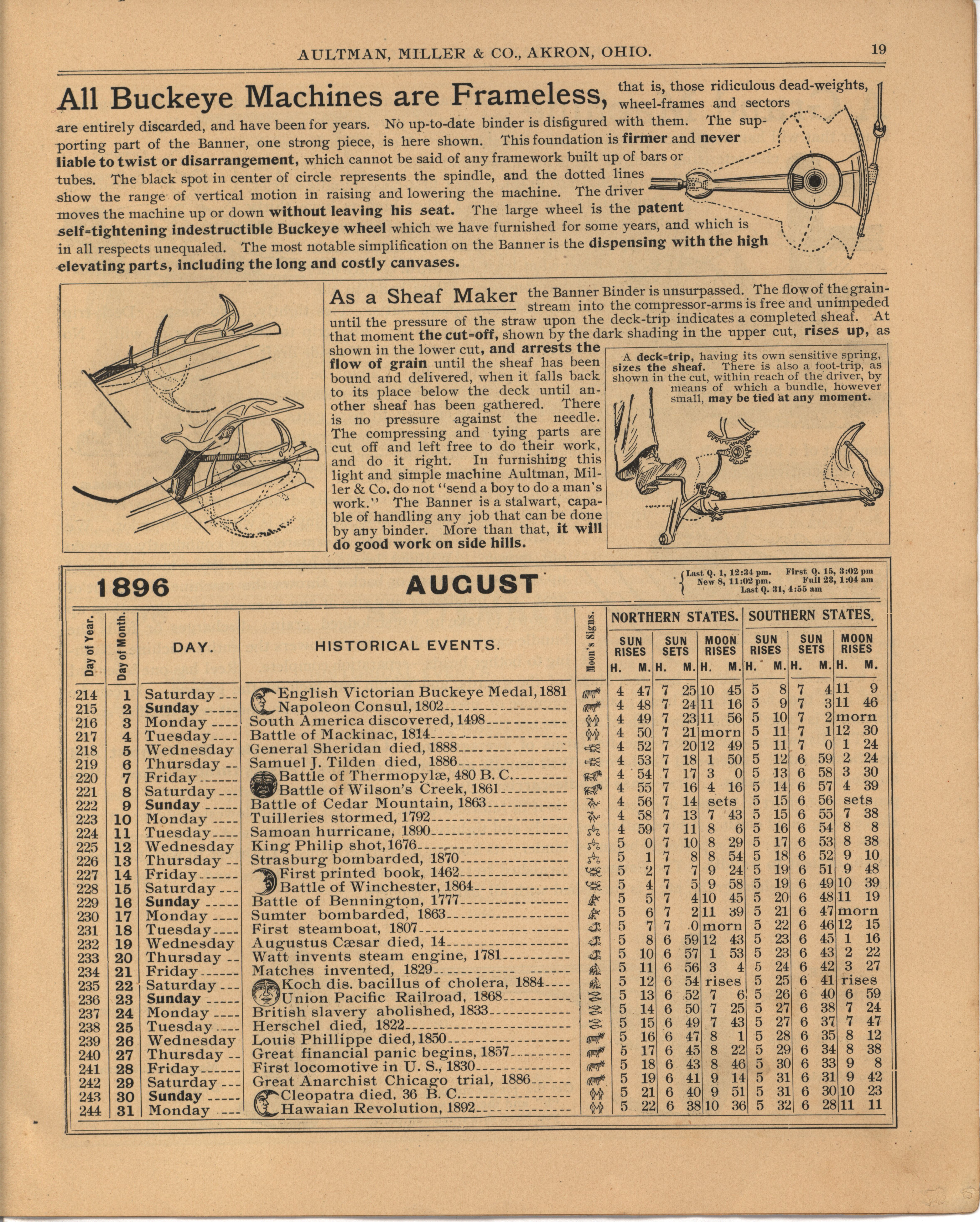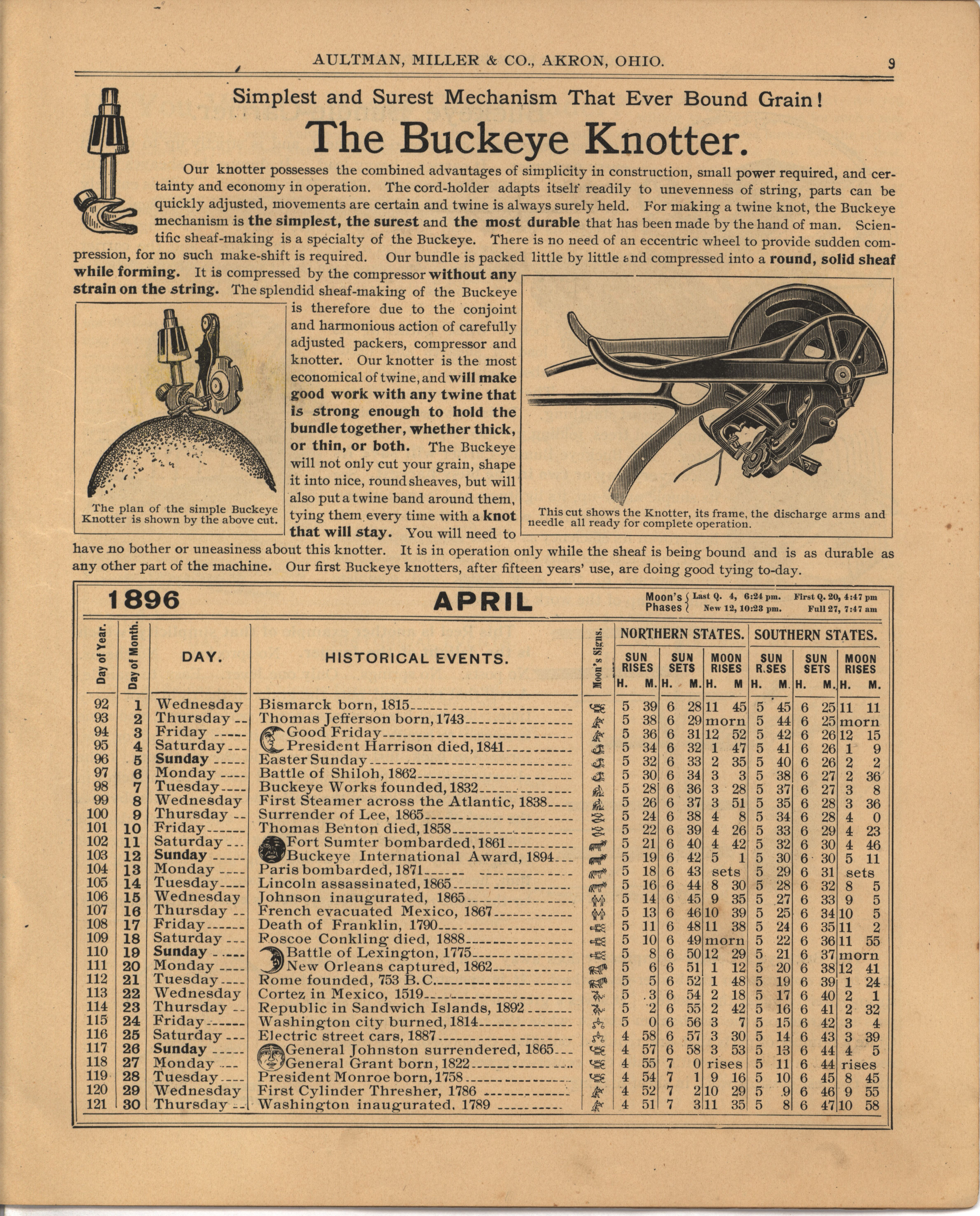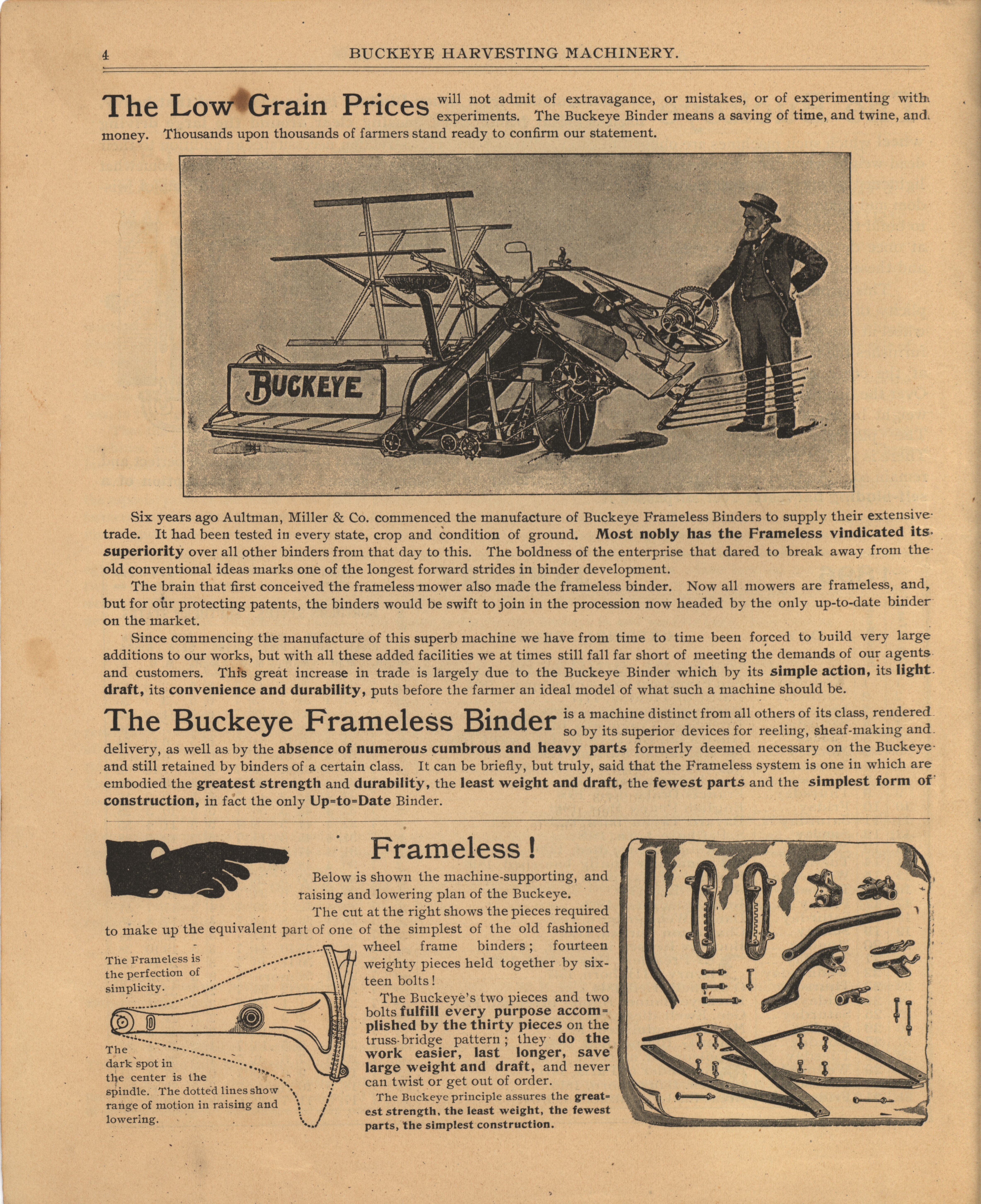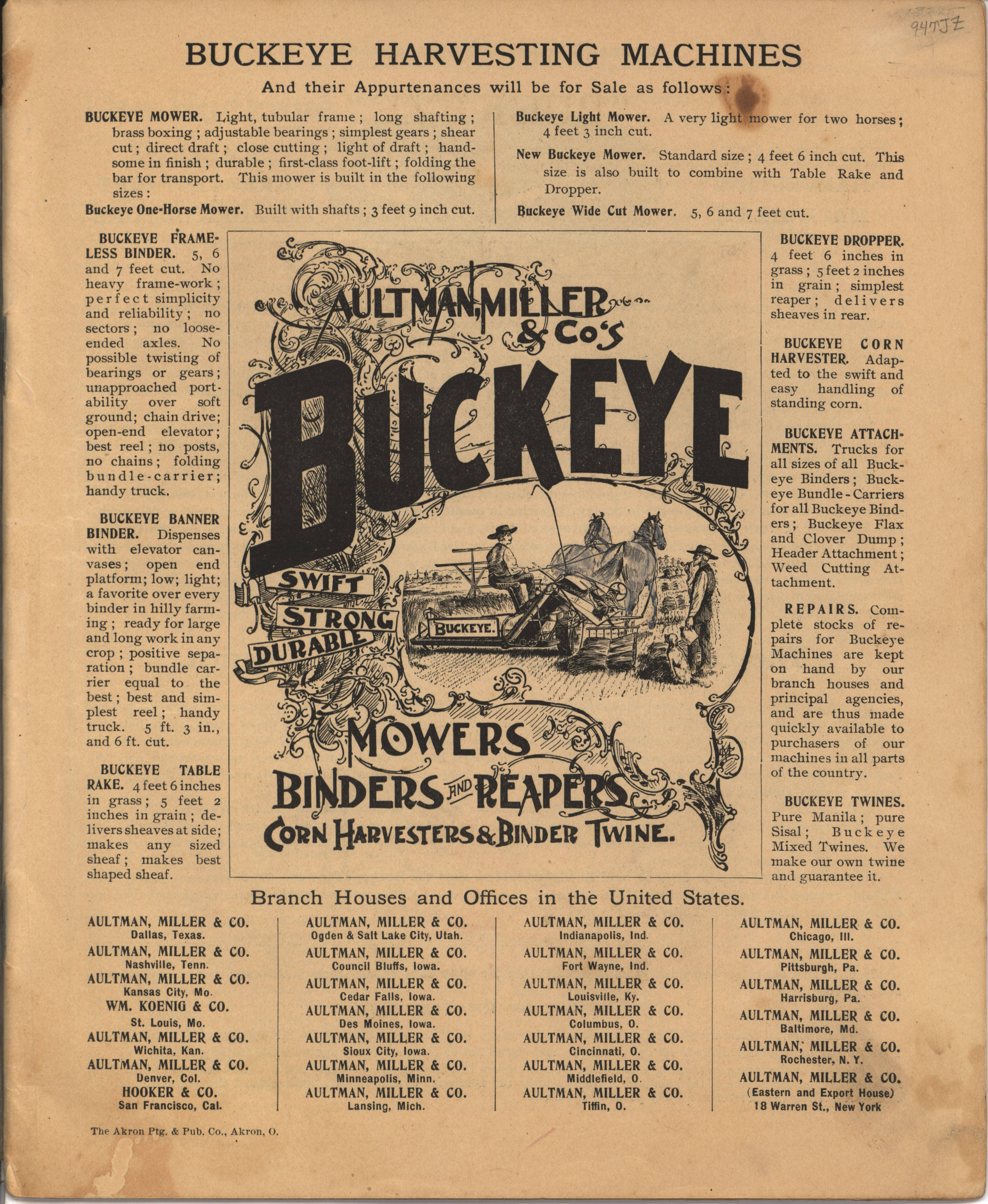 - "Aultman, Miller and Company Buckeye Harvesting Machines catalog", Agricultural Machinery Literature Collection, Iowa State University Library Digital Collections