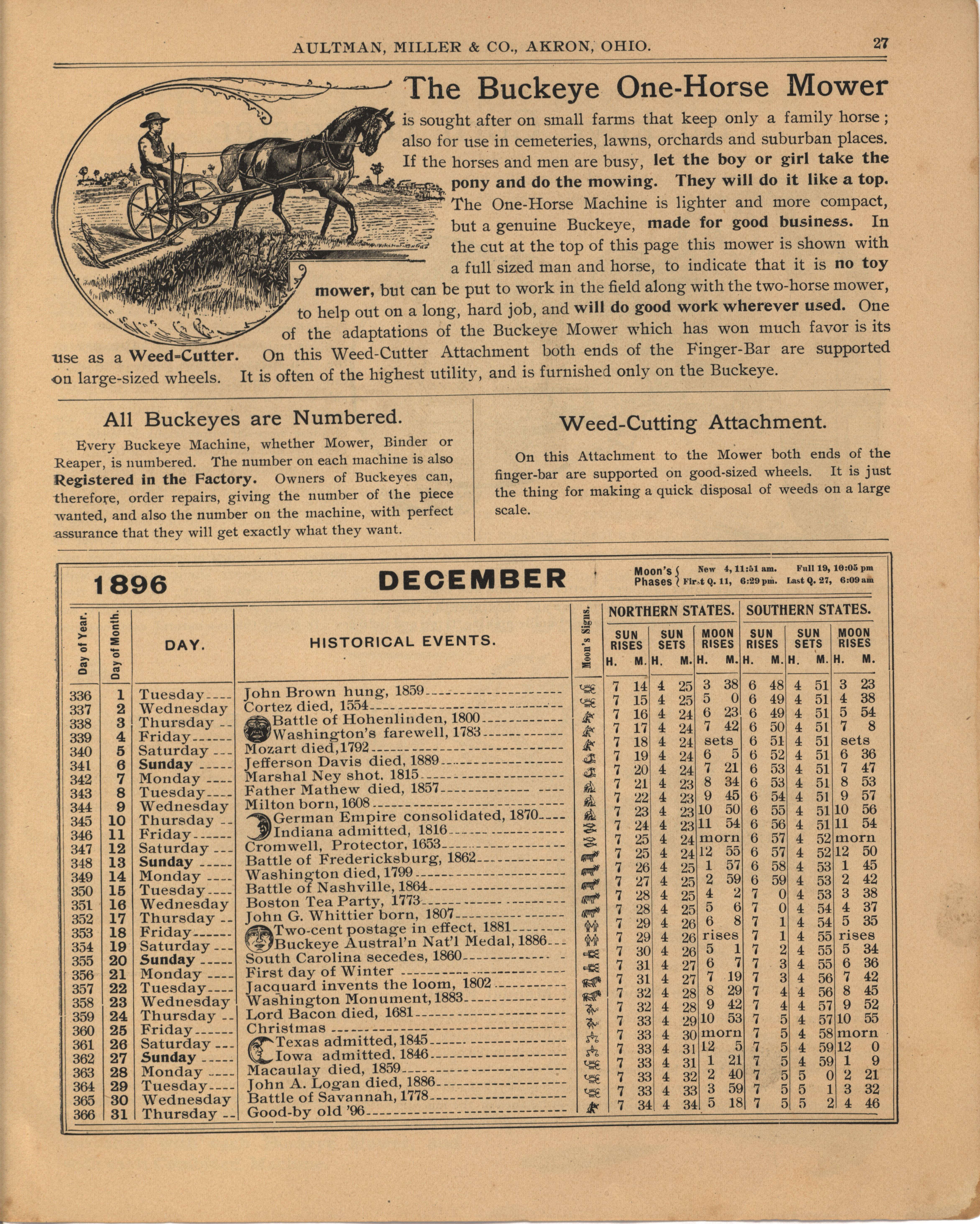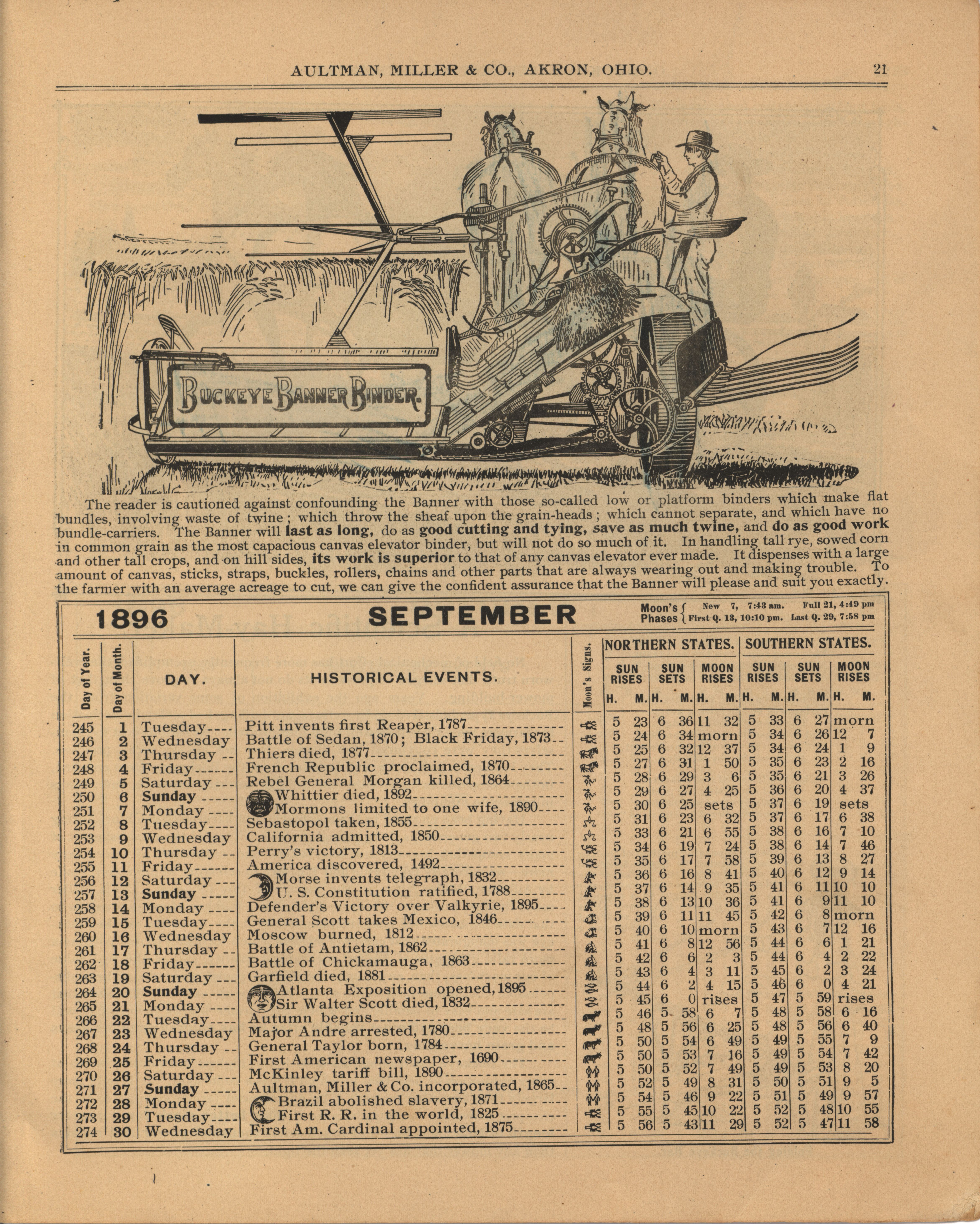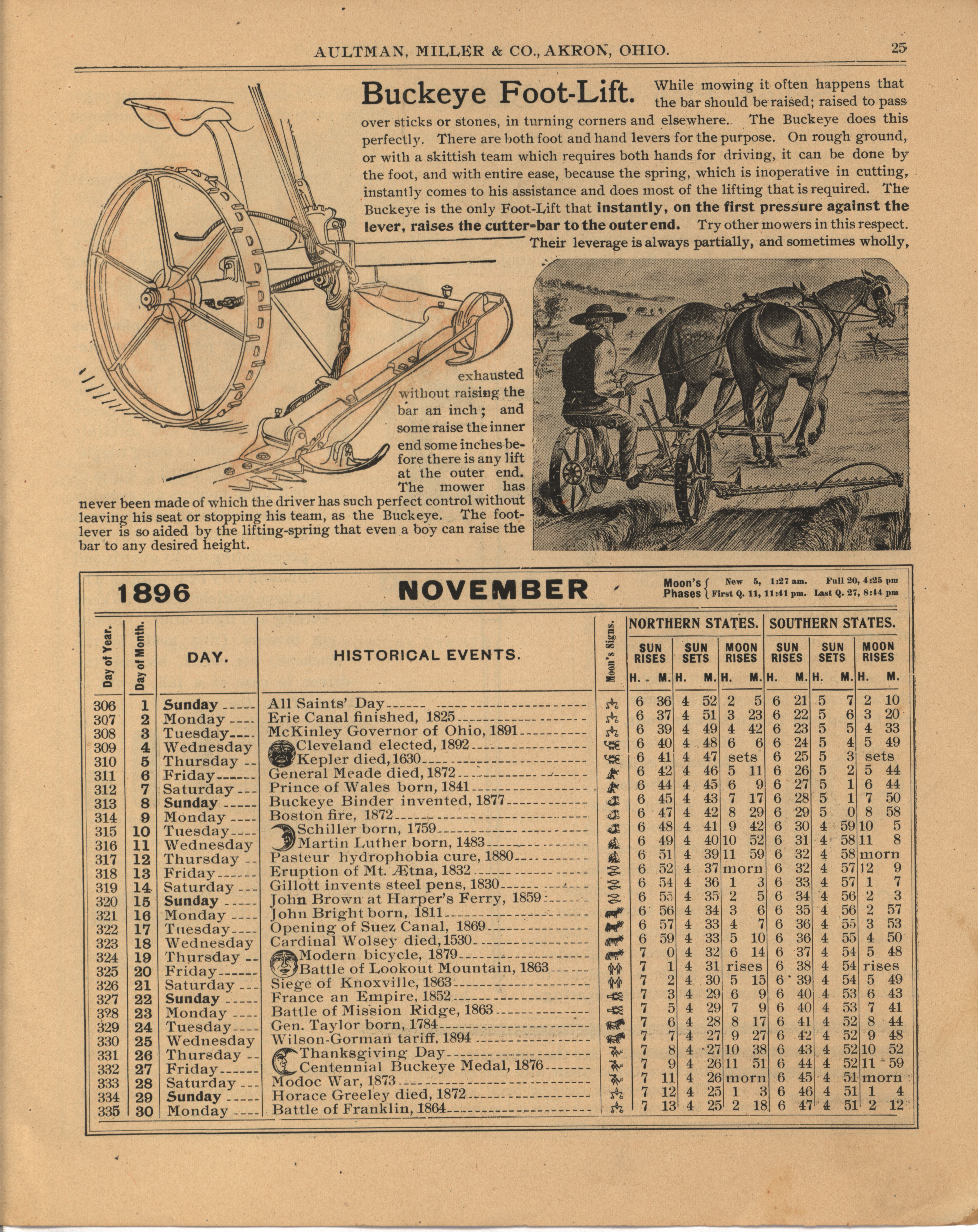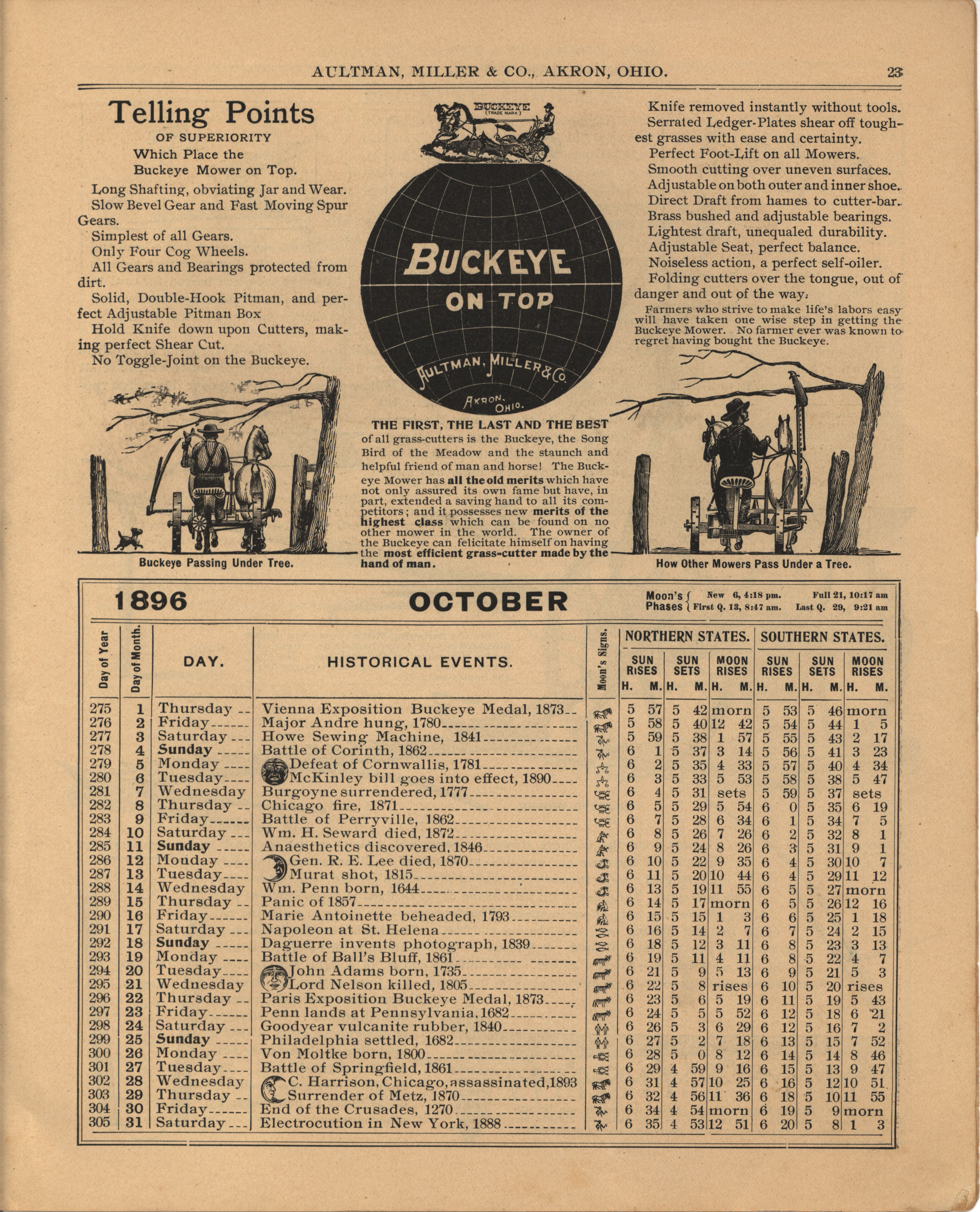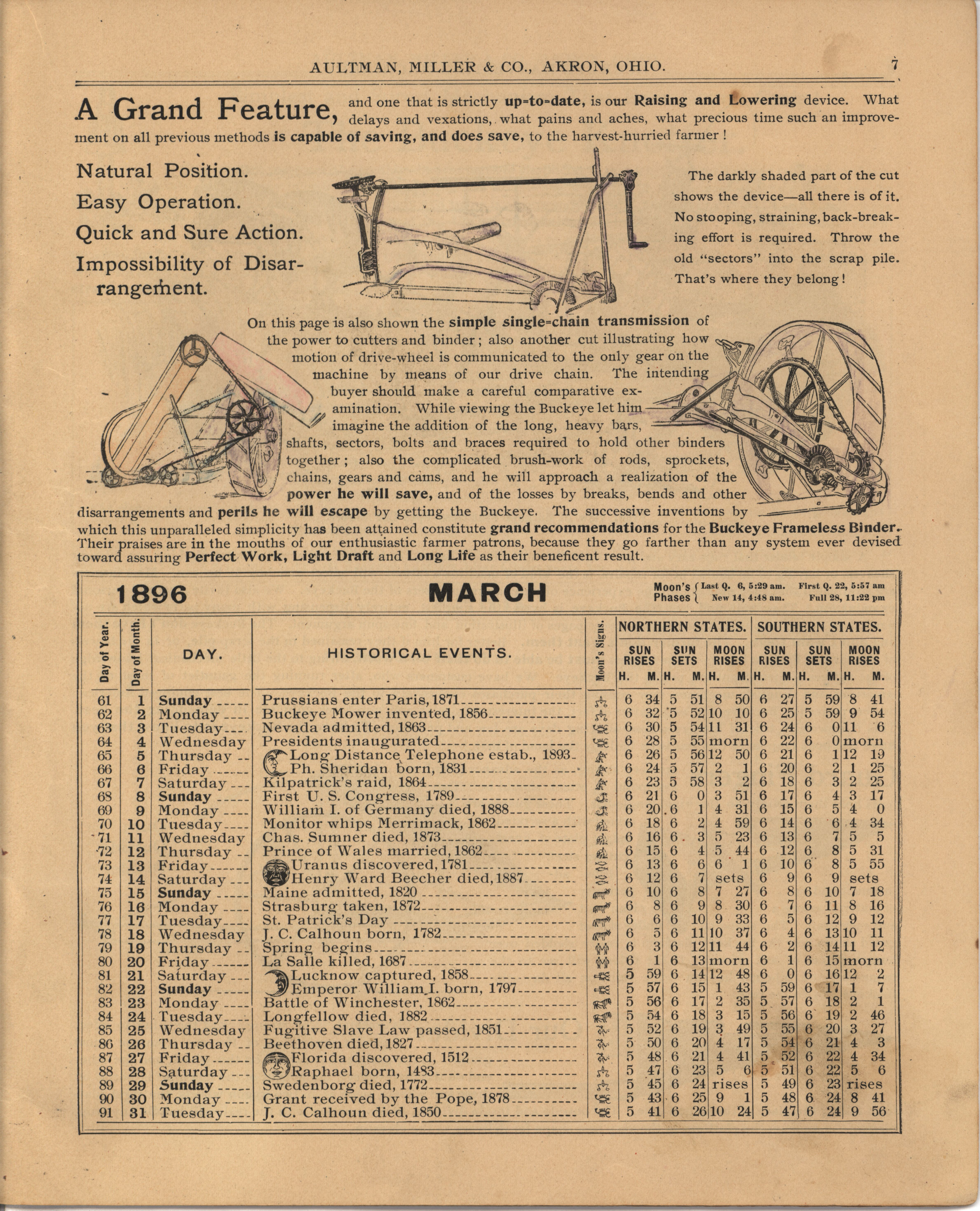 - "Aultman, Miller and Company Buckeye Harvesting Machines catalog", Agricultural Machinery Literature Collection, Iowa State University Library Digital Collections