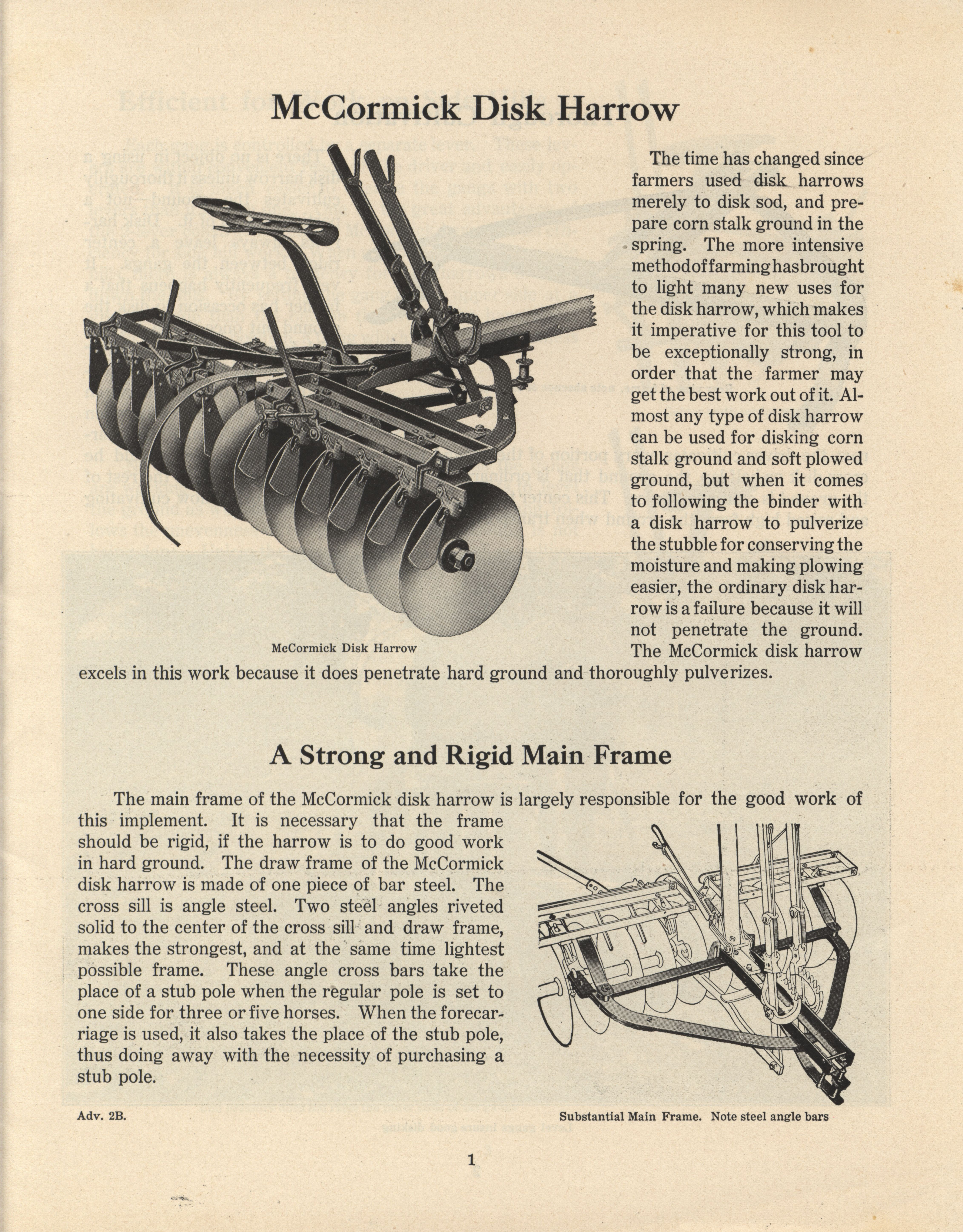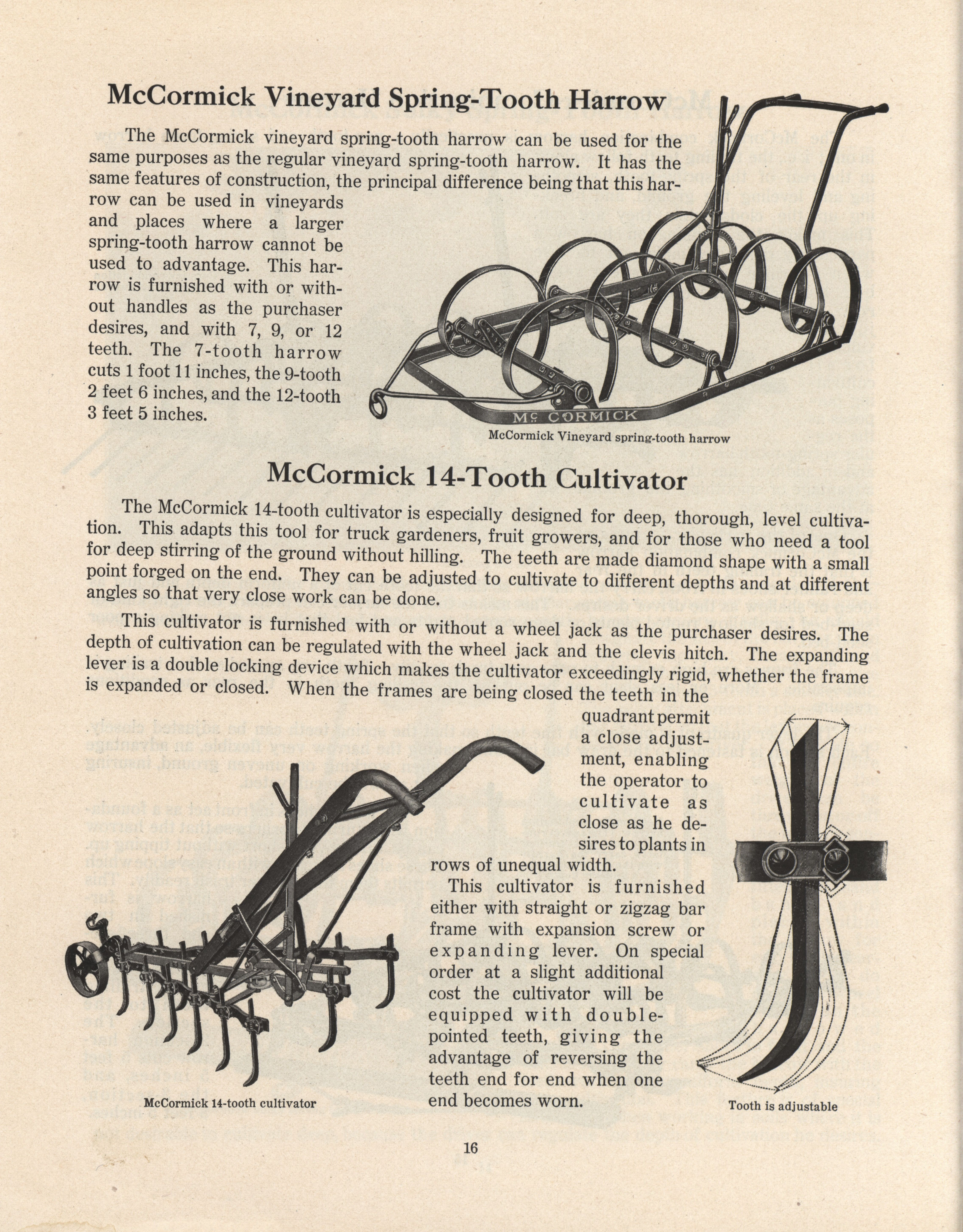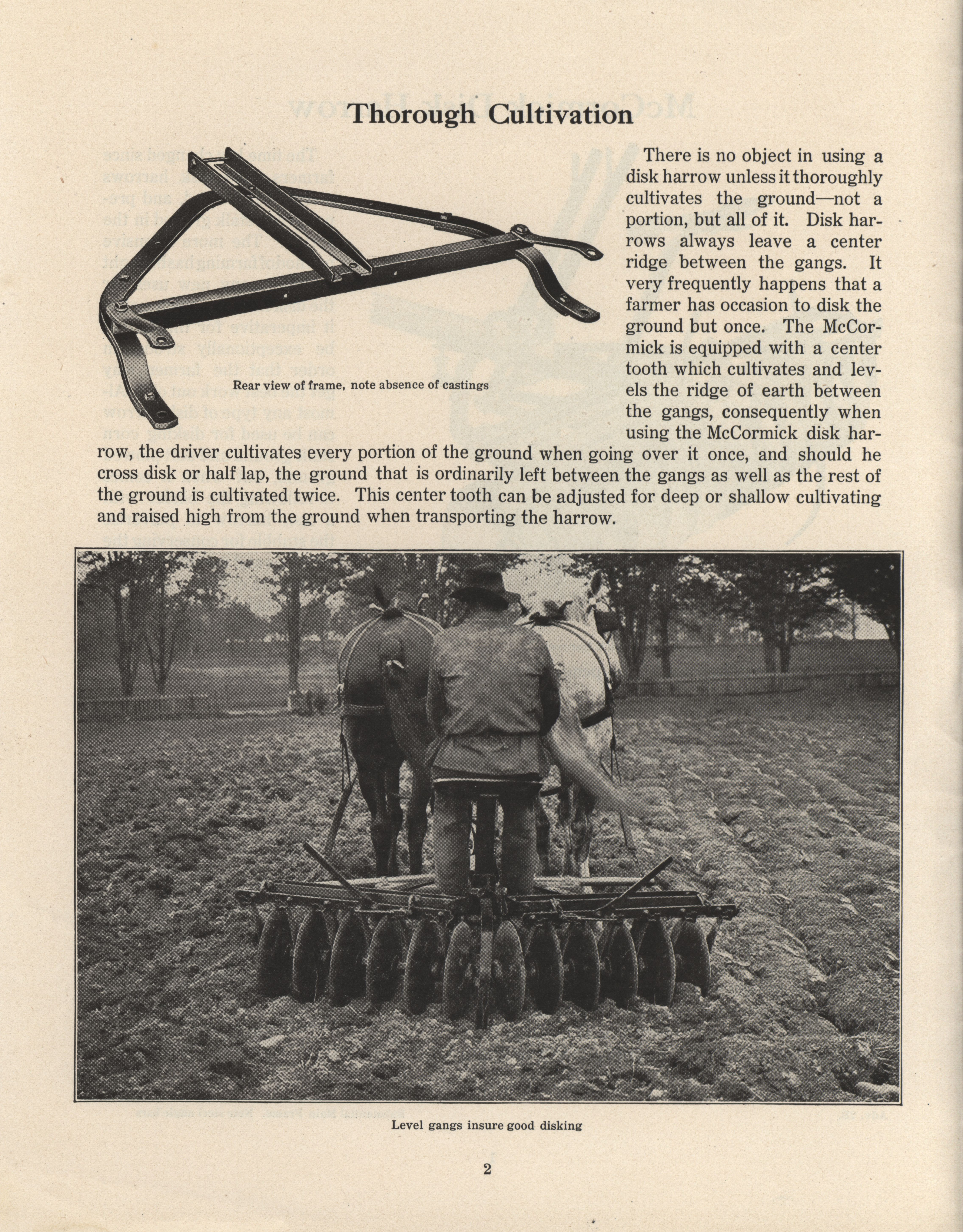 - Illustrated catalog describing the McCormick Tillage Implements offered by the International Harvester Company of America.