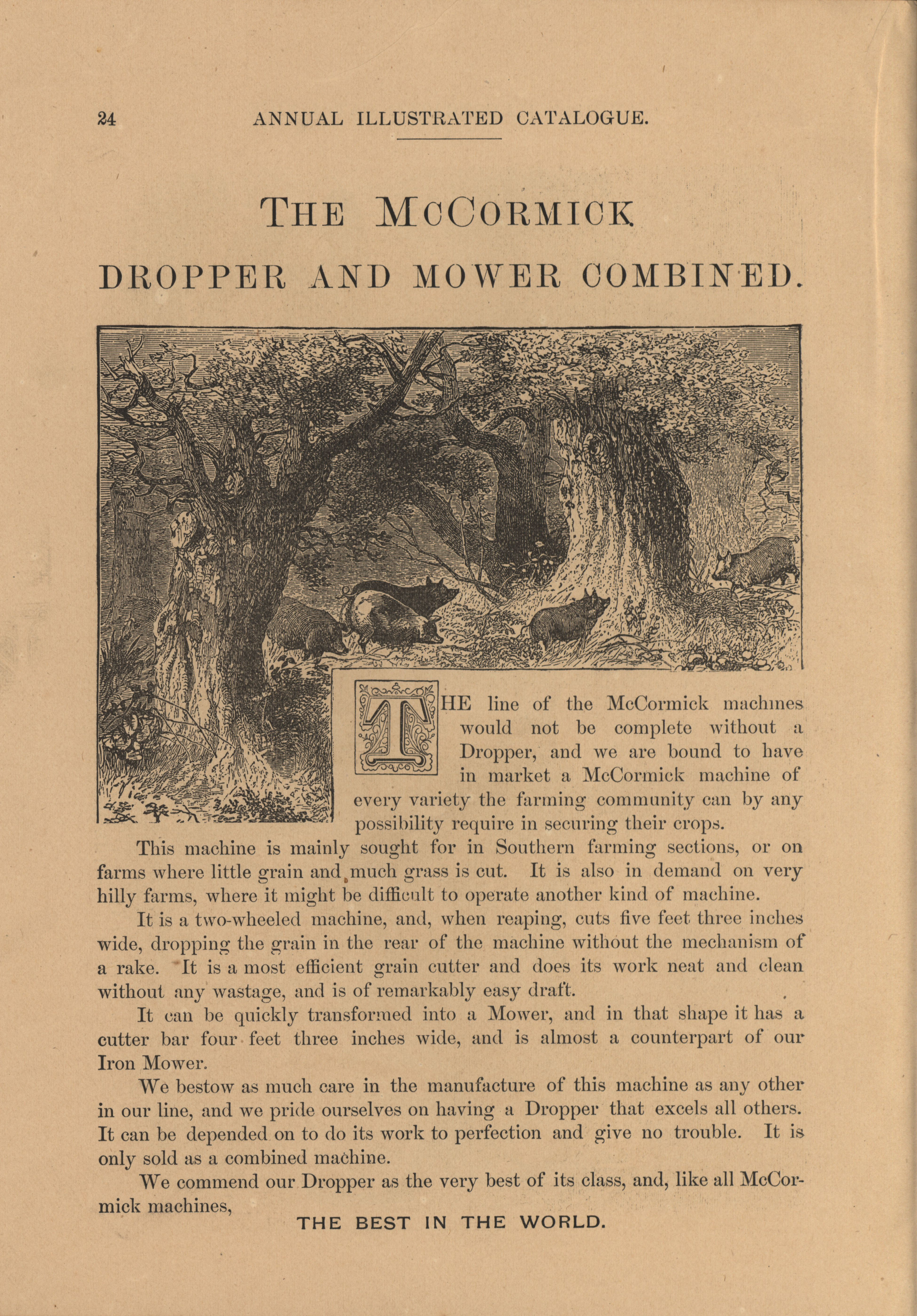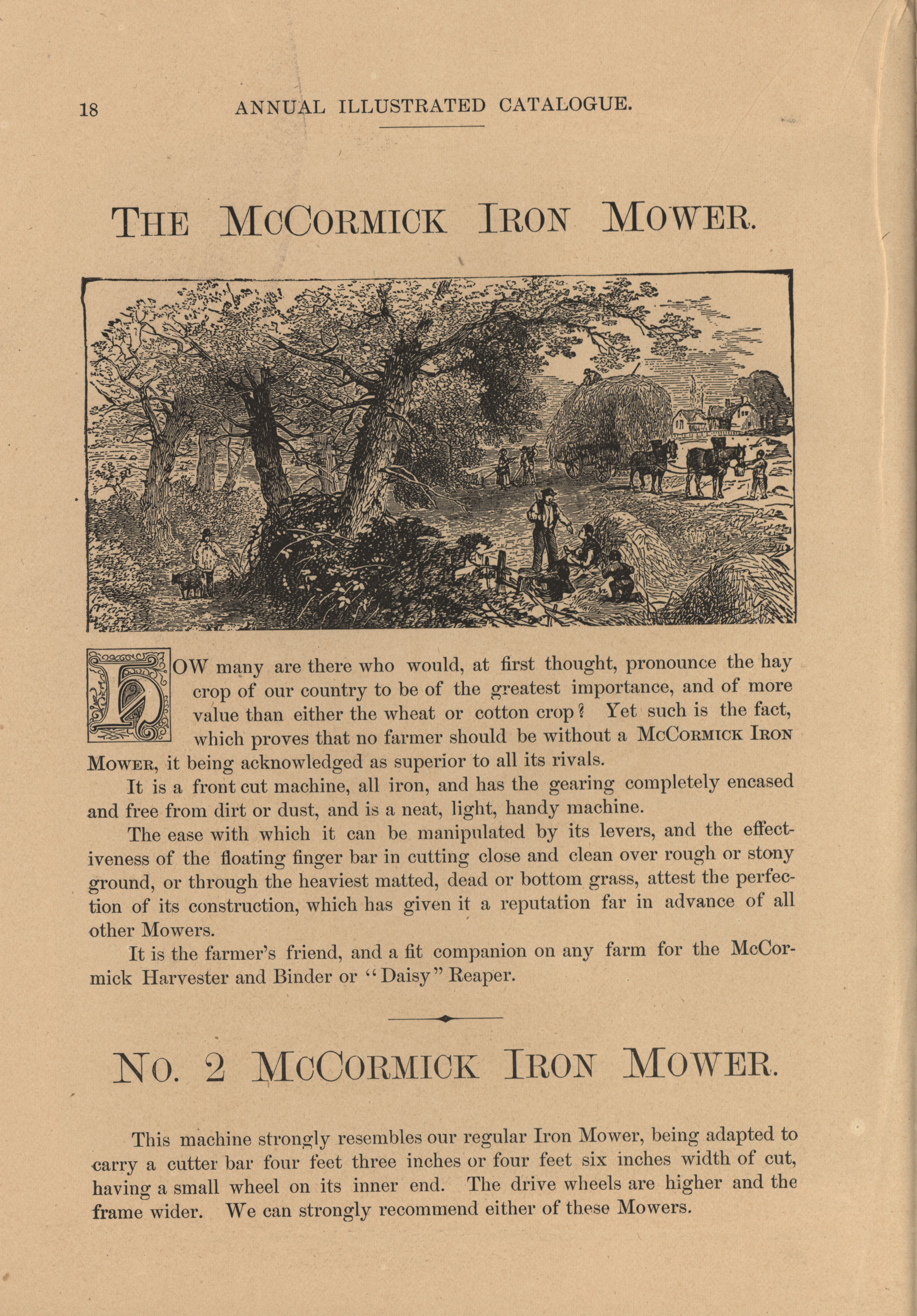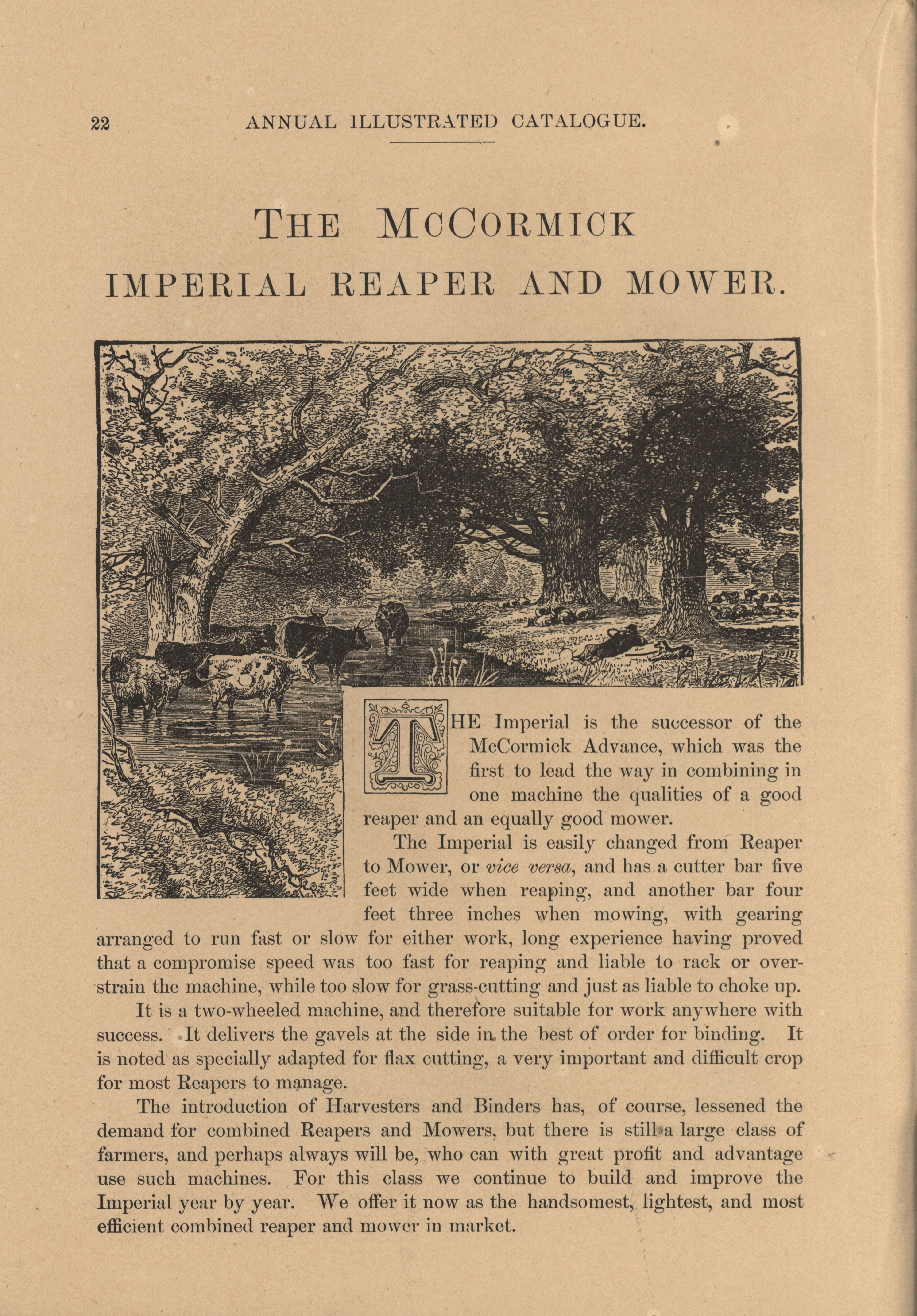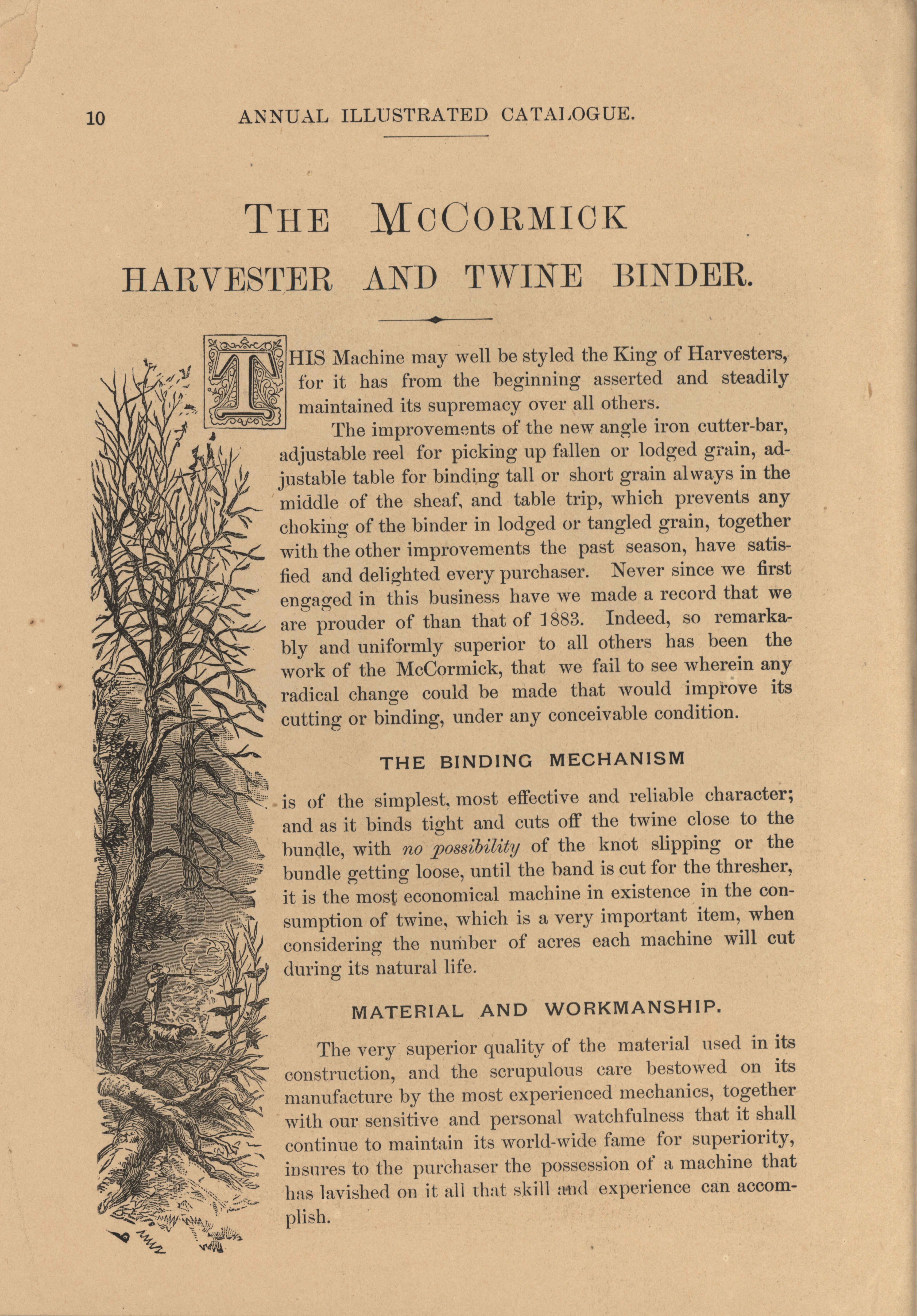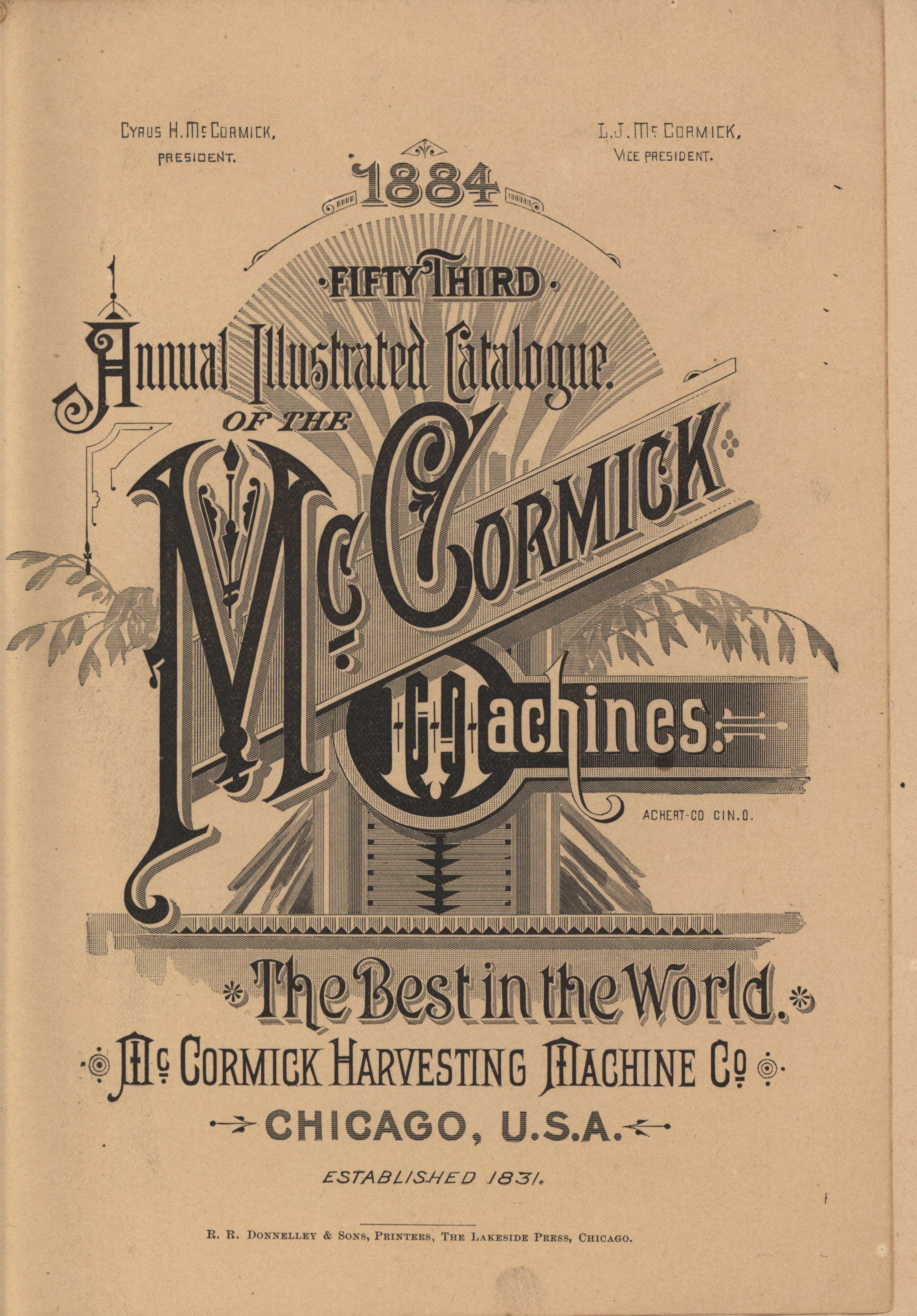 - Illustrated catalog describing the agricultural implements offered by the McCormick Harvesting Machine Company in 1884.