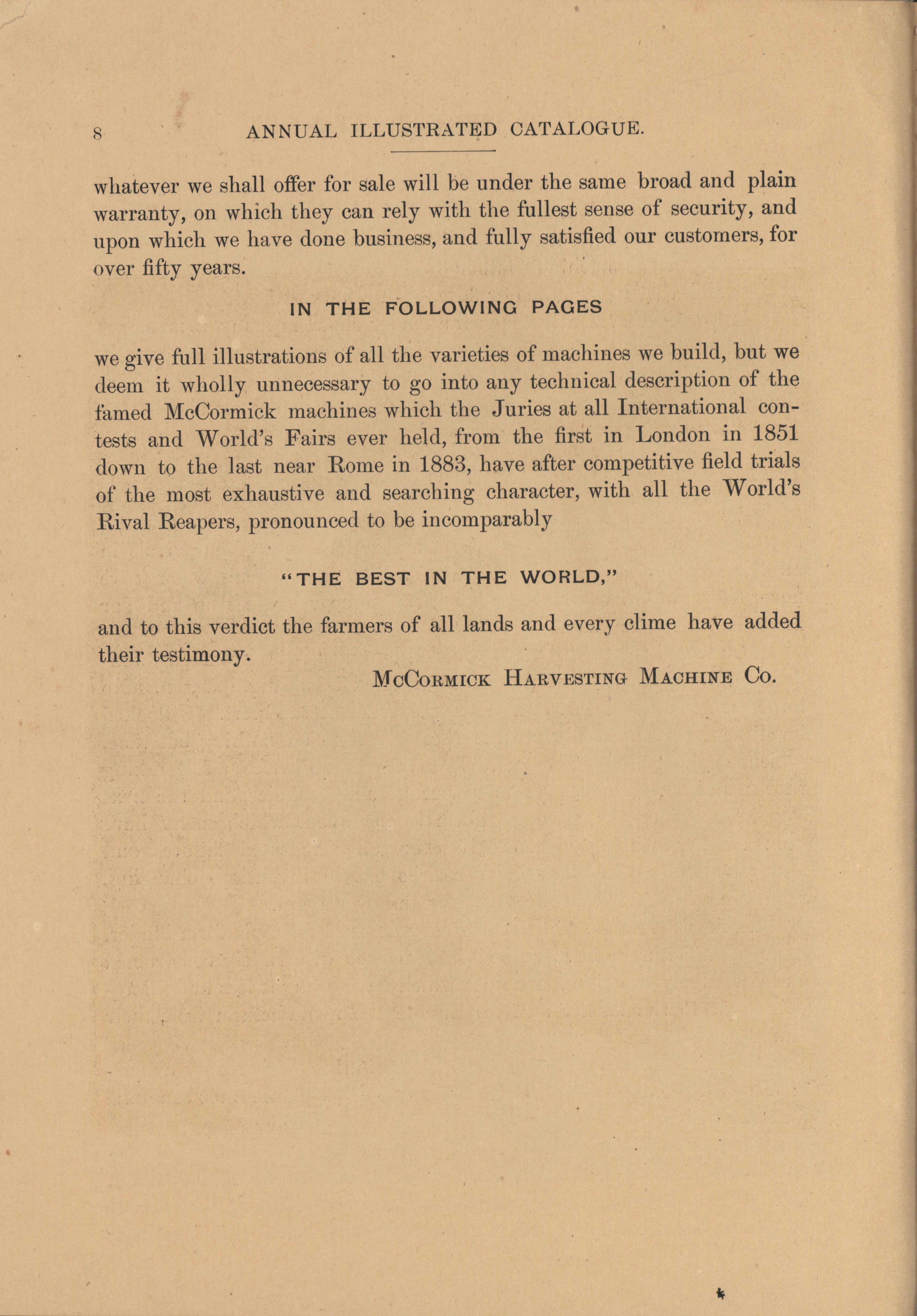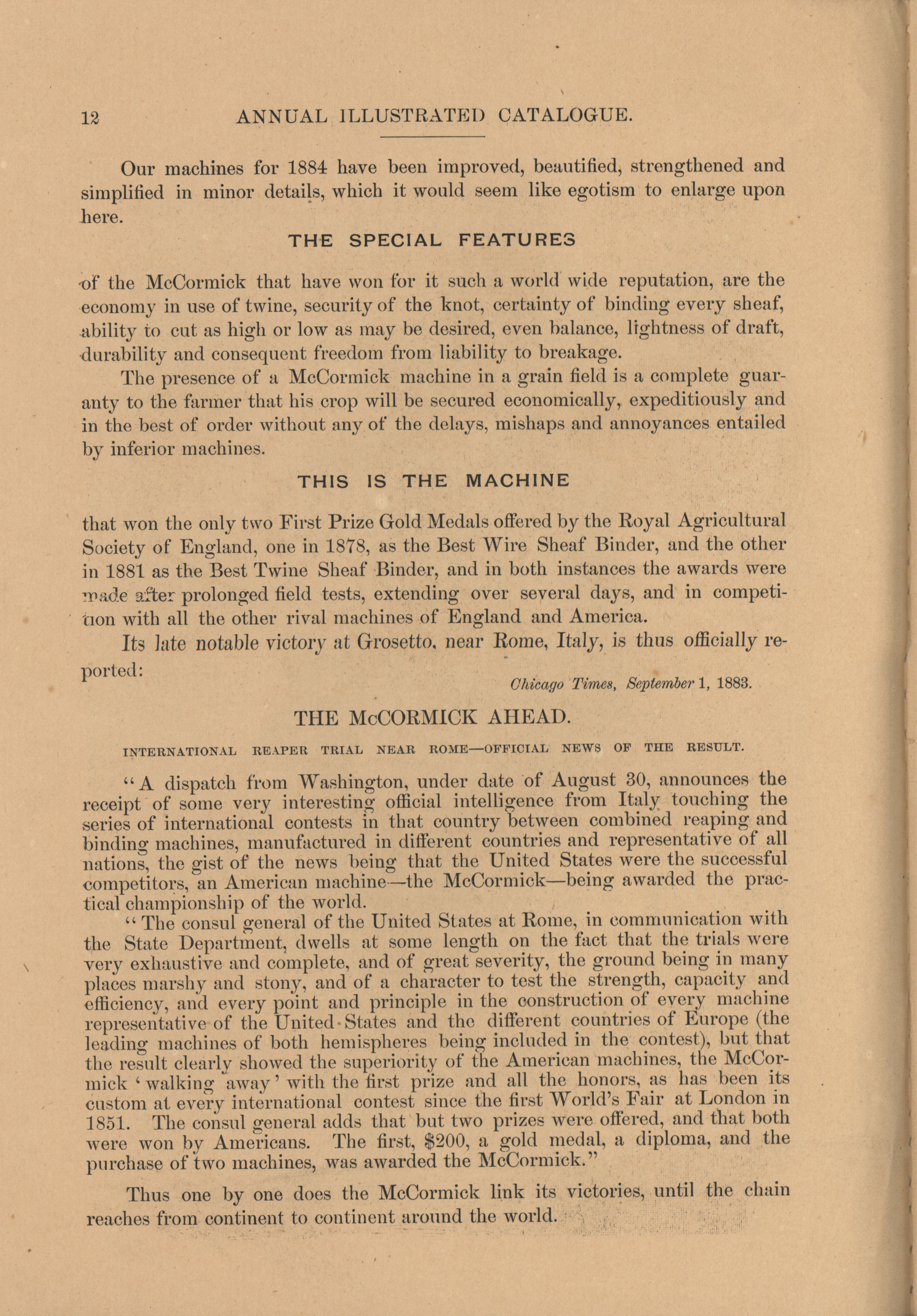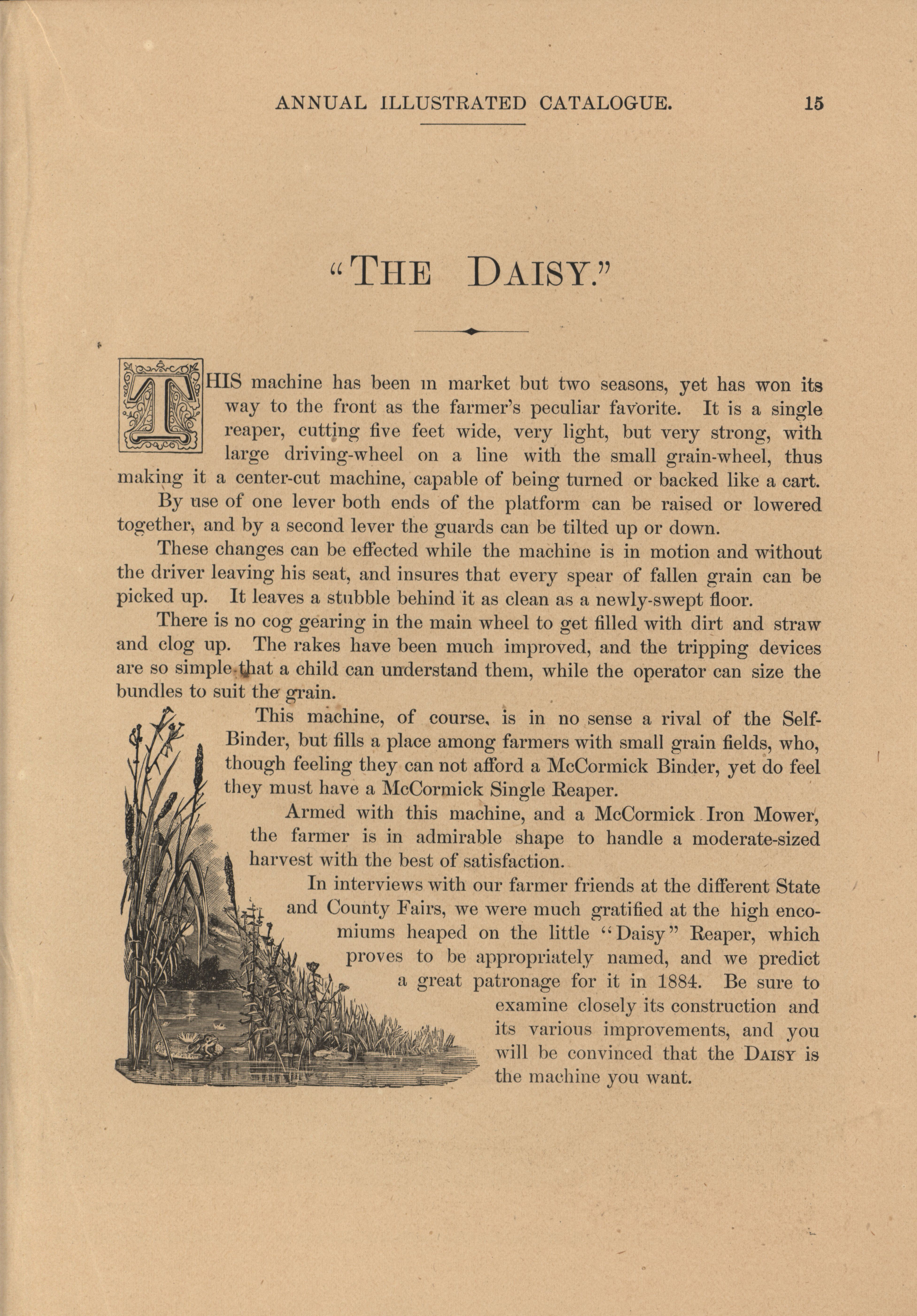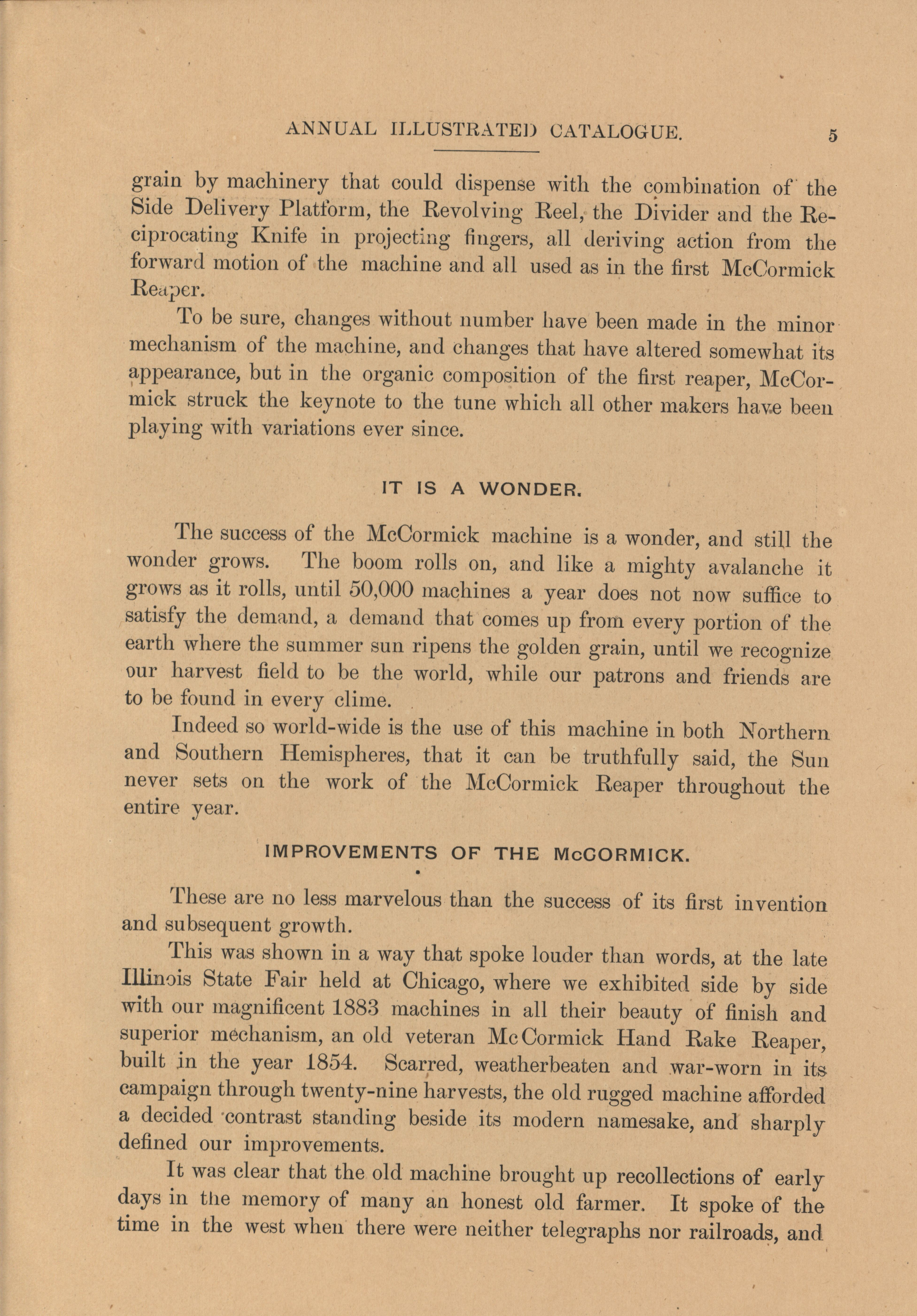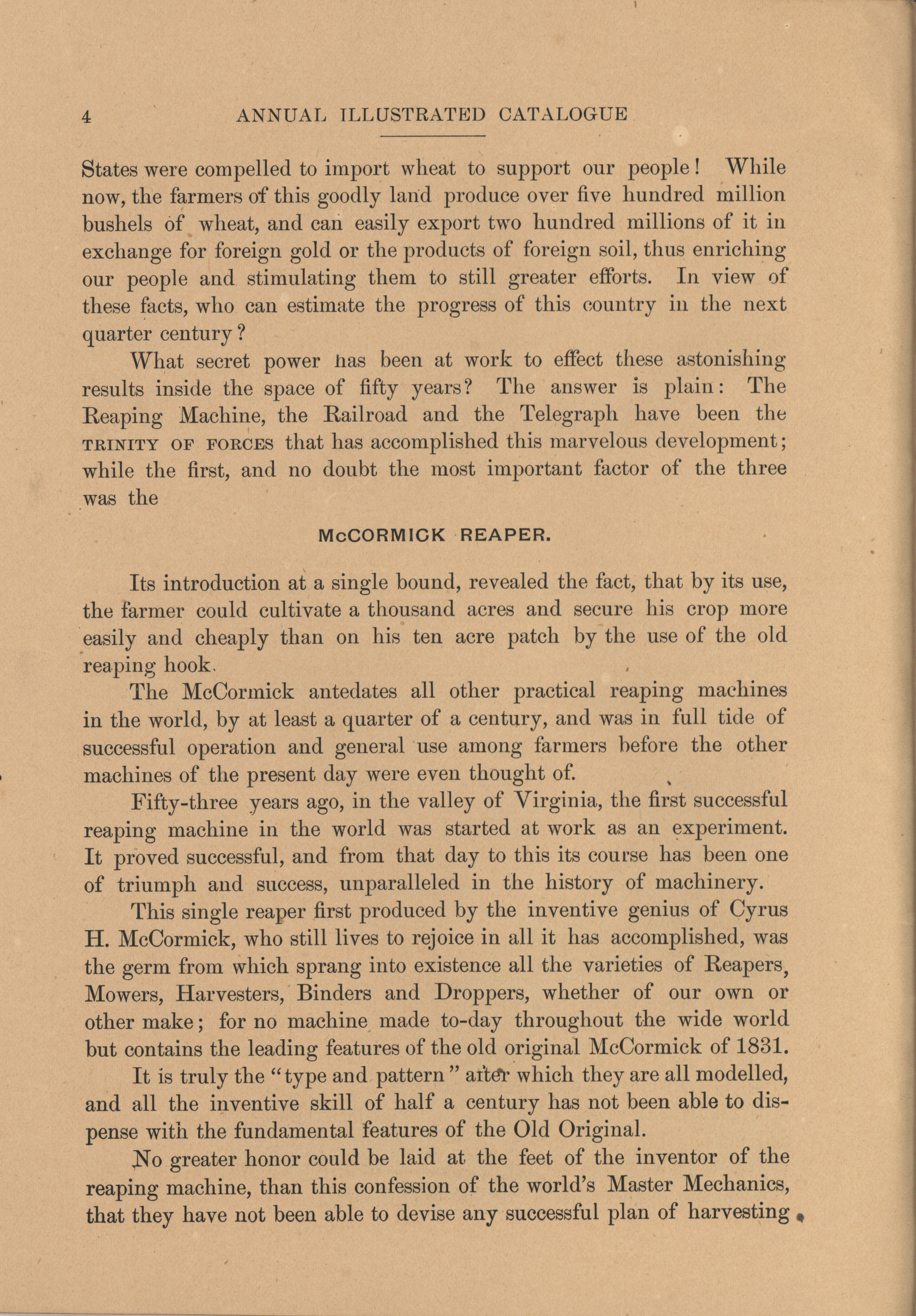- Illustrated catalog describing the agricultural implements offered by the McCormick Harvesting Machine Company in 1884.