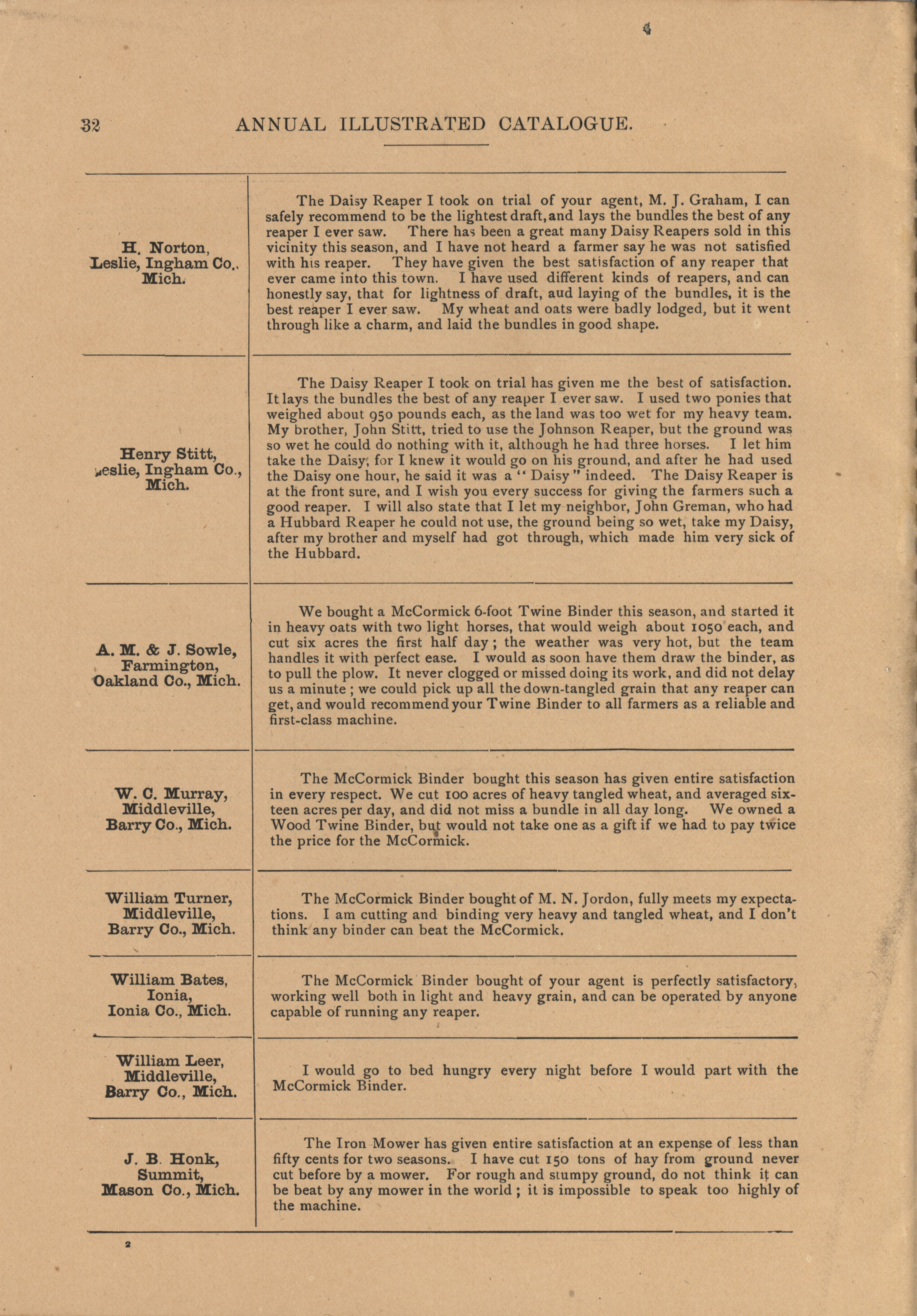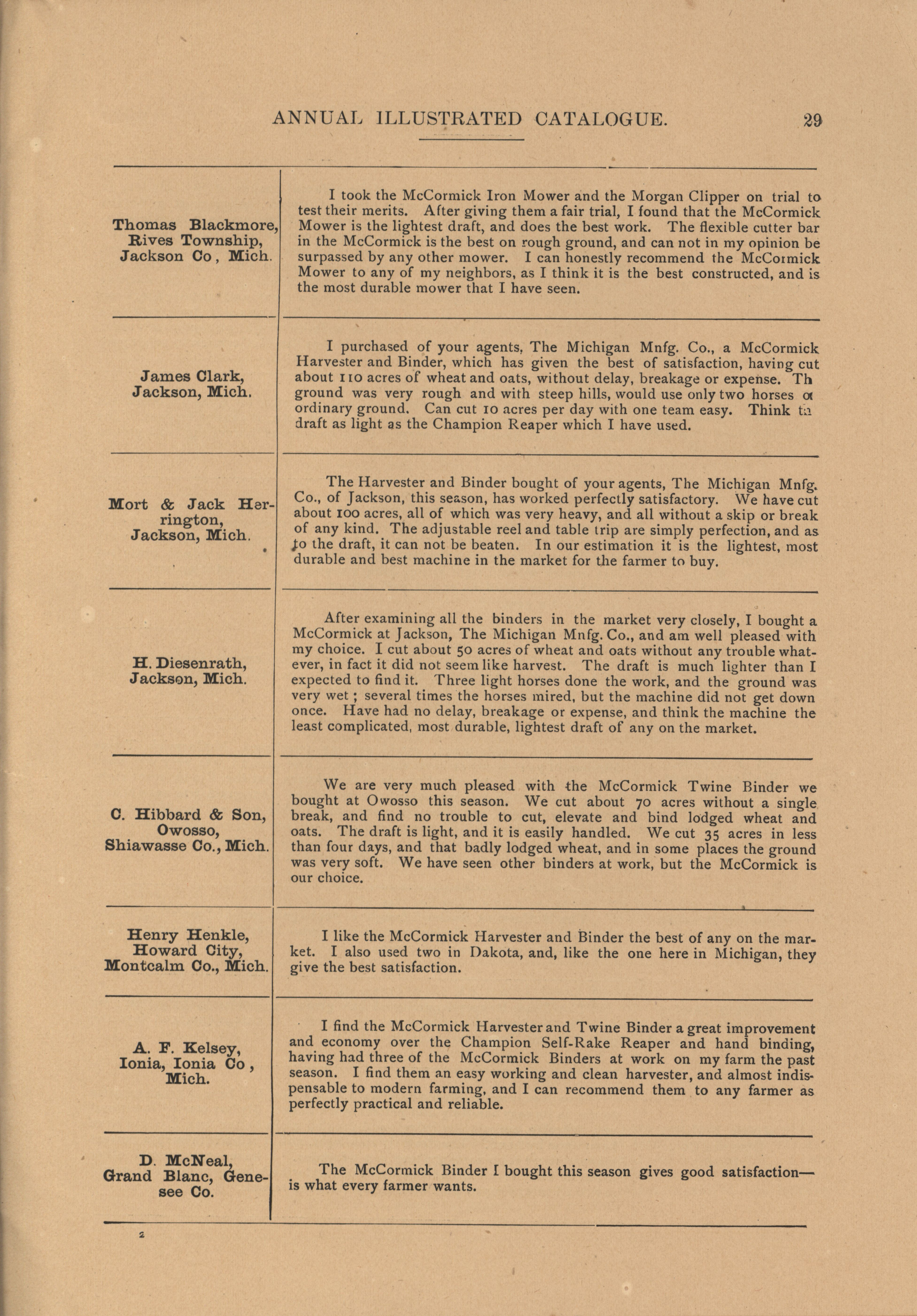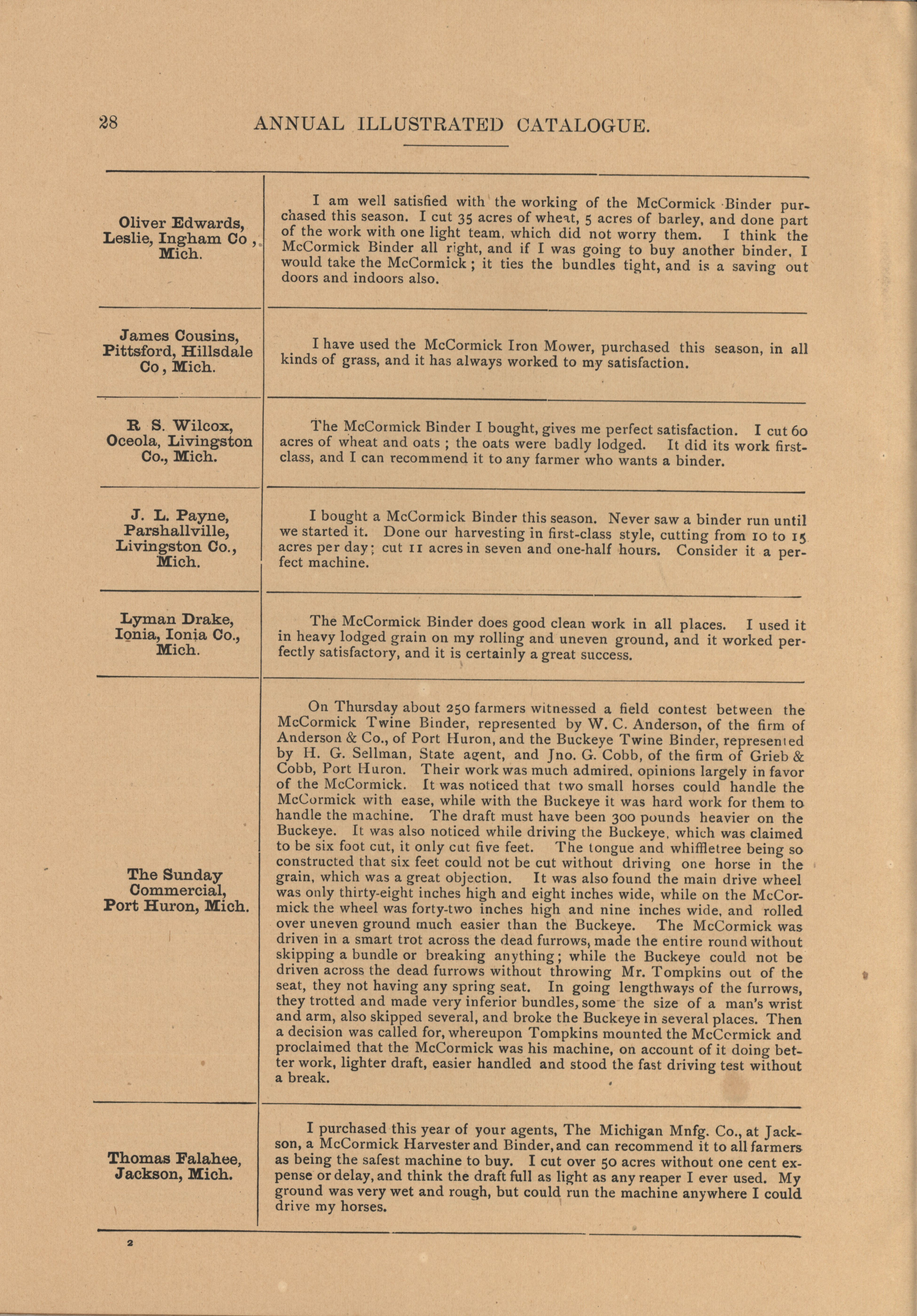 - "McCormick Harvesting Machine Company 1884 catalog", Agricultural Machinery Literature Collection, Iowa State University Library Digital Collections