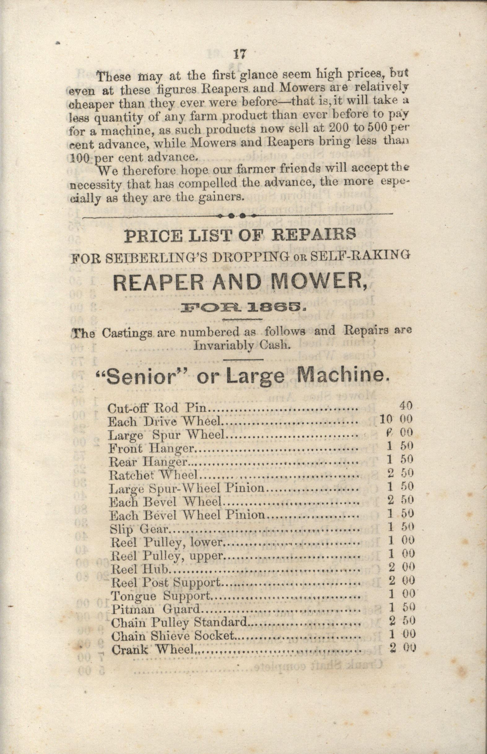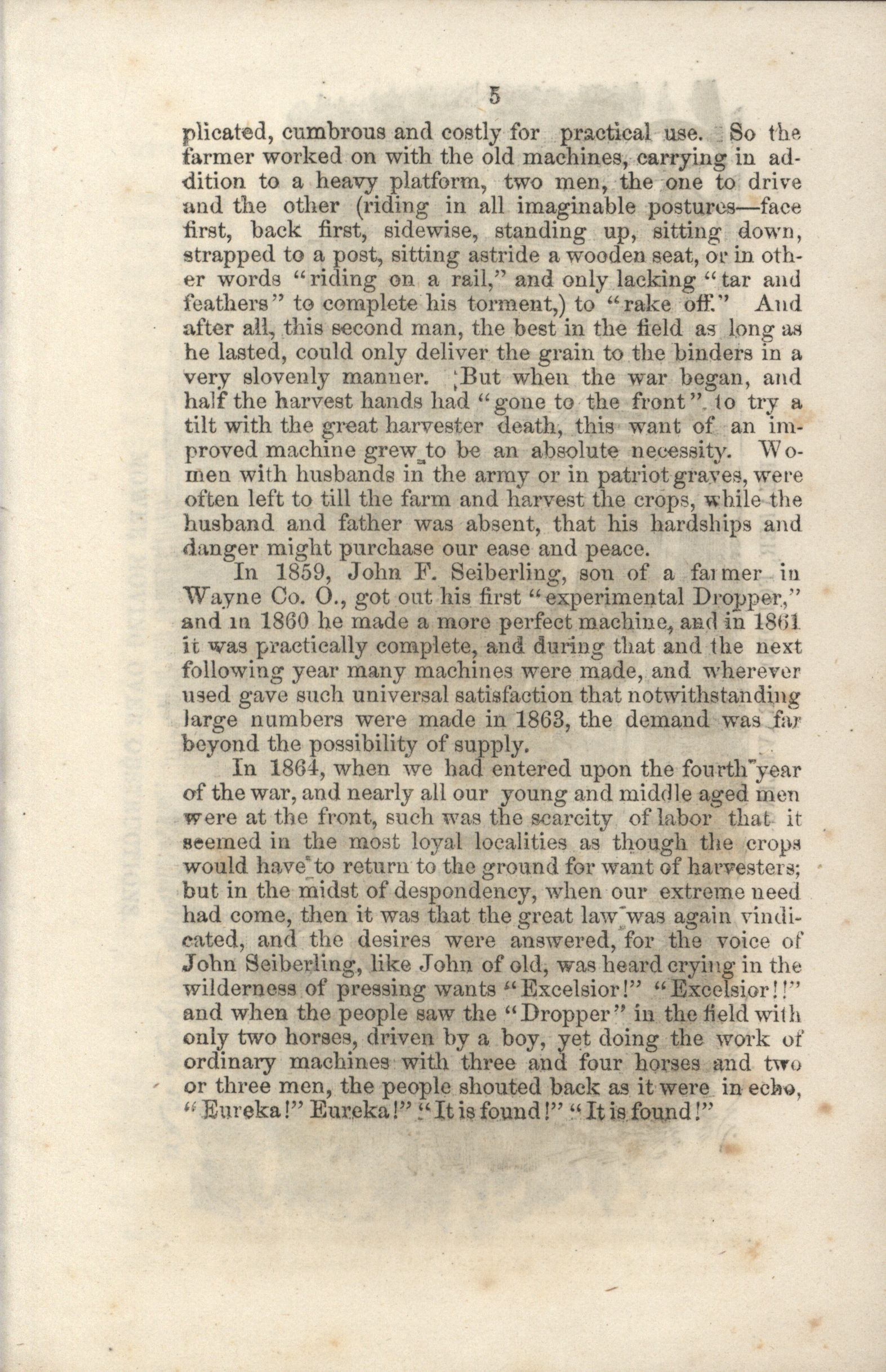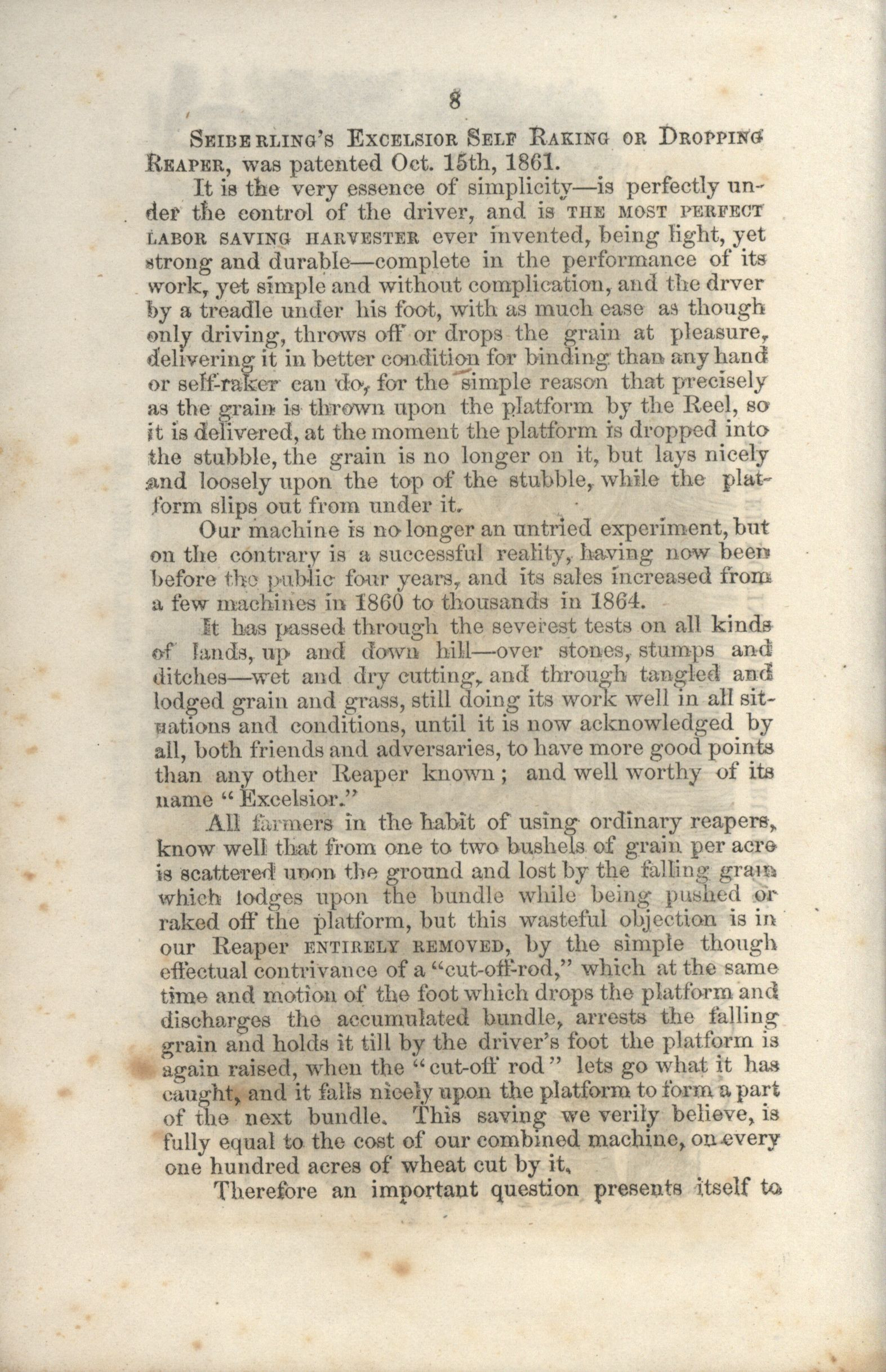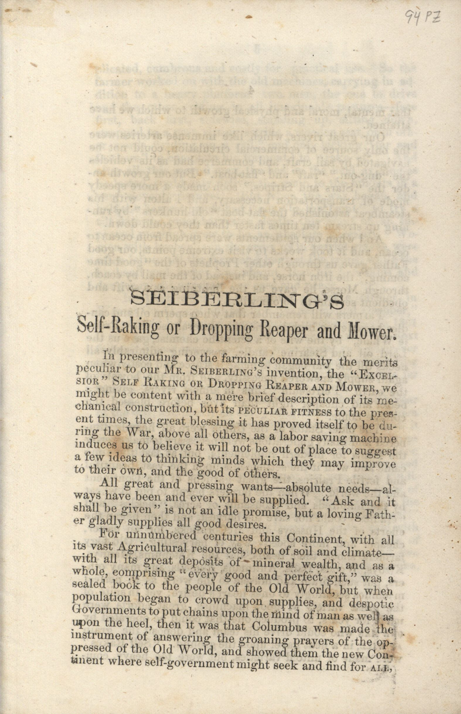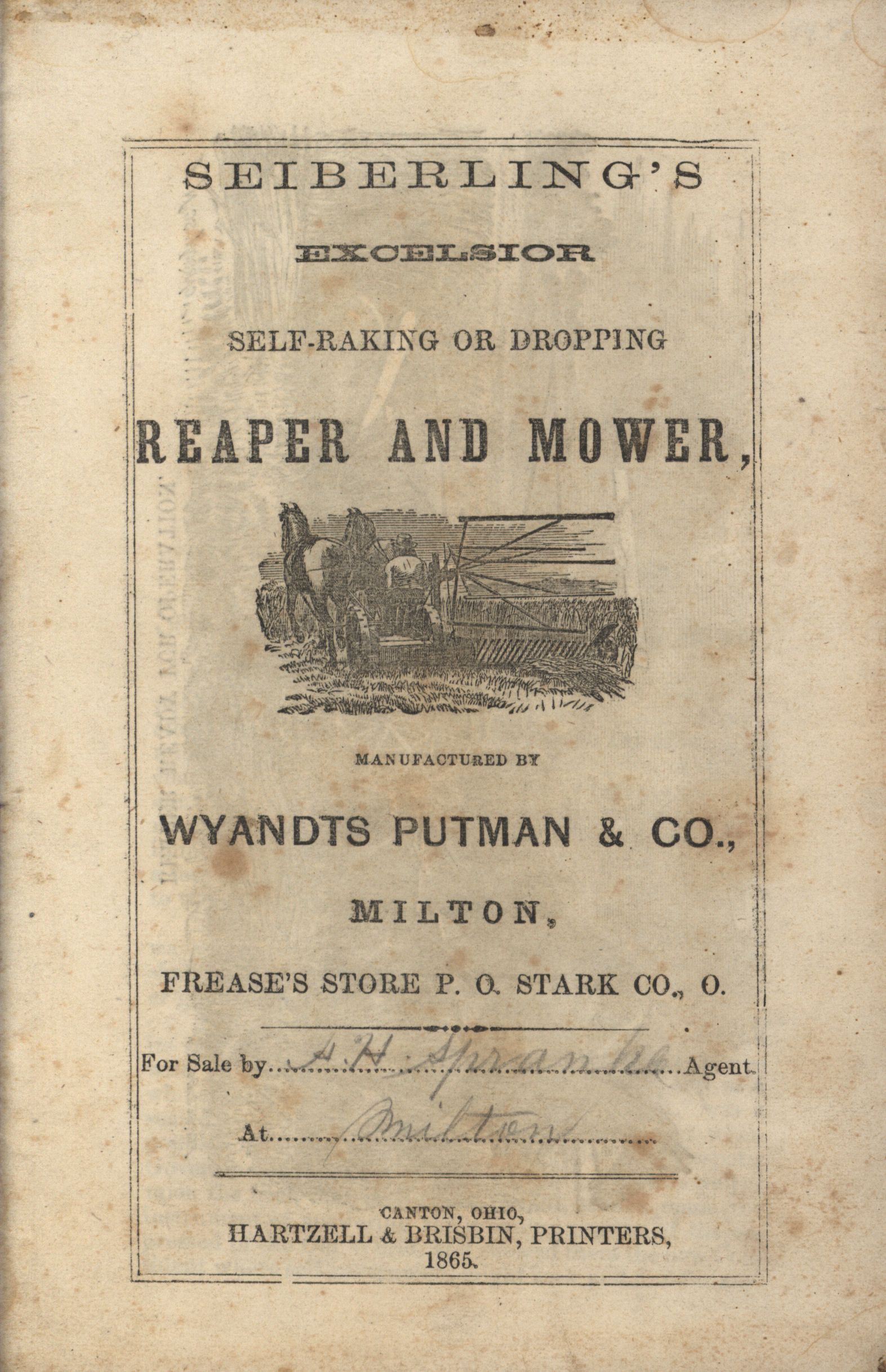 - Seiberling's Excelsior Self-Raking of Dropping Reaper and Mower, Manufactured by Wyandts Putman and Company catalog