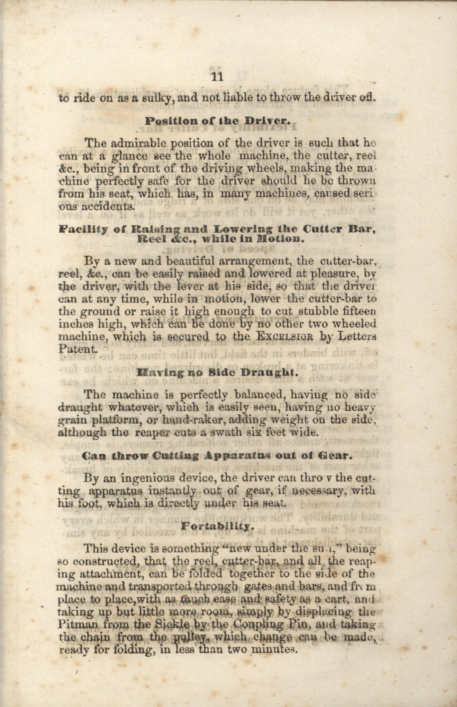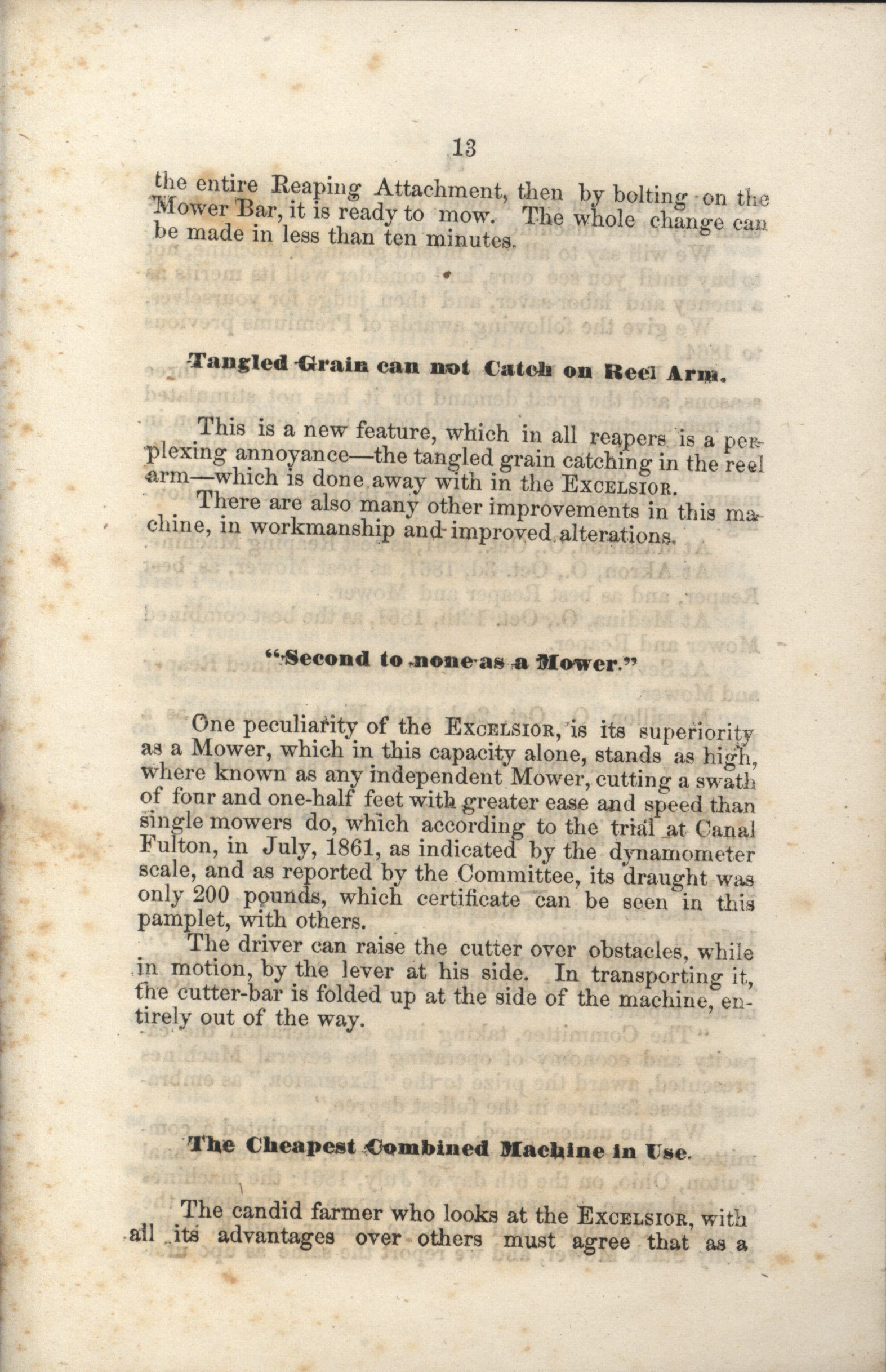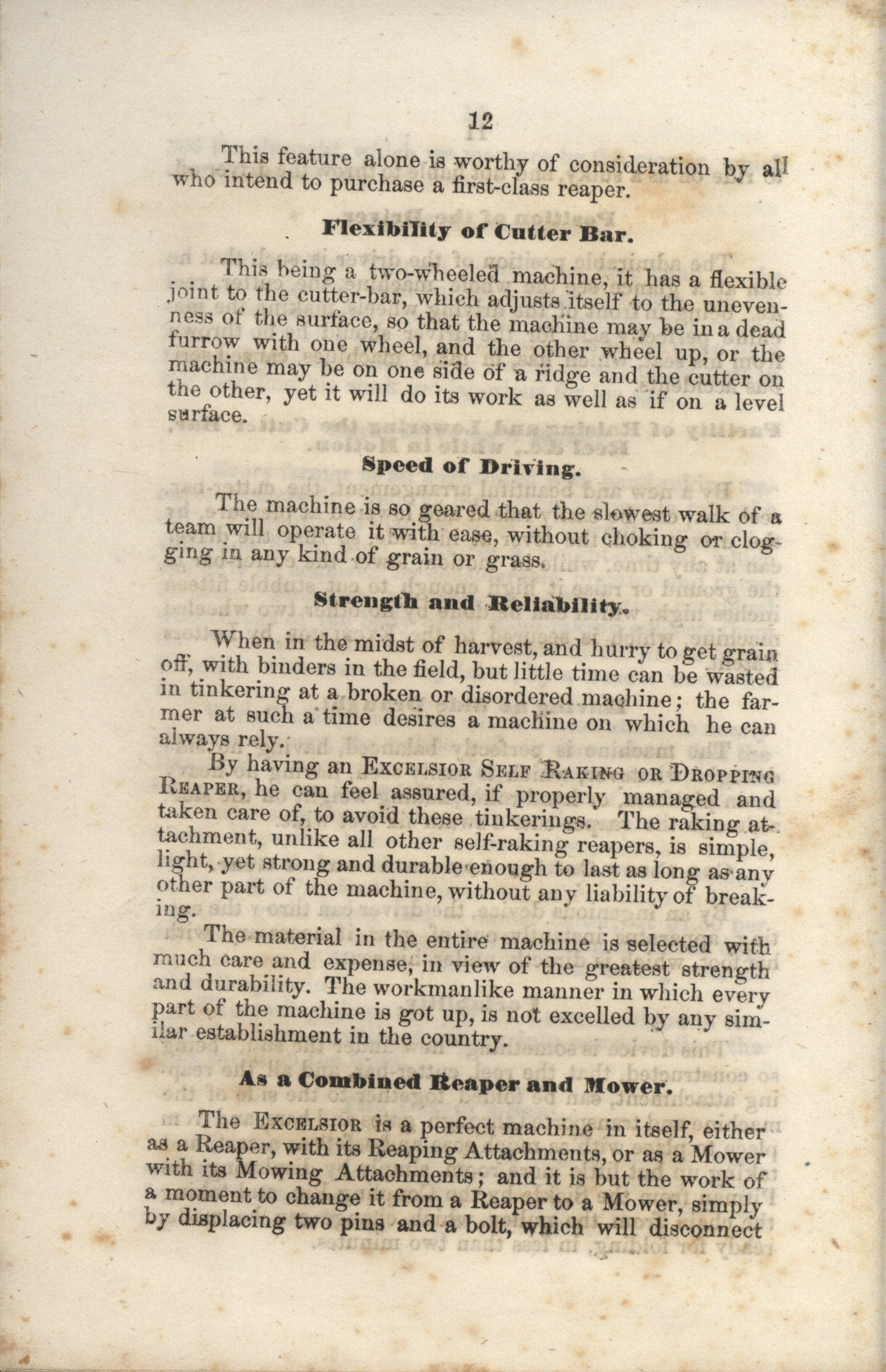 Seiberling's Excelsior Self-Raking of Dropping Reaper and Mower, Manufactured by Wyandts Putman and Company catalog Item Info