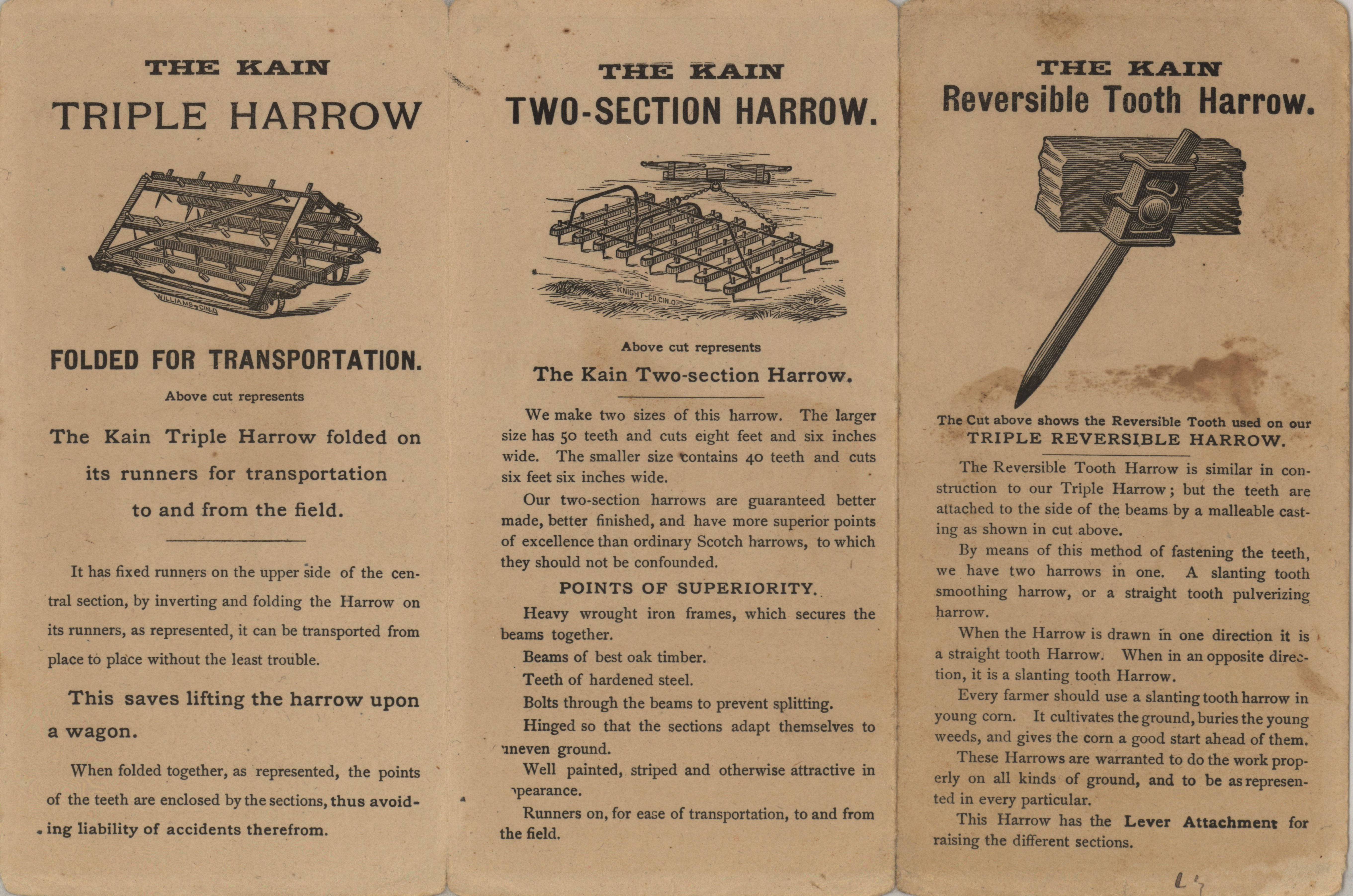 - "Kain Harrow advertisement", Agricultural Machinery Literature Collection, Iowa State University Library Digital Collections