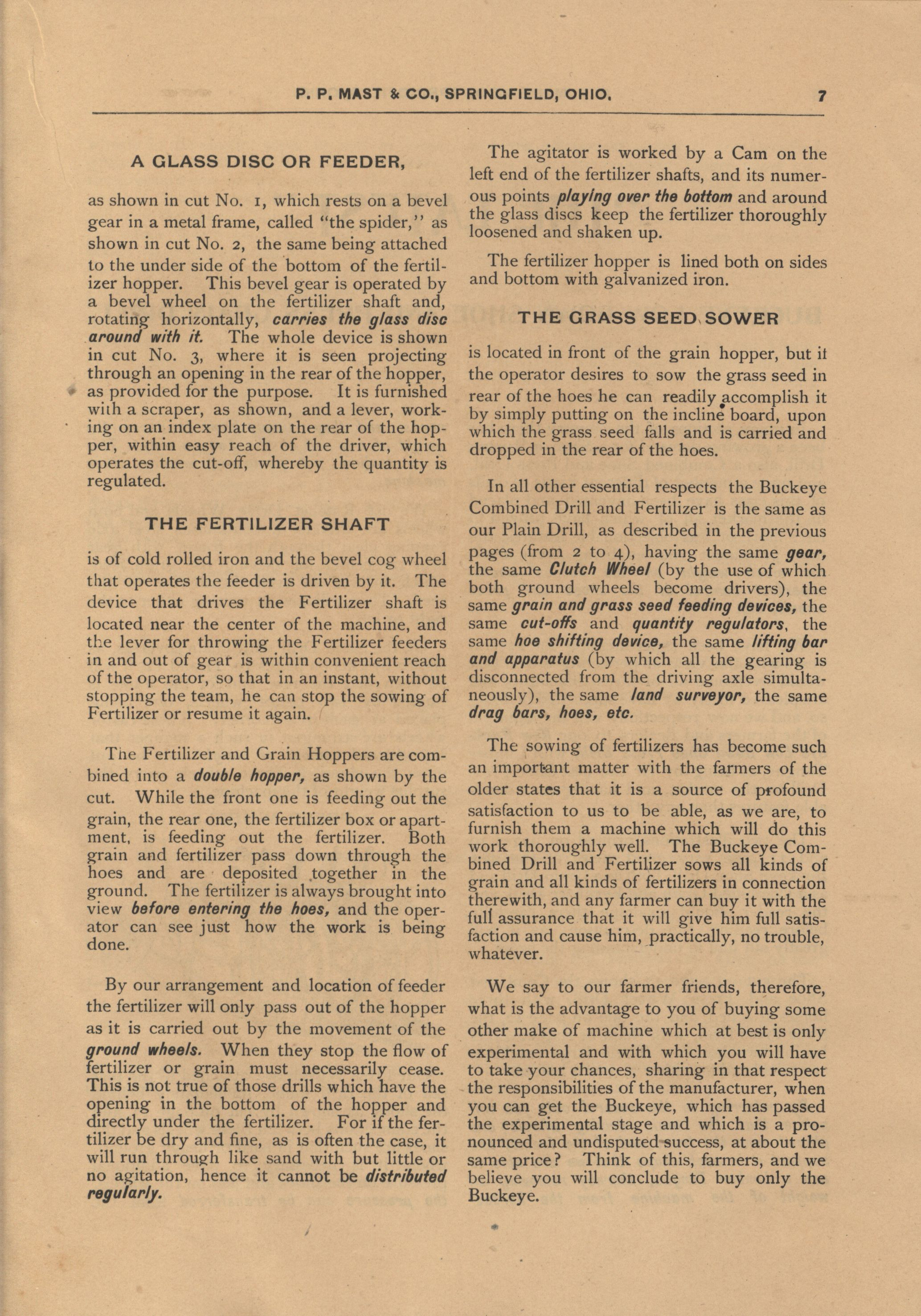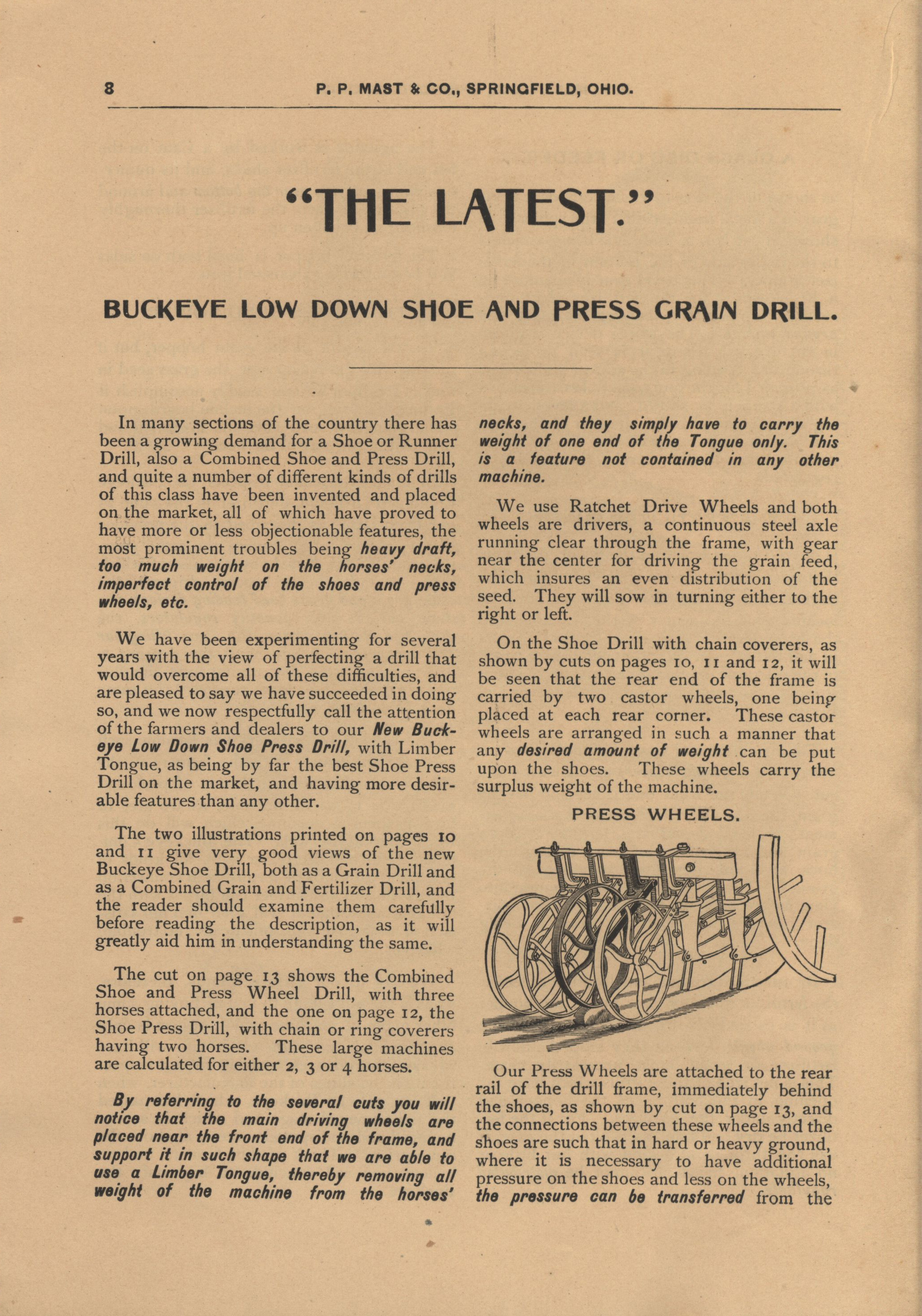 - "P. P. Mast and Company Grain Drills and Cider Mills catalog", Agricultural Machinery Literature Collection, Iowa State University Library Digital Collections