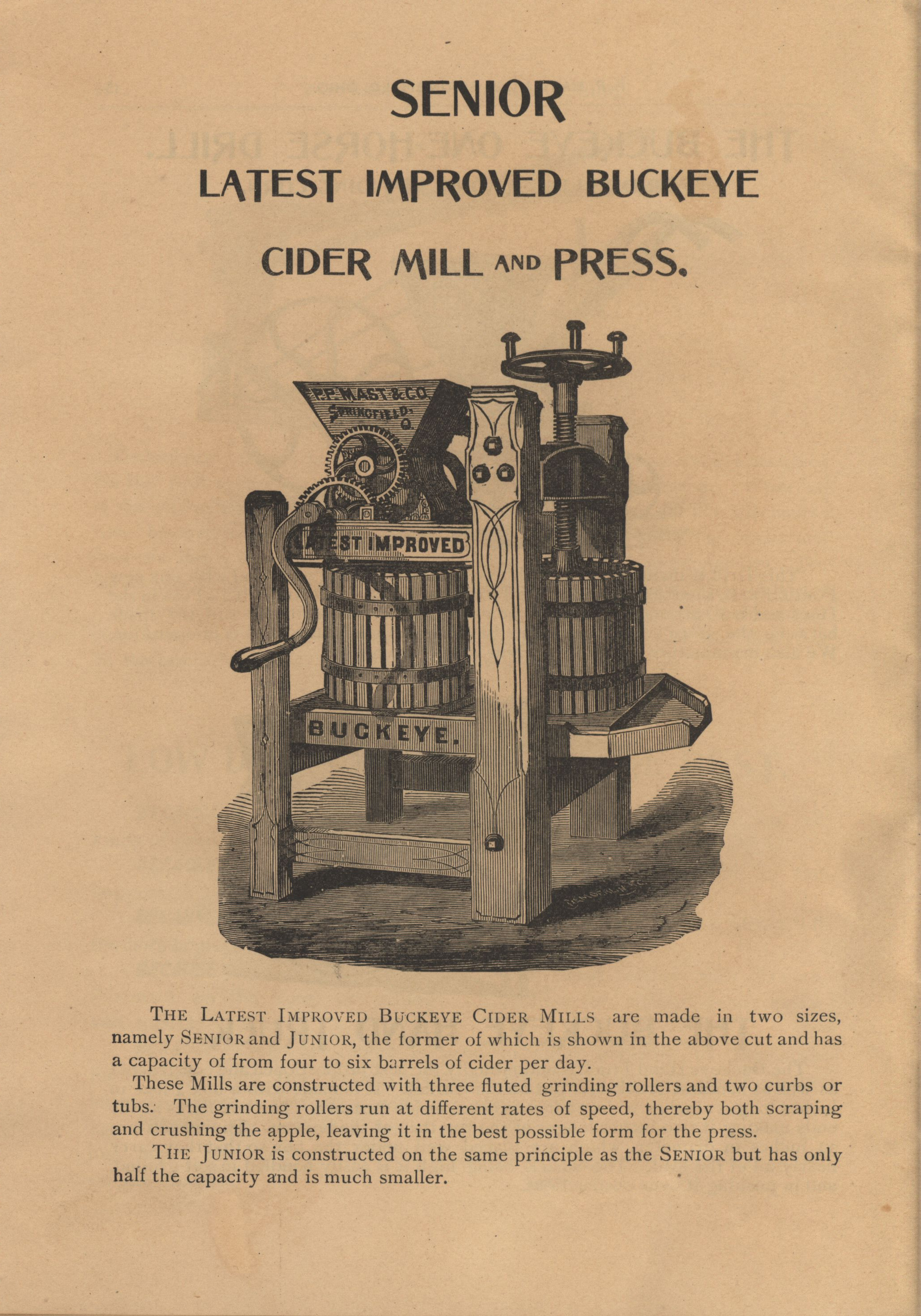 - Illustrated catalog describing the grain drill and cider mills offered by the P. P. Mast and Company.