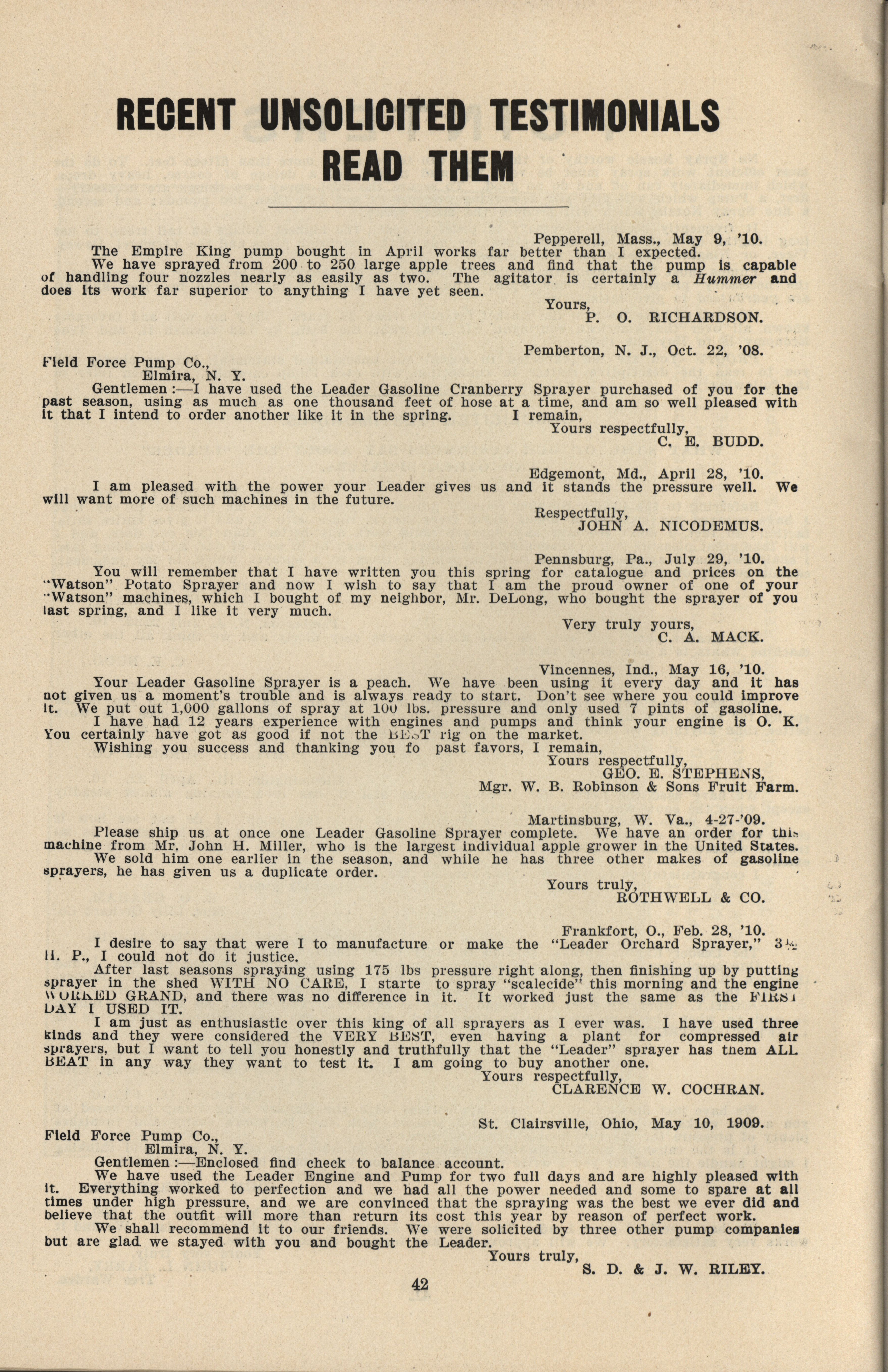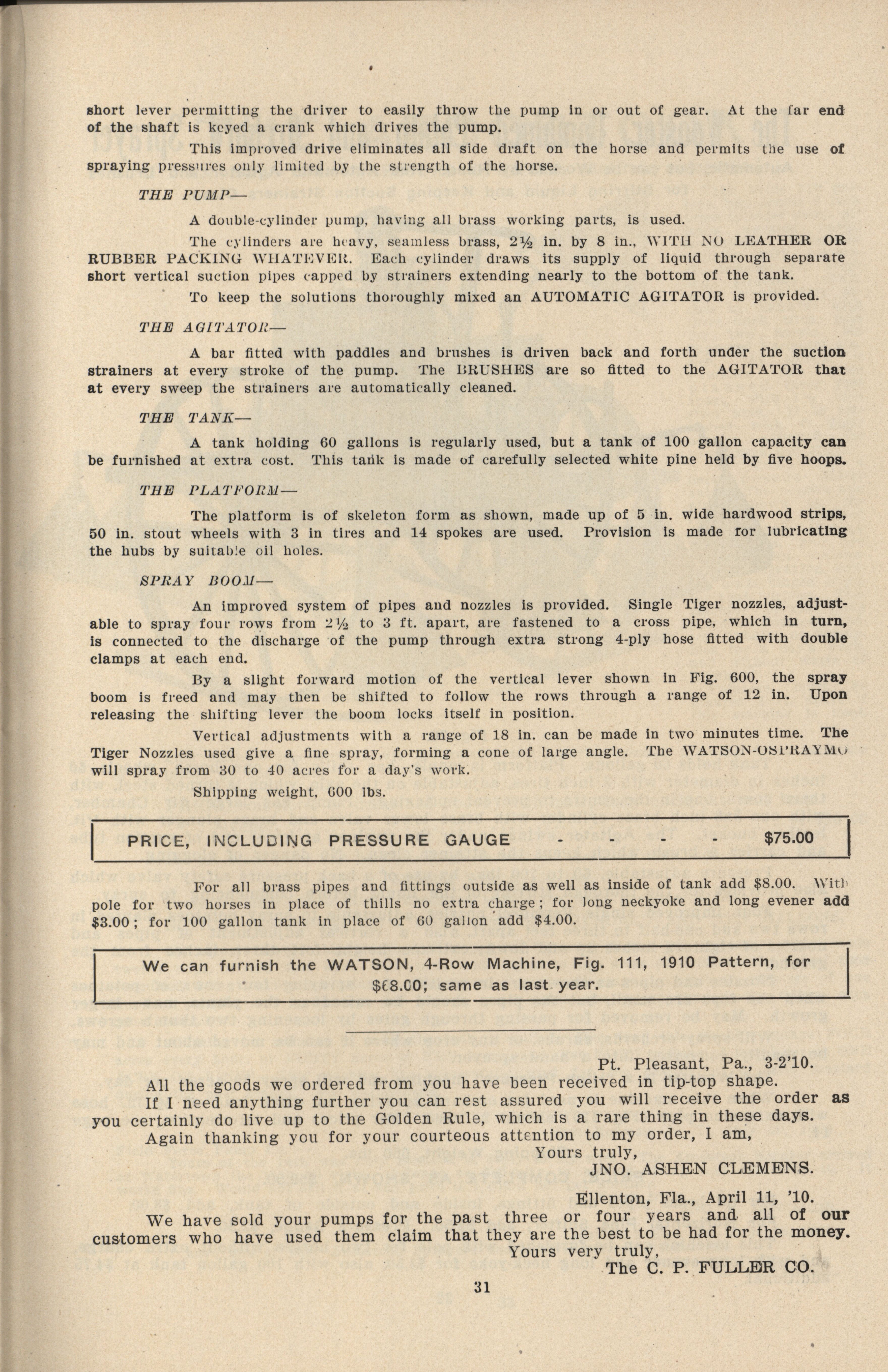 - "Brackett, Shaw and Lunt Company 1911 Ospraymo catalog", Agricultural Machinery Literature Collection, Iowa State University Library Digital Collections