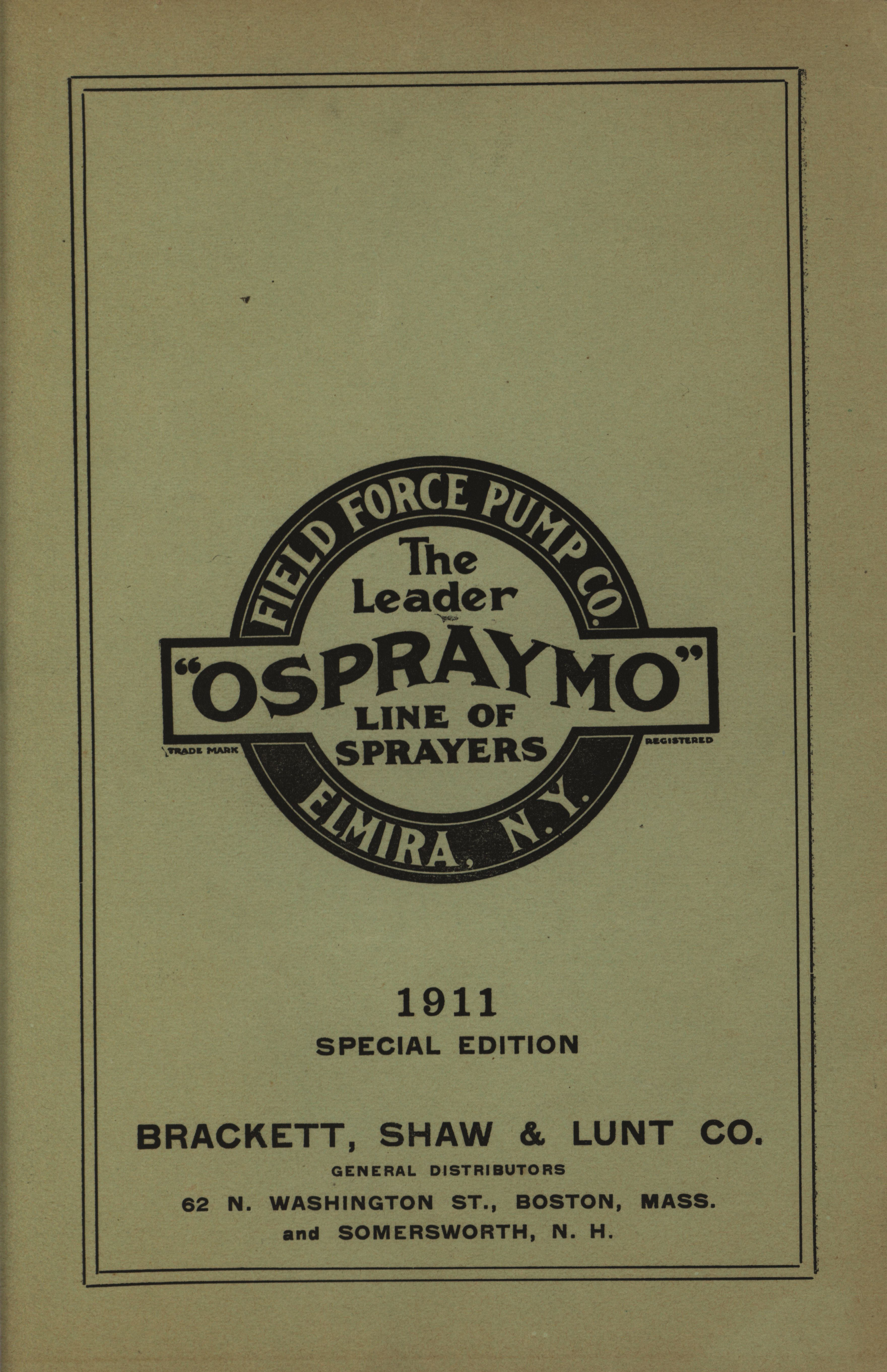 - Illustrated catalog describing the Ospraymo line of sprayers offered by the Brackett, Shaw and Lunt Company in 1911.