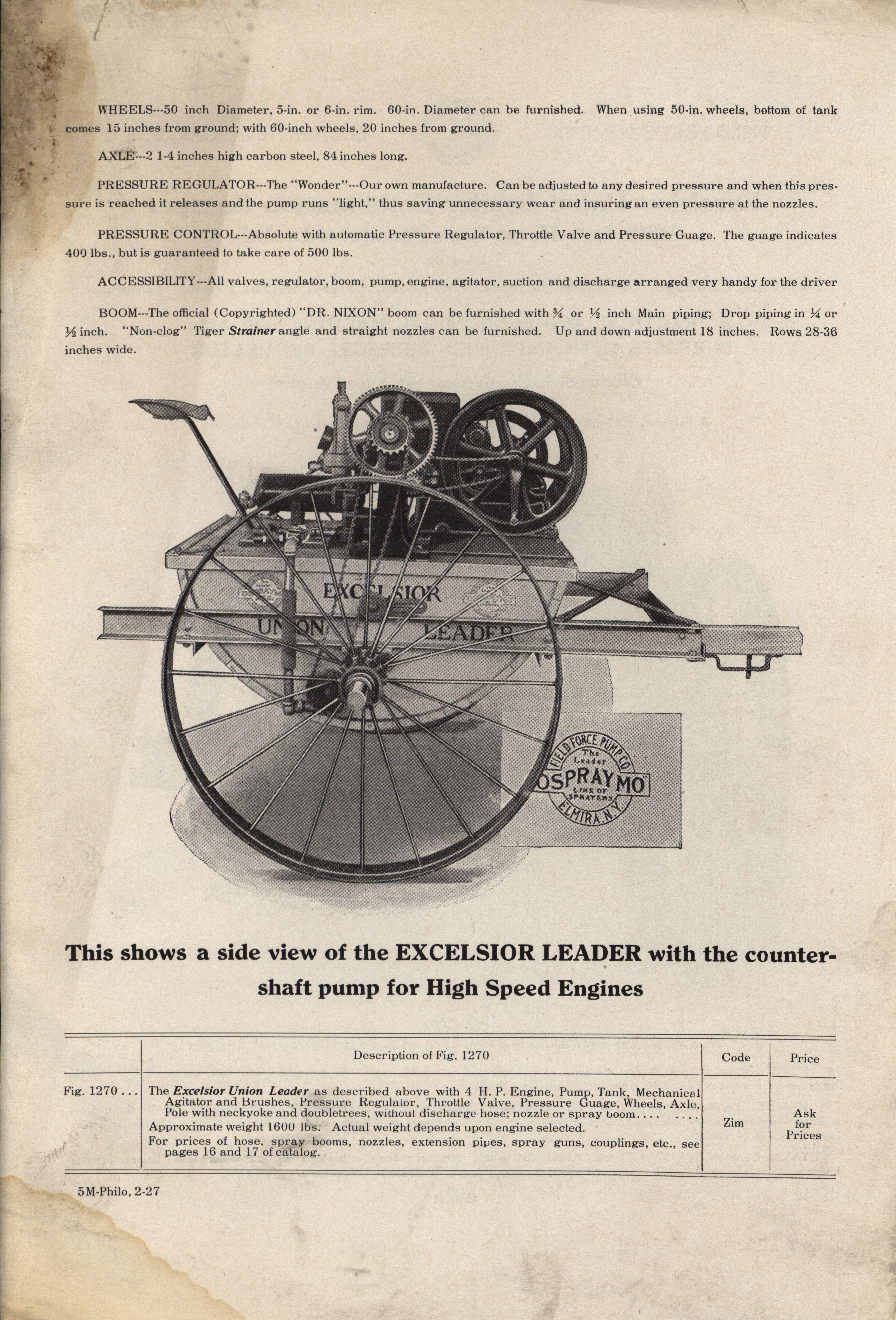 - "Field Force Pump Company Excelsior Union Leader Combination Sprayer advertisement", Agricultural Machinery Literature Collection, Iowa State University Library Digital Collections