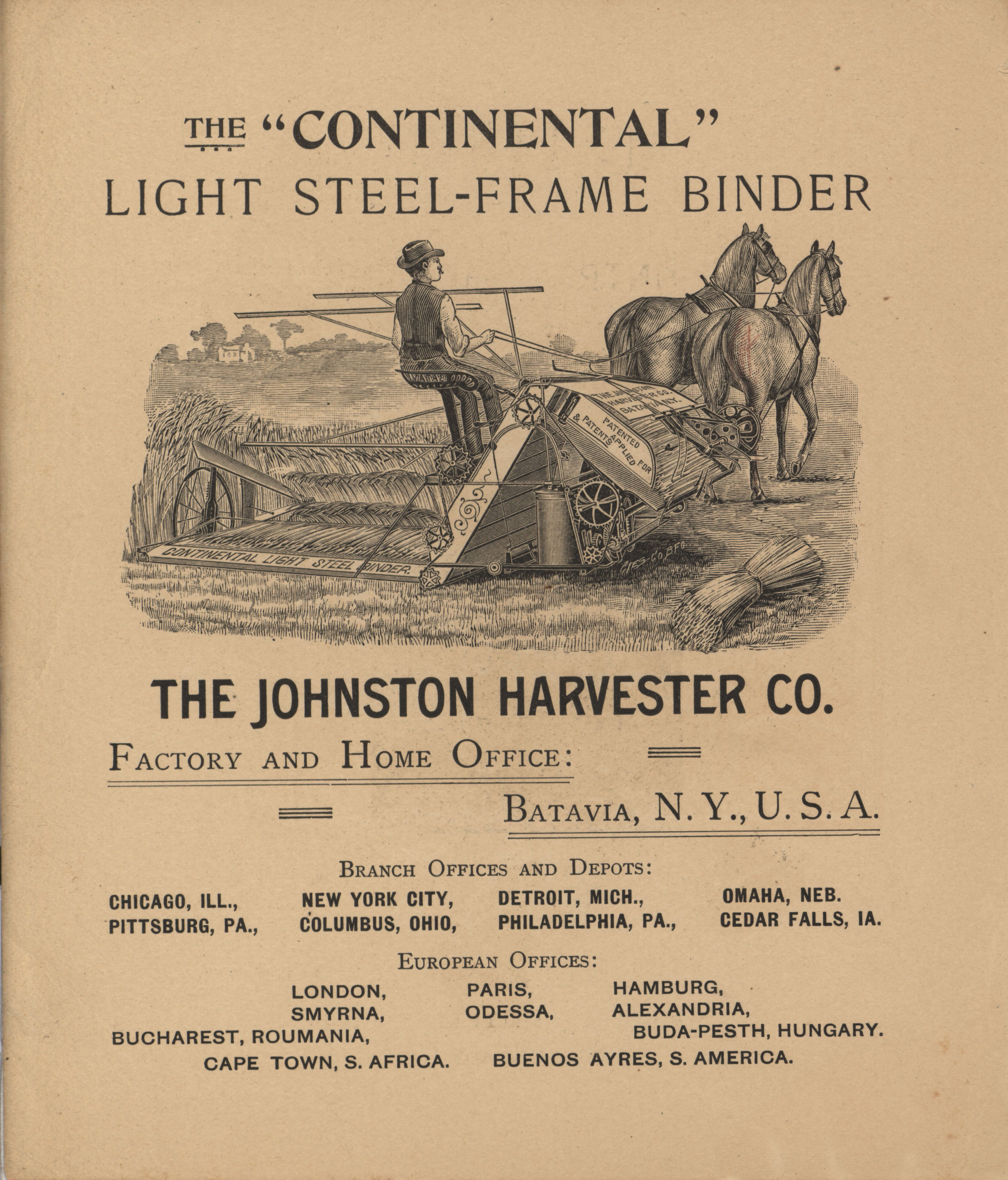 - Illustrated advertisement for the Johnston Harvester Company including a poem entitled, "Gray's Elegy".
