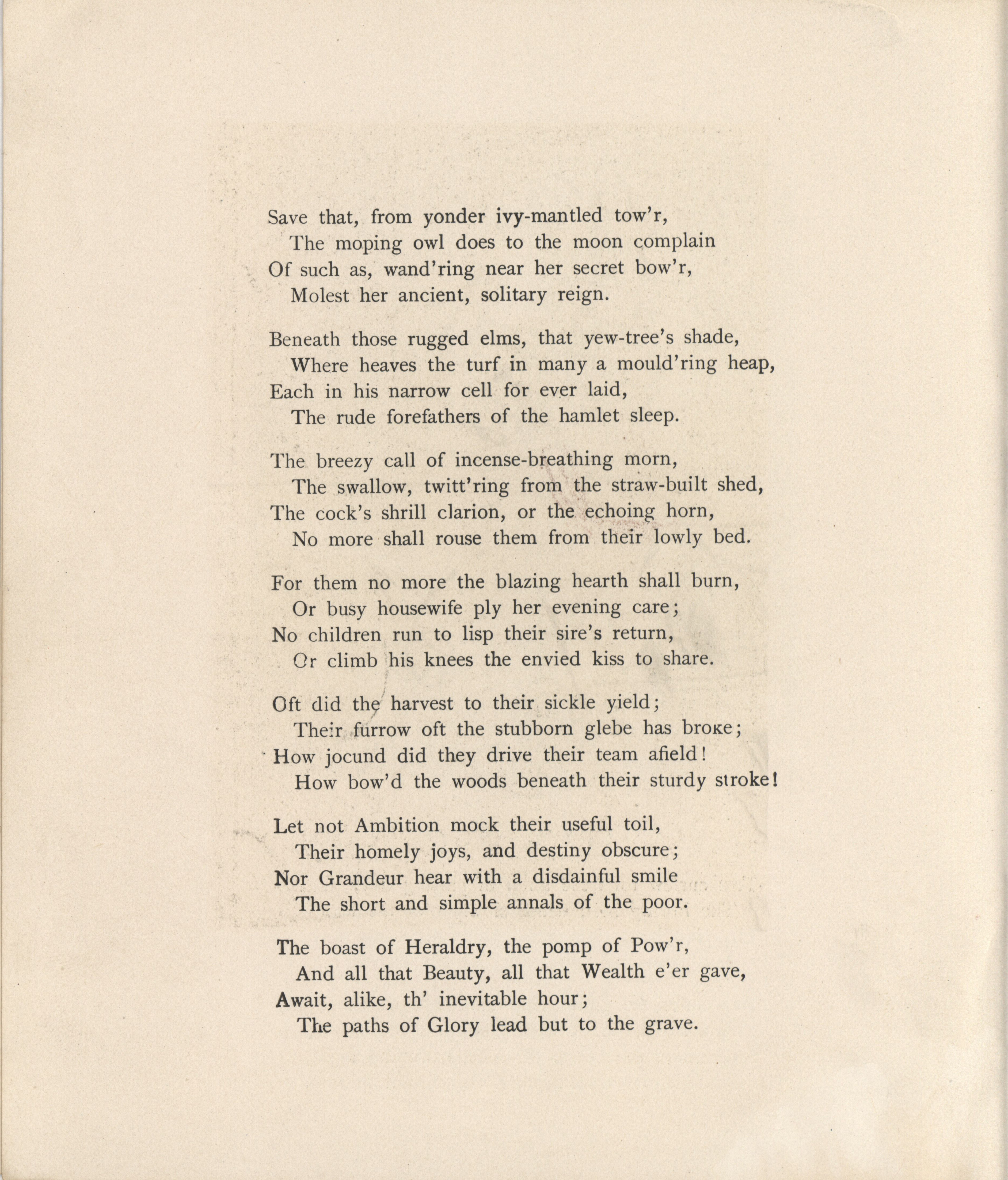 - "Johnston Harvester Company Gray's Elegy advertisement booklet", Agricultural Machinery Literature Collection, Iowa State University Library Digital Collections