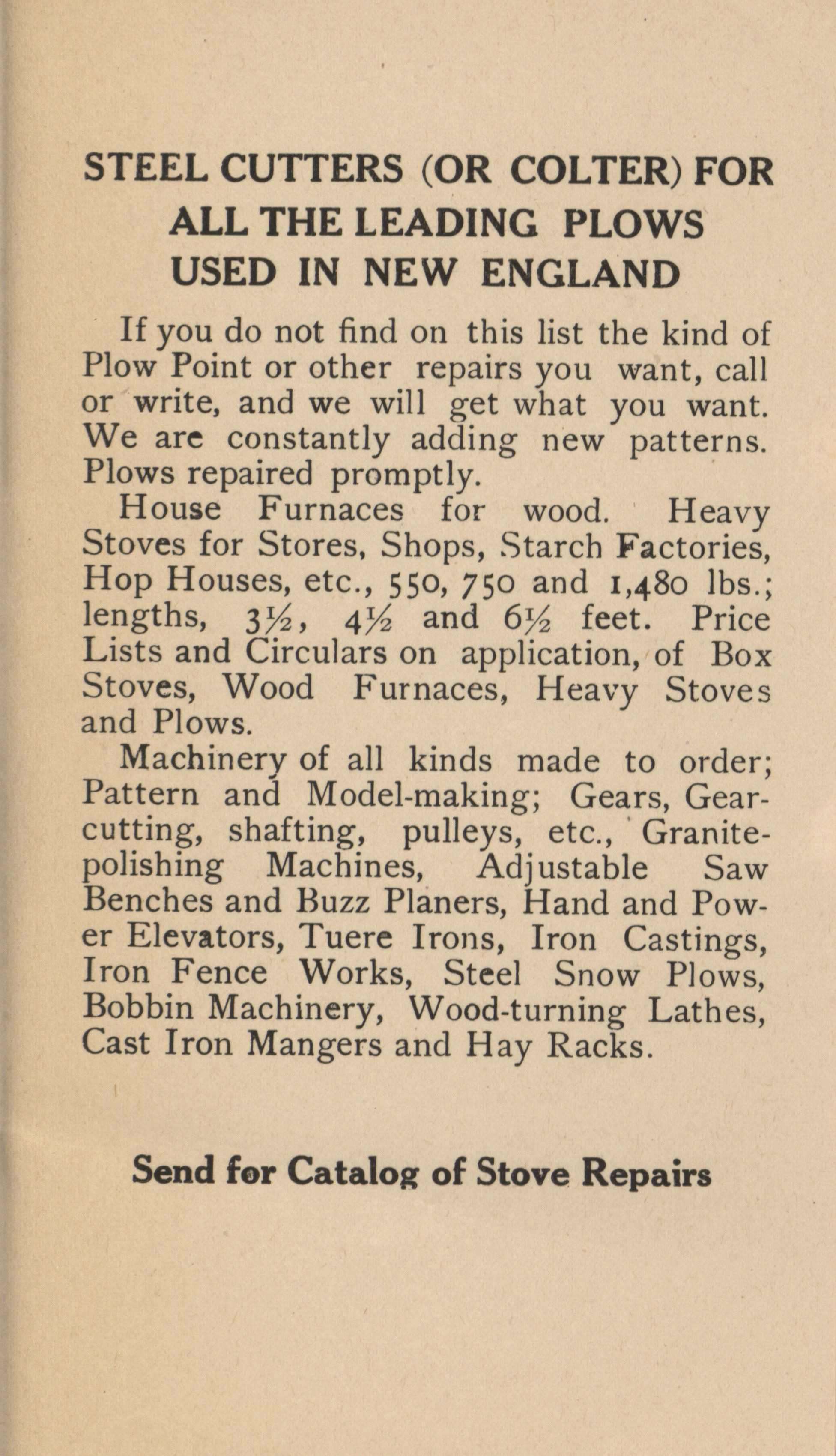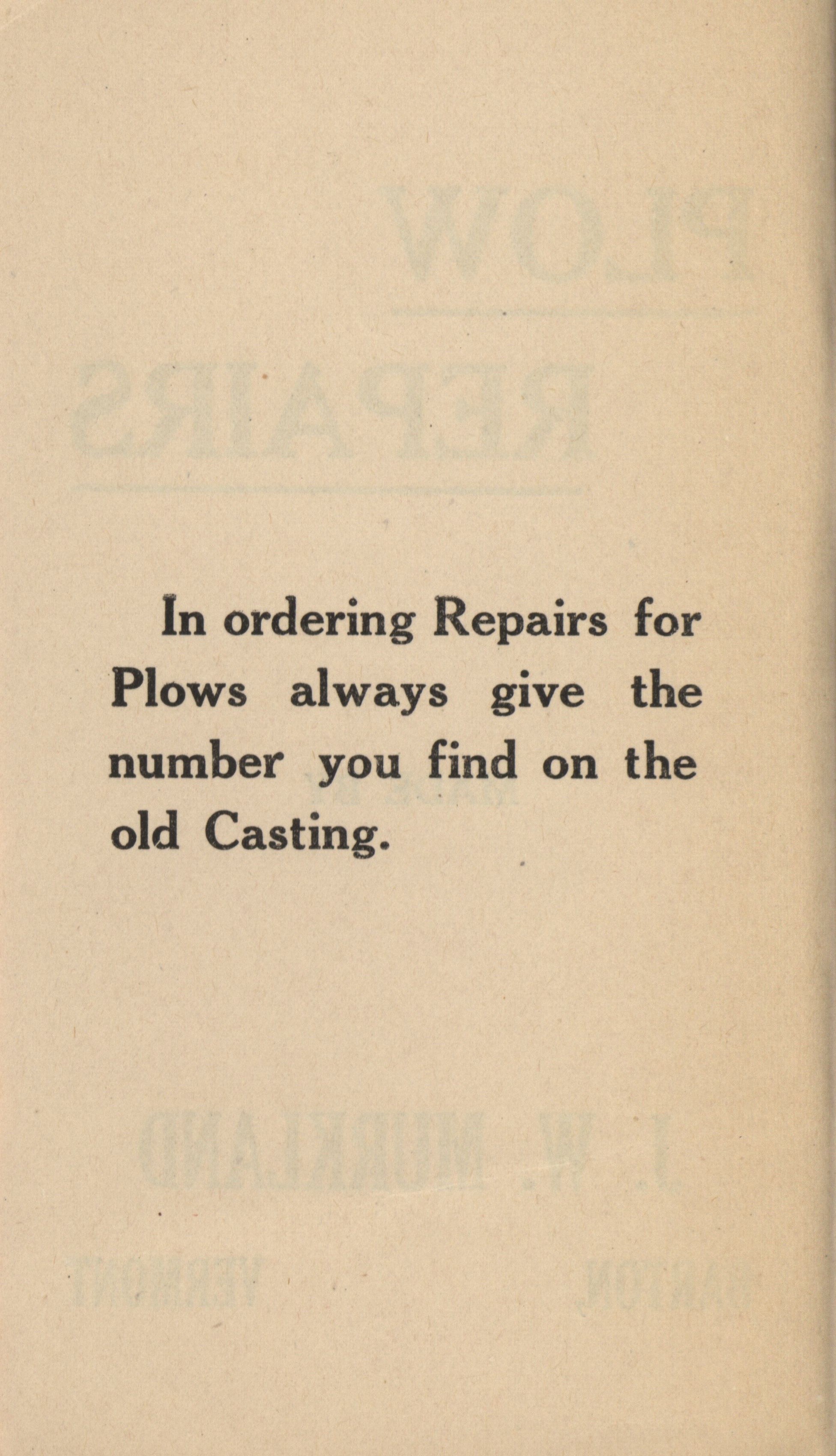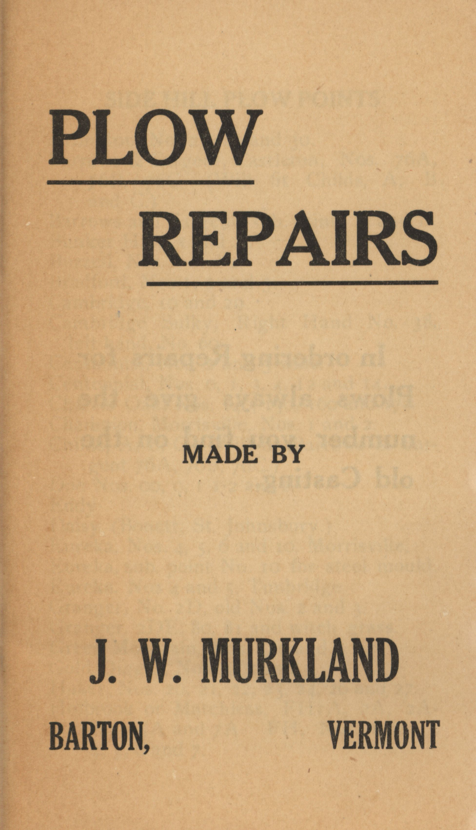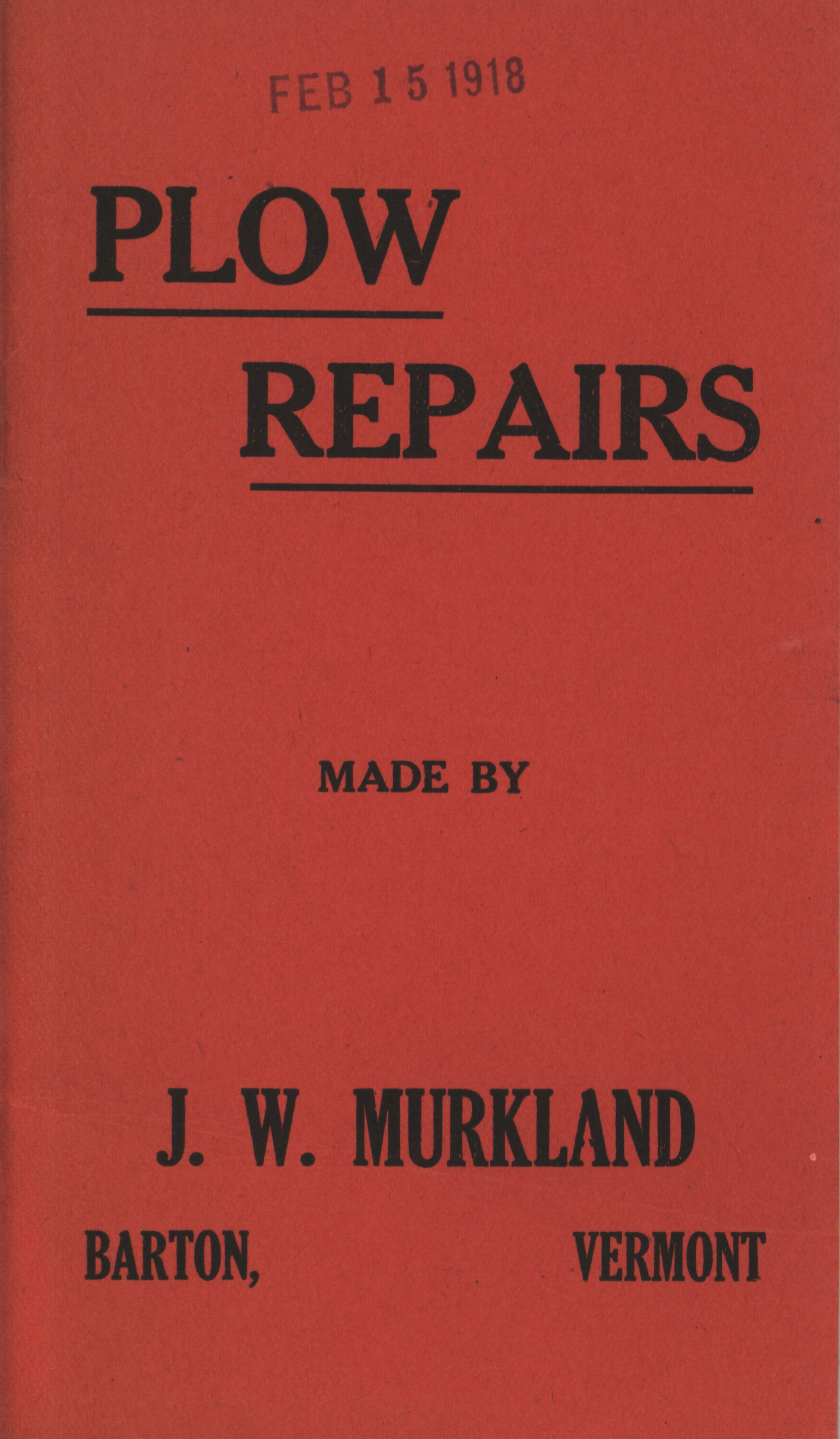 J. W. Murkland 1918 Plow Repairs catalog Item Info