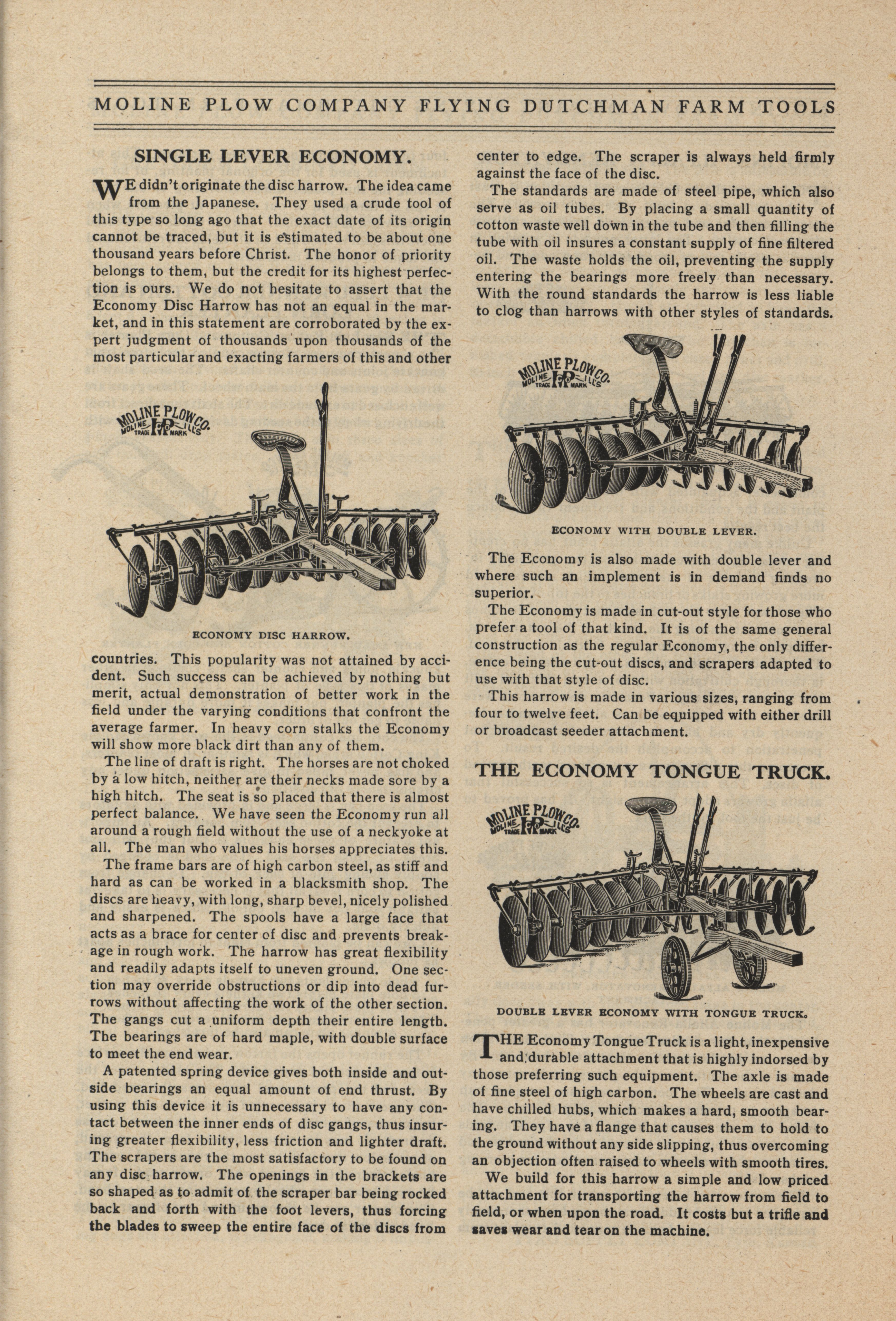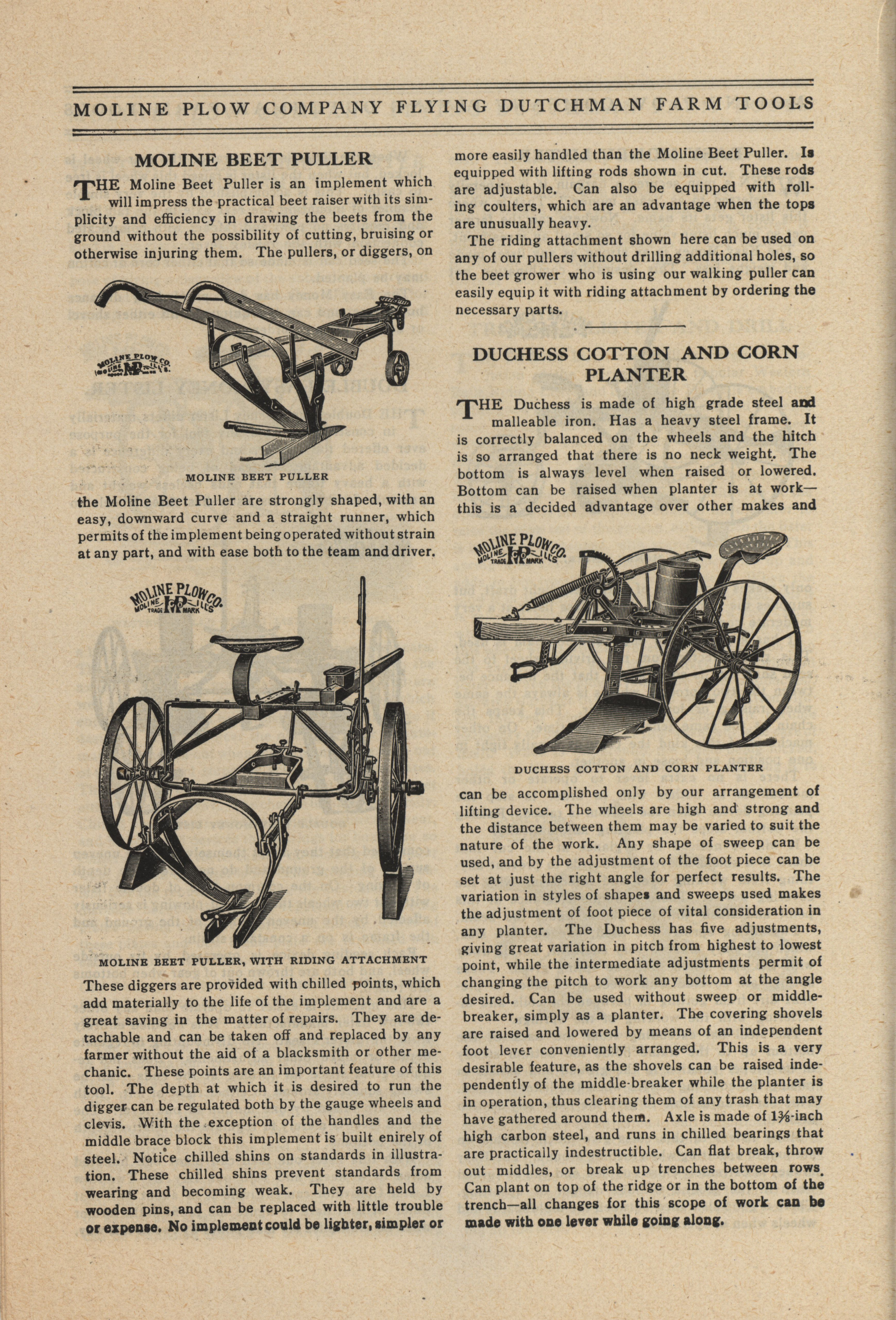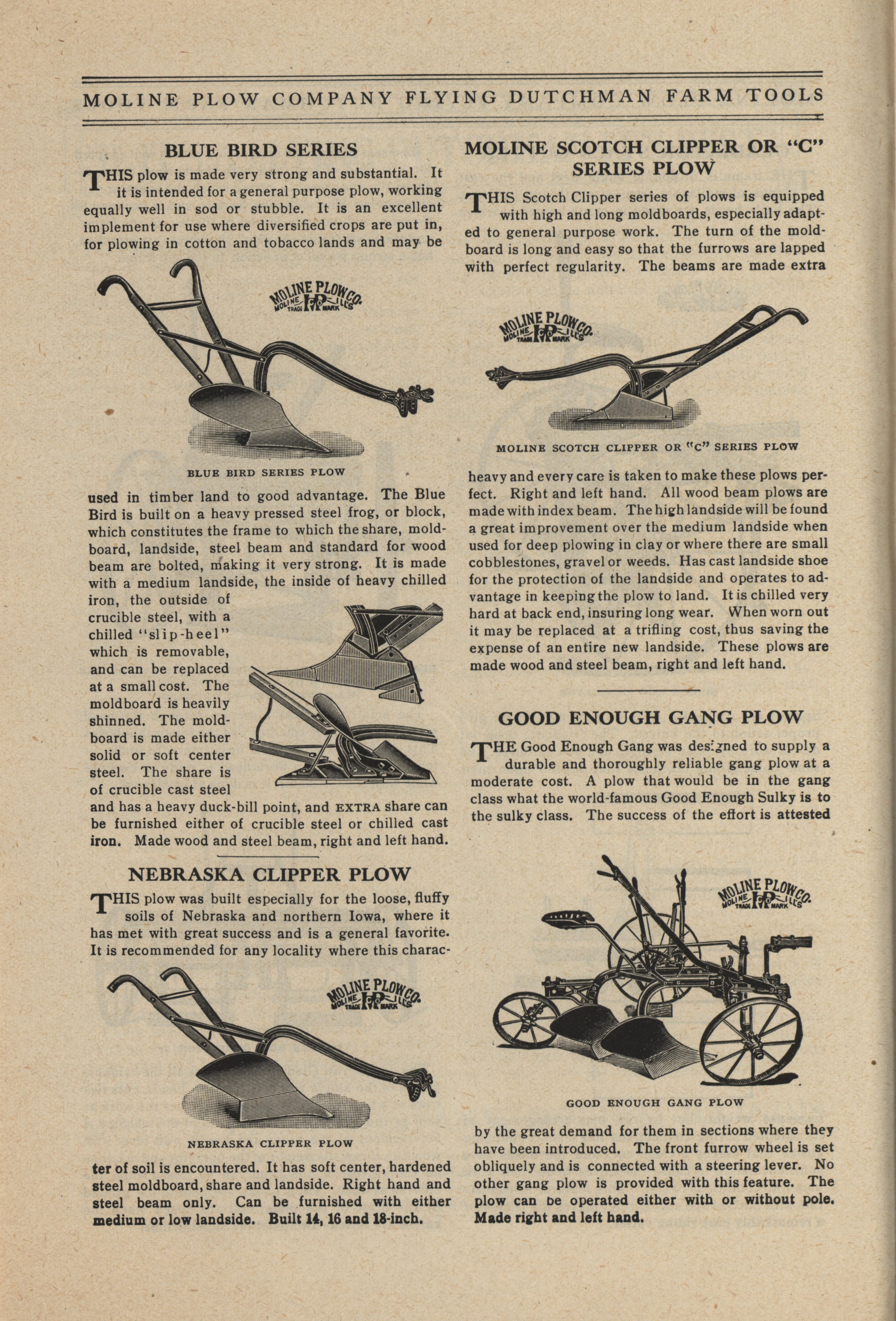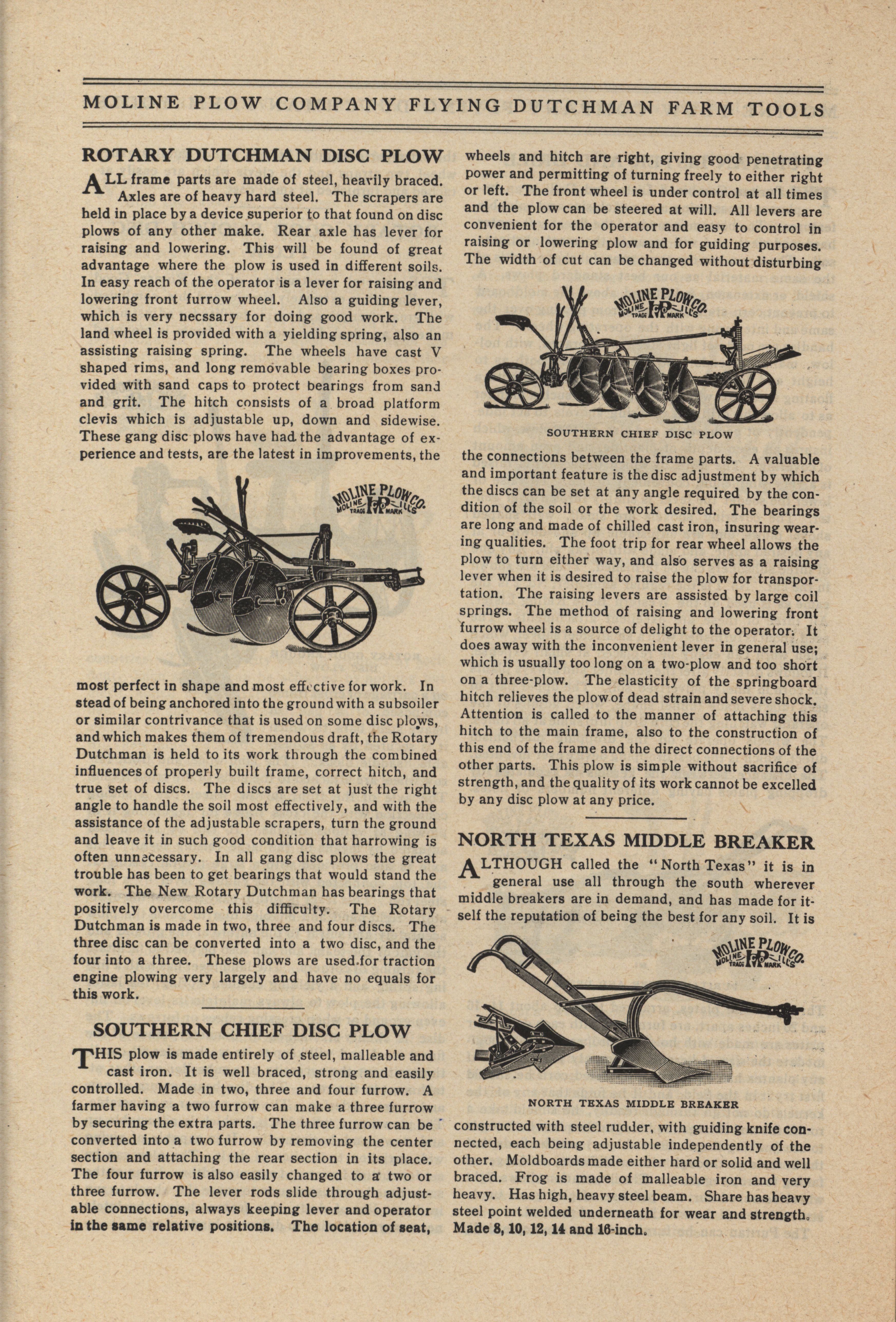 - "Moline Plow Company 1908 catalog", Agricultural Machinery Literature Collection, Iowa State University Library Digital Collections