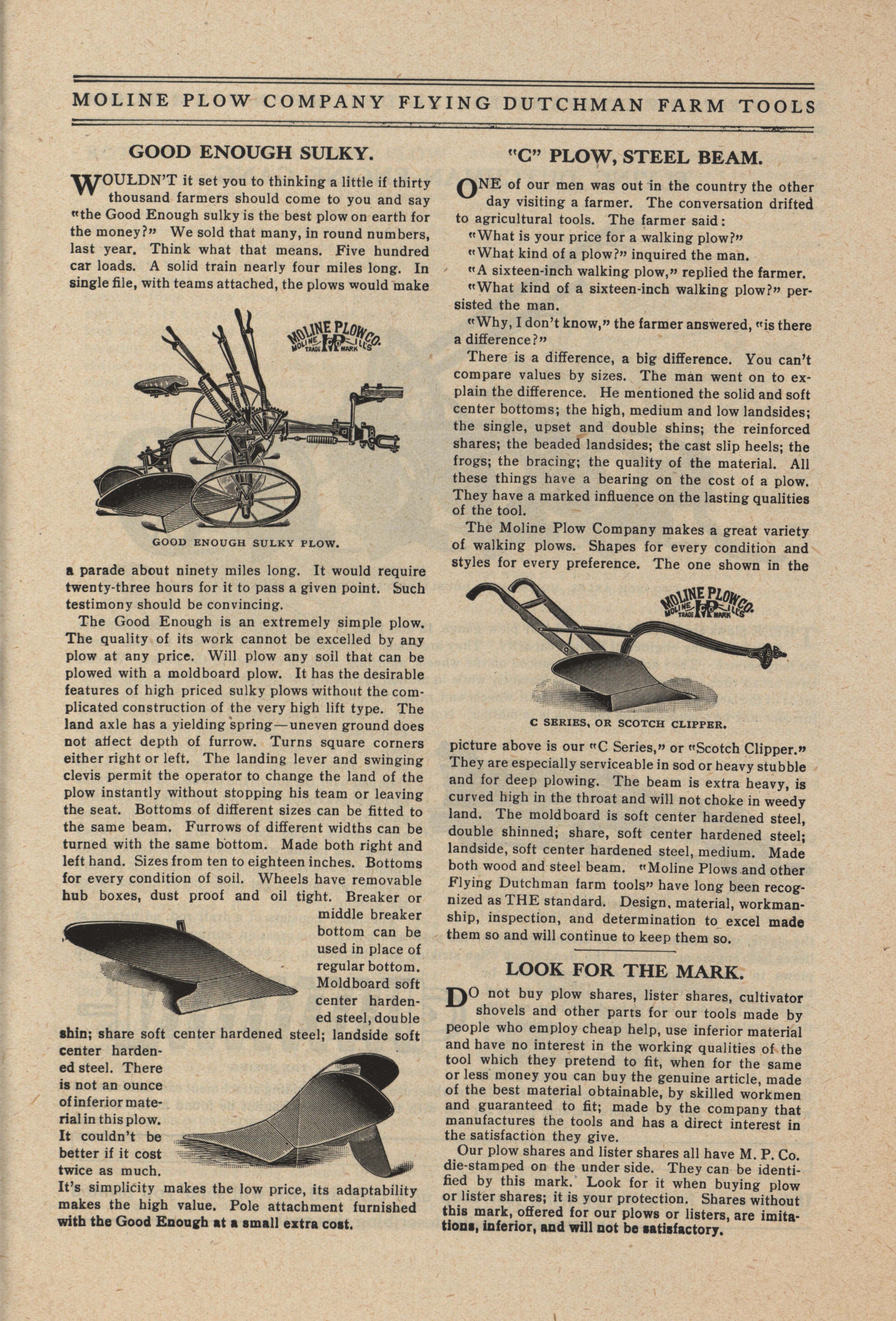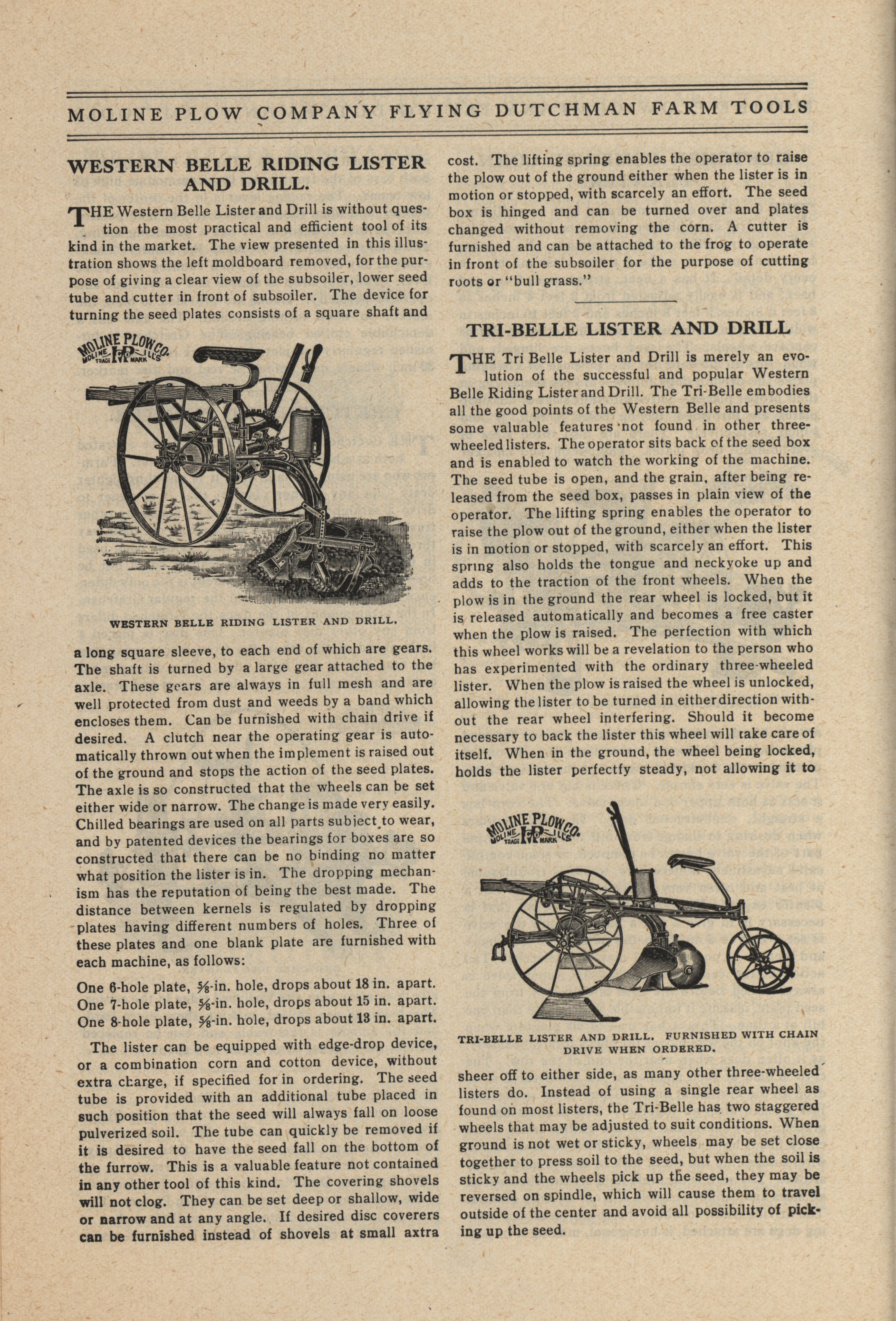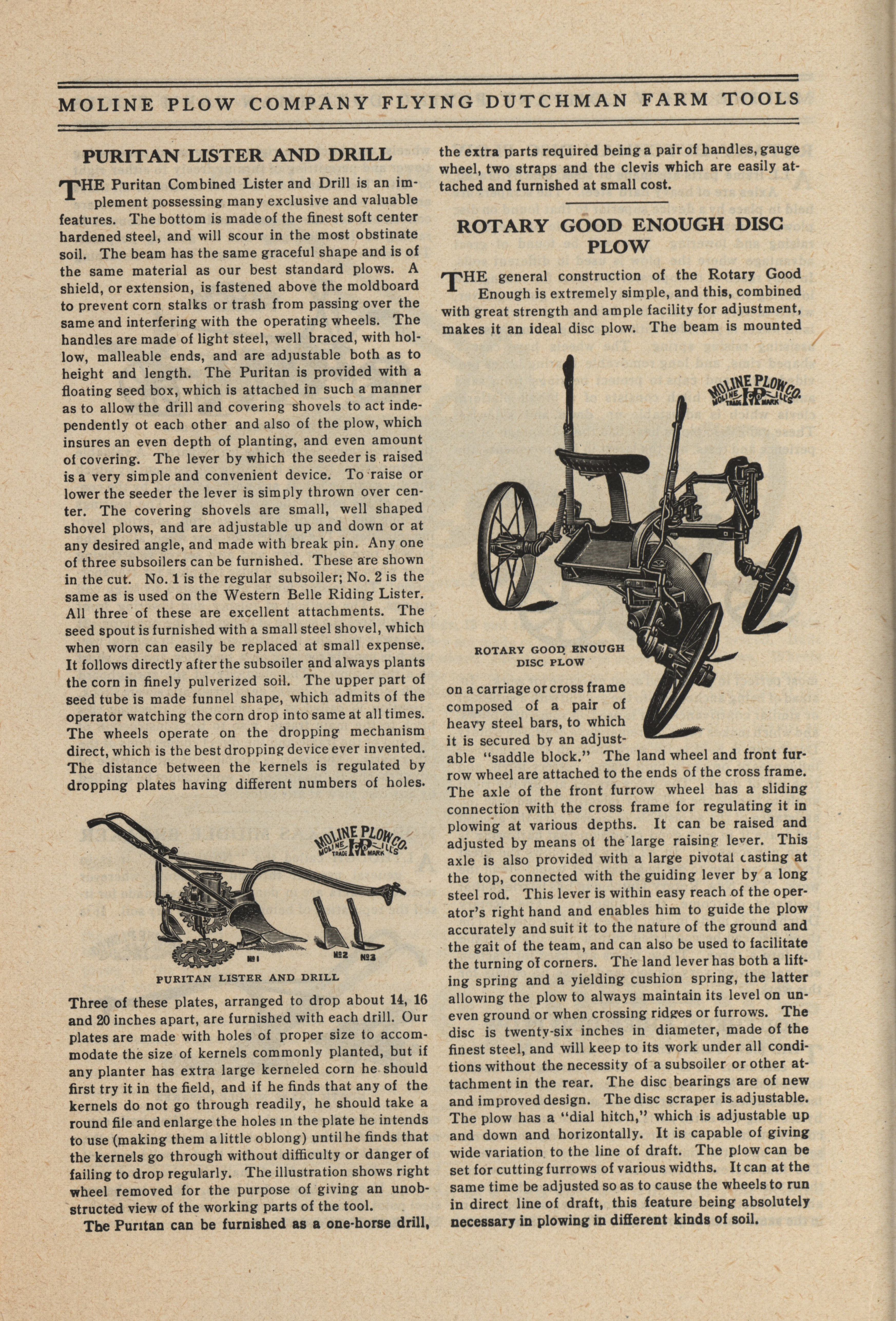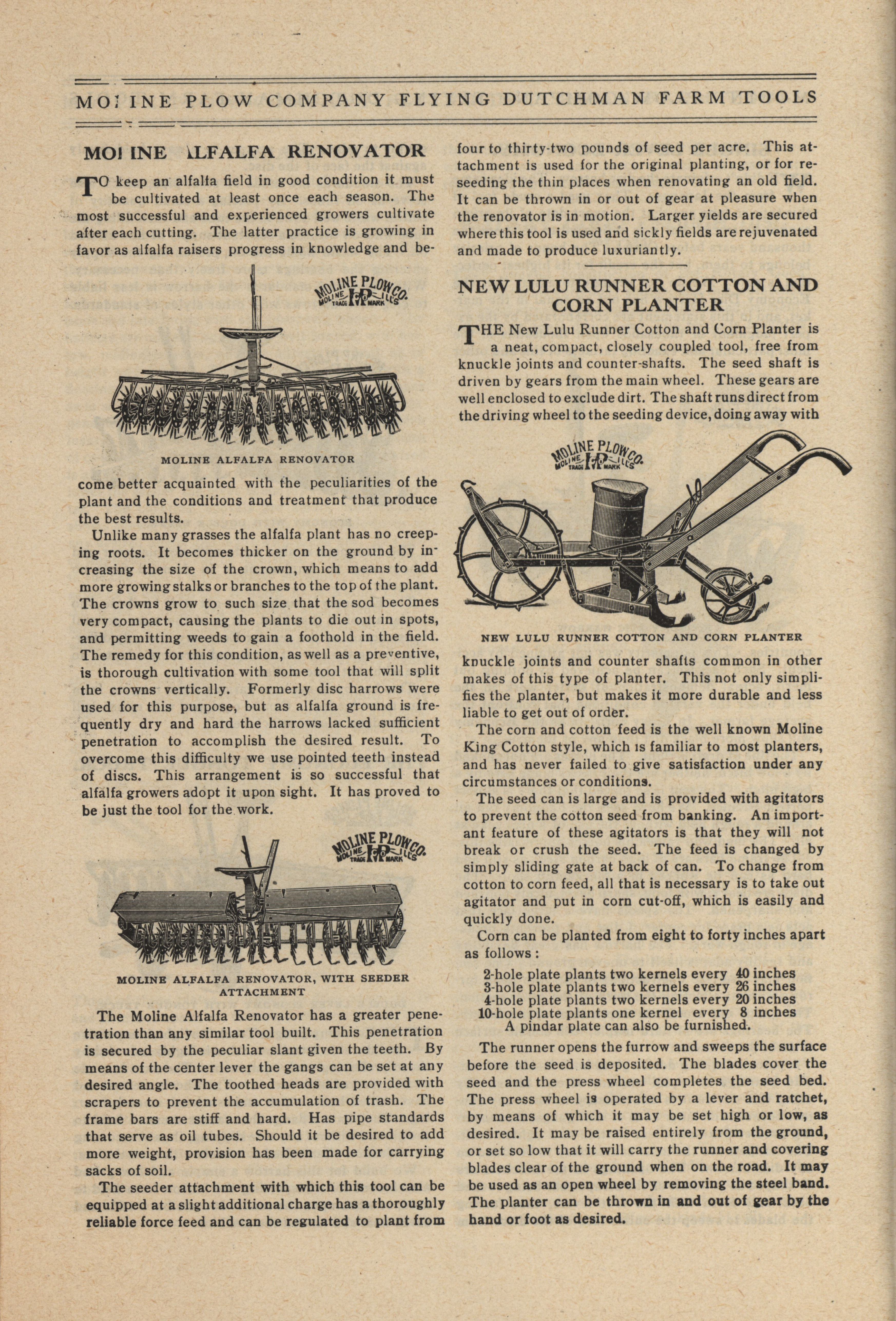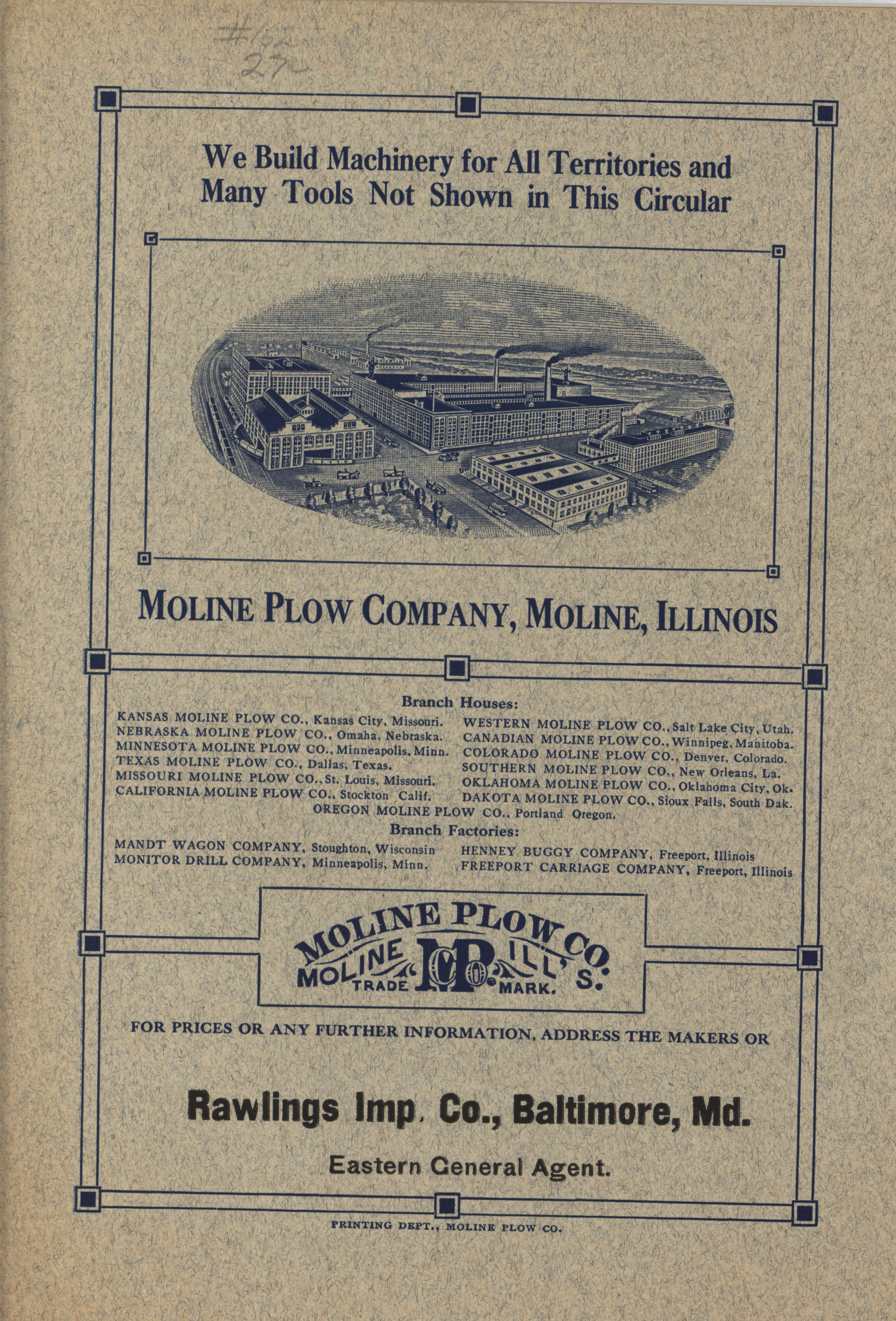 - "Moline Plow Company 1908 catalog", Agricultural Machinery Literature Collection, Iowa State University Library Digital Collections