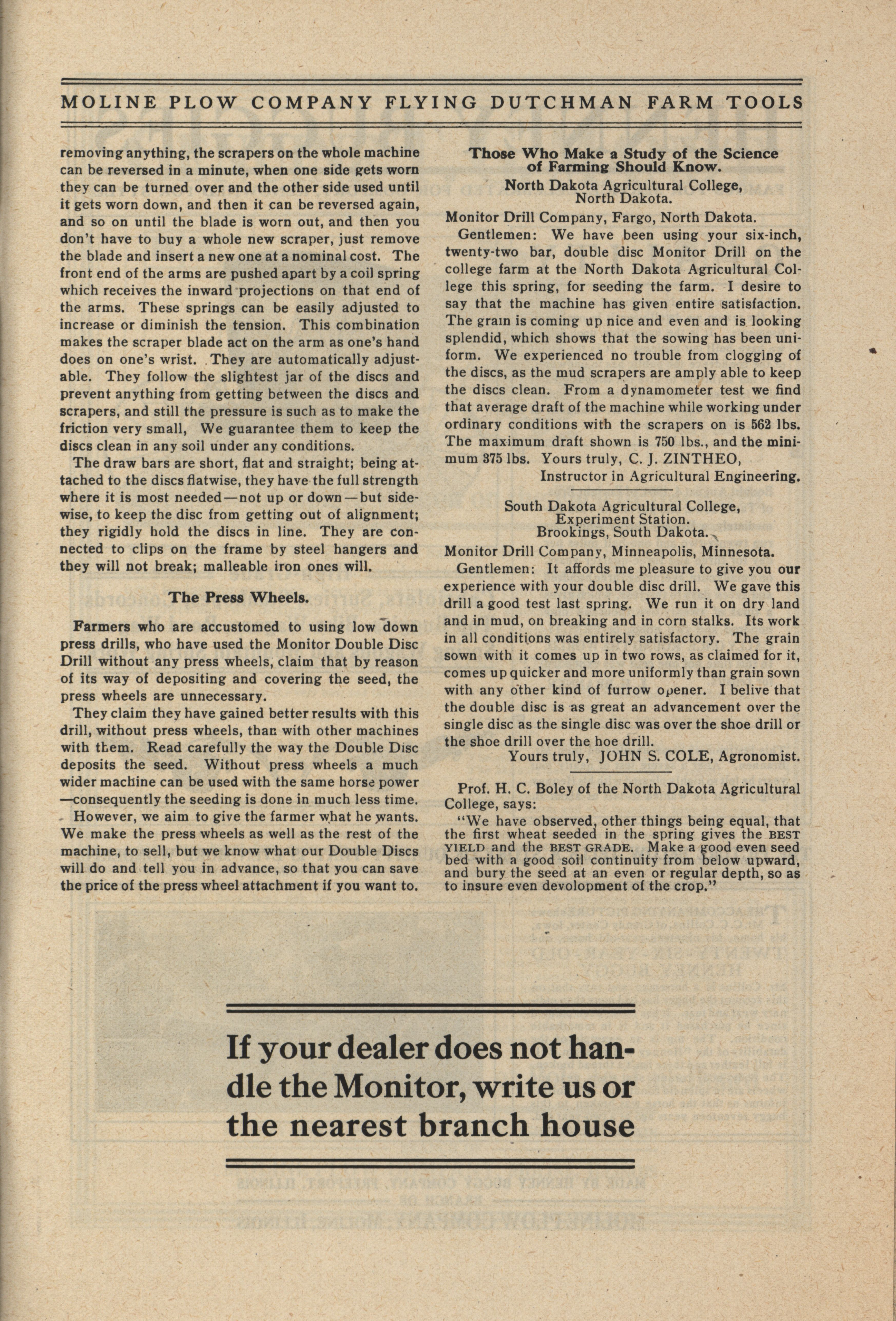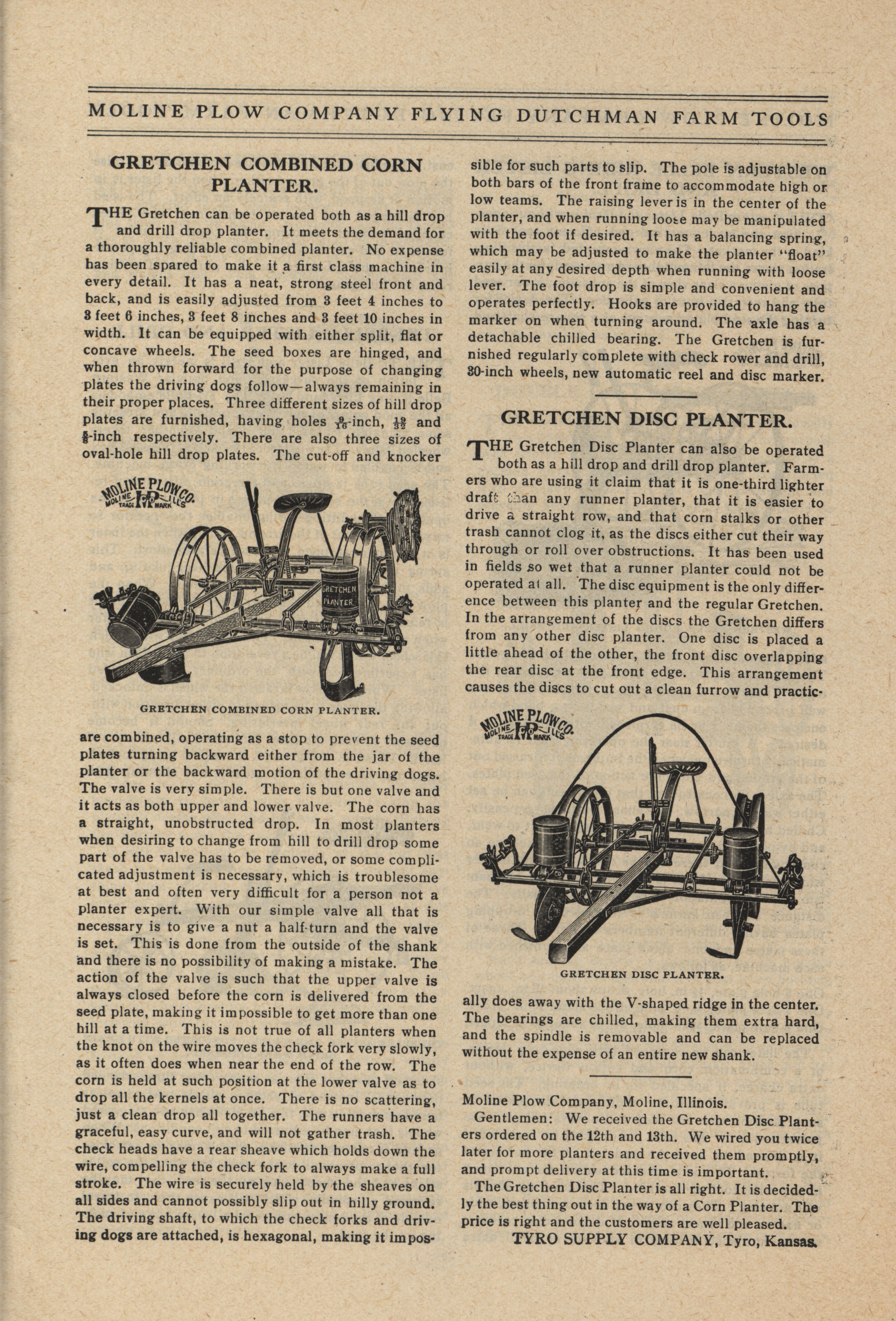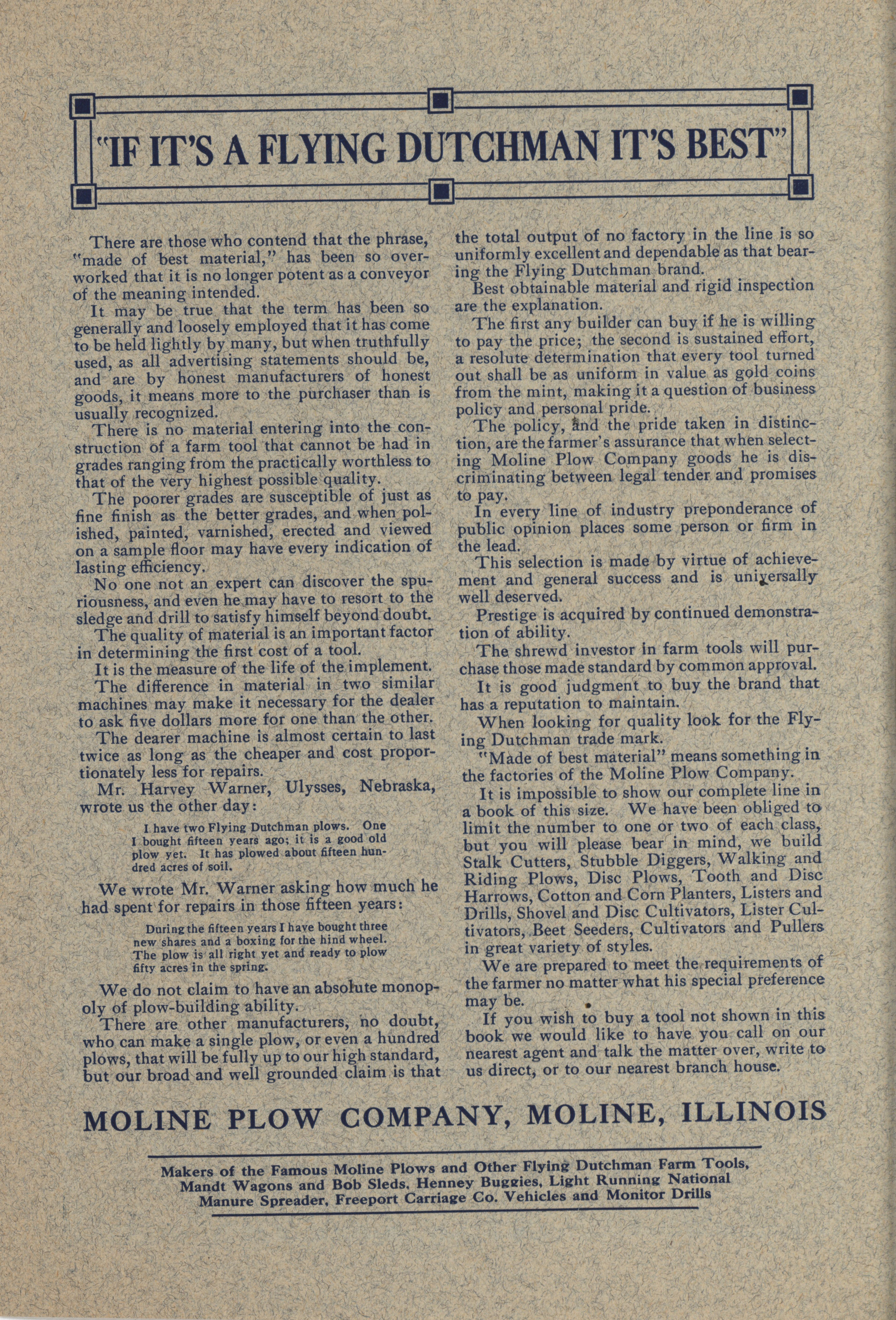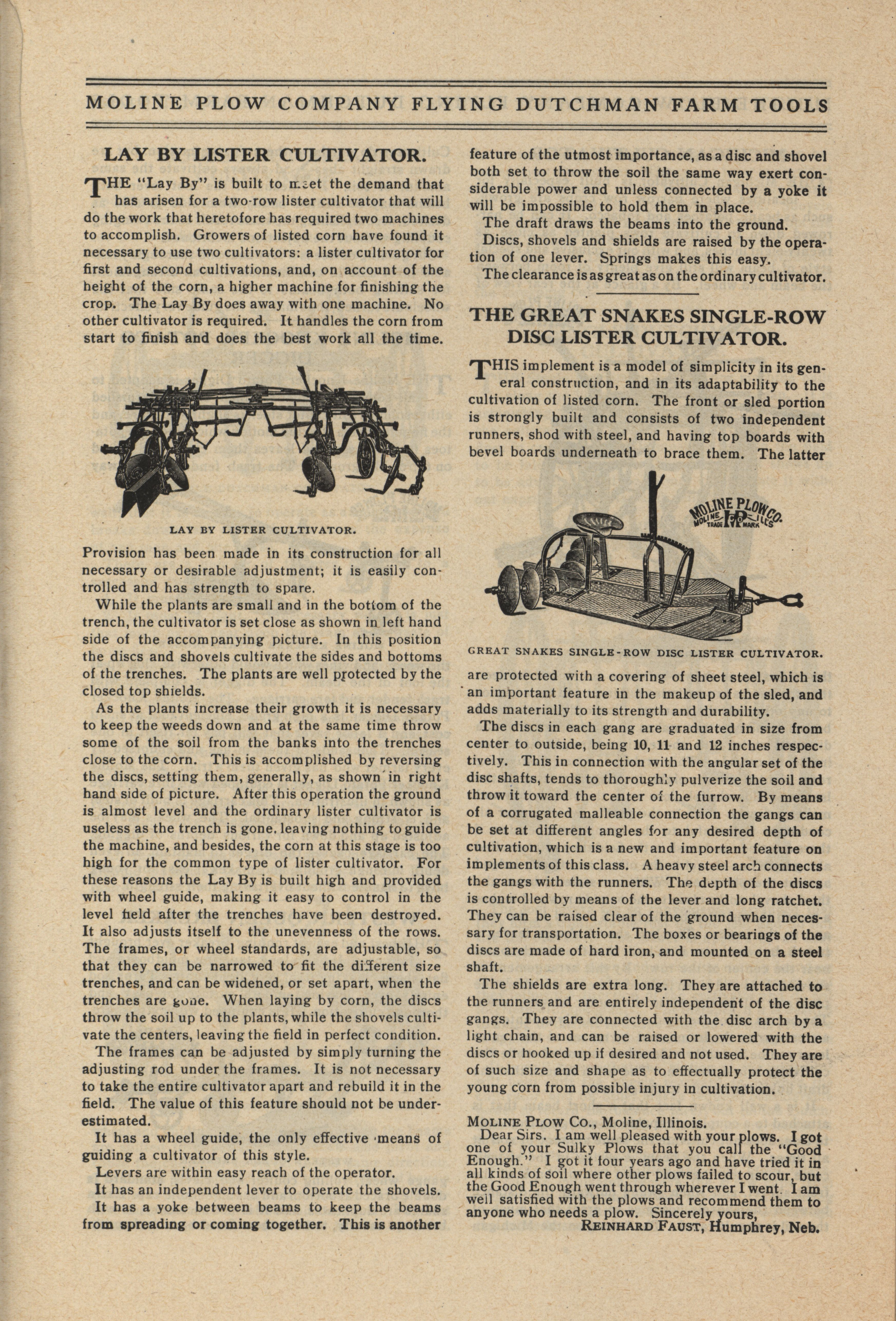 - "Moline Plow Company 1908 catalog", Agricultural Machinery Literature Collection, Iowa State University Library Digital Collections