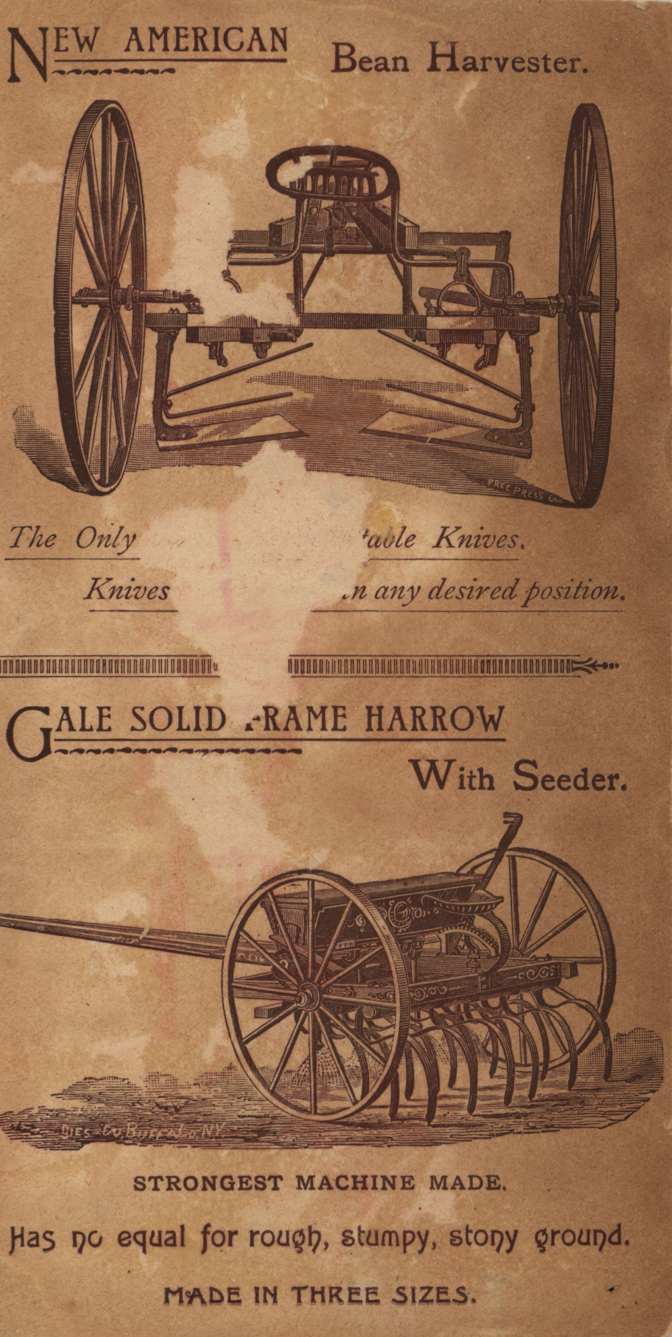 - "Gale Manufacturing Company Sulky Harrow advertisement", Agricultural Machinery Literature Collection, Iowa State University Library Digital Collections