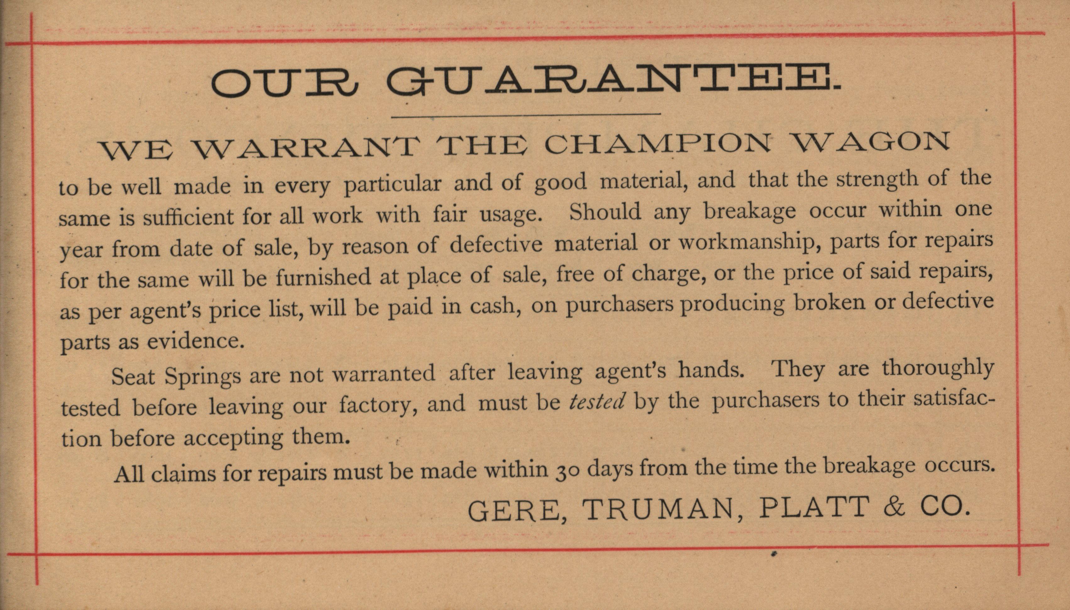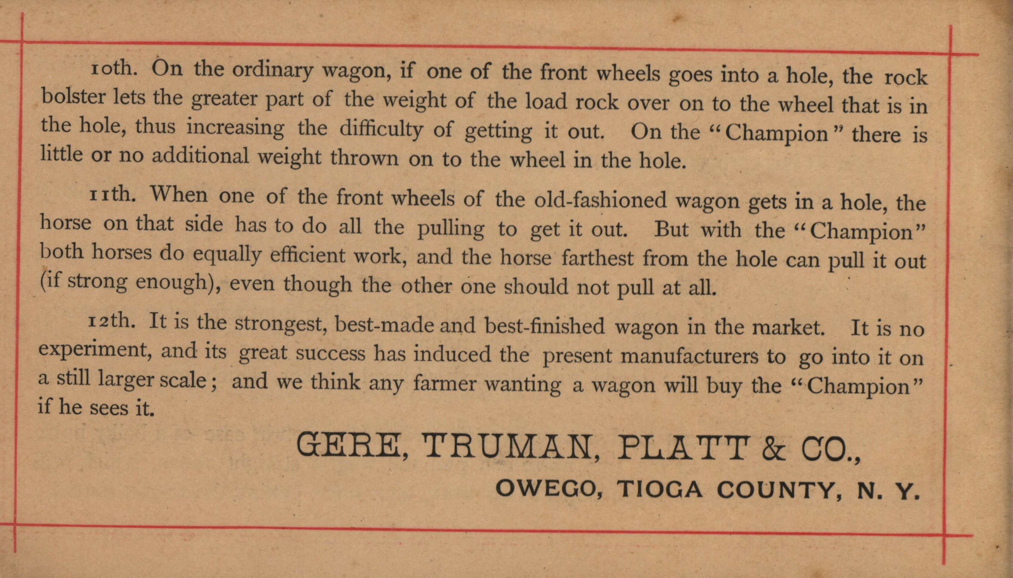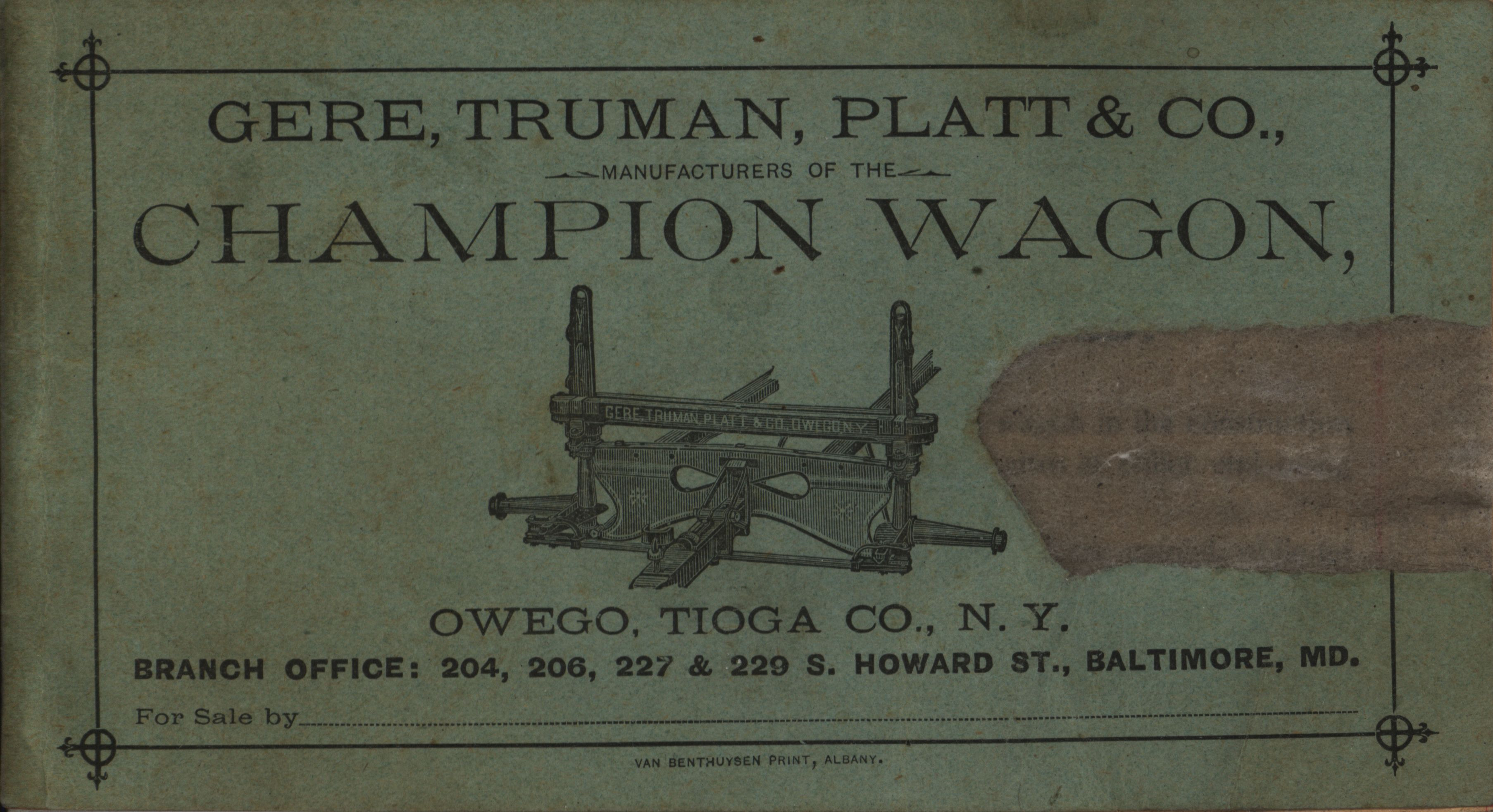 - Illustrated catalog for the champion wagon offered by the Gere, Truman, Platt and Company.