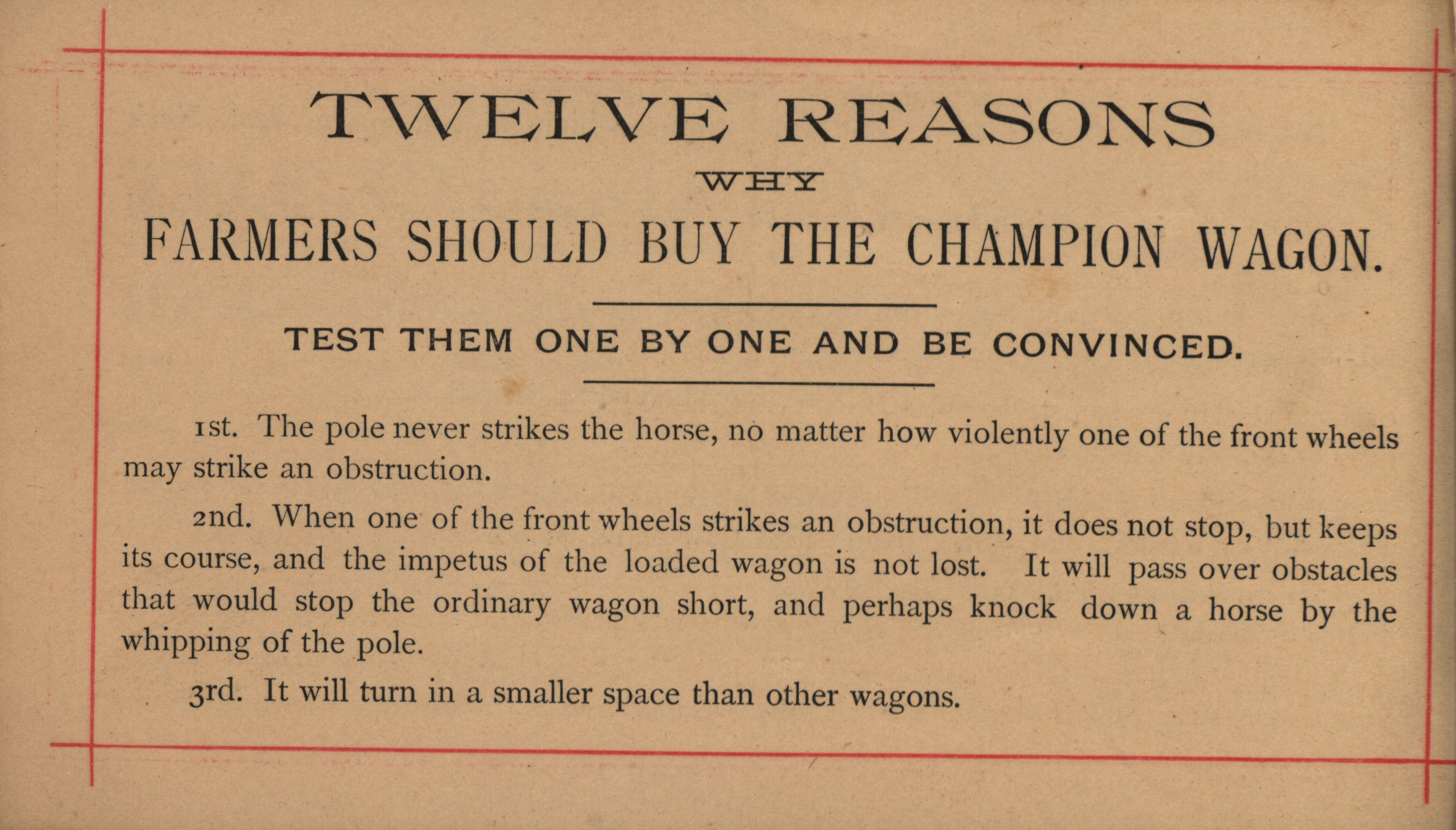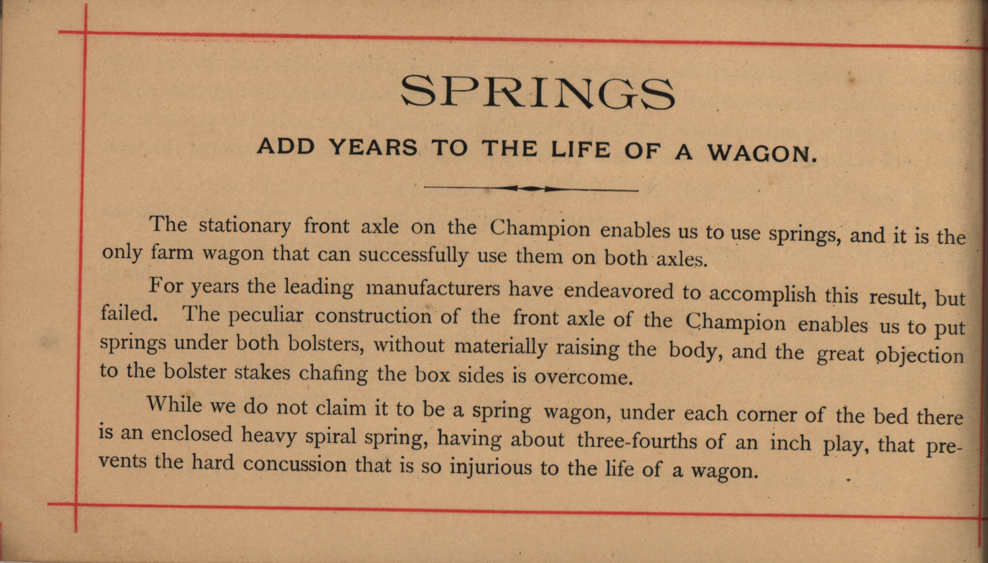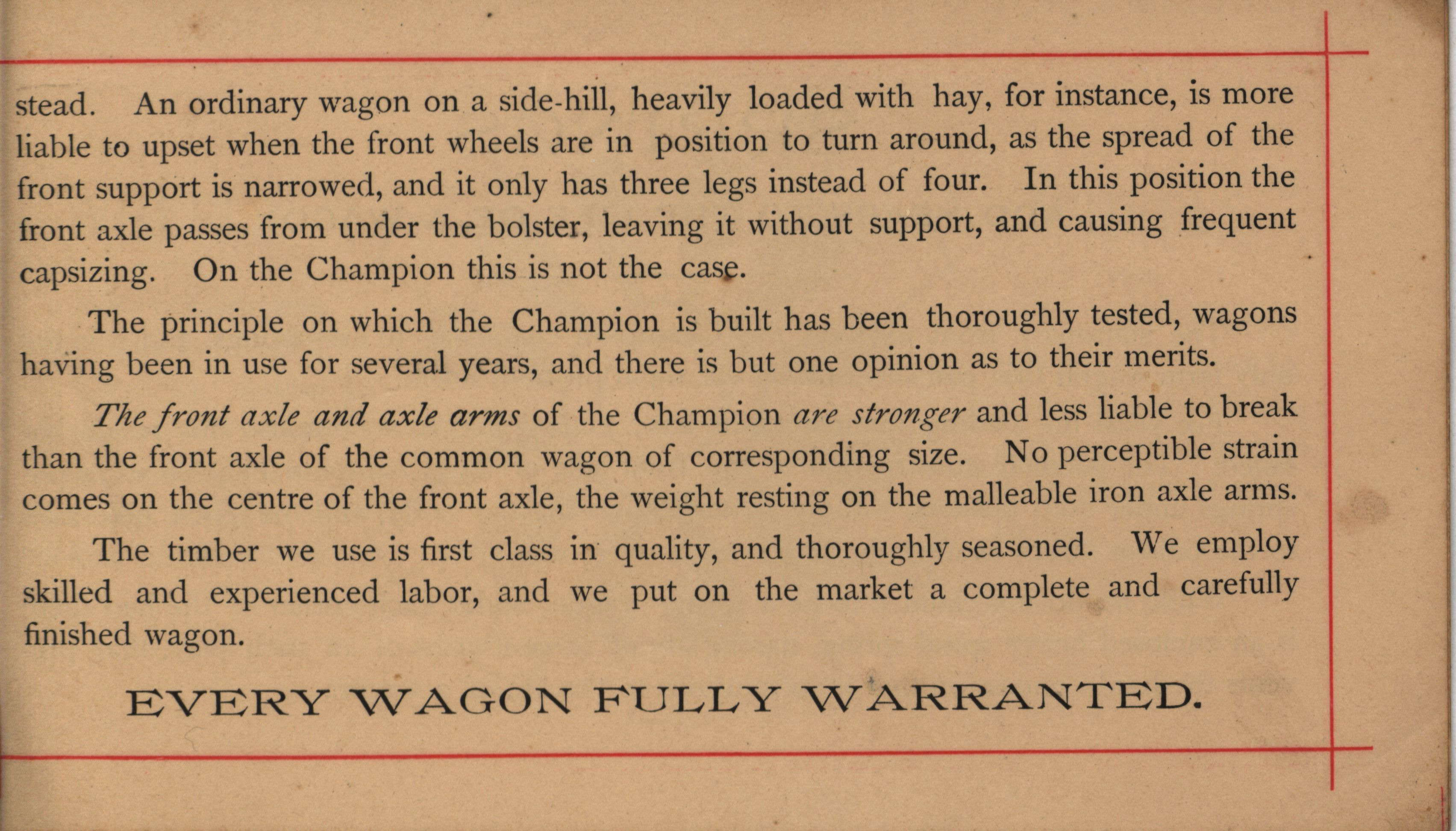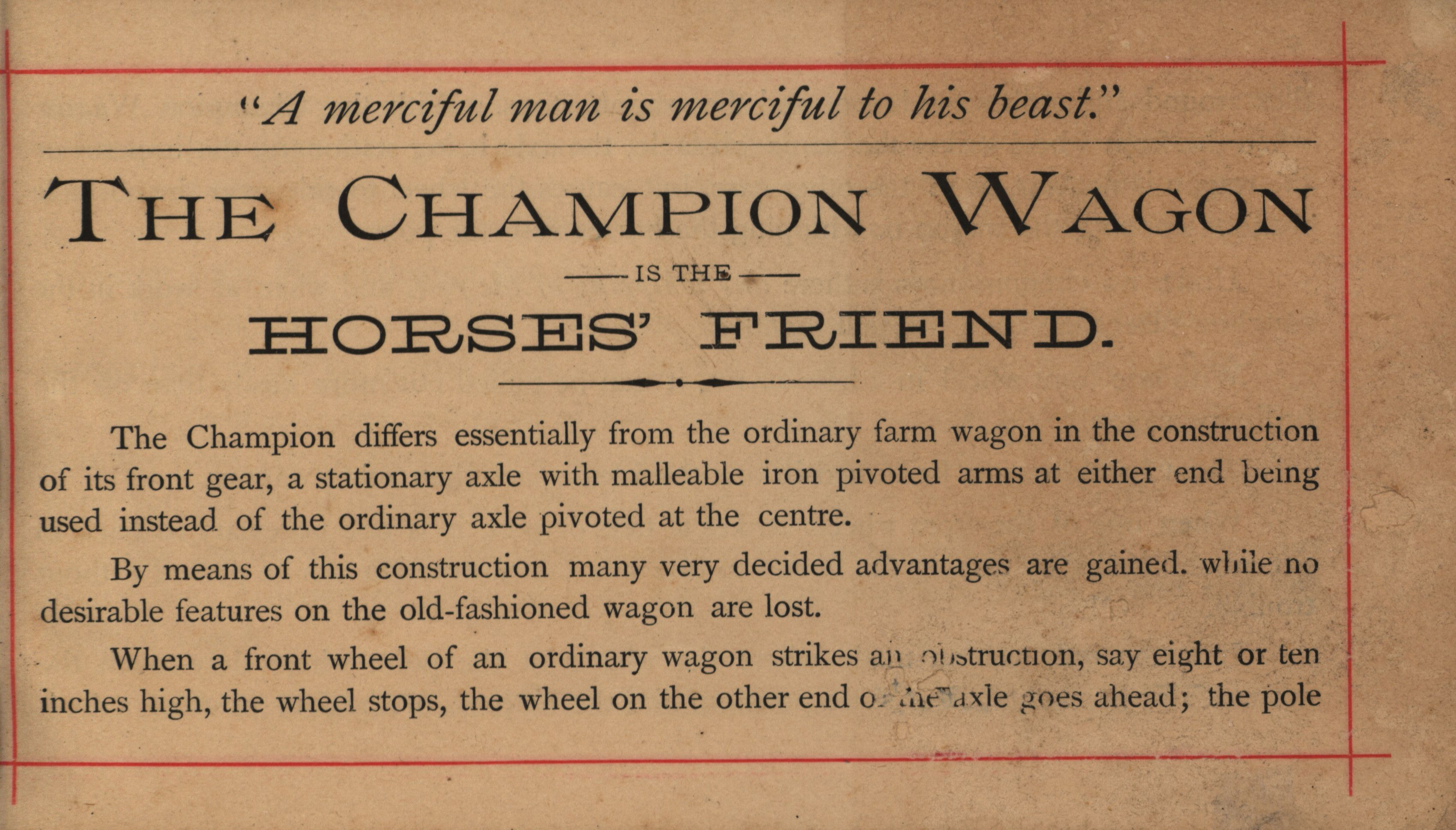 - Illustrated catalog for the champion wagon offered by the Gere, Truman, Platt and Company.