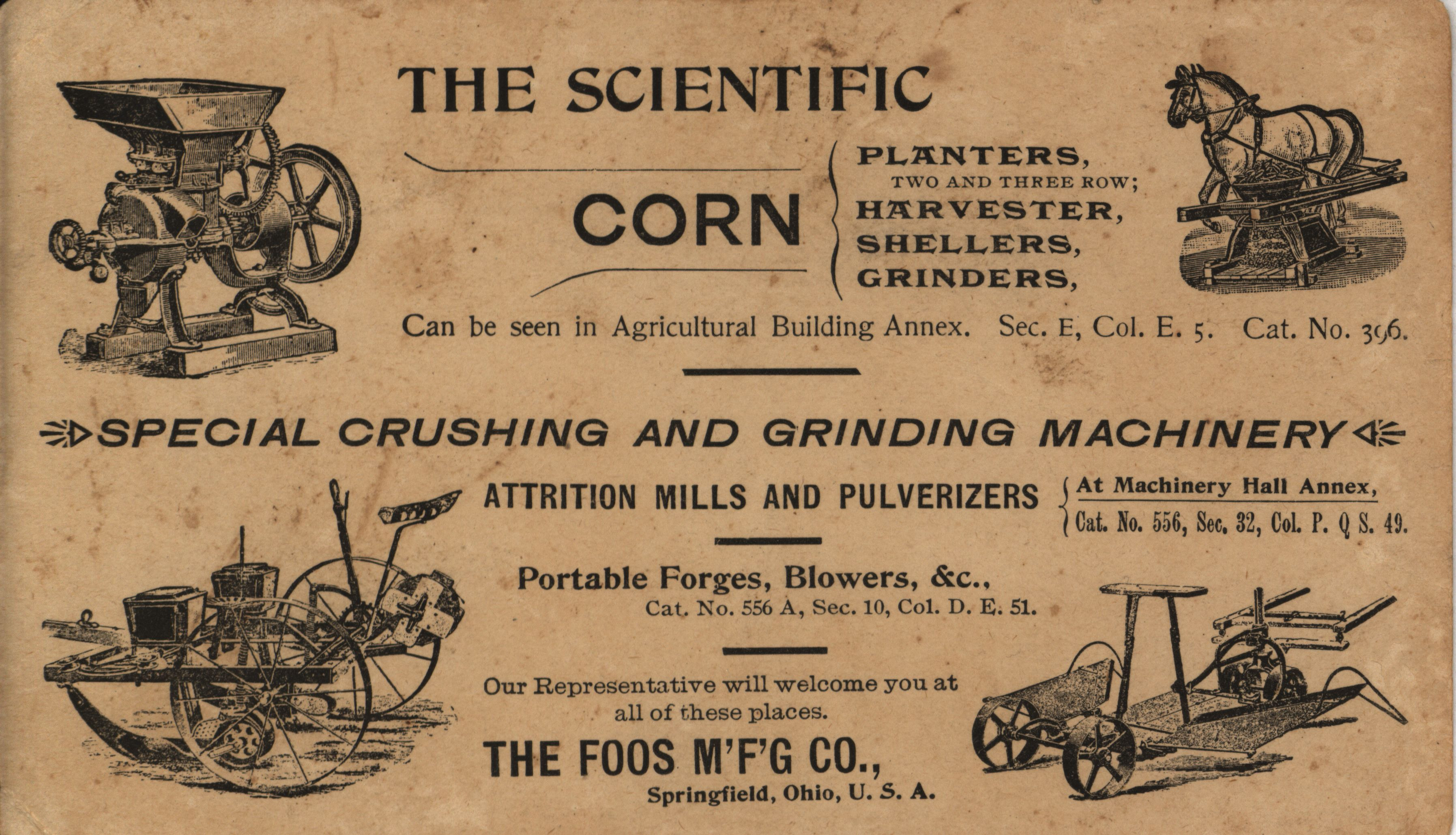 - "The Foos Manufacturing Company advertisement", Agricultural Machinery Literature Collection, Iowa State University Library Digital Collections