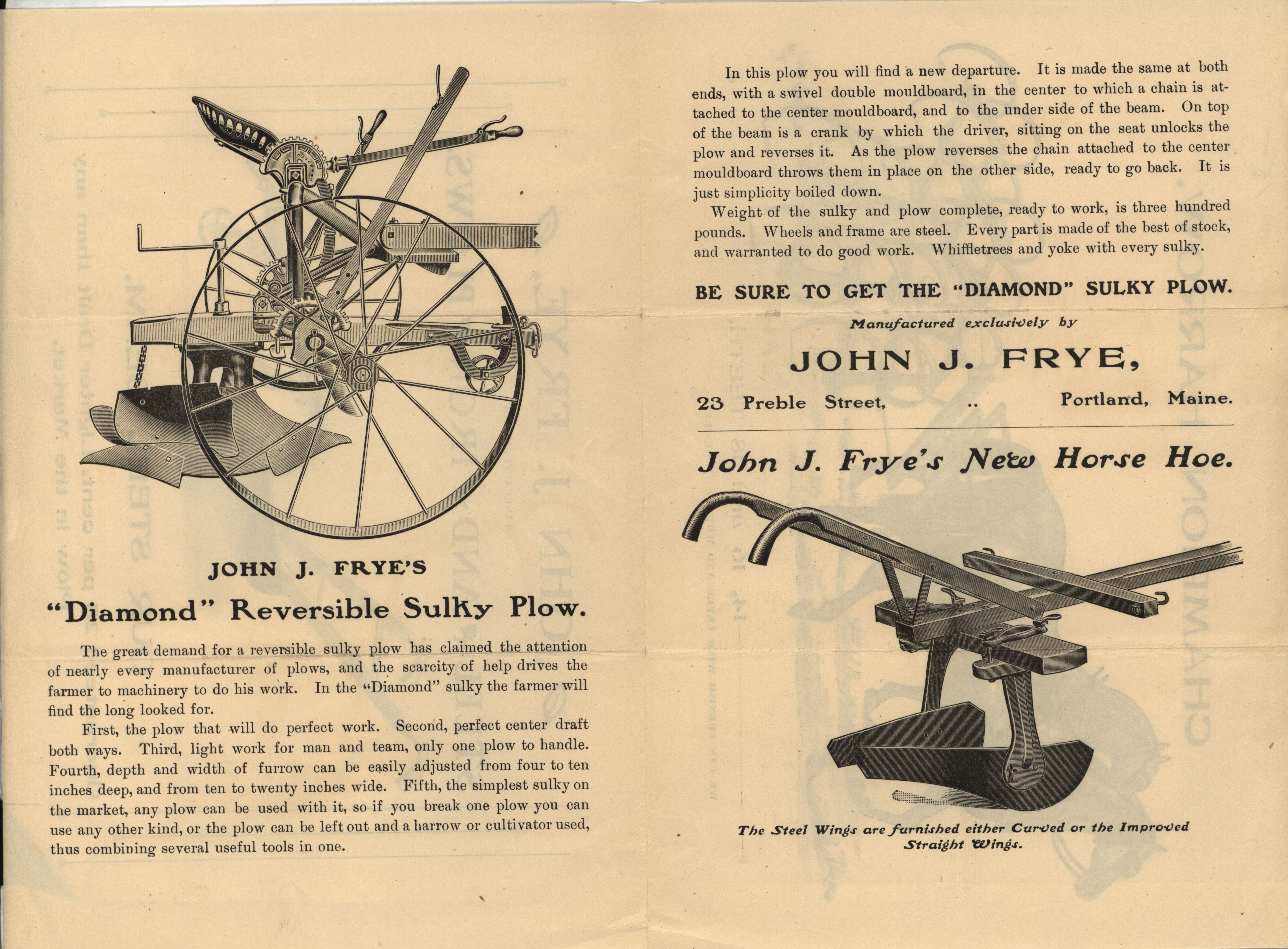 - "John J. Frye Diamond Sulky Plow advertisement", Agricultural Machinery Literature Collection, Iowa State University Library Digital Collections