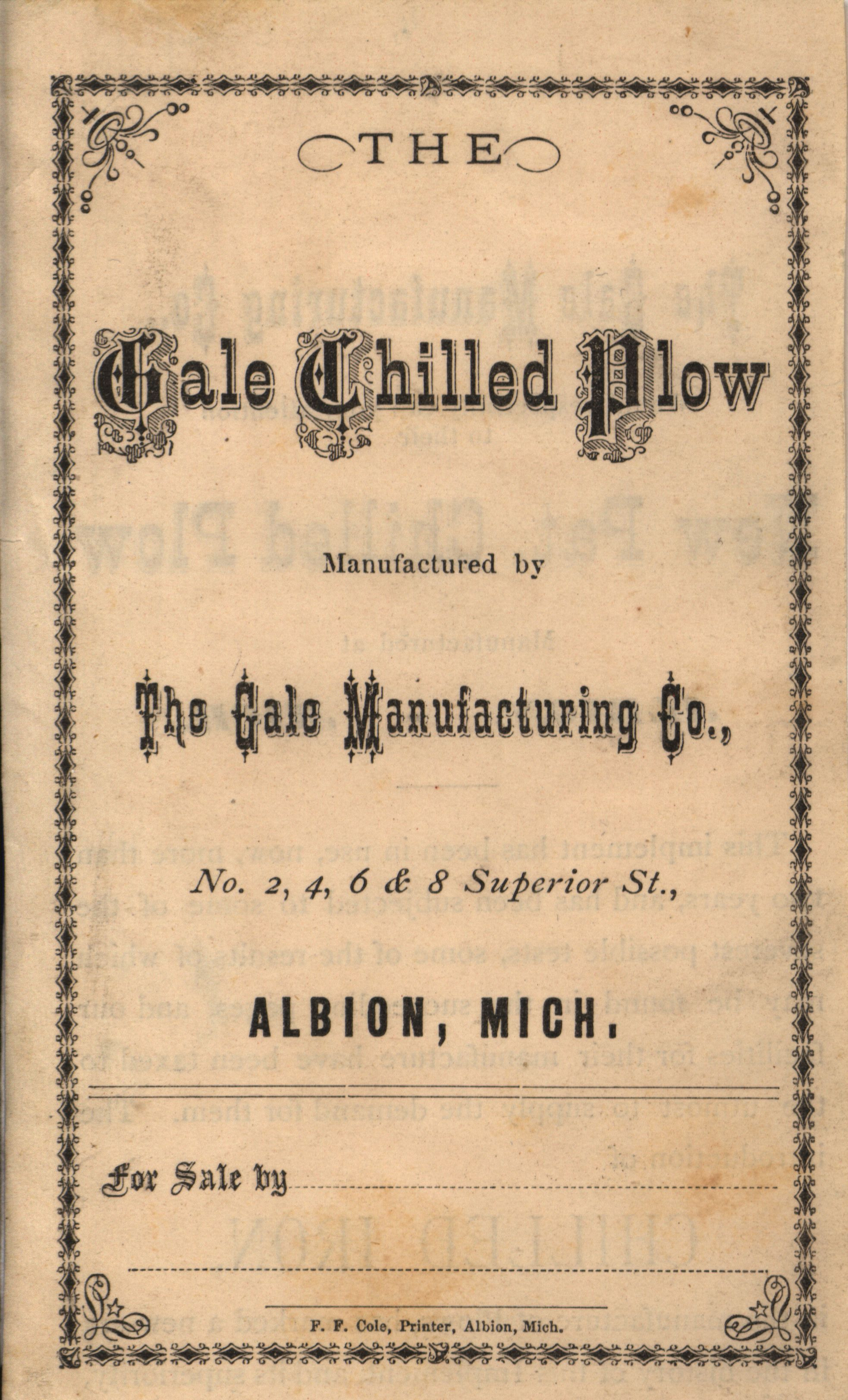 - "The Gale Manufacturing Company Chilled Plow catalog", Agricultural Machinery Literature Collection, Iowa State University Library Digital Collections