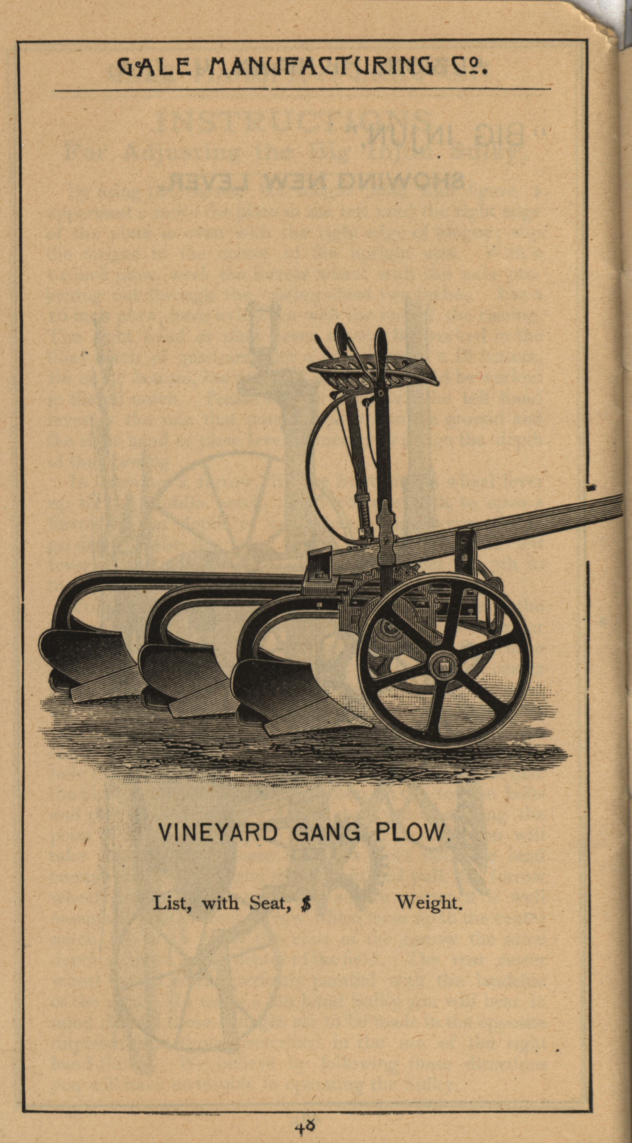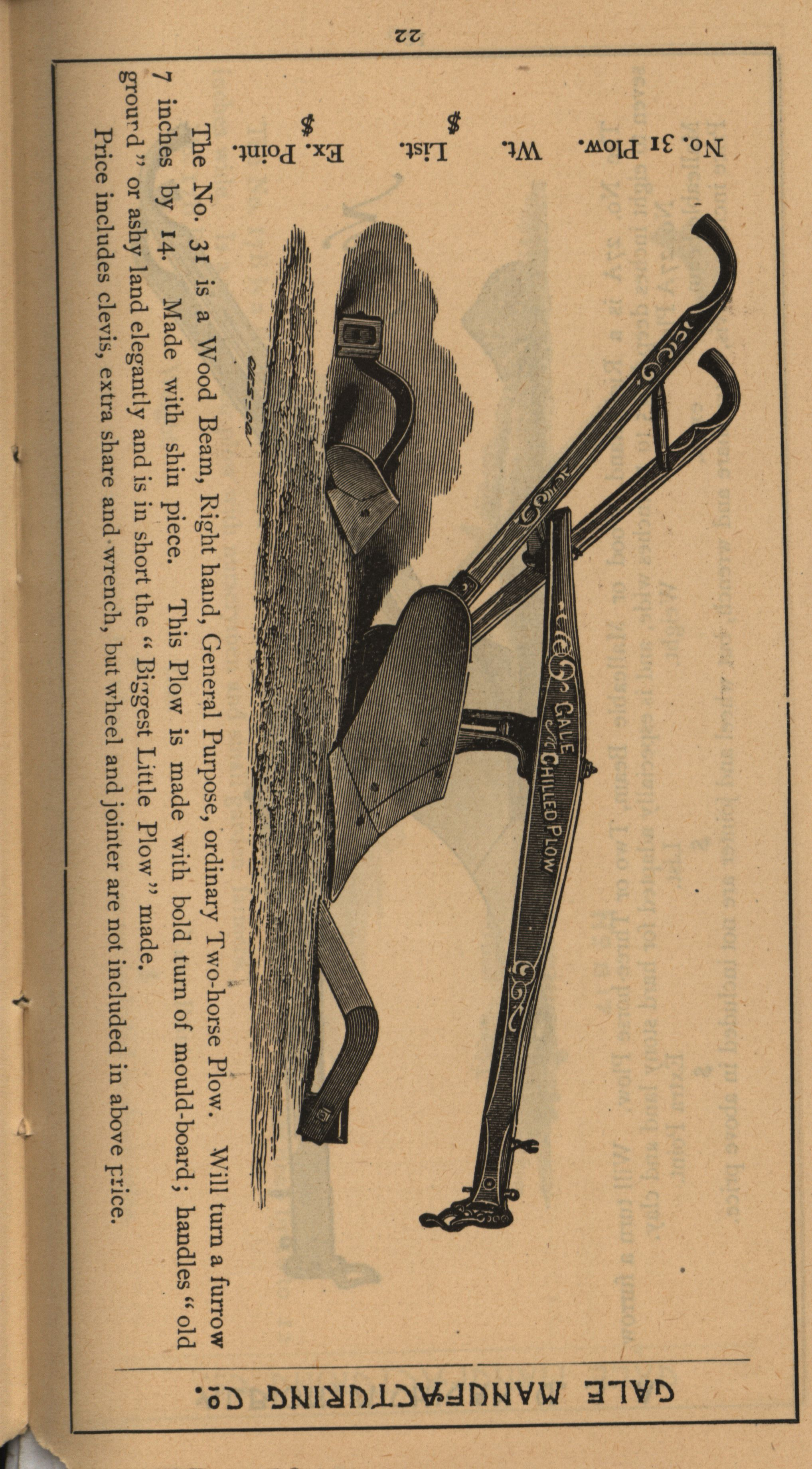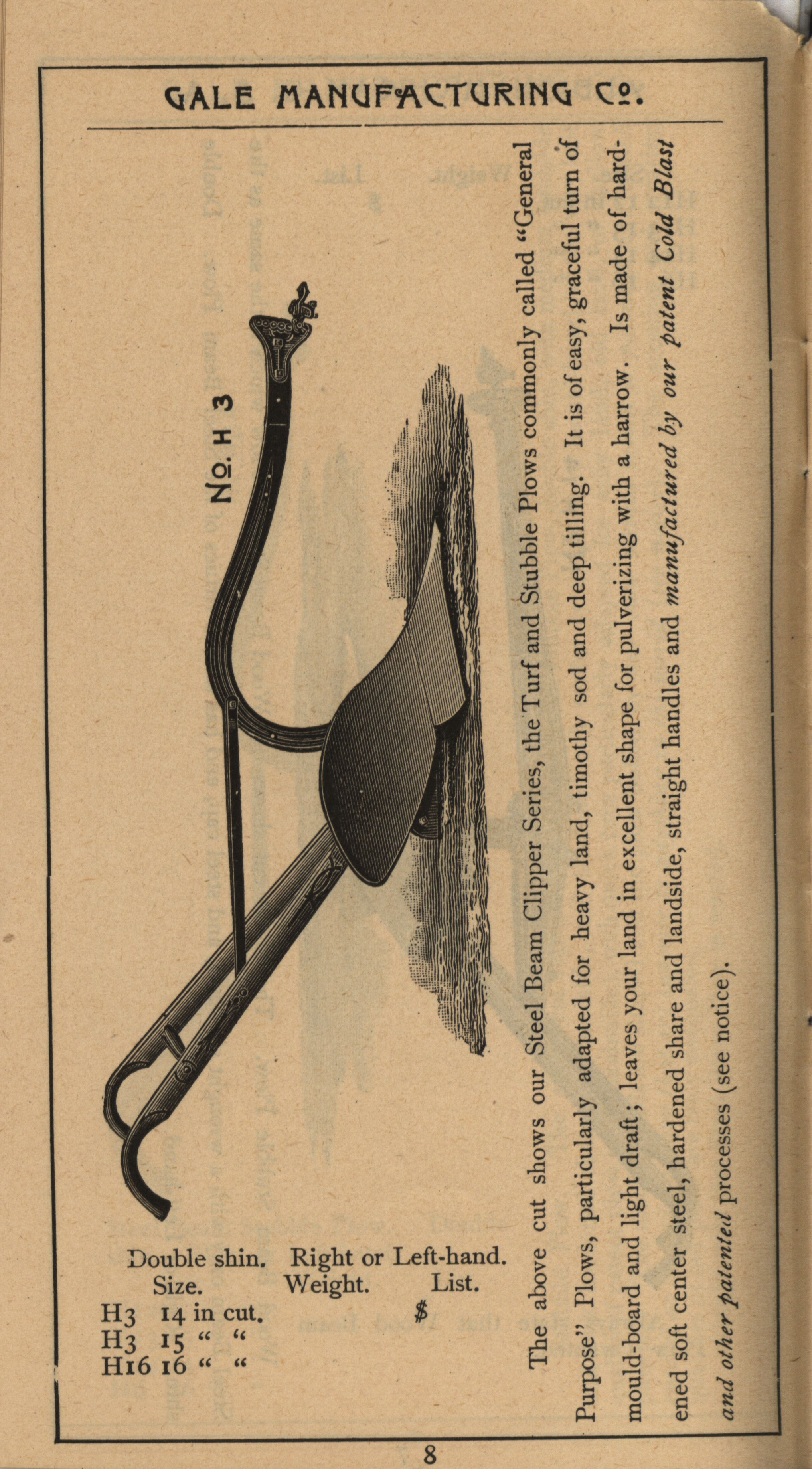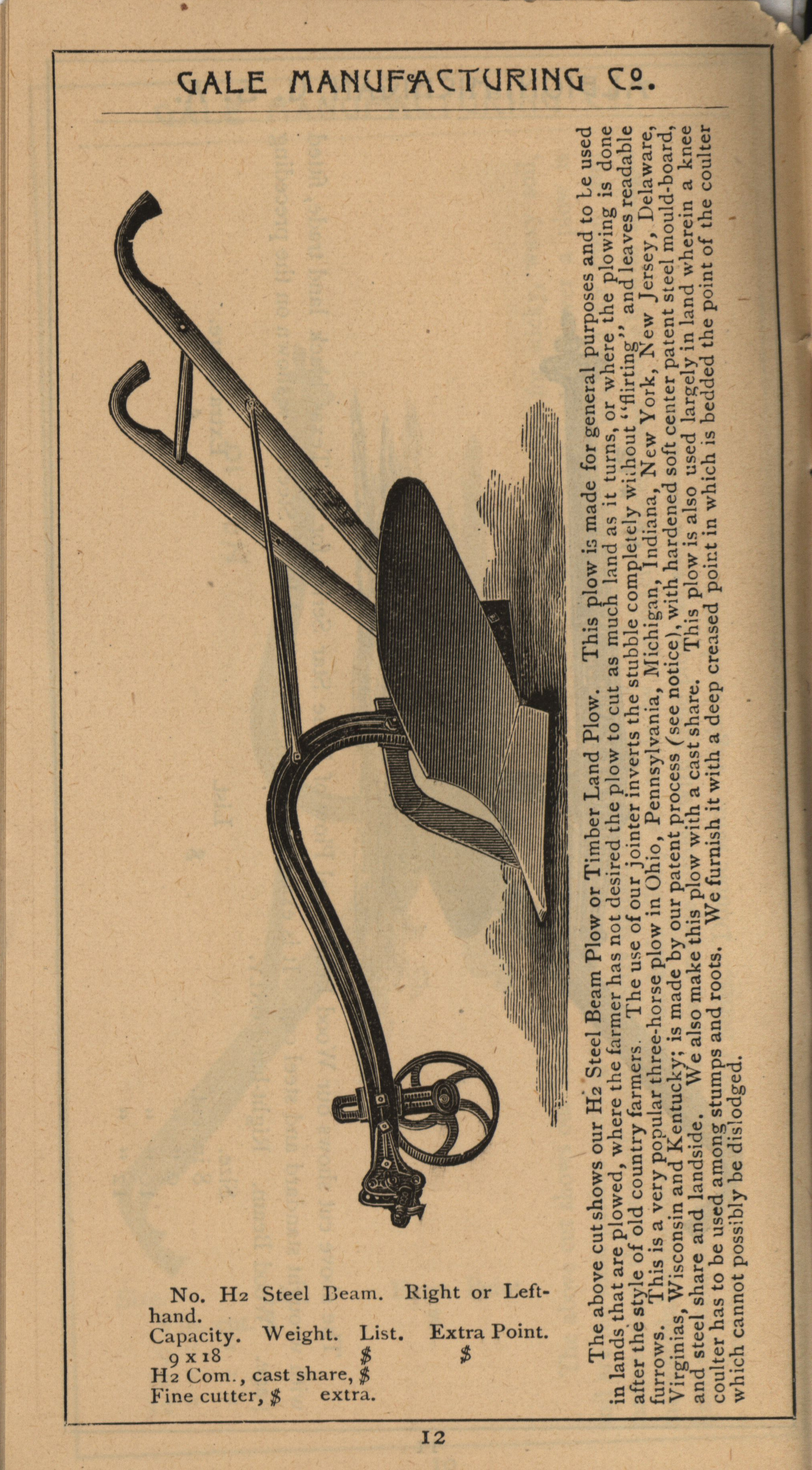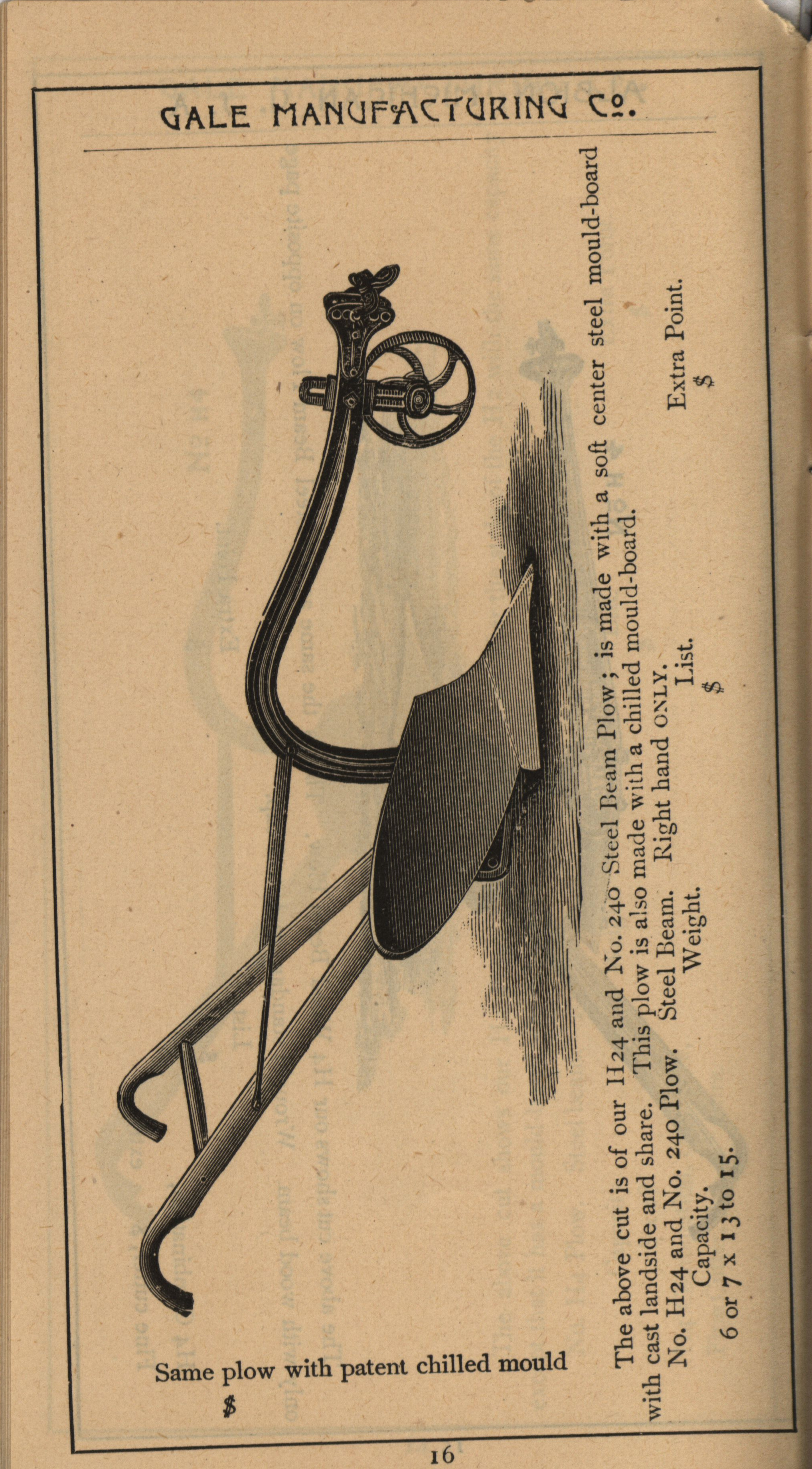 - "Gale Manufacturing Company Plows catalog", Agricultural Machinery Literature Collection, Iowa State University Library Digital Collections
