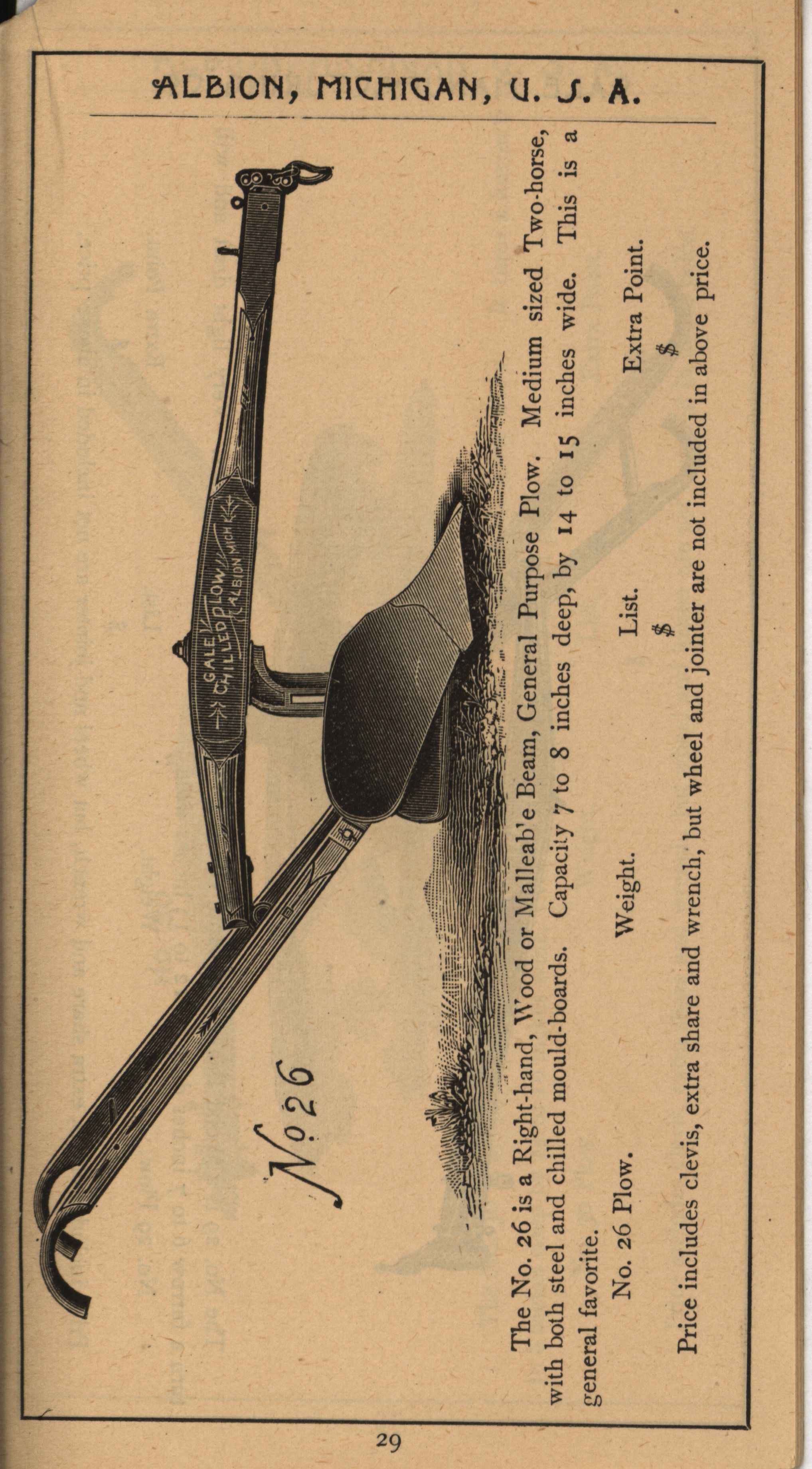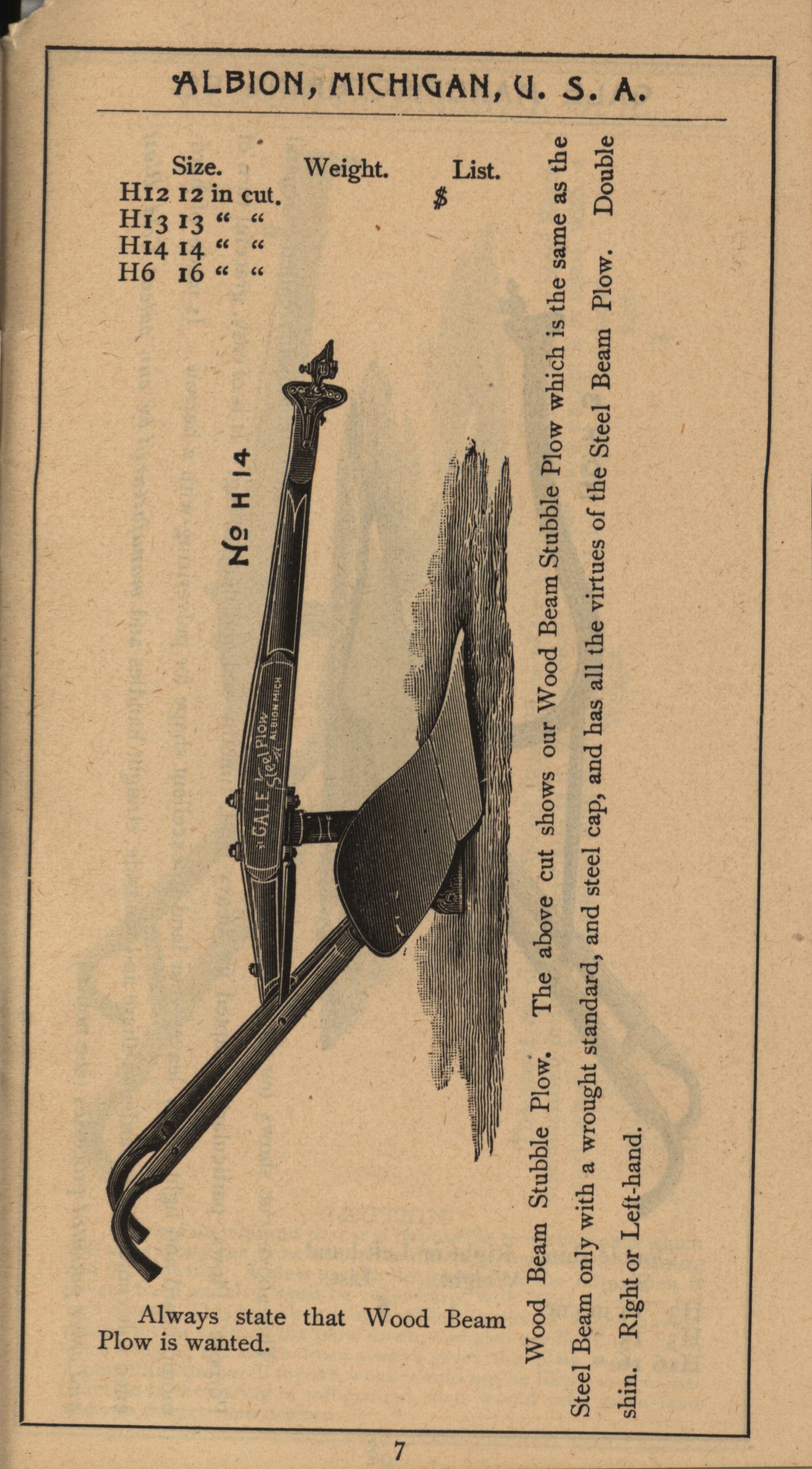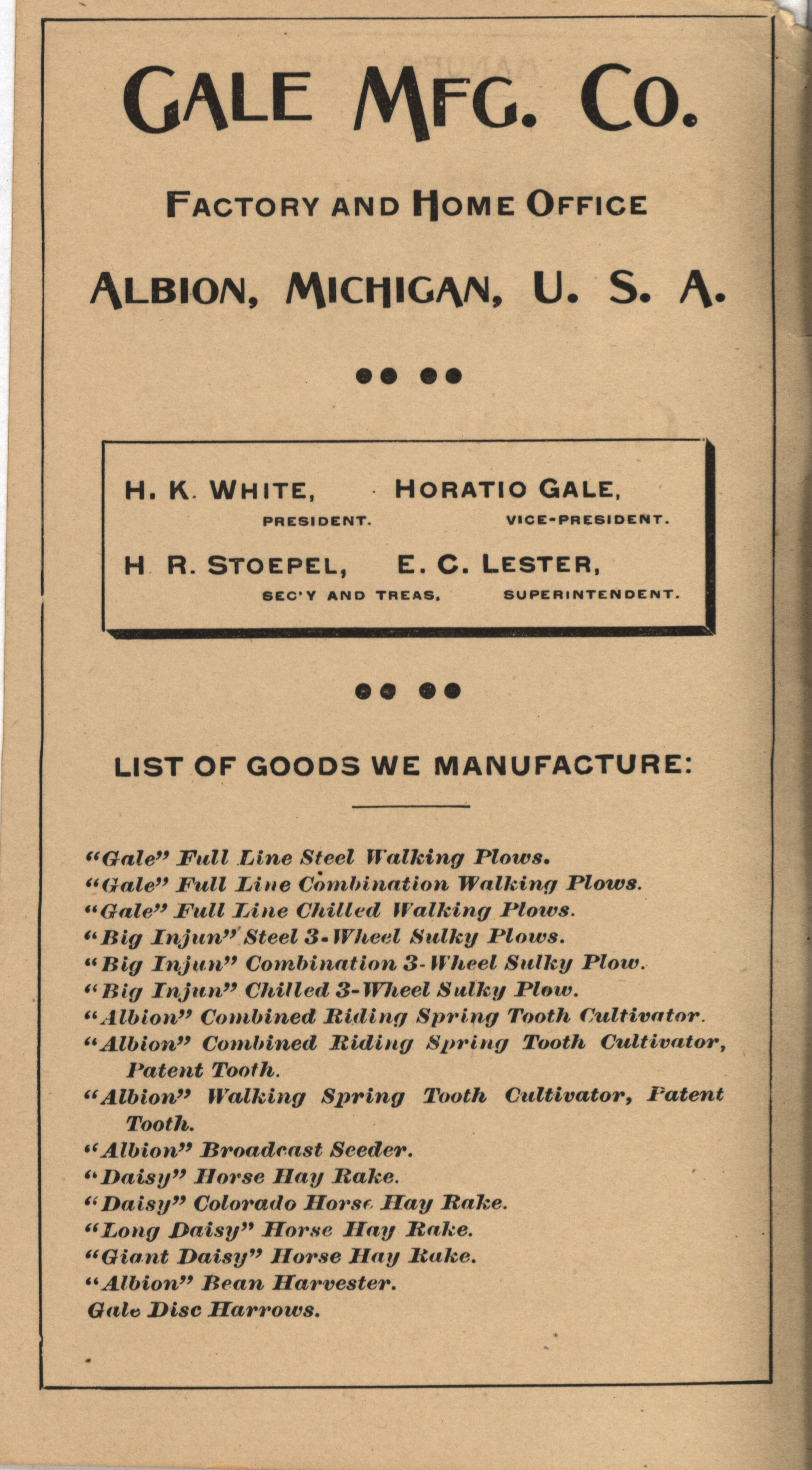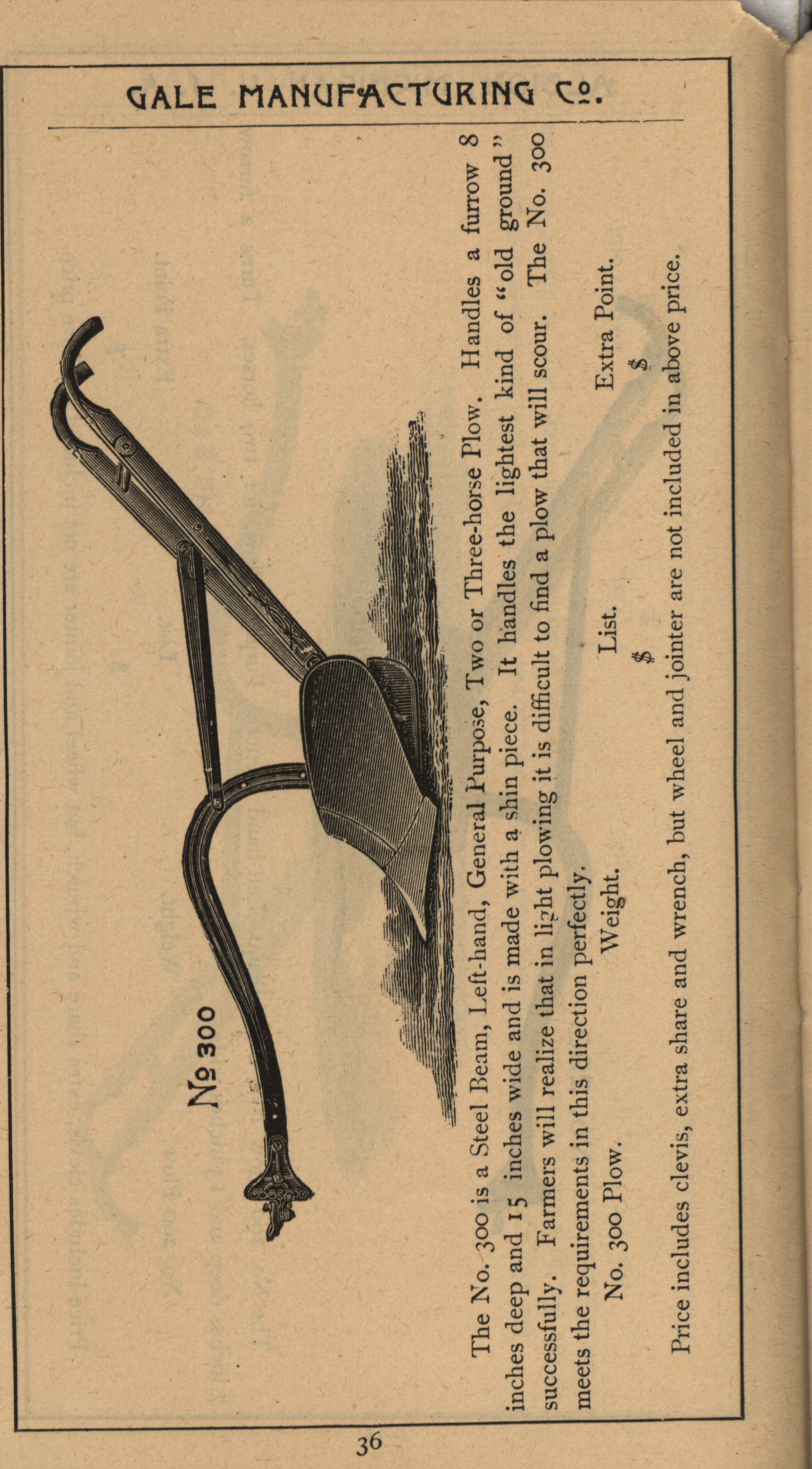 - "Gale Manufacturing Company Plows catalog", Agricultural Machinery Literature Collection, Iowa State University Library Digital Collections