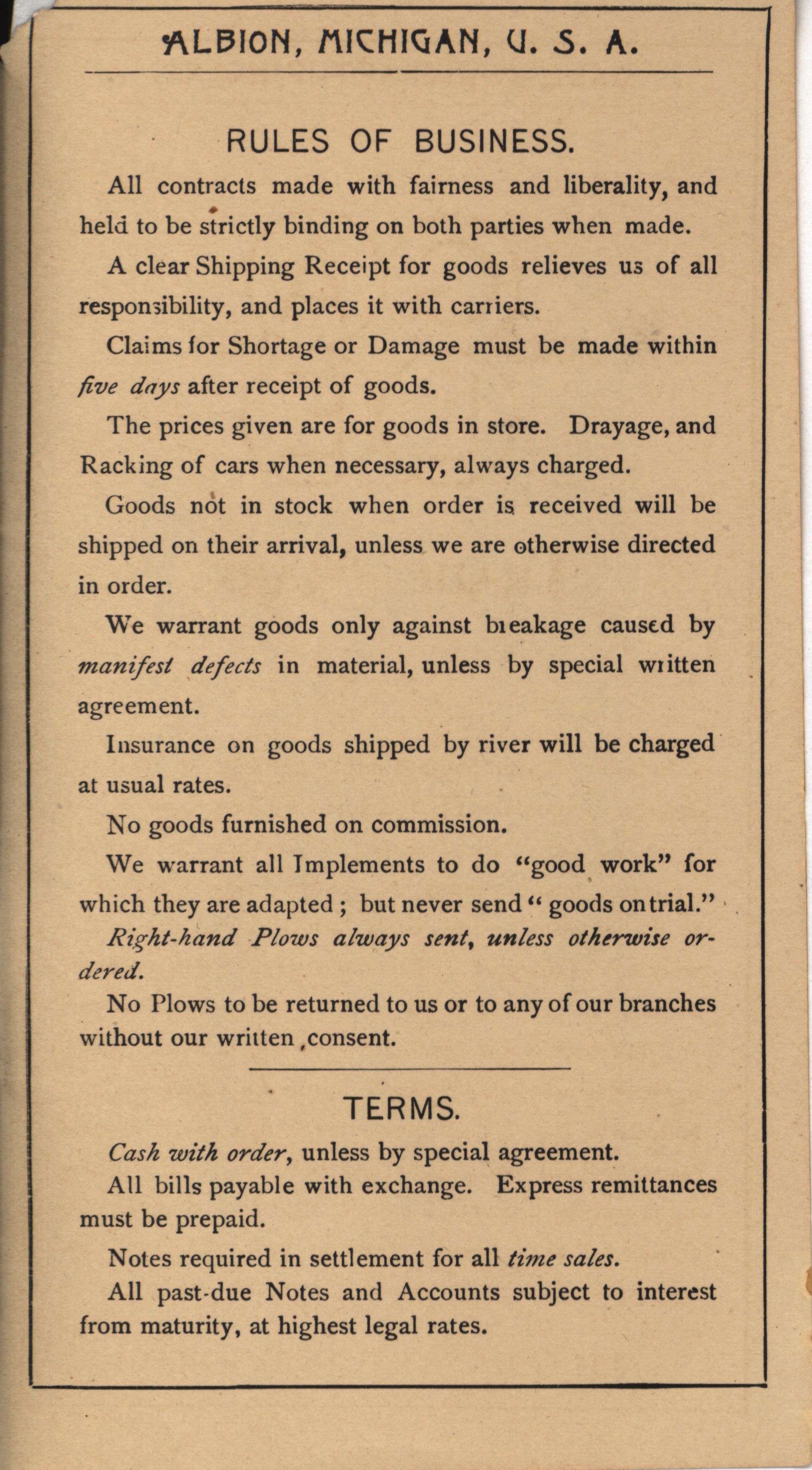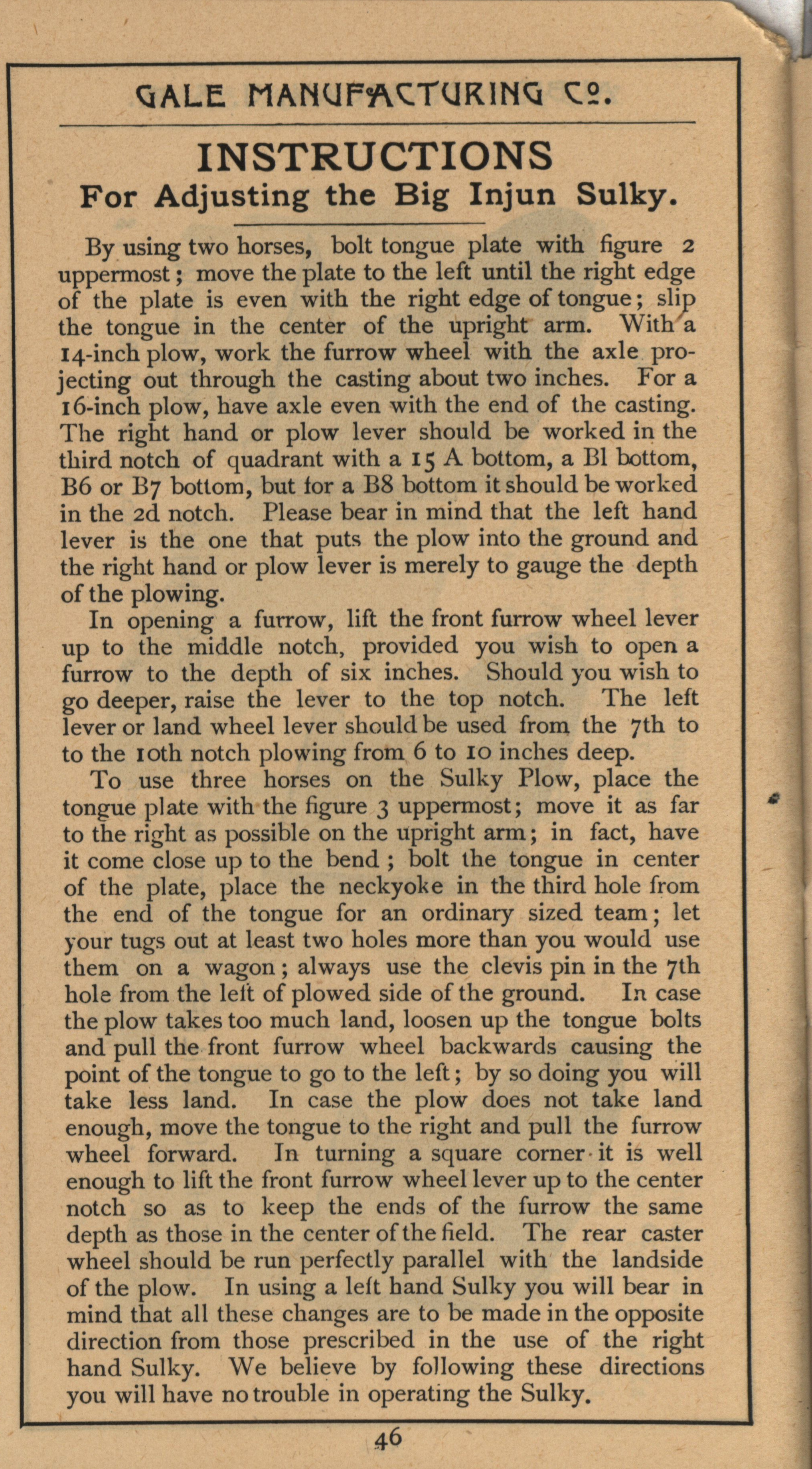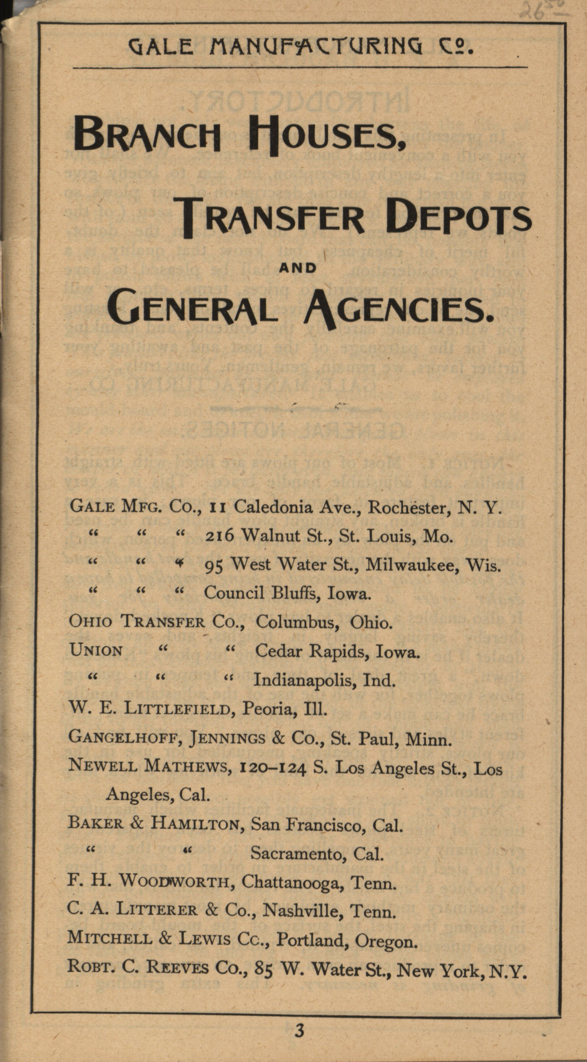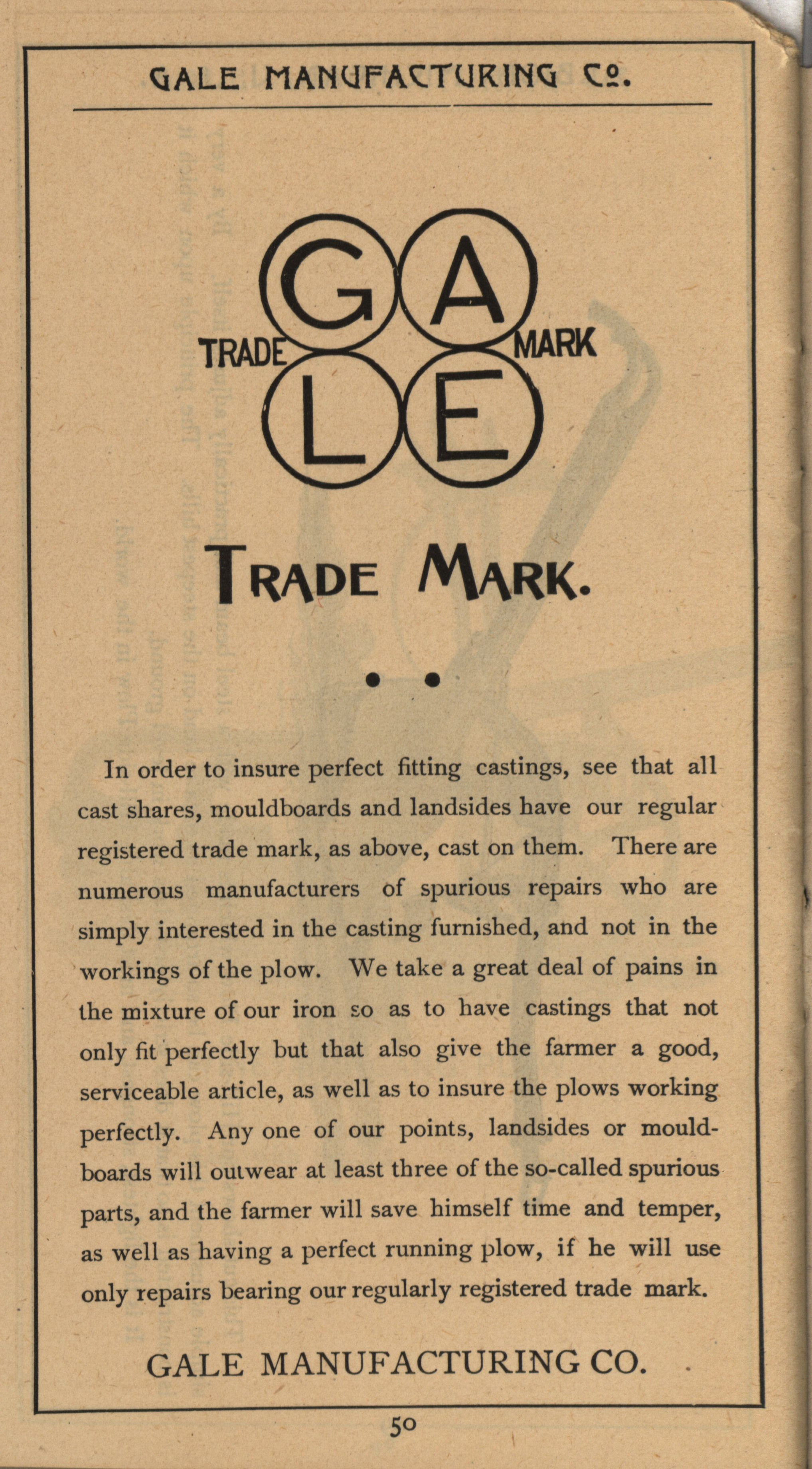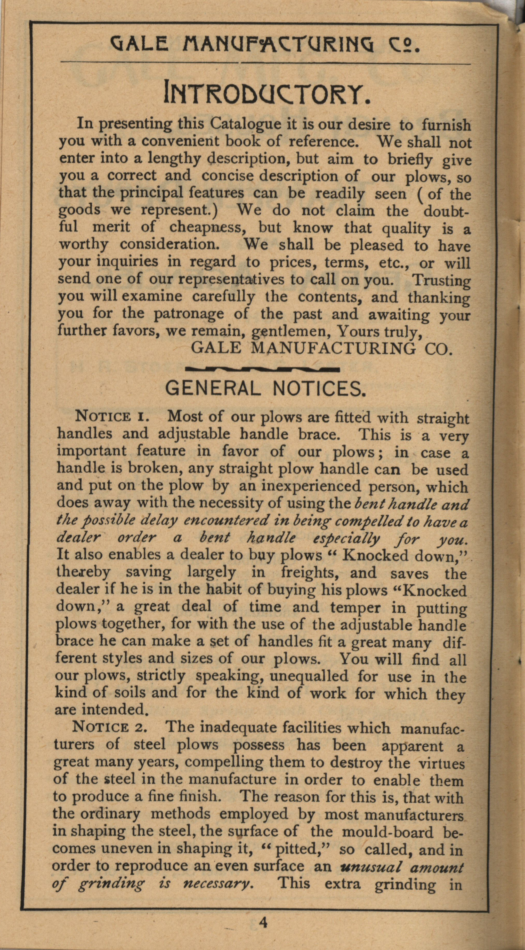 - "Gale Manufacturing Company Plows catalog", Agricultural Machinery Literature Collection, Iowa State University Library Digital Collections