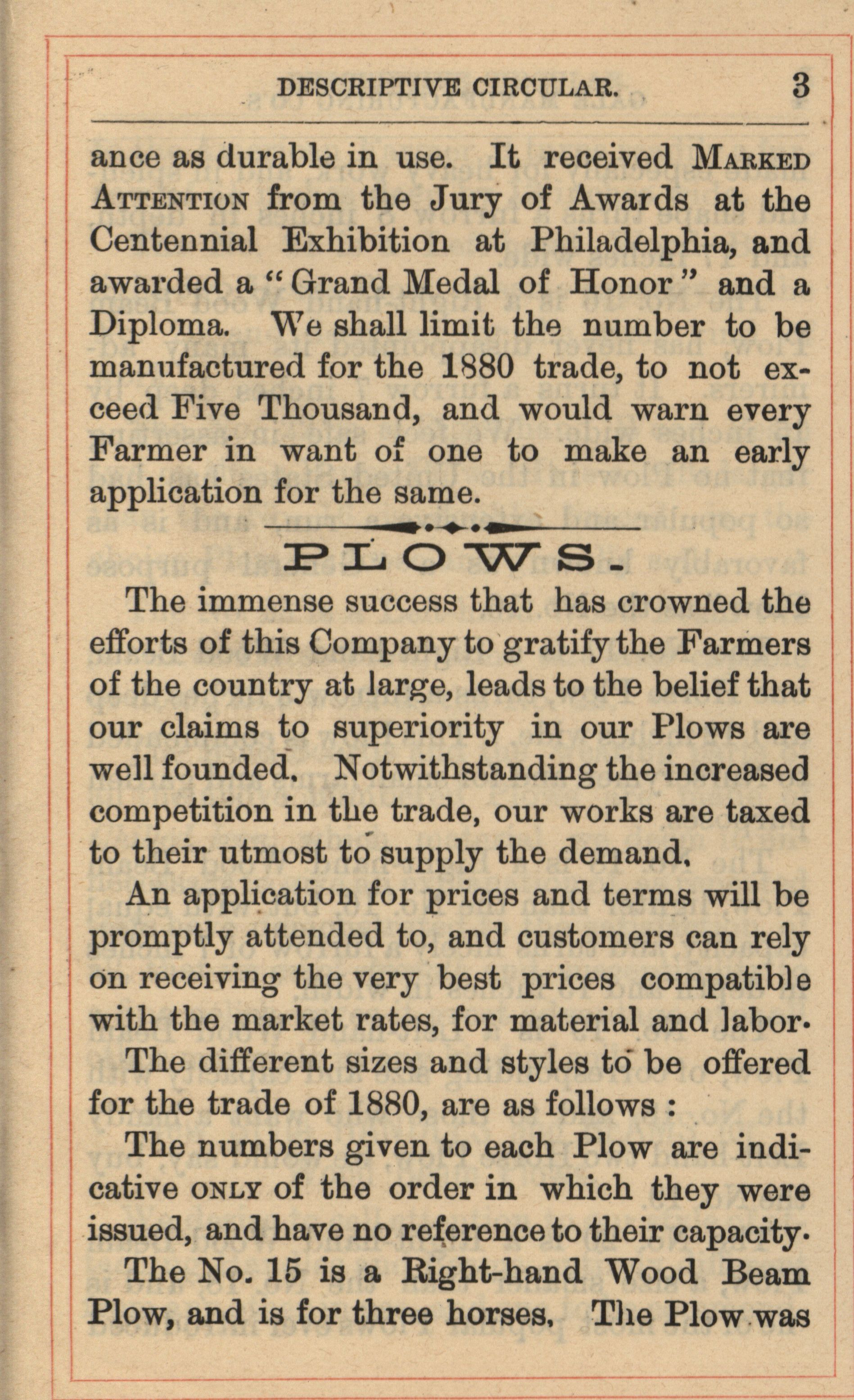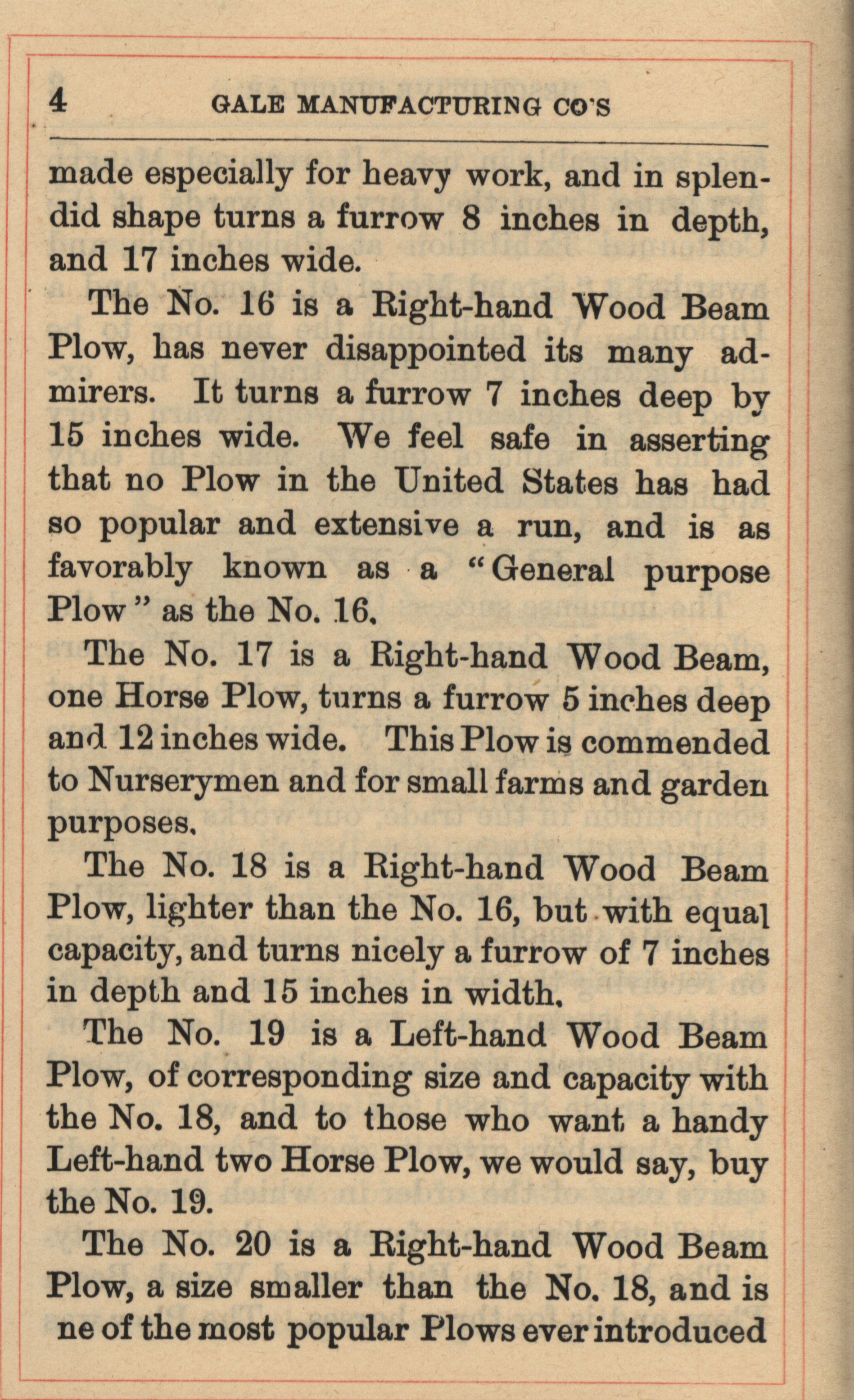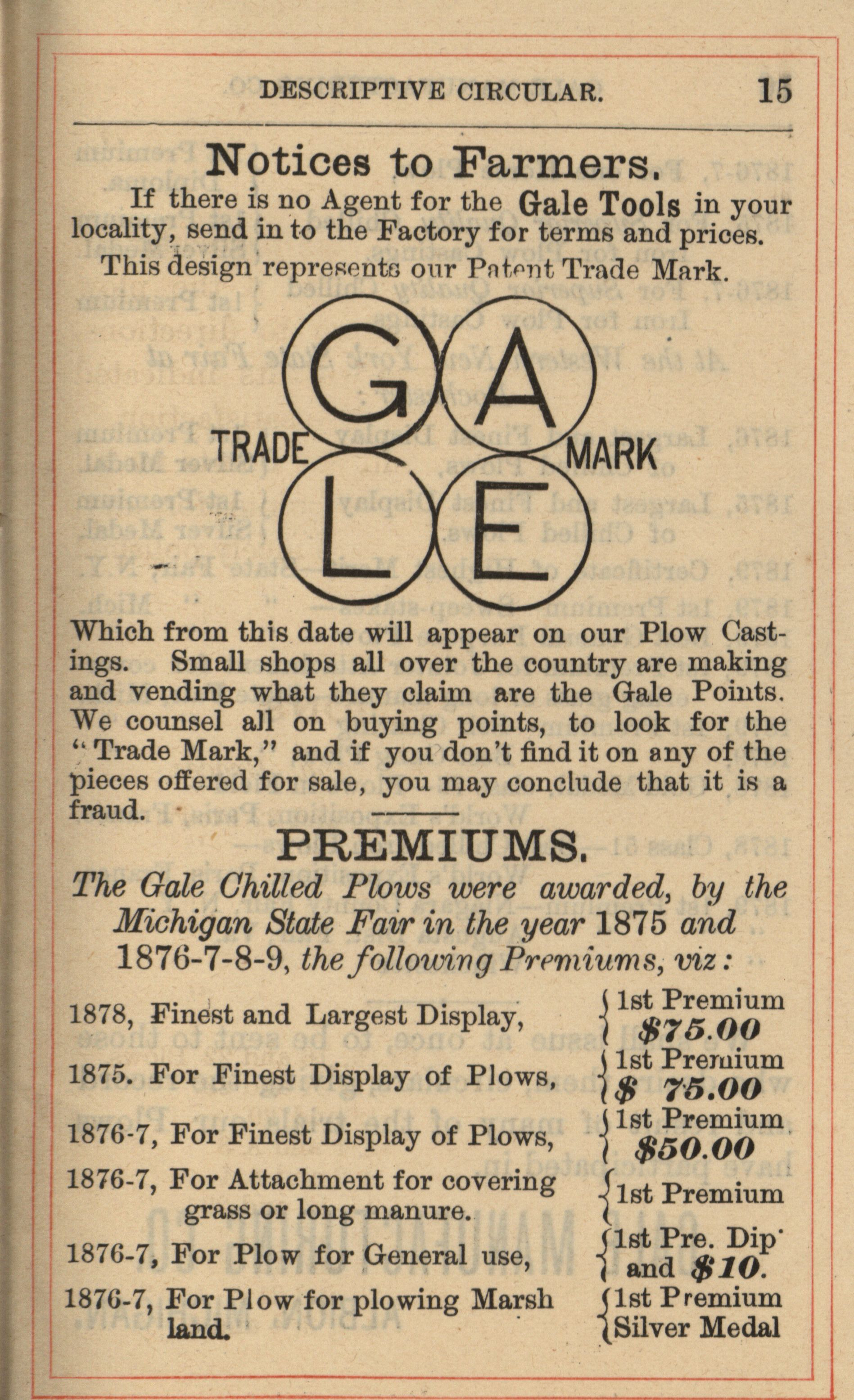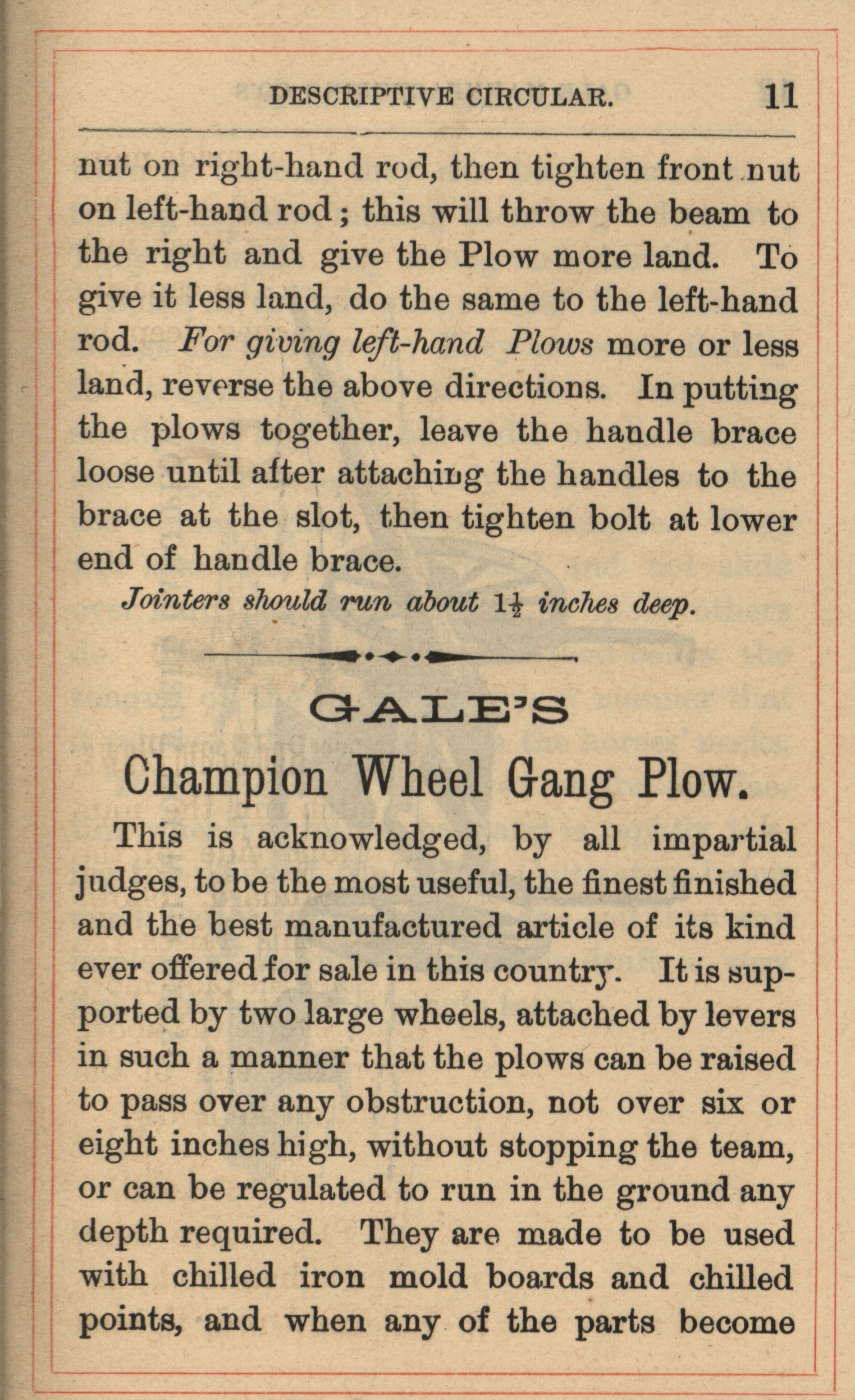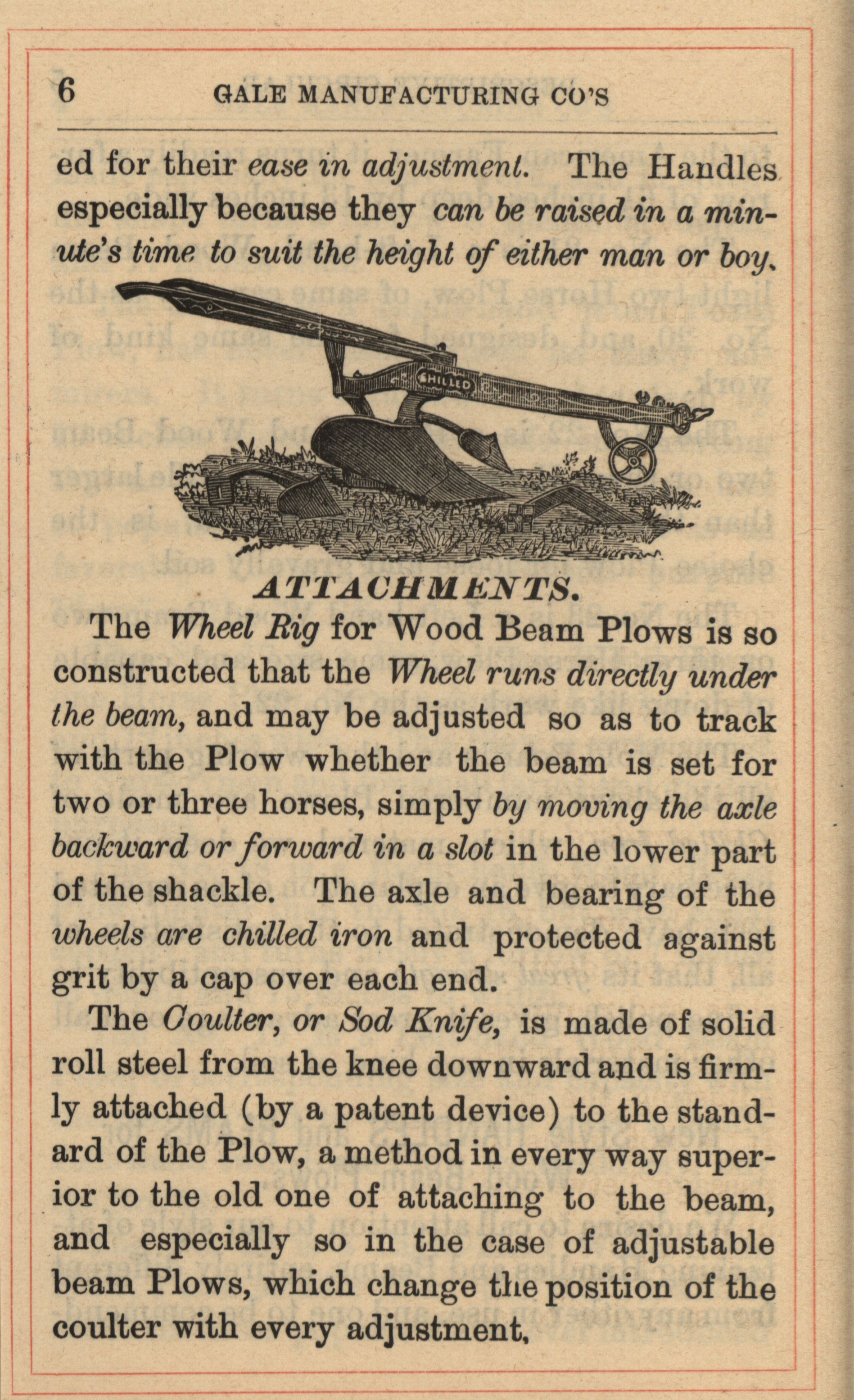 - Illustrated catalog describing the agricultural implements offered by the Gale Manufacturing Company in 1880.