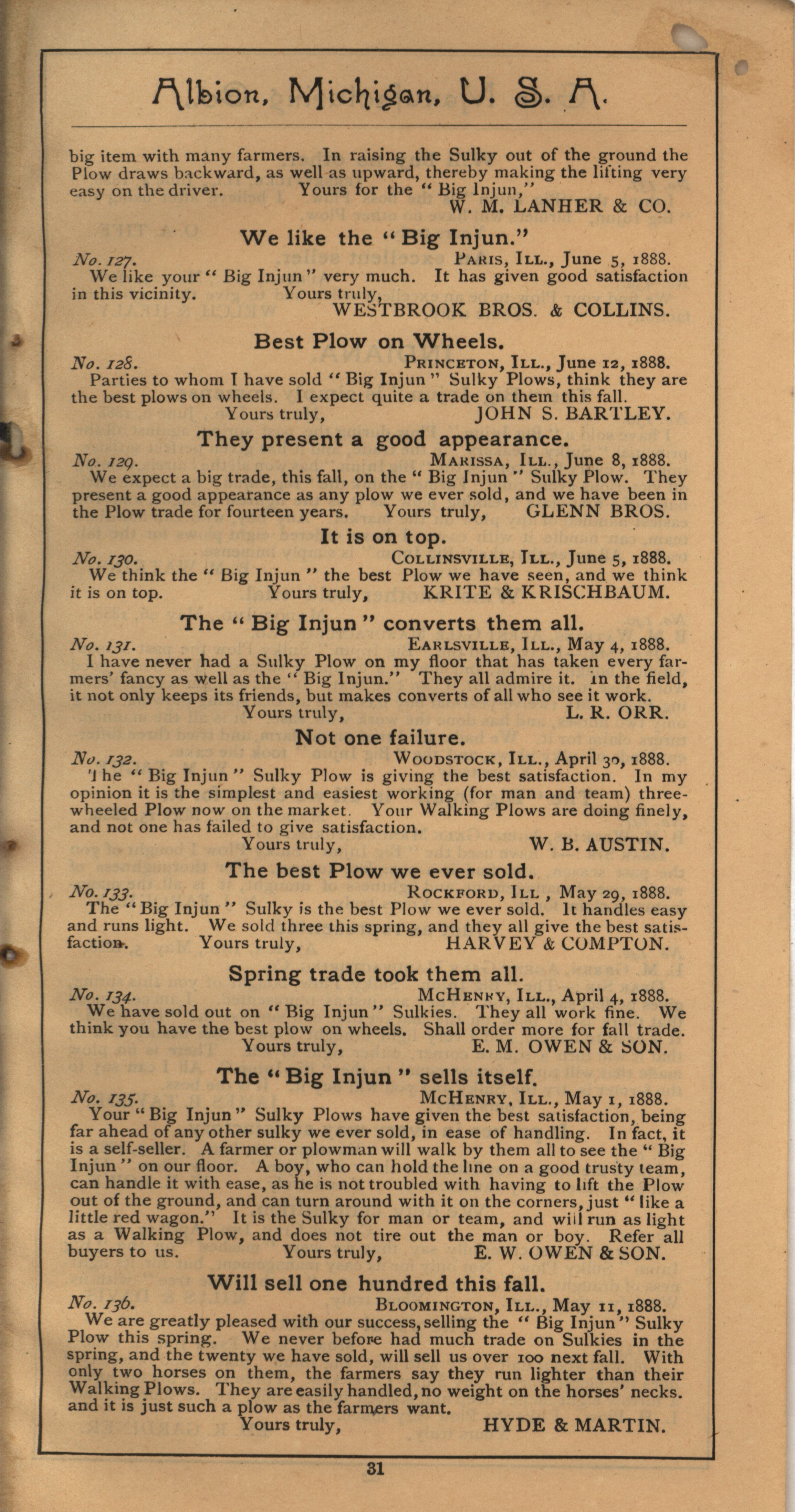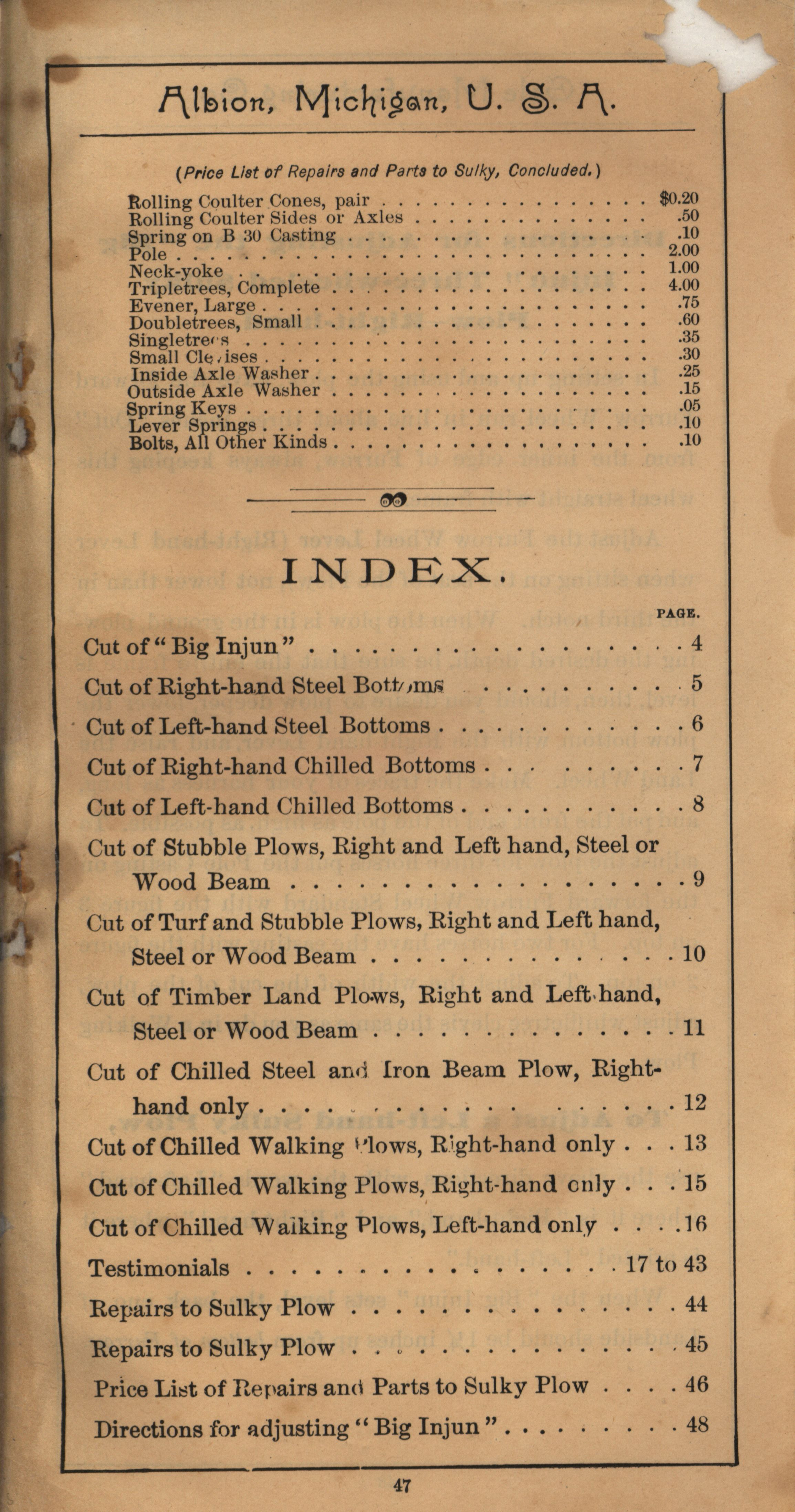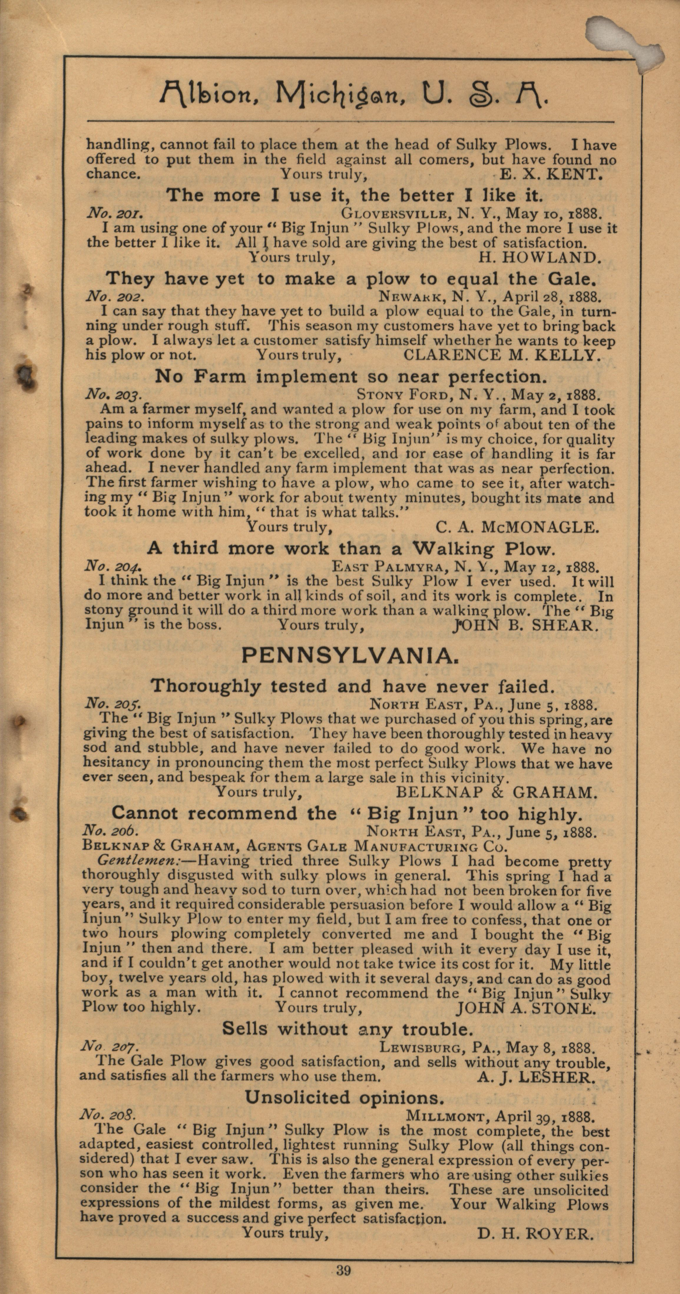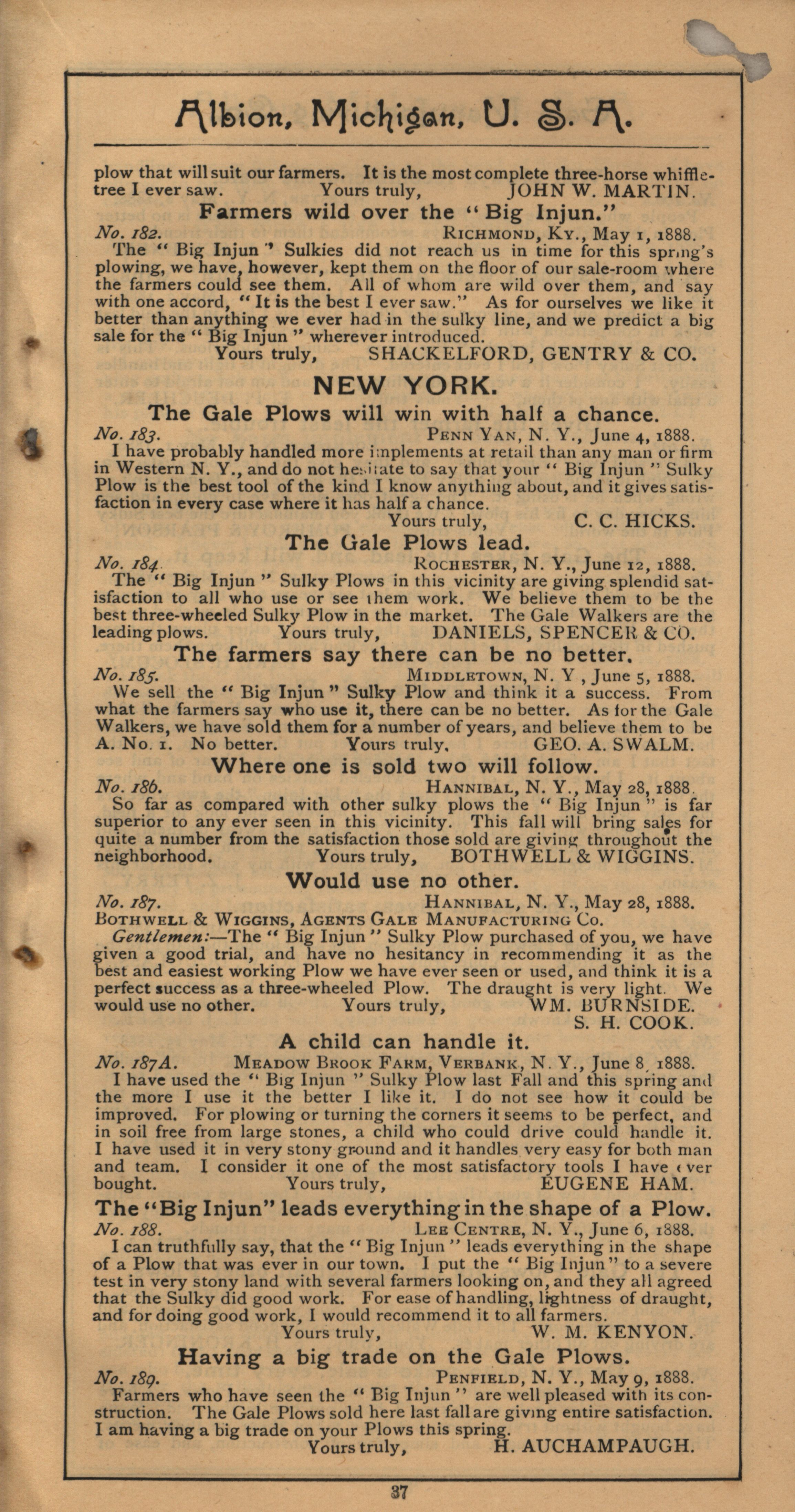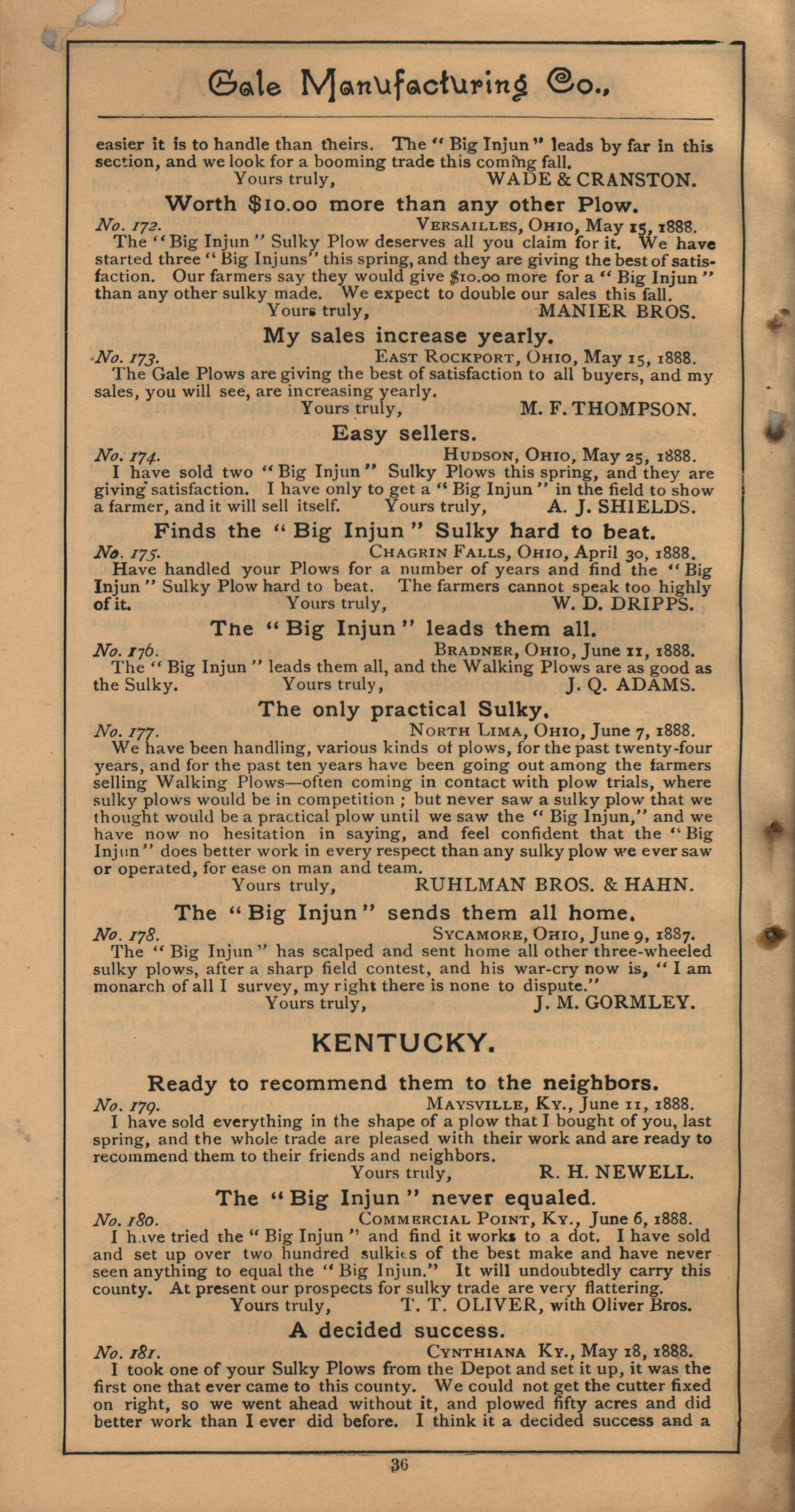 - Illustrated catalog describing the plows offered by the Gale Manufacturing Company in 1888.