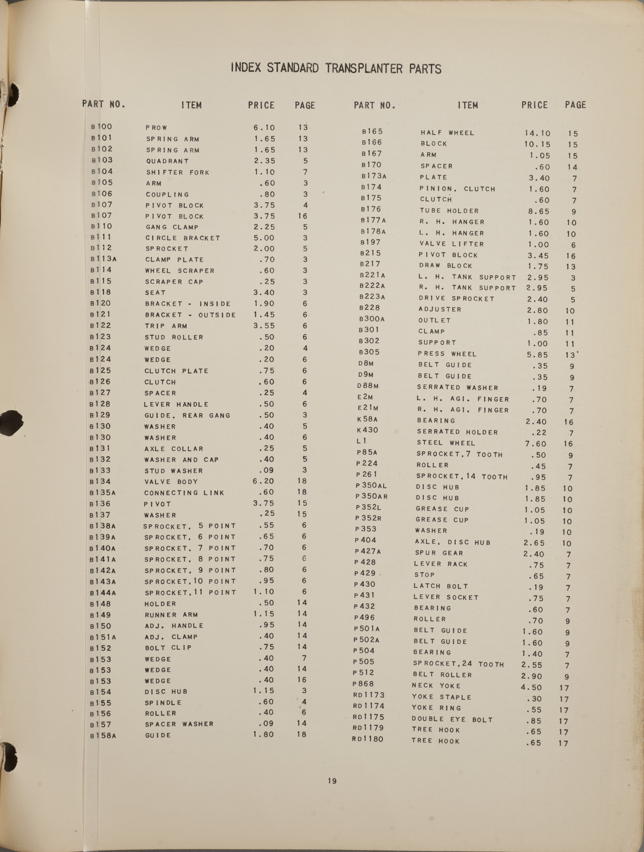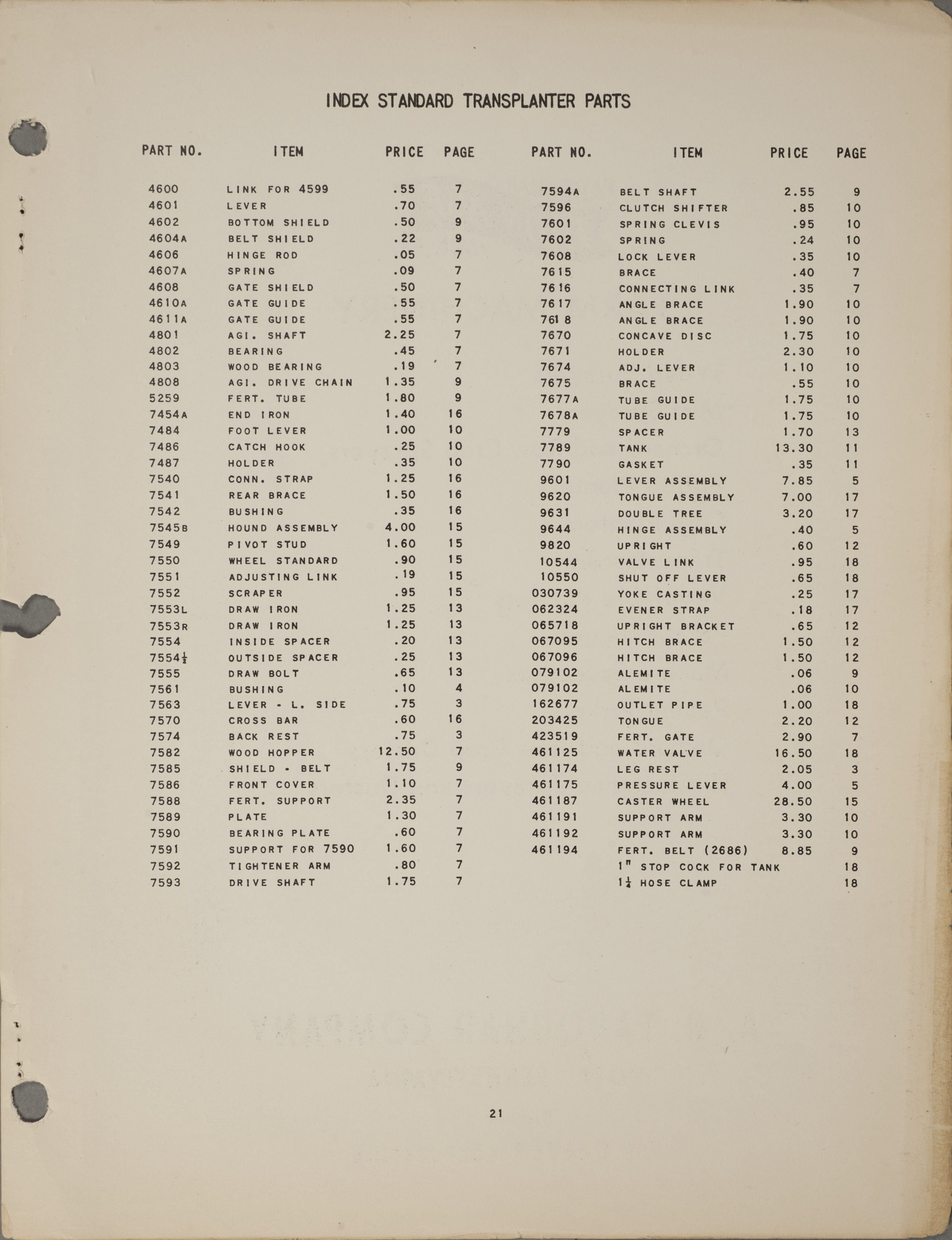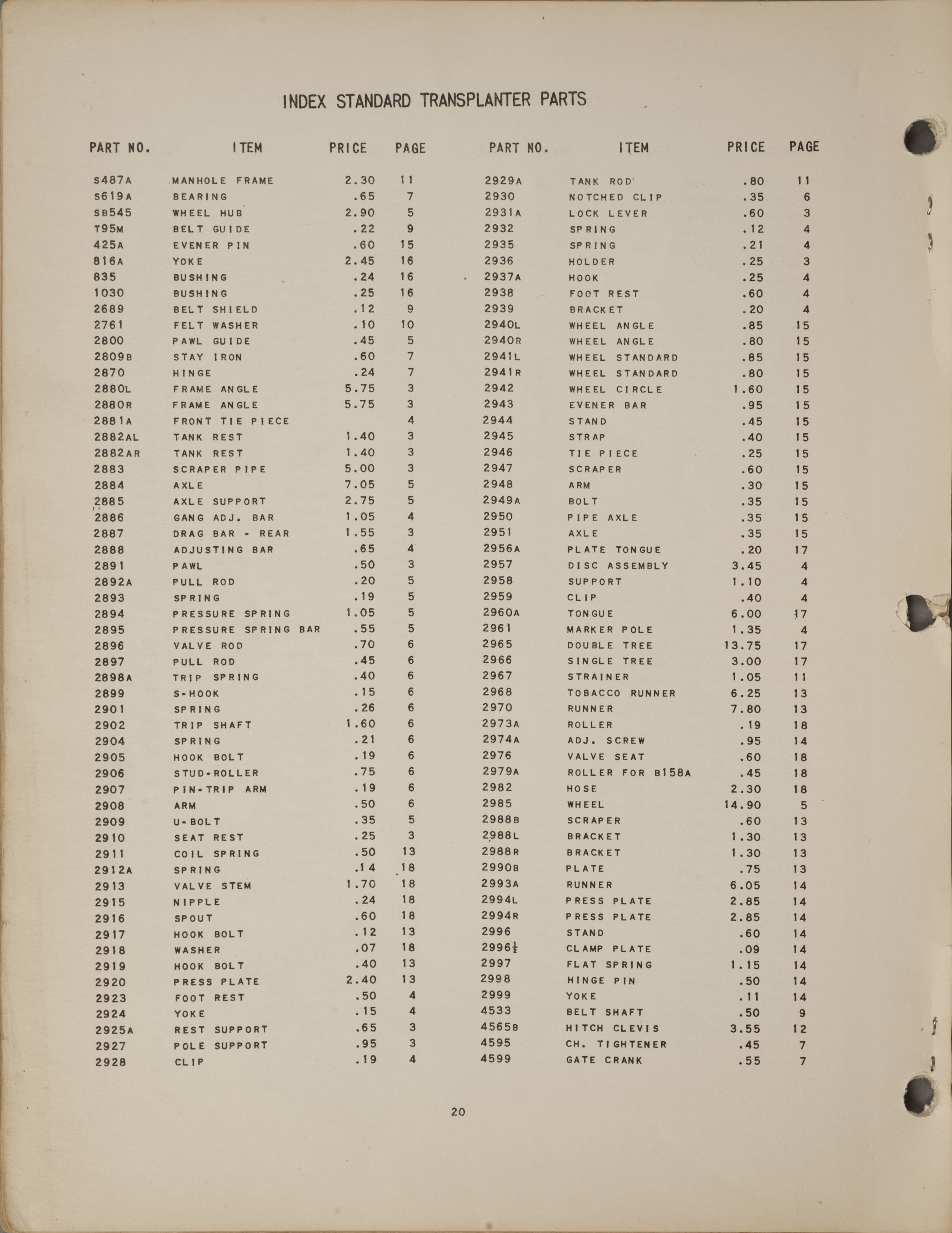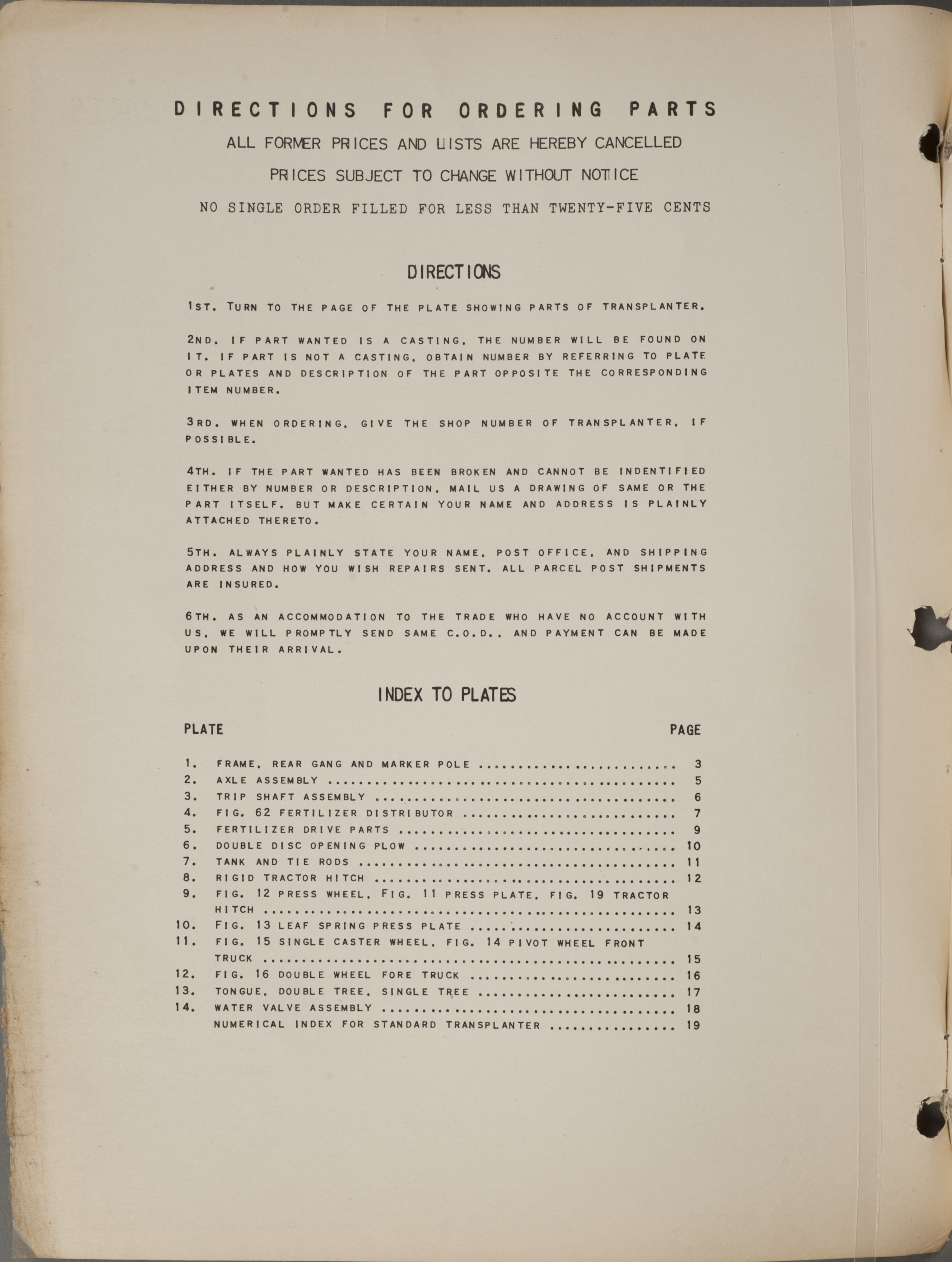 - Illustrated repair parts price list for the standard transplanter offered by the A. B. Farquhar Company.