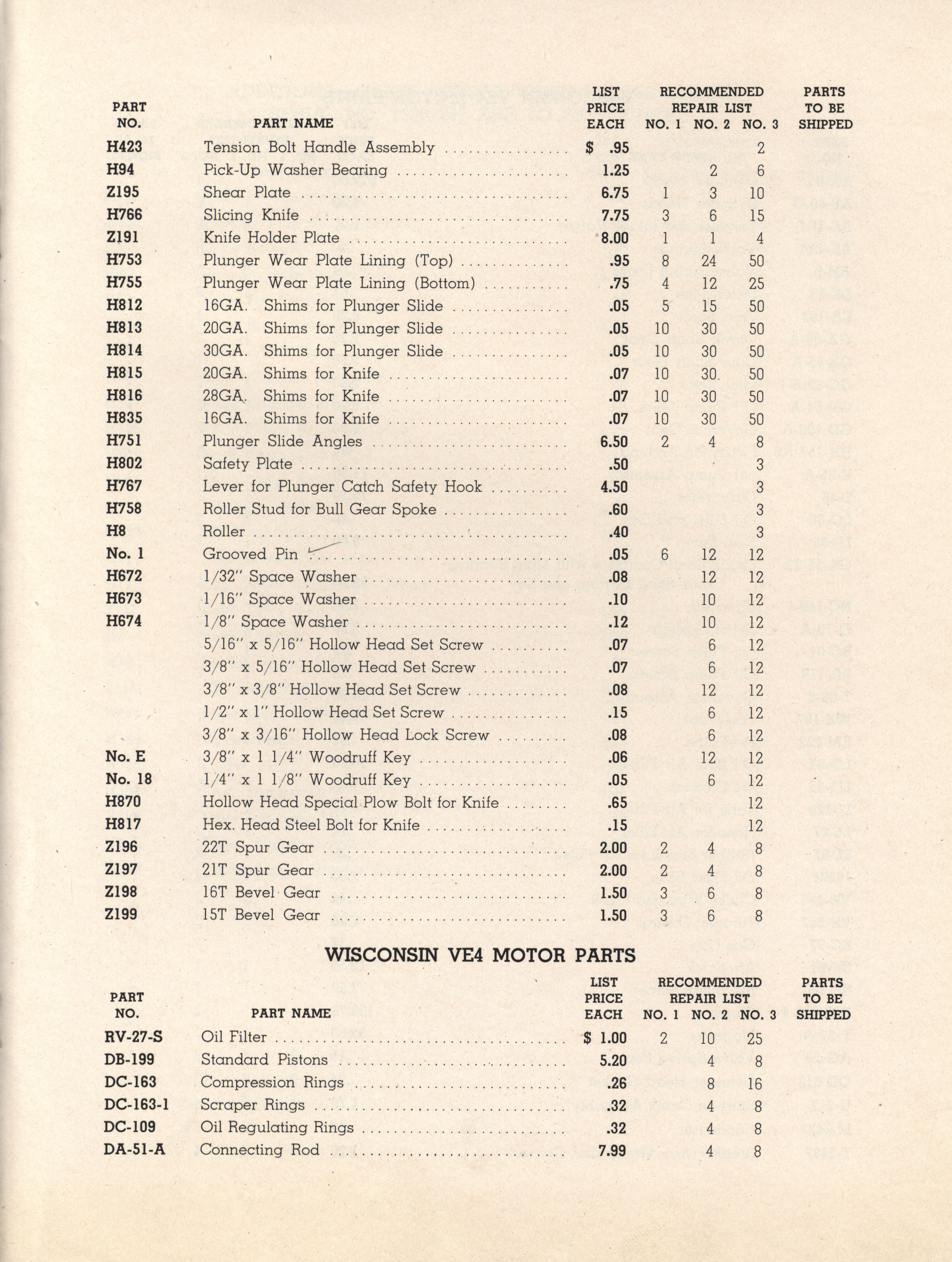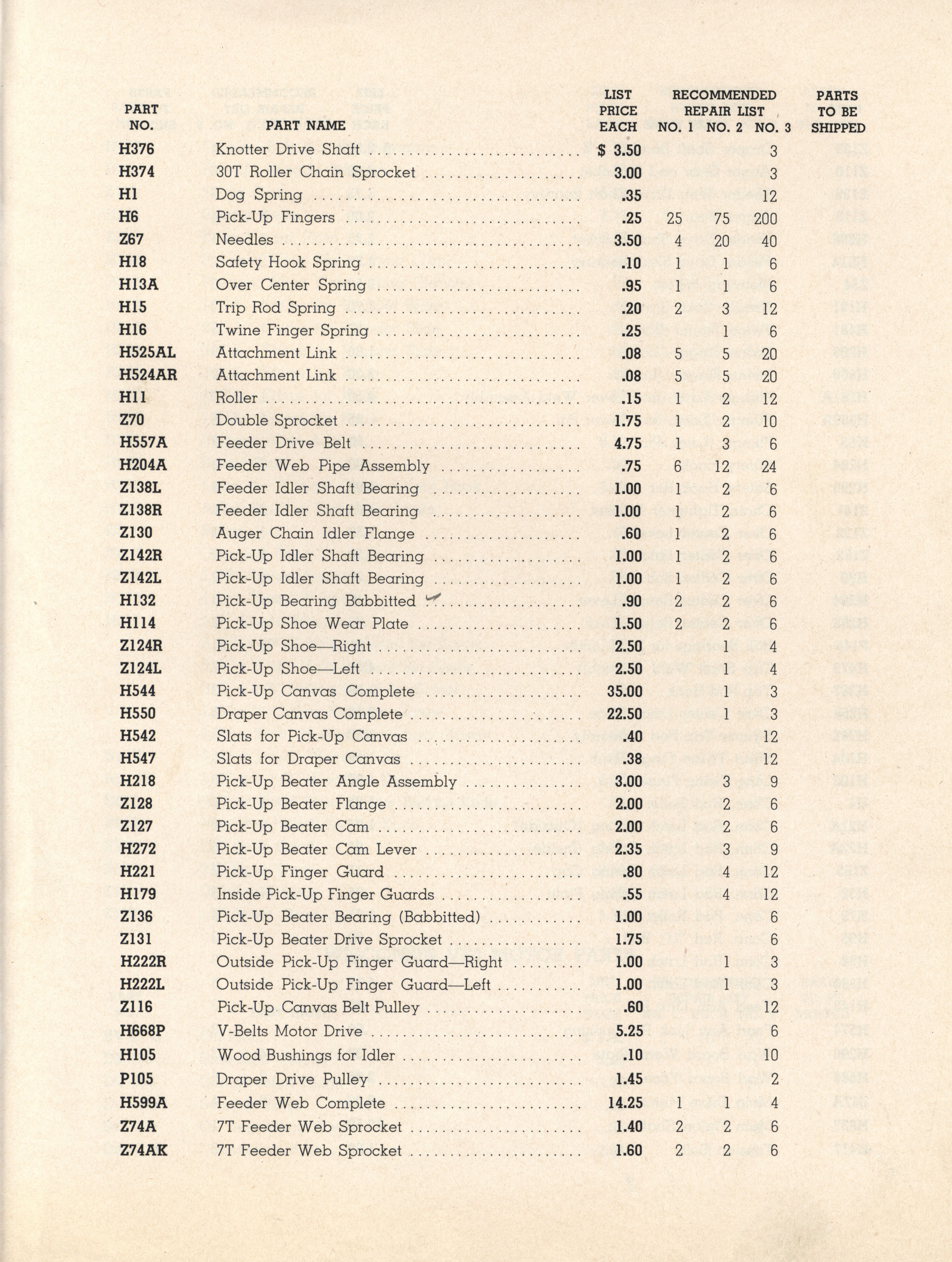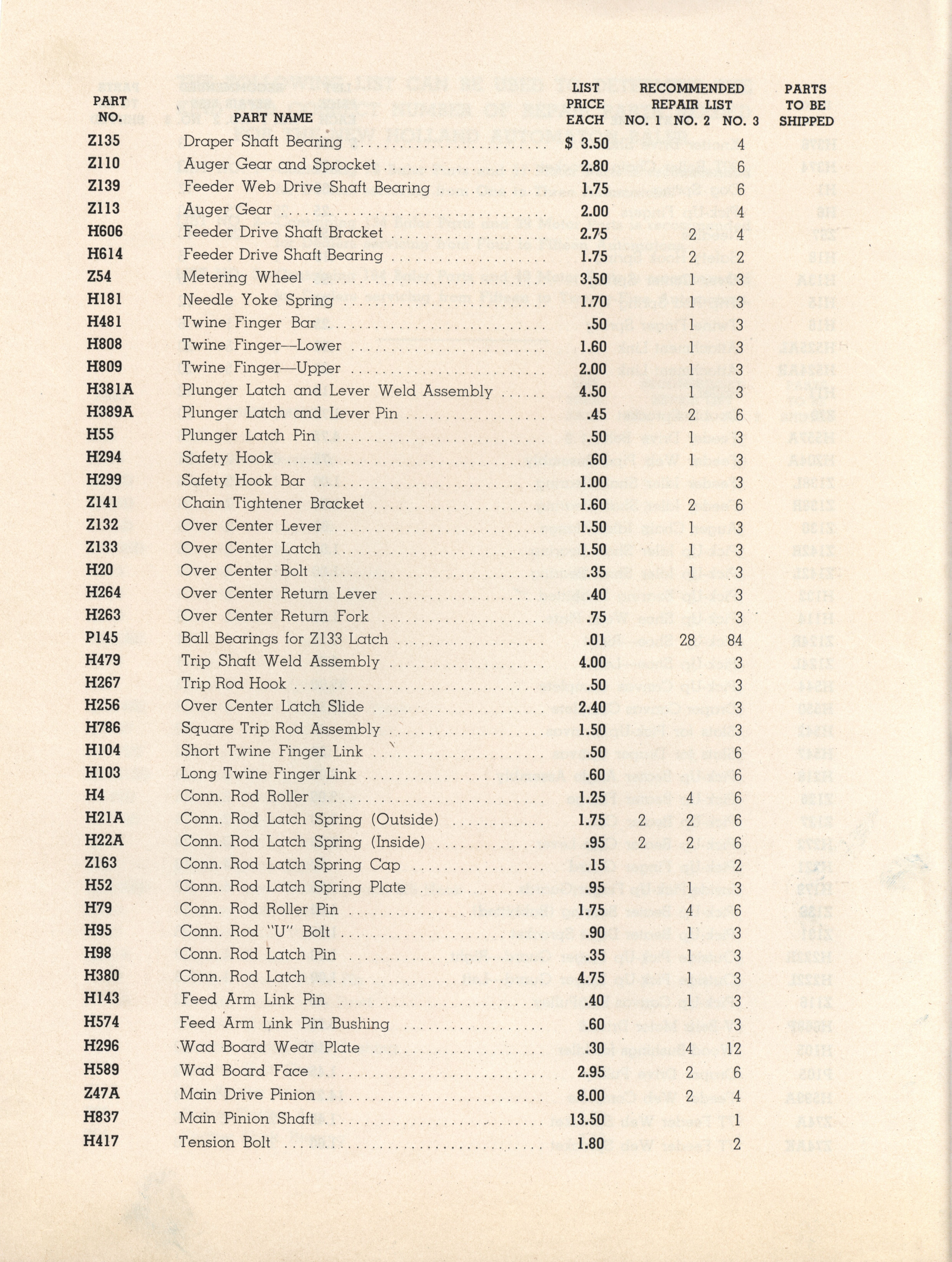 - Illustrated price list for repairs from the New Holland Machine Company.